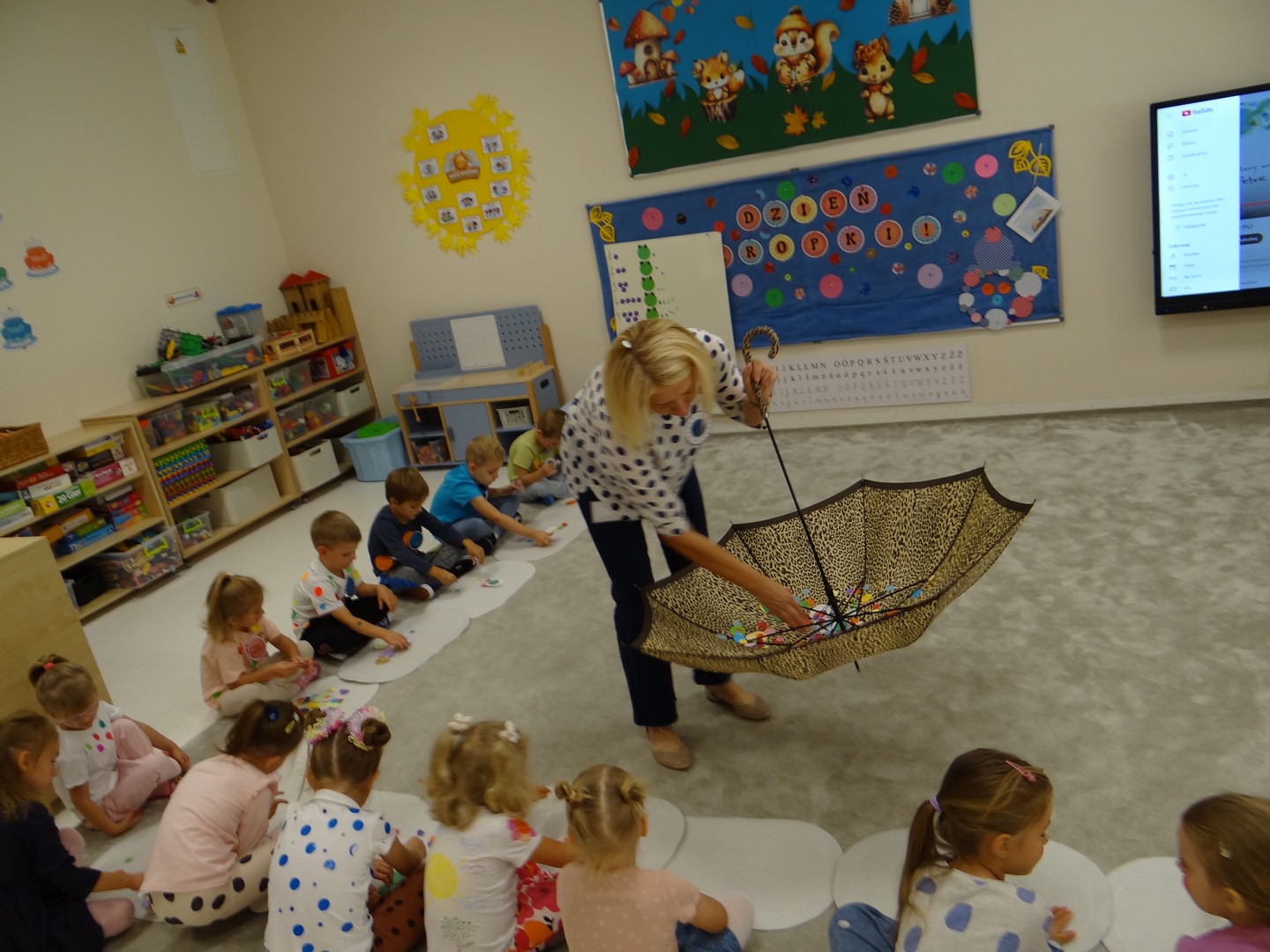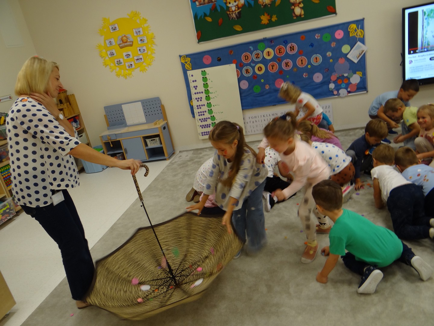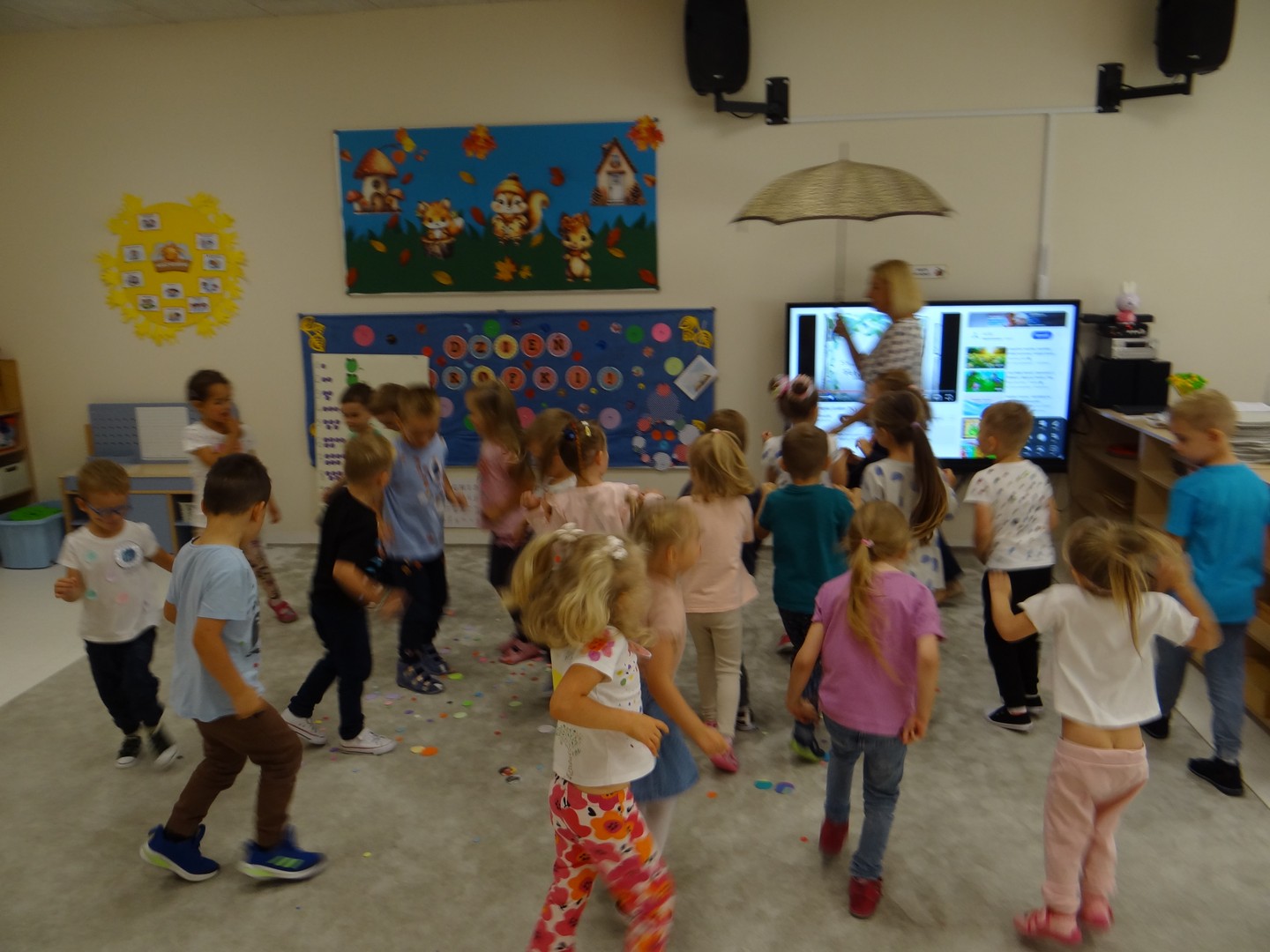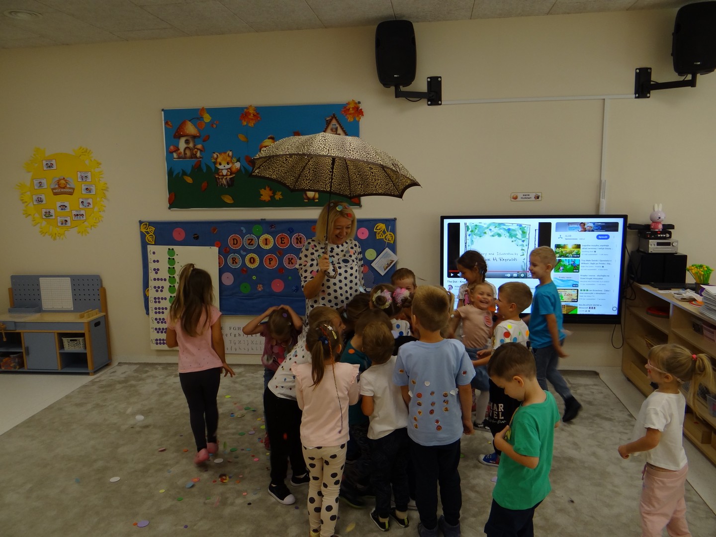 15.09.2025 r. obchodziliśmy w naszej grupie Międzynarodowy Dzień Kropki. W tym dniu kreatywności, pomysłowości, rozwoju wyobraźni Kropka przeprowadziła nas przez różne aktywności. Dzięki Niej doskonaliliśmy swoje umiejętności matematyczne, plastyczne oraz muzyczne. Dziewczynka Vashti z filmu edukacyjnego „The Dot” Kropka może stać się przykładem postawy zachęcającej do wiary we własne siły i mocne strony. Każdemu wątpiącemu dziecku wystarczy dodać odwagi, dobrze zmotywować a wówczas rozłoży swe skrzydła dzięki którym wzniesie się na wyżyny swoich możliwości.