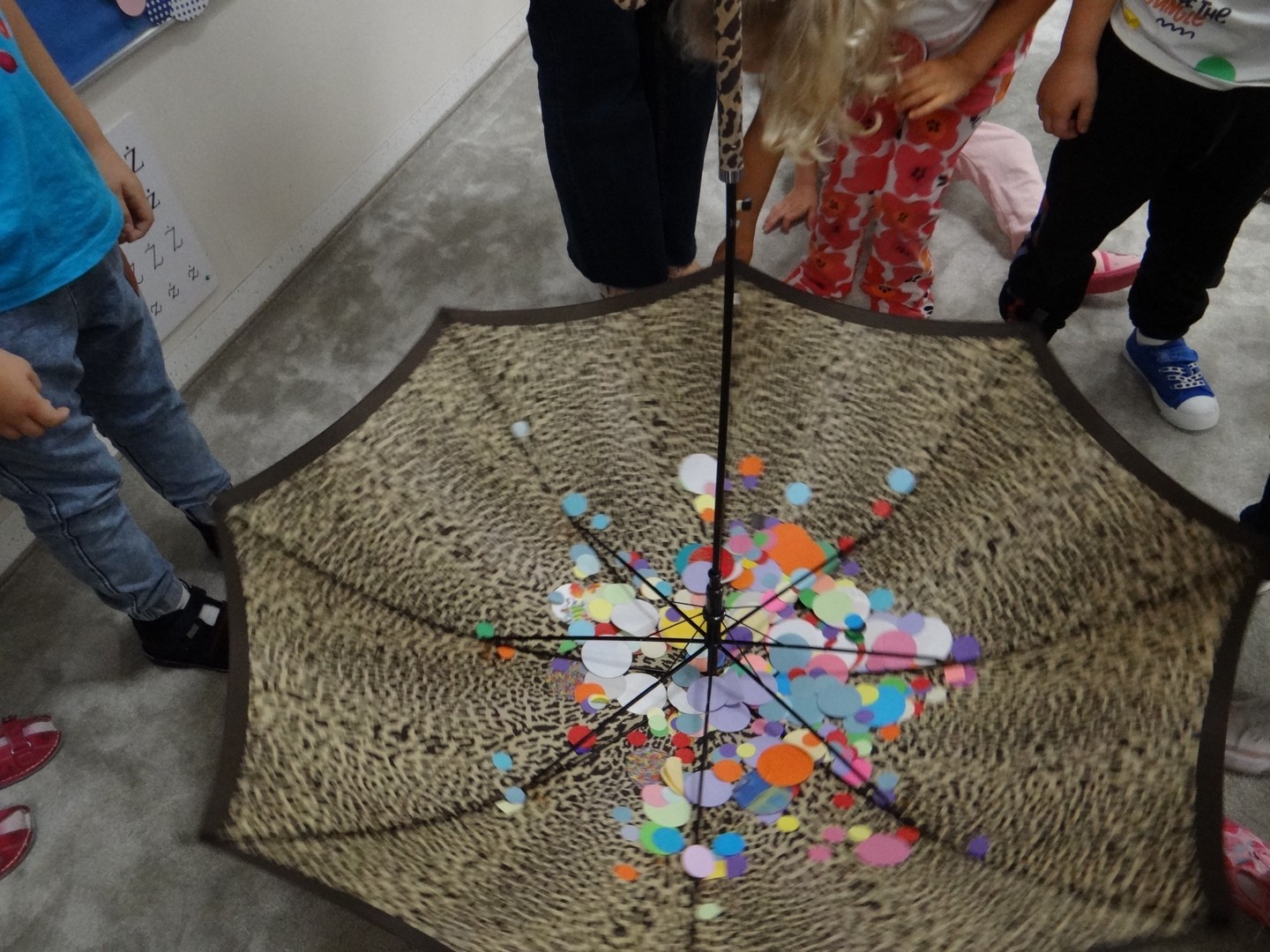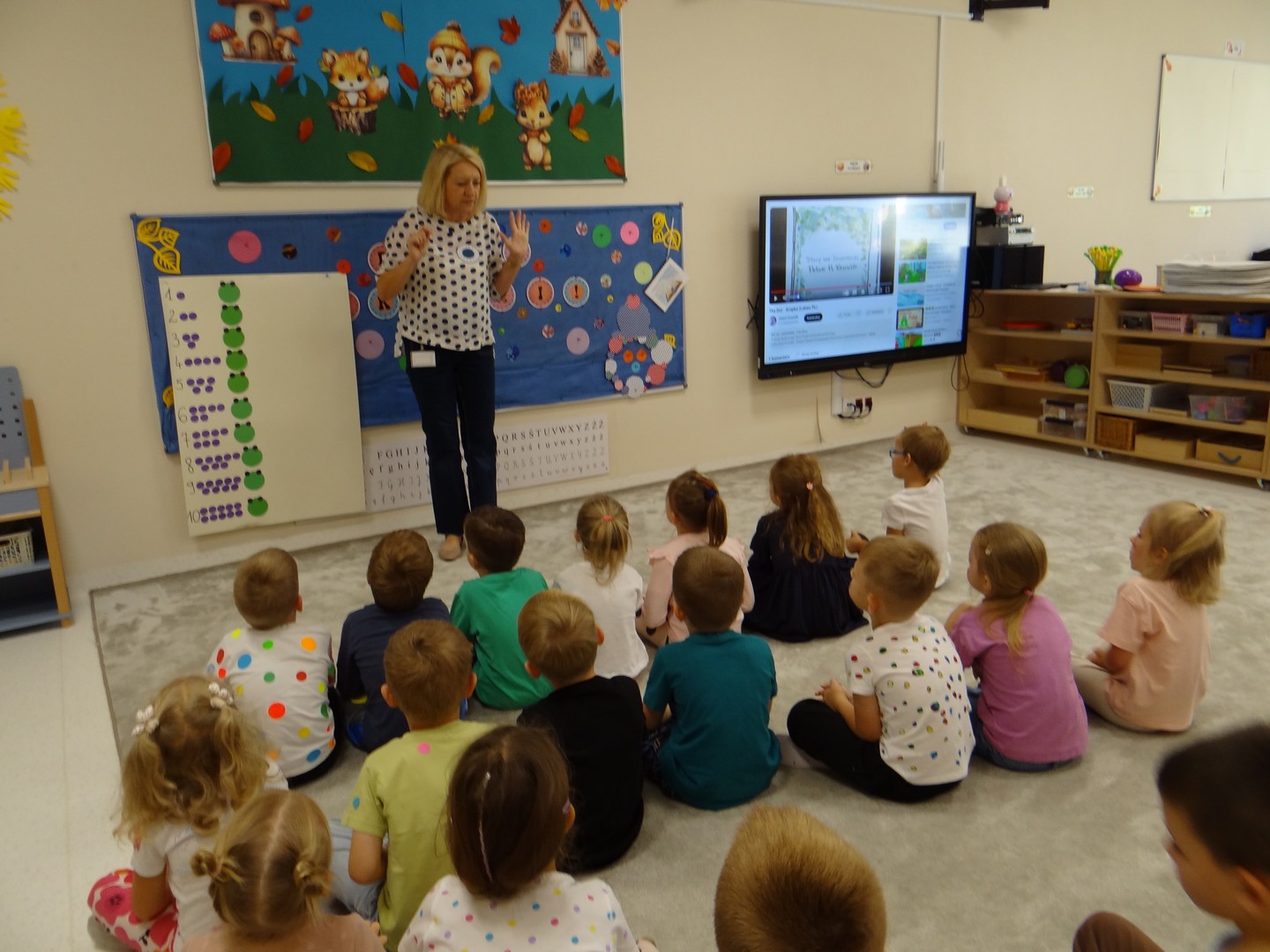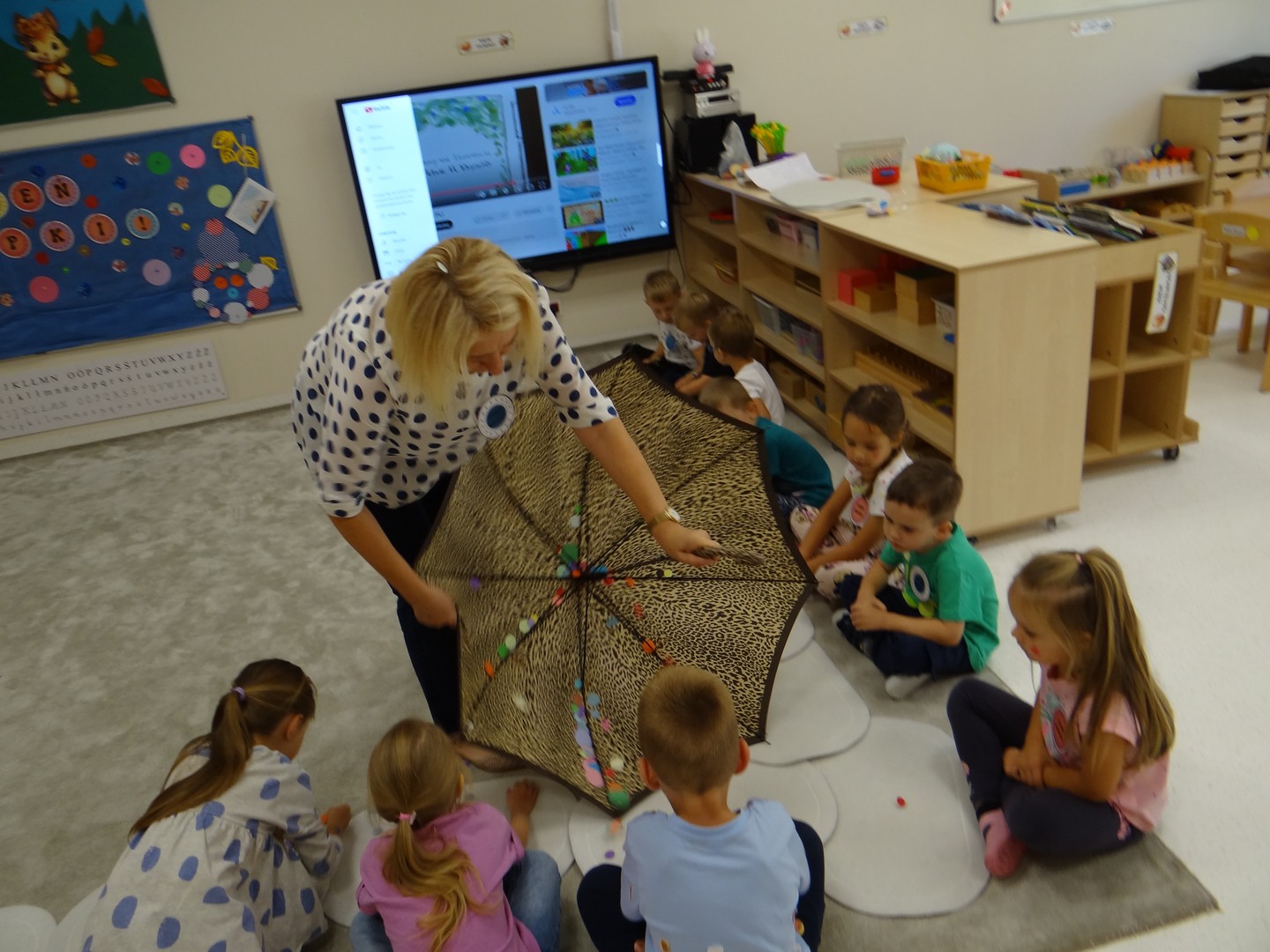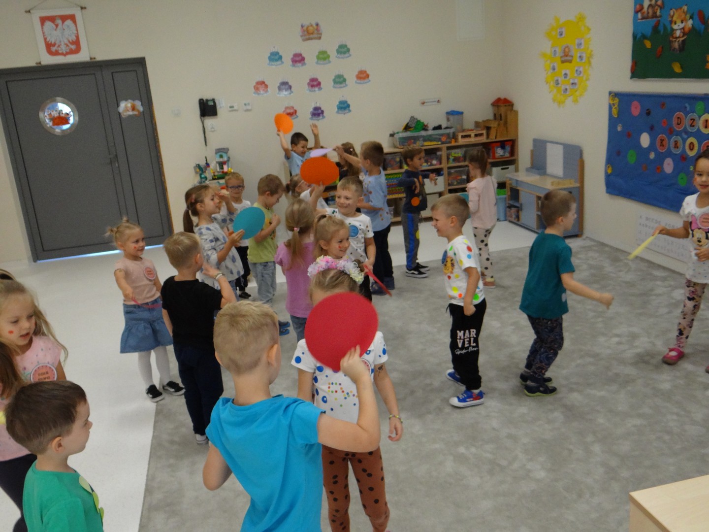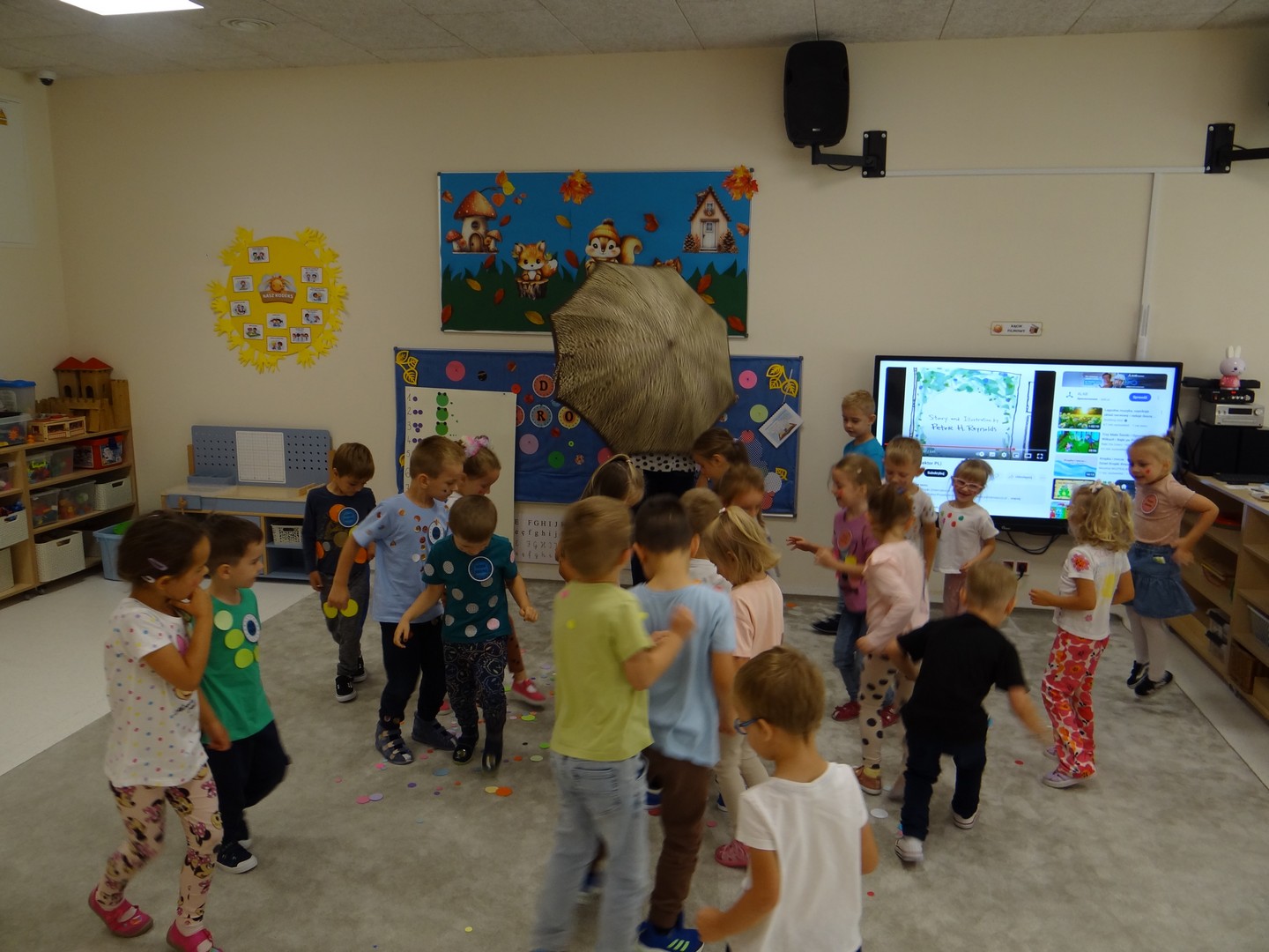 15.09.2025 r. obchodziliśmy w naszej grupie Międzynarodowy Dzień Kropki. W tym dniu kreatywności, pomysłowości, rozwoju wyobraźni Kropka przeprowadziła nas przez różne aktywności. Dzięki Niej doskonaliliśmy swoje umiejętności matematyczne, plastyczne oraz muzyczne. Dziewczynka Vashti z filmu edukacyjnego „The Dot” Kropka może stać się przykładem postawy zachęcającej do wiary we własne siły i mocne strony. Każdemu wątpiącemu dziecku wystarczy dodać odwagi, dobrze zmotywować a wówczas rozłoży swe skrzydła dzięki którym wzniesie się na wyżyny swoich możliwości.