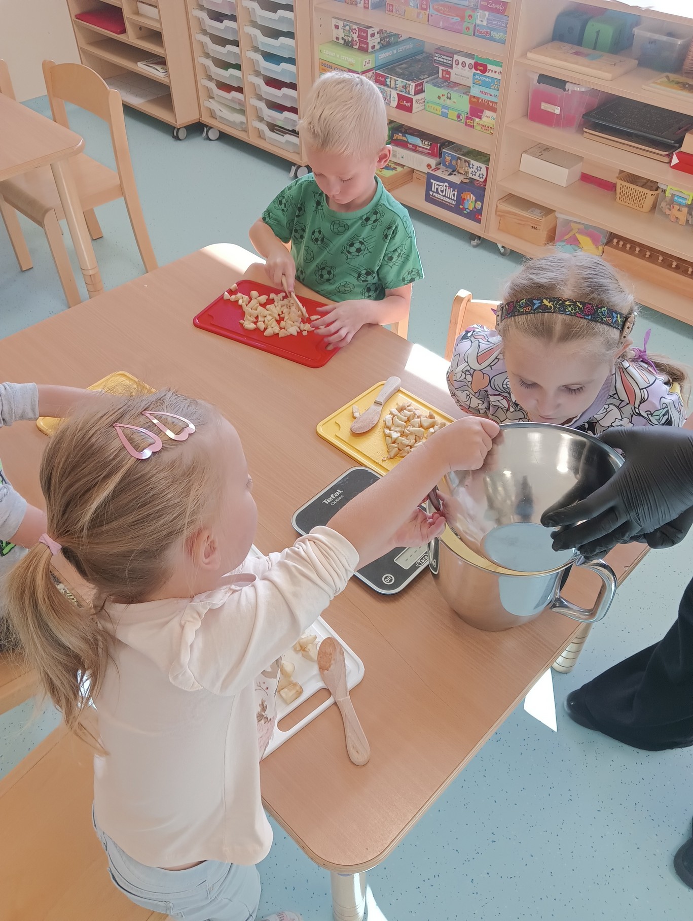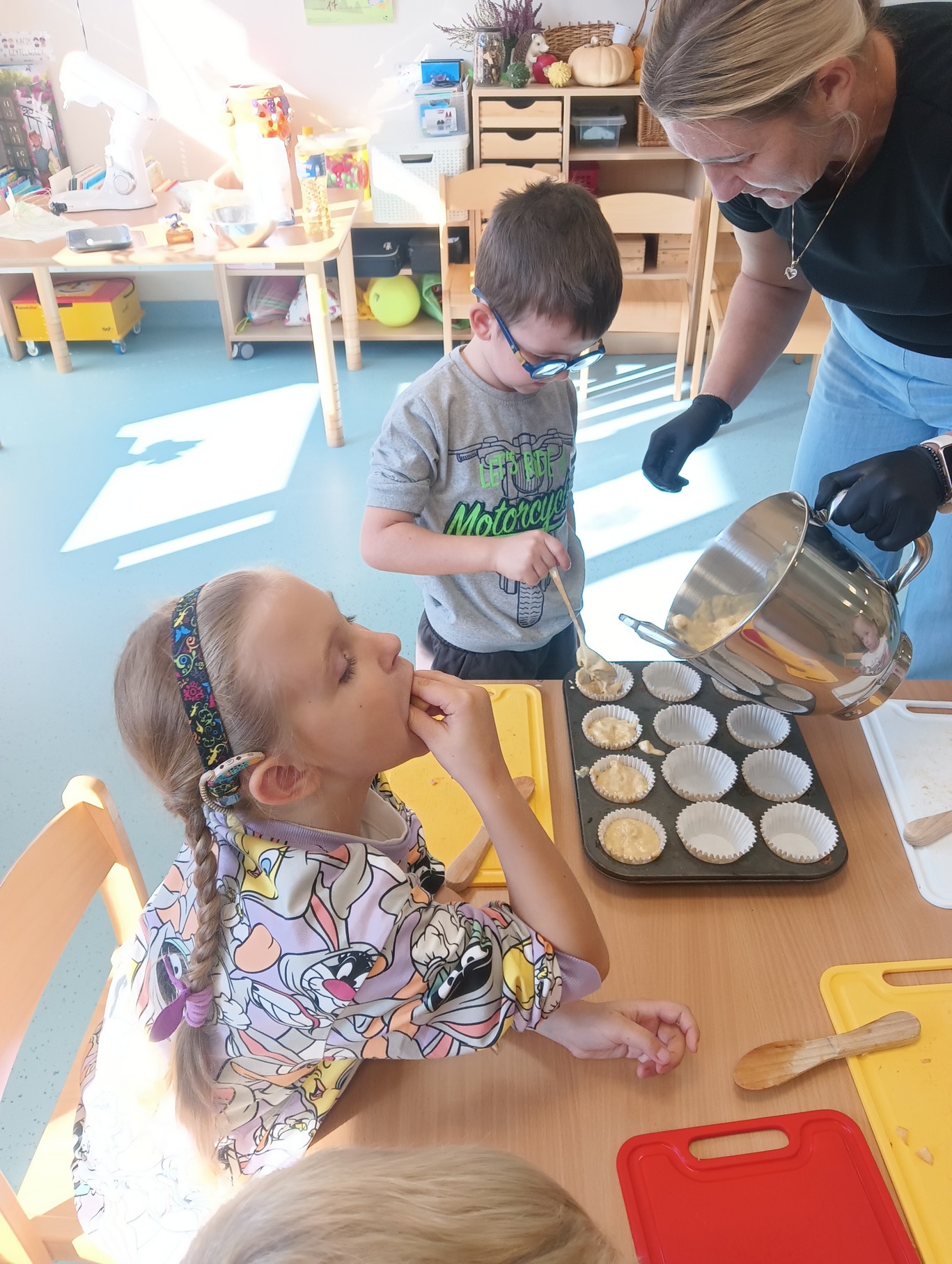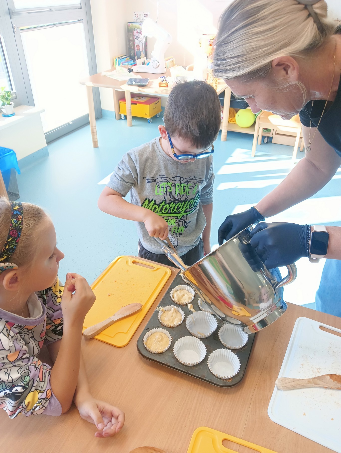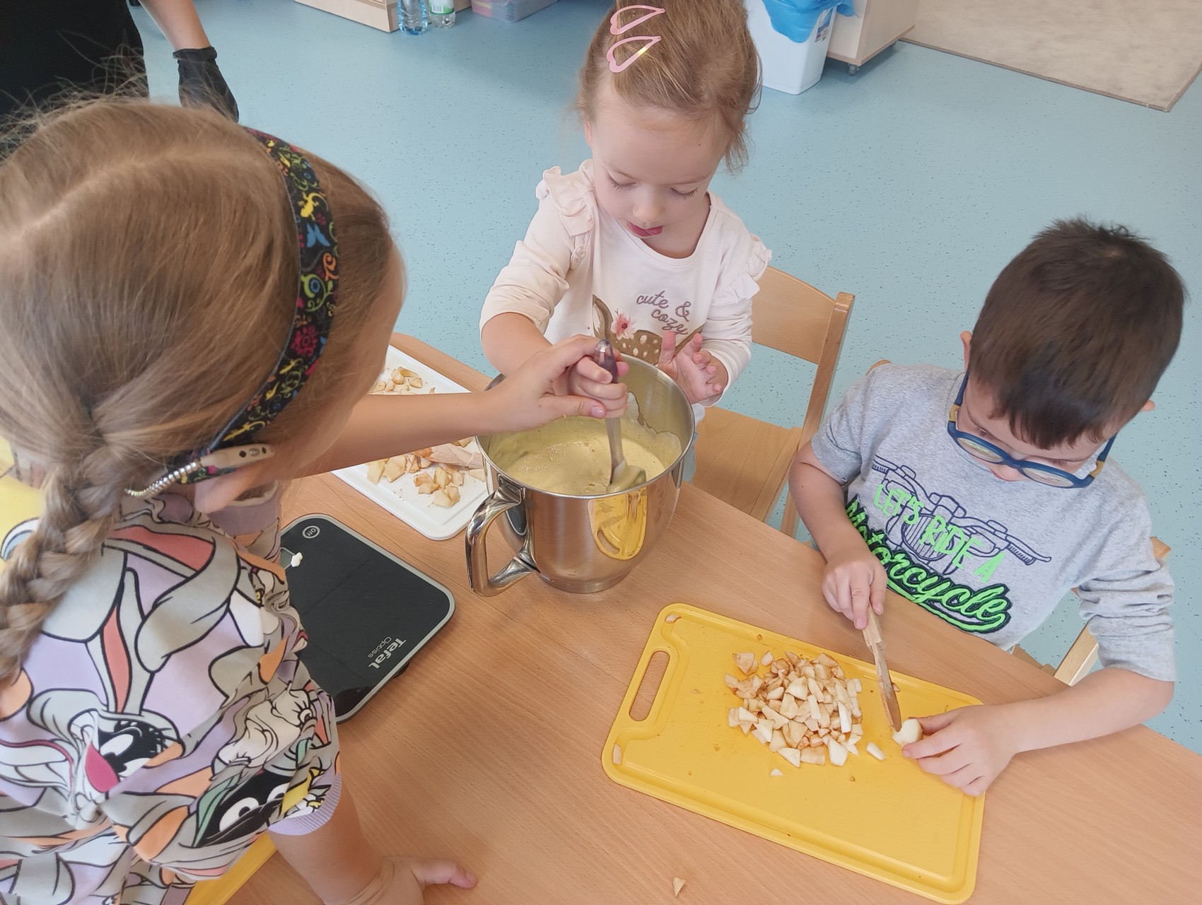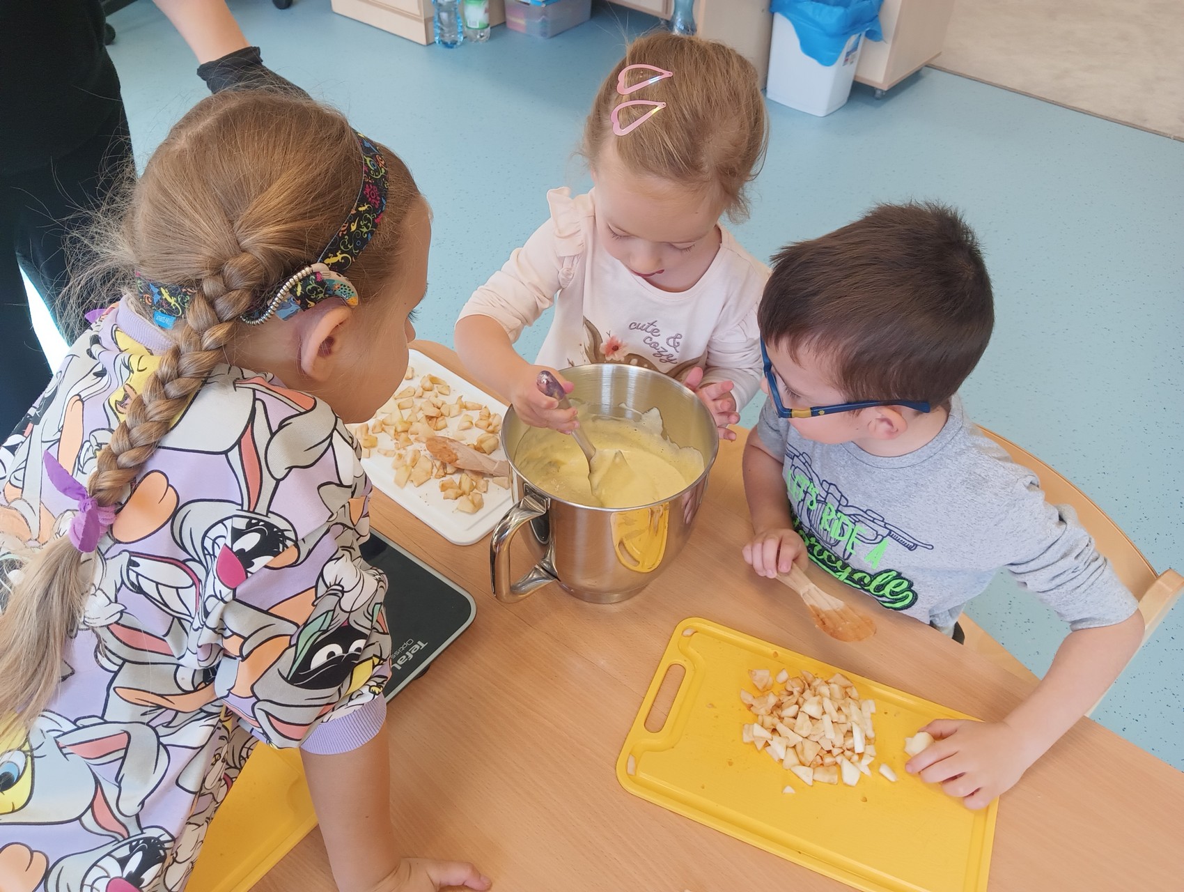 W tym tygodniu nasze Smerfy zamieniły się w małych kucharzy! Wspólnie przygotowaliśmy pyszne babeczki z jabłkami – było mieszanie, odmierzanie składników i oczywiście degustacja! Dzieci z ogromnym zaangażowaniem uczestniczyły w każdym etapie pieczenia, ucząc się współpracy, cierpliwości i rozwijając małą motorykę. A zapach świeżo upieczonych babeczek unosił się po całym przedszkolu – mniam! To był słodki dzień pełen radości, uśmiechu i nauki przez zabawę!