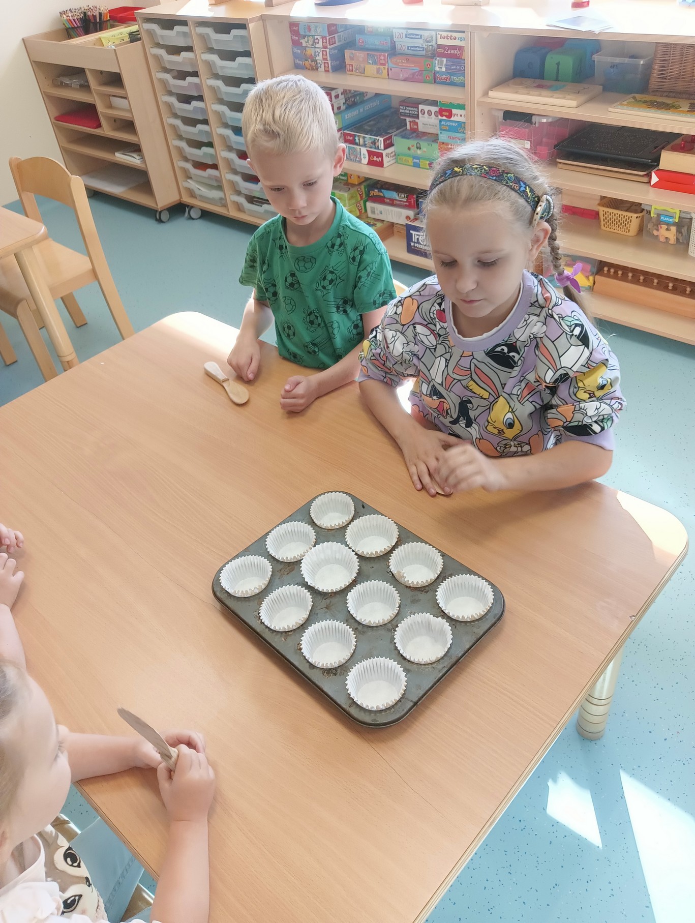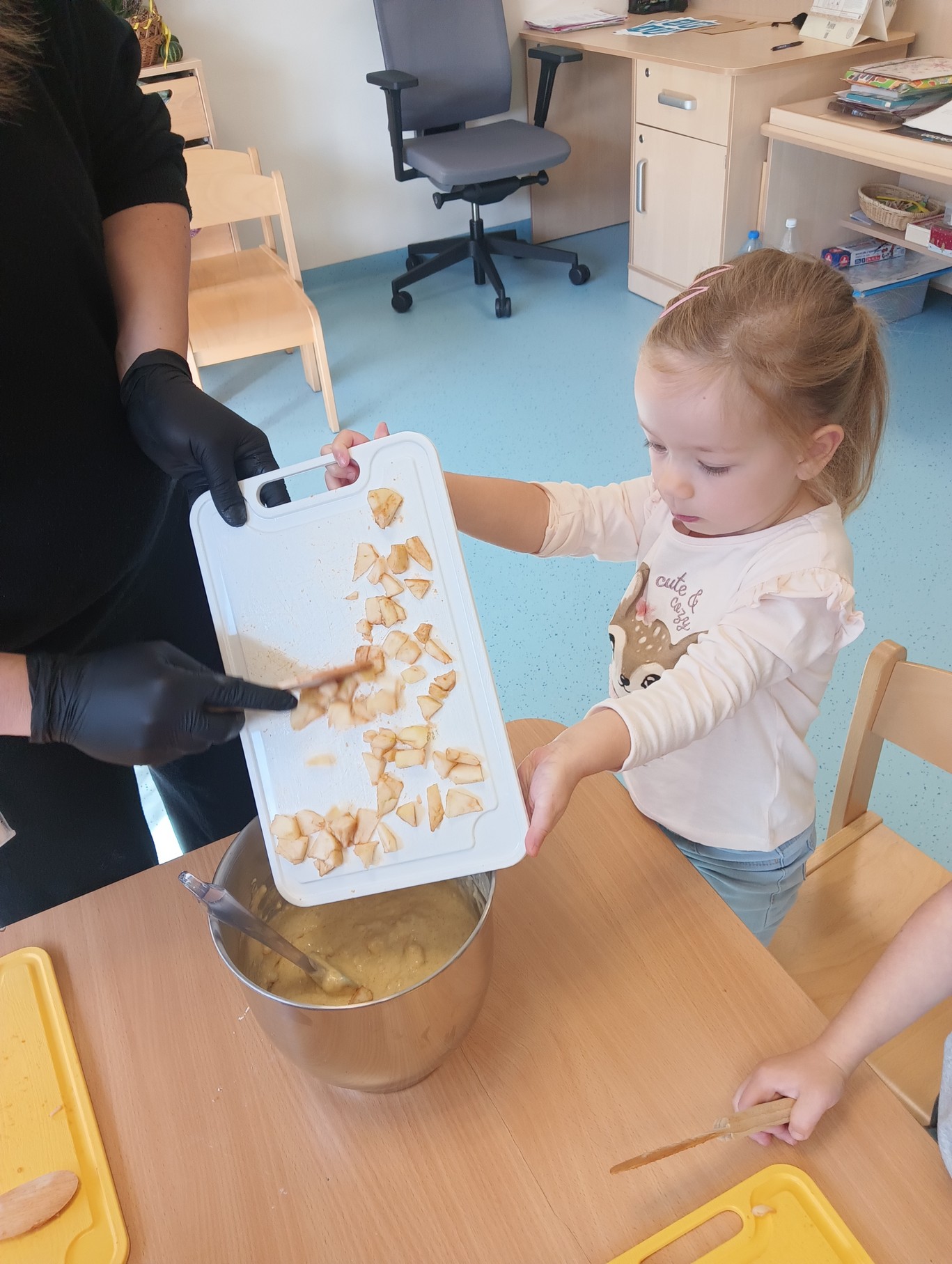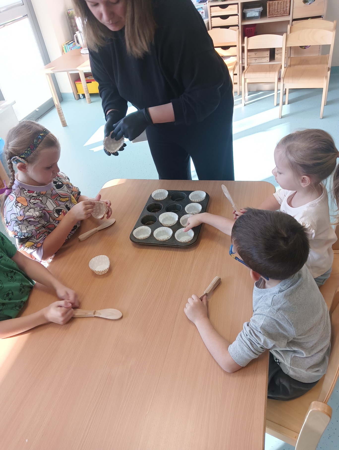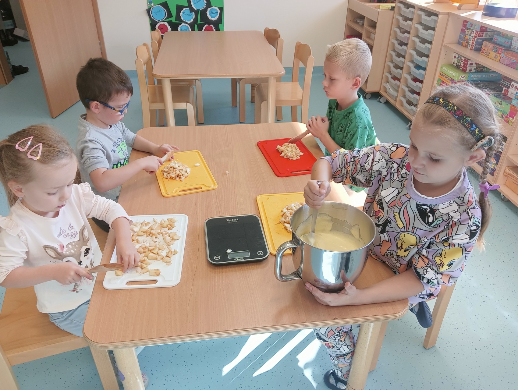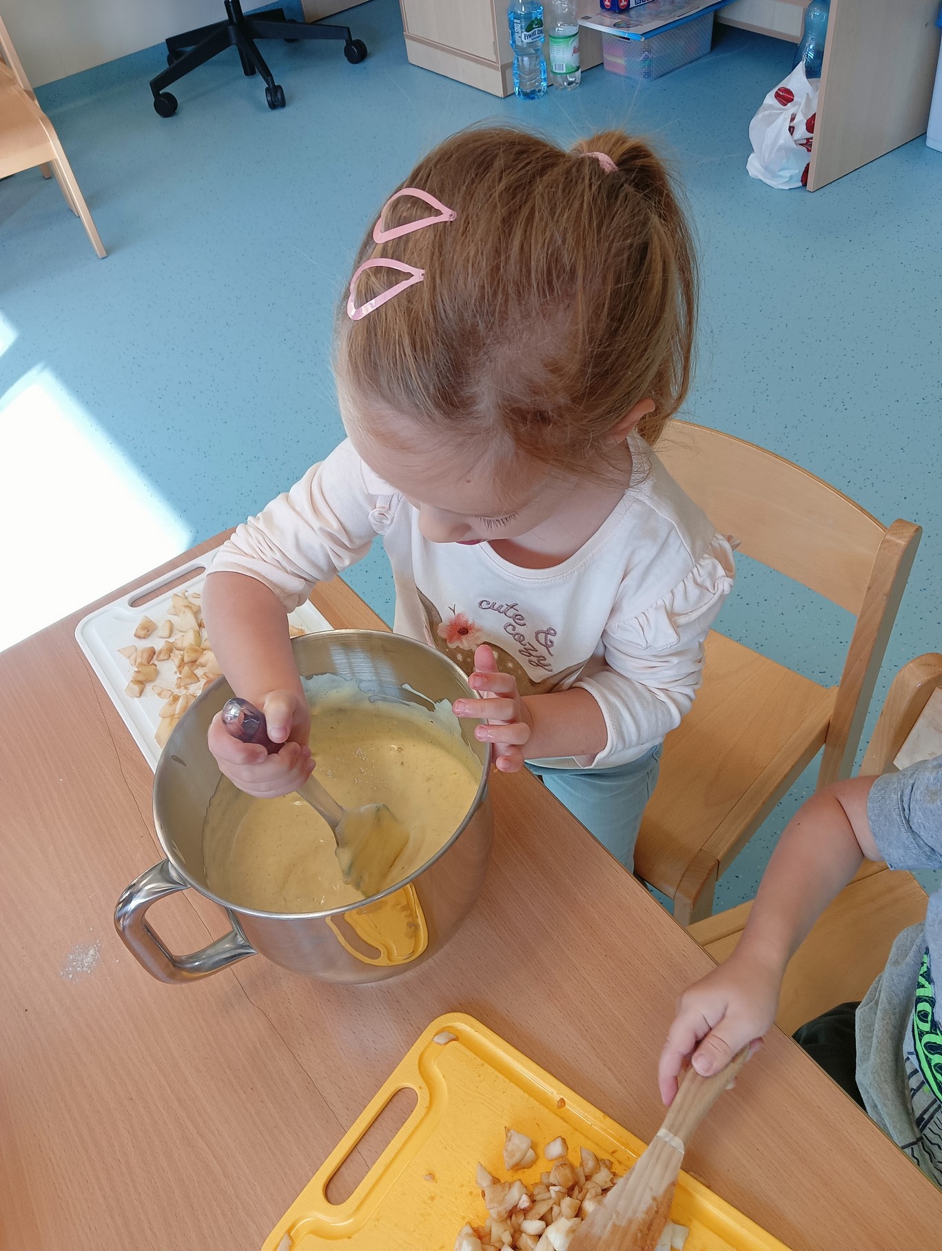W tym tygodniu nasze Smerfy zamieniły się w małych kucharzy! Wspólnie przygotowaliśmy pyszne babeczki z jabłkami – było mieszanie, odmierzanie składników i oczywiście degustacja! Dzieci z ogromnym zaangażowaniem uczestniczyły w każdym etapie pieczenia, ucząc się współpracy, cierpliwości i rozwijając małą motorykę. A zapach świeżo upieczonych babeczek unosił się po całym przedszkolu – mniam! To był słodki dzień pełen radości, uśmiechu i nauki przez zabawę!