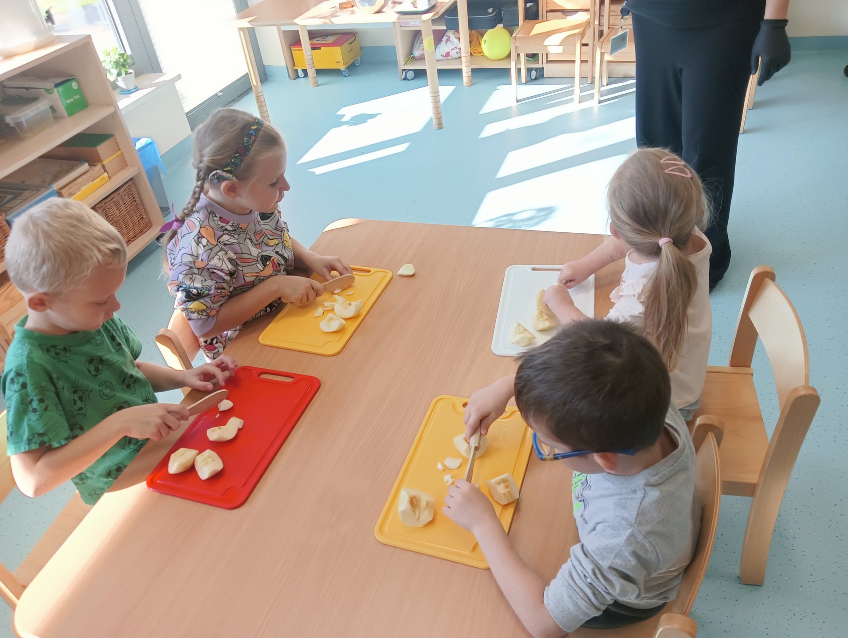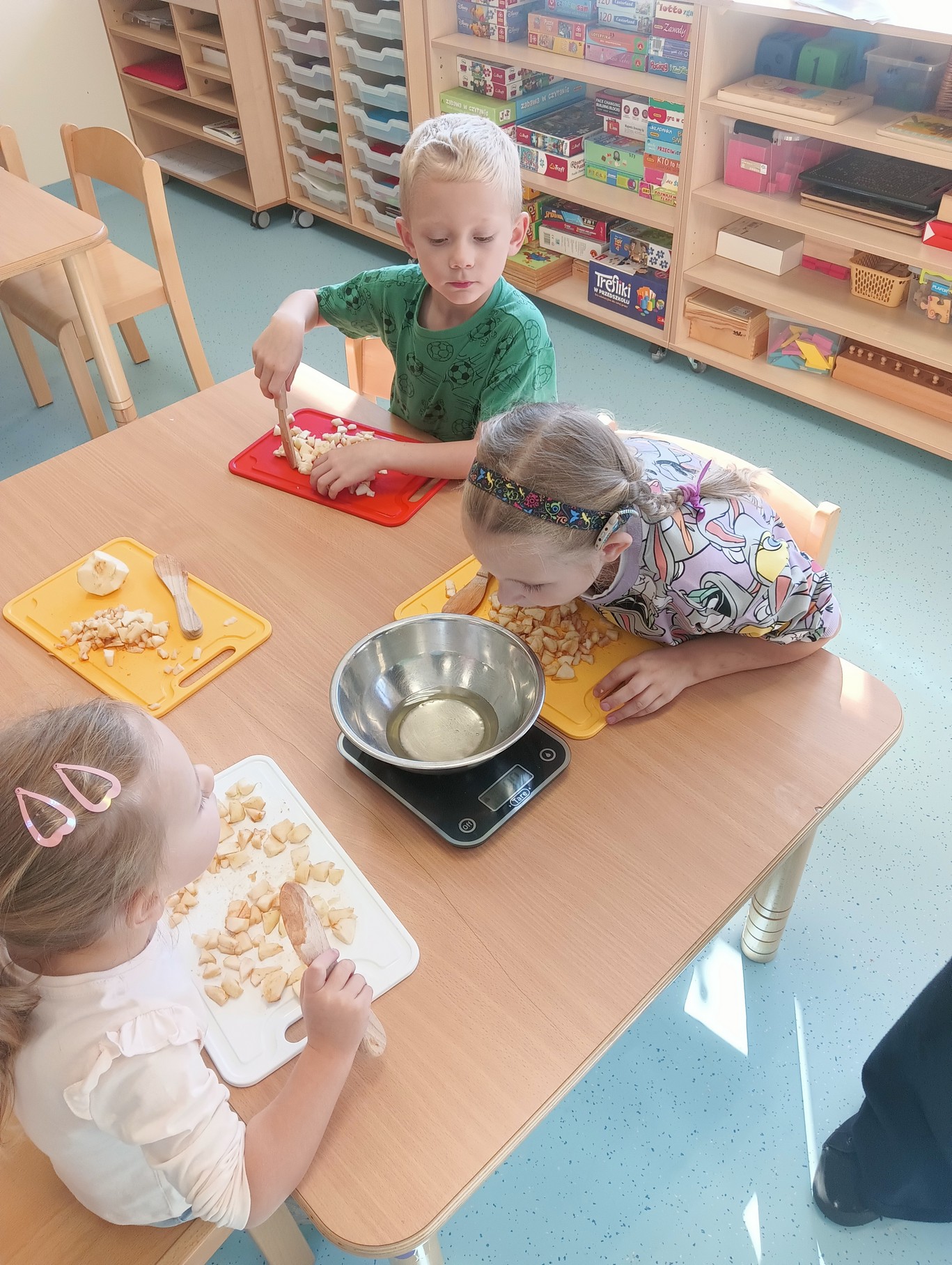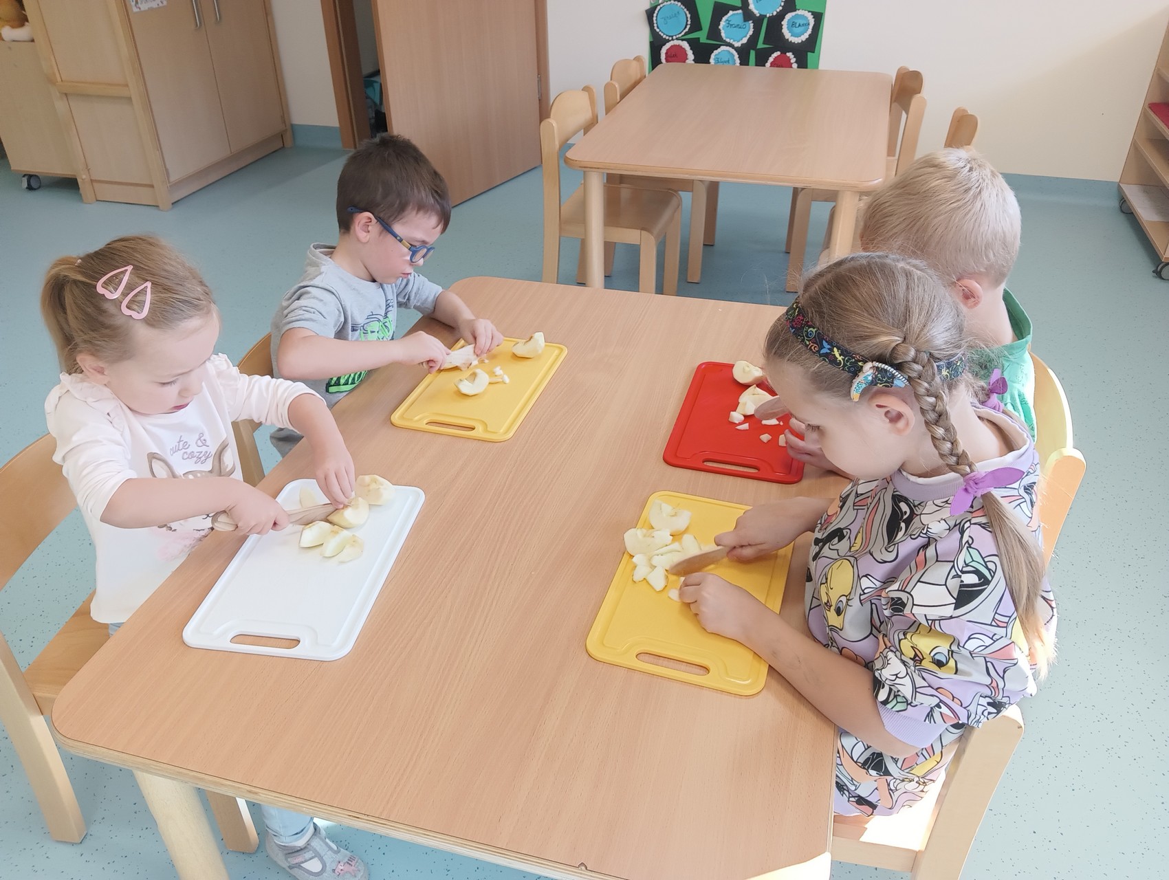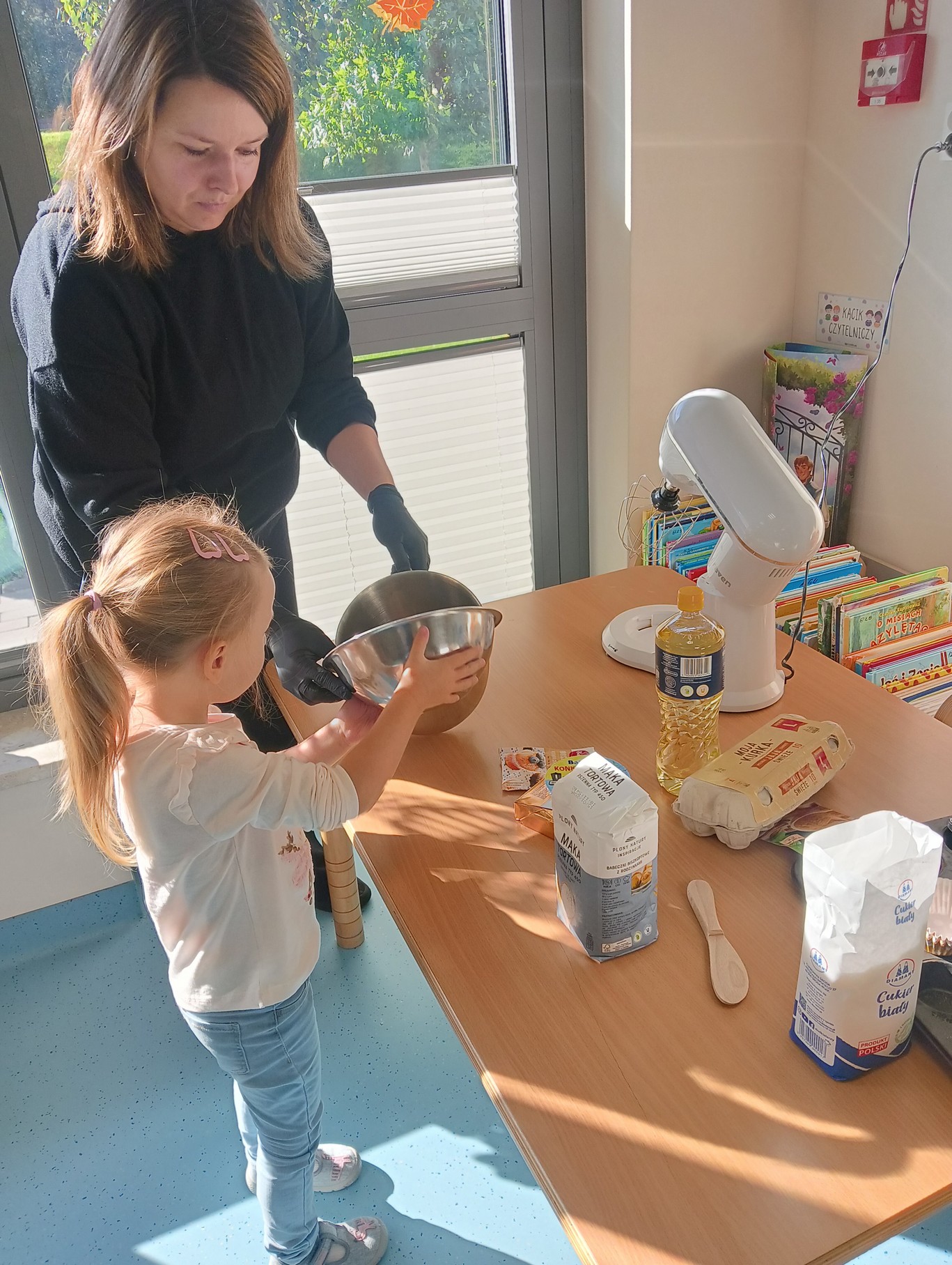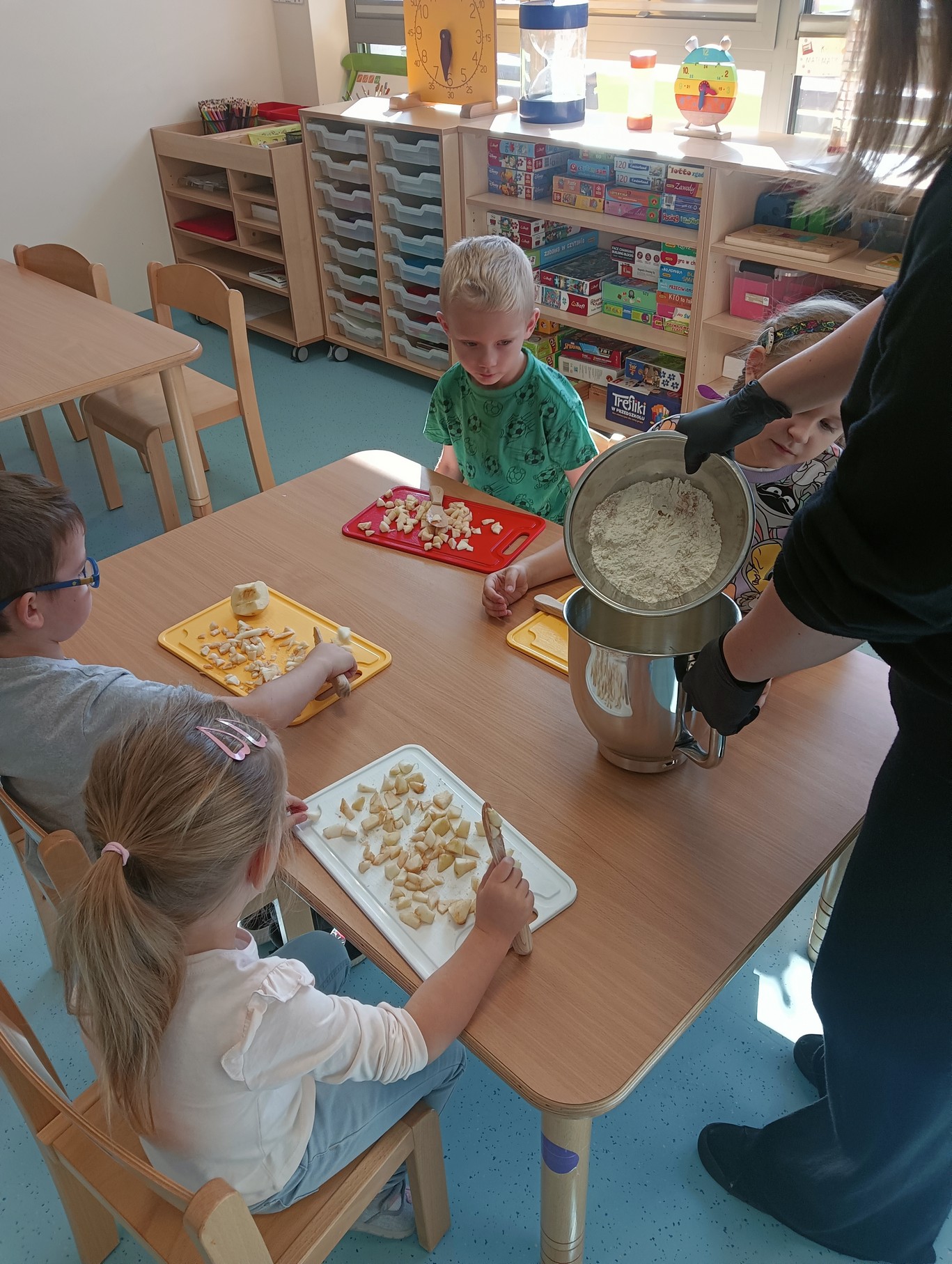 W tym tygodniu nasze Smerfy zamieniły się w małych kucharzy! Wspólnie przygotowaliśmy pyszne babeczki z jabłkami – było mieszanie, odmierzanie składników i oczywiście degustacja! Dzieci z ogromnym zaangażowaniem uczestniczyły w każdym etapie pieczenia, ucząc się współpracy, cierpliwości i rozwijając małą motorykę. A zapach świeżo upieczonych babeczek unosił się po całym przedszkolu – mniam! To był słodki dzień pełen radości, uśmiechu i nauki przez zabawę!