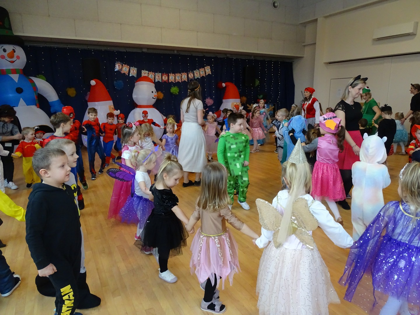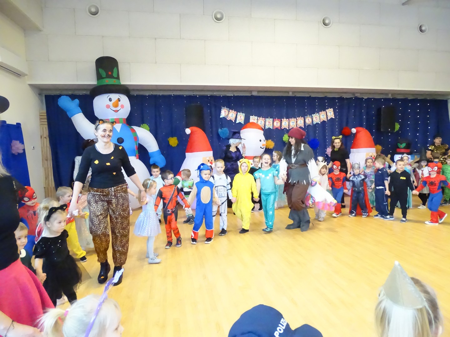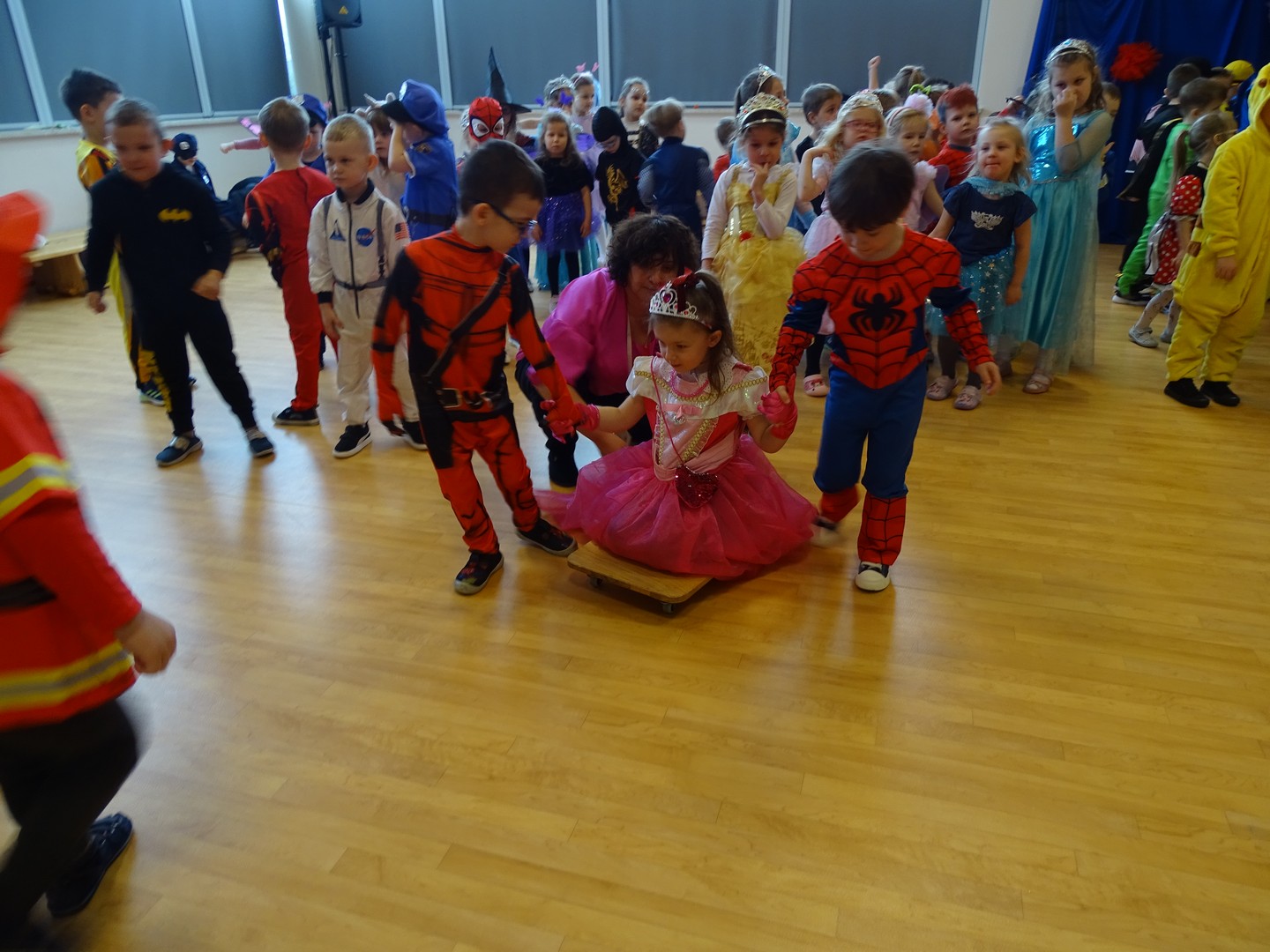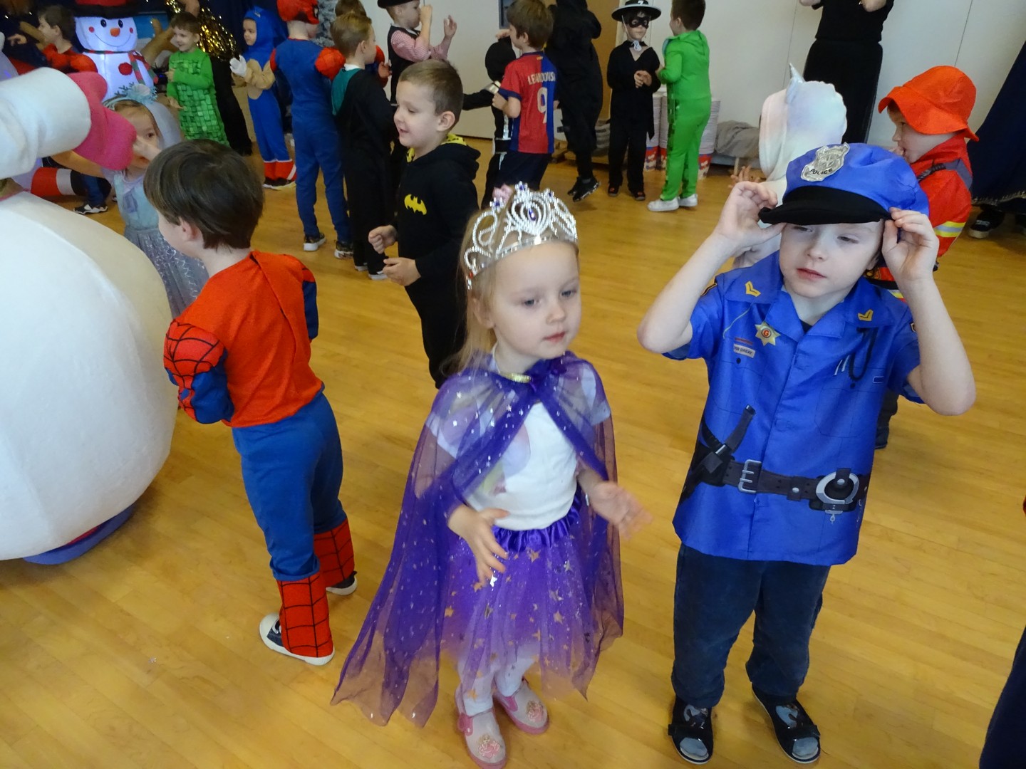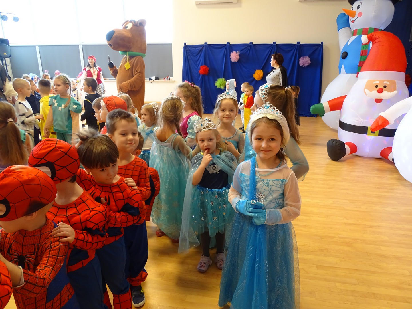 16 stycznia br. w naszym przedszkolu odbył się radosny bal karnawałowy z doświadczonym animatorem. Dzieci bawiły się przy muzyce, uczestniczyły w konkursach i tańcach, a na ich twarzach malowała się ogromna radość. Przedszkolaki przebrały się za swoje ulubione postaci z bajek, co dodało wyjątkowego uroku temu wydarzeniu. To niezapomniana chwila pełna uśmiechów i wspólnej zabawy.