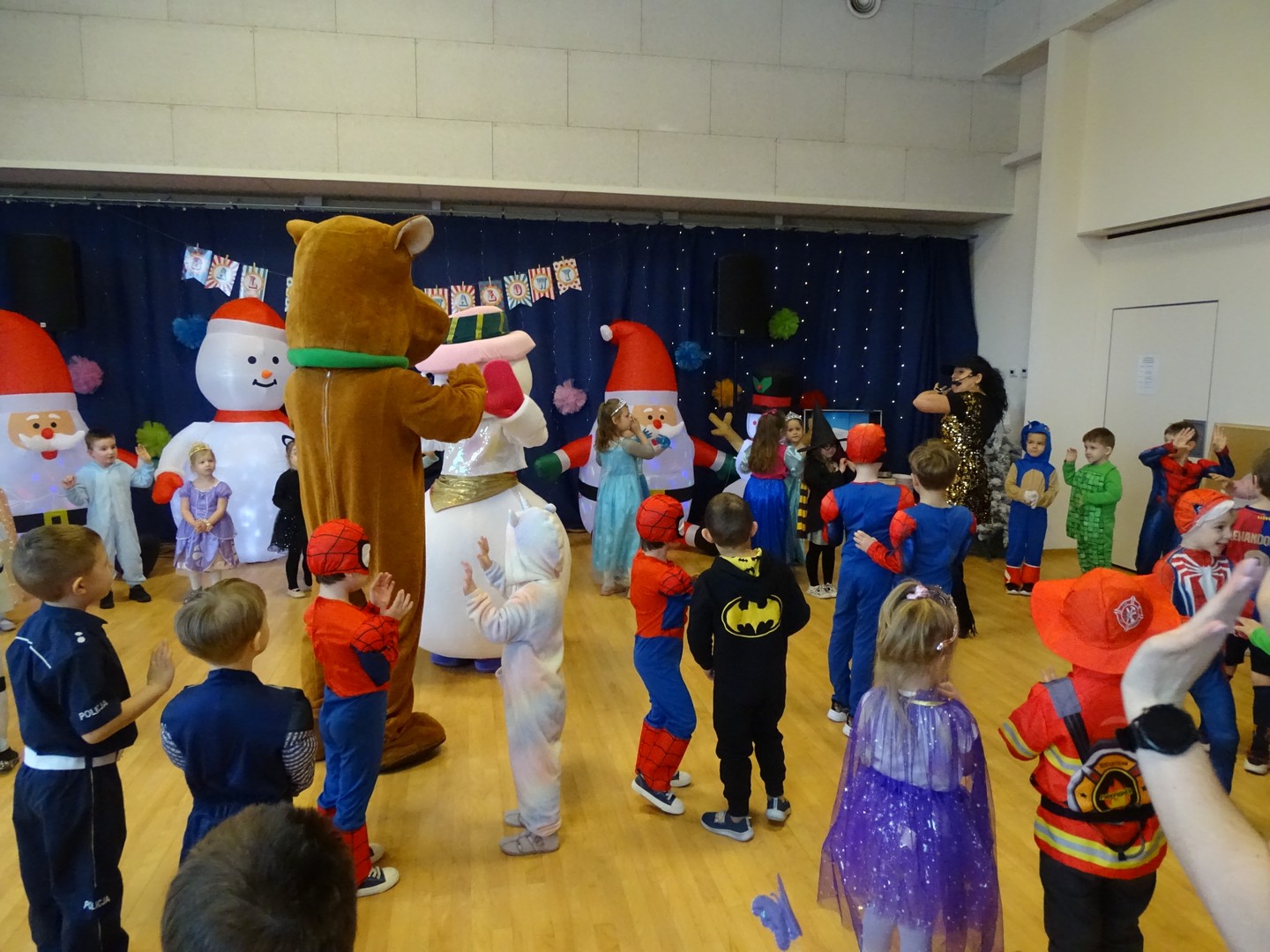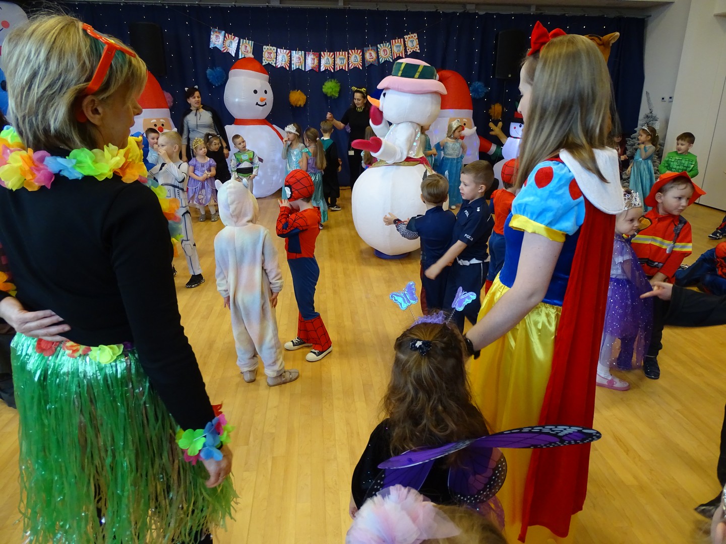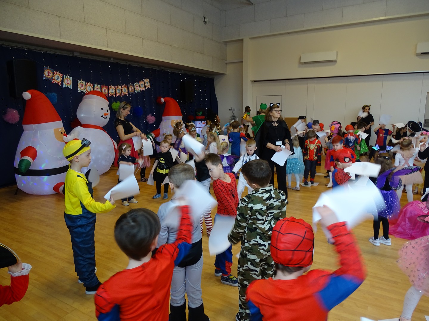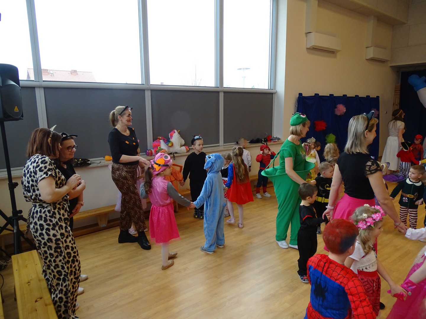 16 stycznia br. w naszym przedszkolu odbył się radosny bal karnawałowy z doświadczonym animatorem. Dzieci bawiły się przy muzyce, uczestniczyły w konkursach i tańcach, a na ich twarzach malowała się ogromna radość. Przedszkolaki przebrały się za swoje ulubione postaci z bajek, co dodało wyjątkowego uroku temu wydarzeniu. To niezapomniana chwila pełna uśmiechów i wspólnej zabawy.