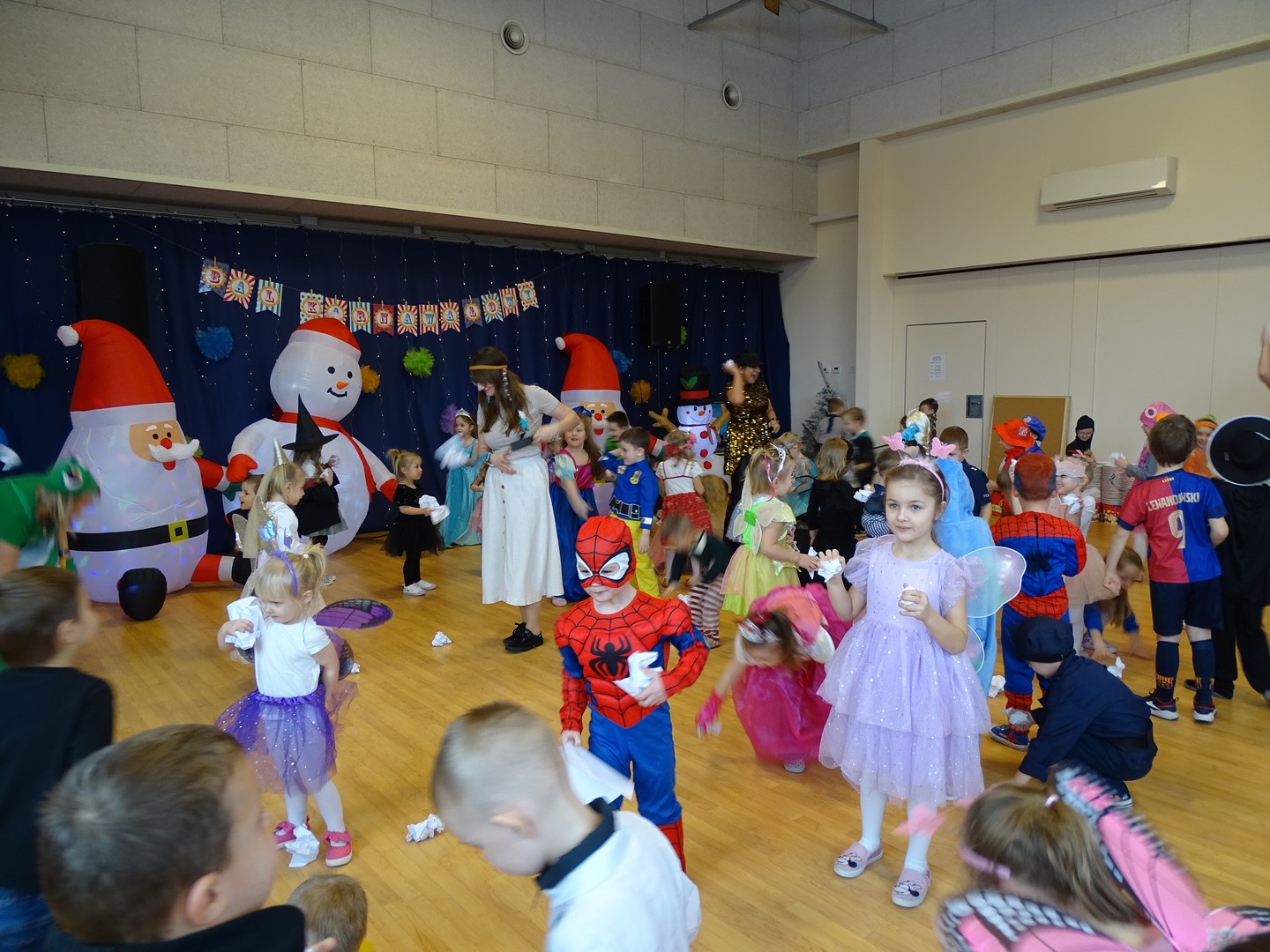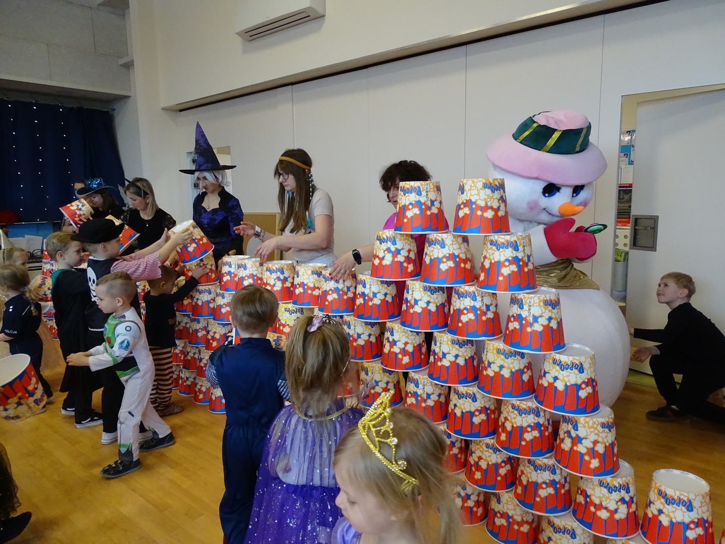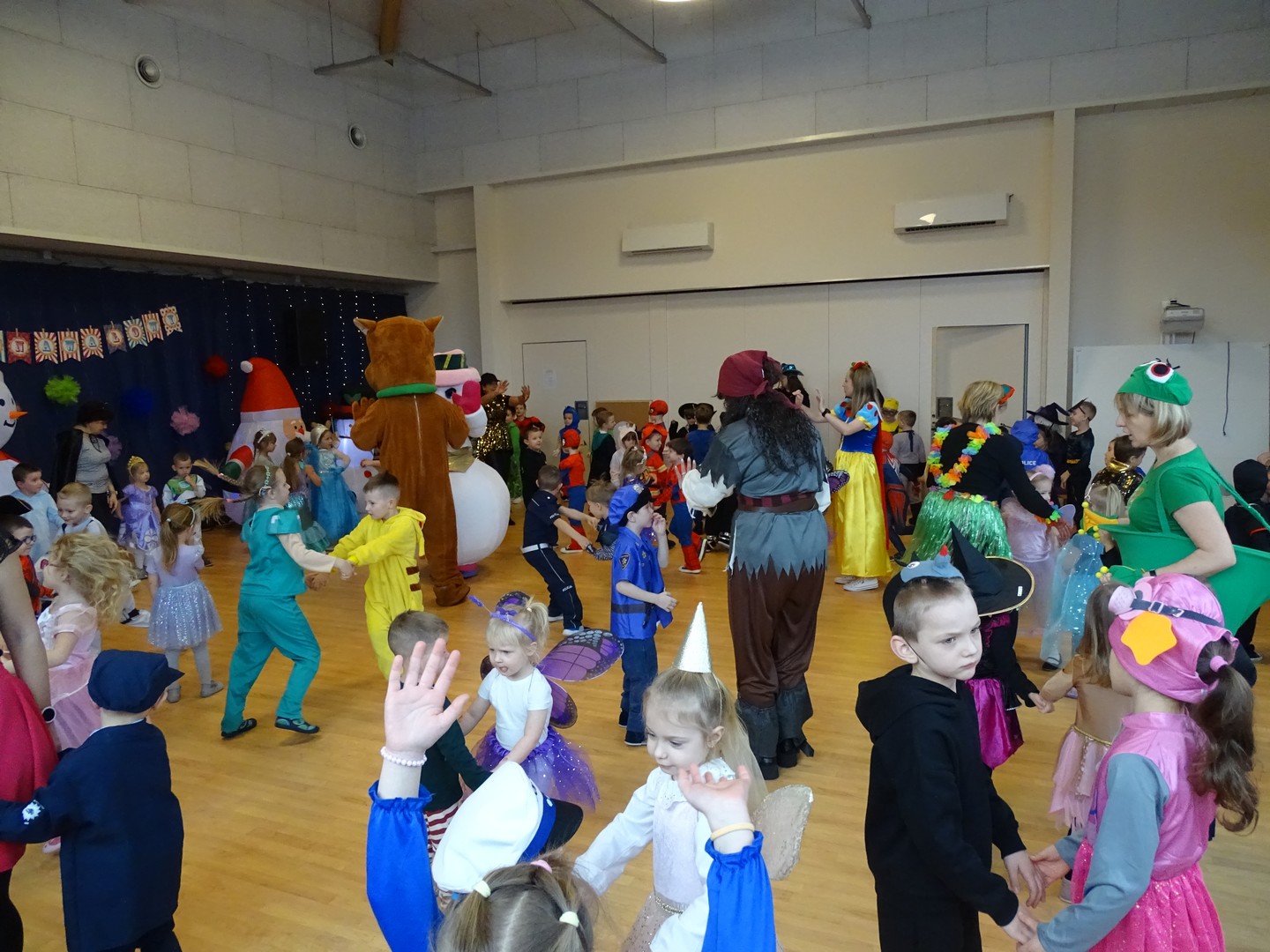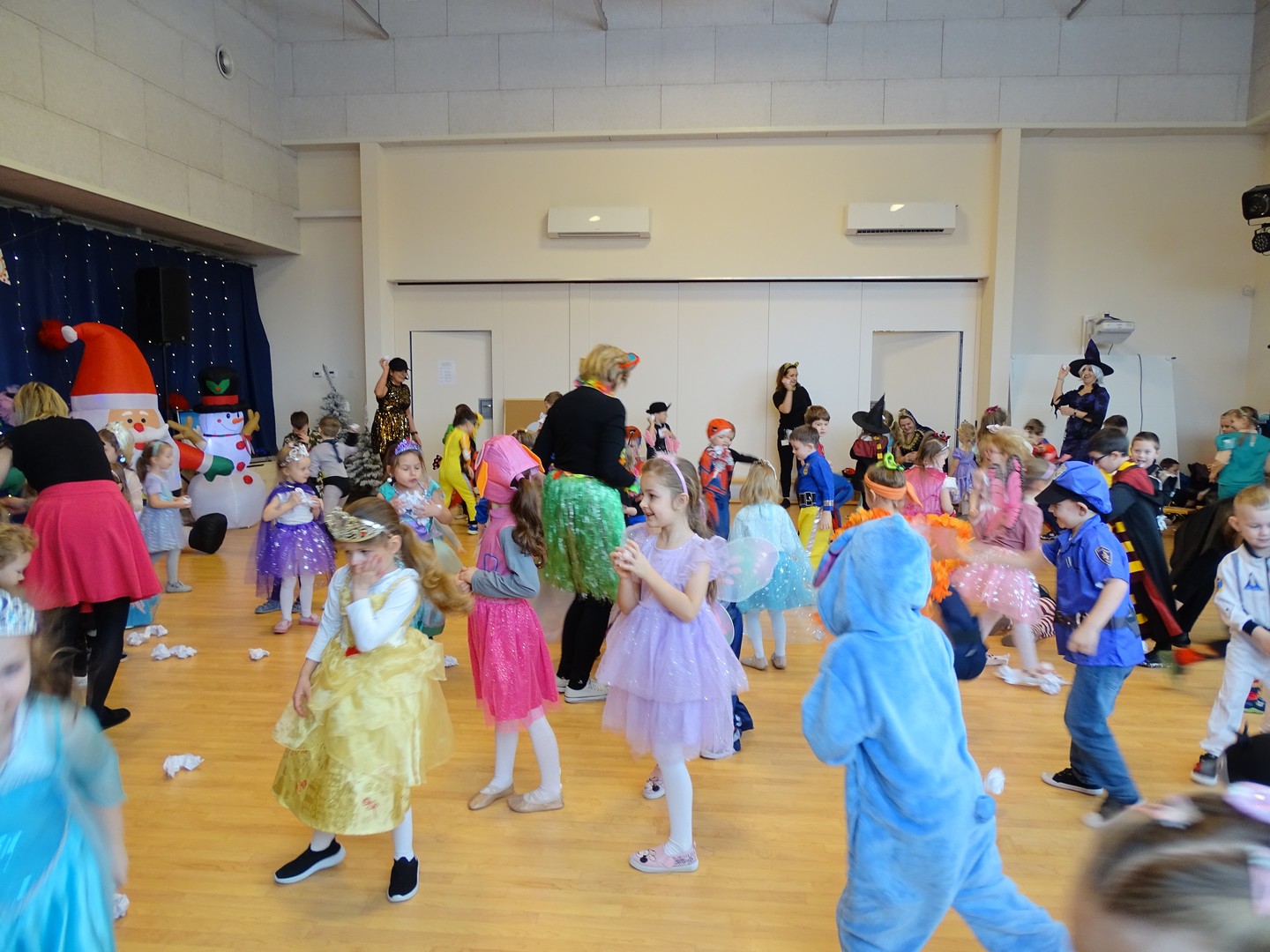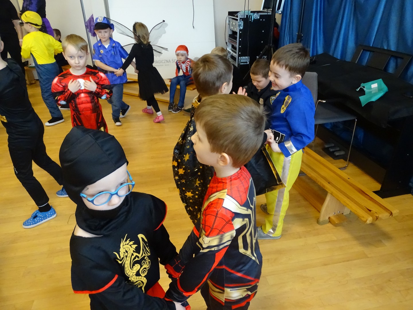 16 stycznia br. w naszym przedszkolu odbył się radosny bal karnawałowy z doświadczonym animatorem. Dzieci bawiły się przy muzyce, uczestniczyły w konkursach i tańcach, a na ich twarzach malowała się ogromna radość. Przedszkolaki przebrały się za swoje ulubione postaci z bajek, co dodało wyjątkowego uroku temu wydarzeniu. To niezapomniana chwila pełna uśmiechów i wspólnej zabawy.