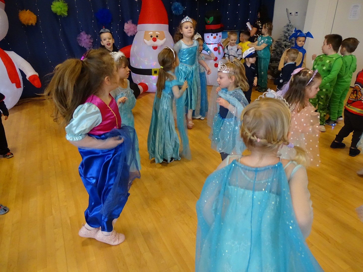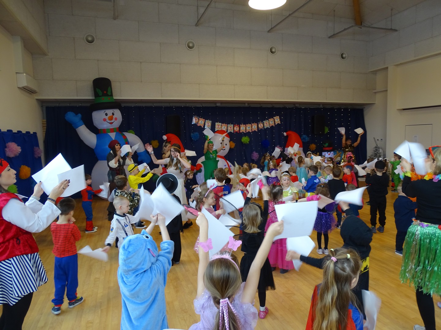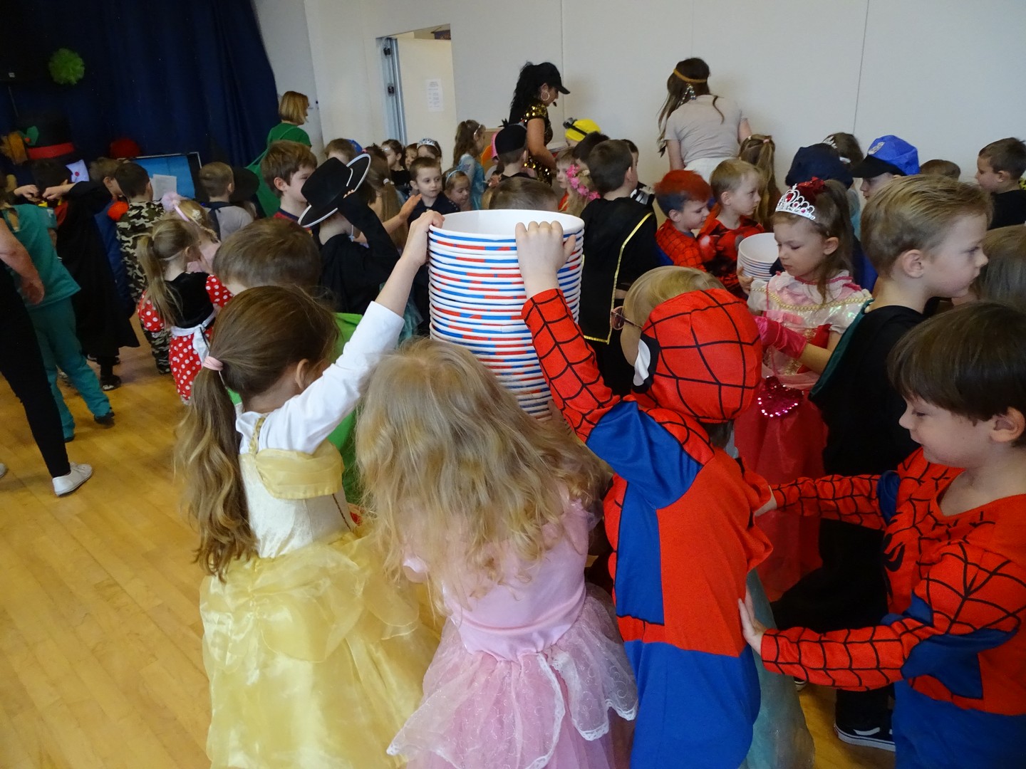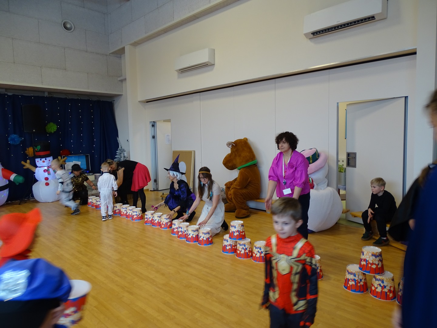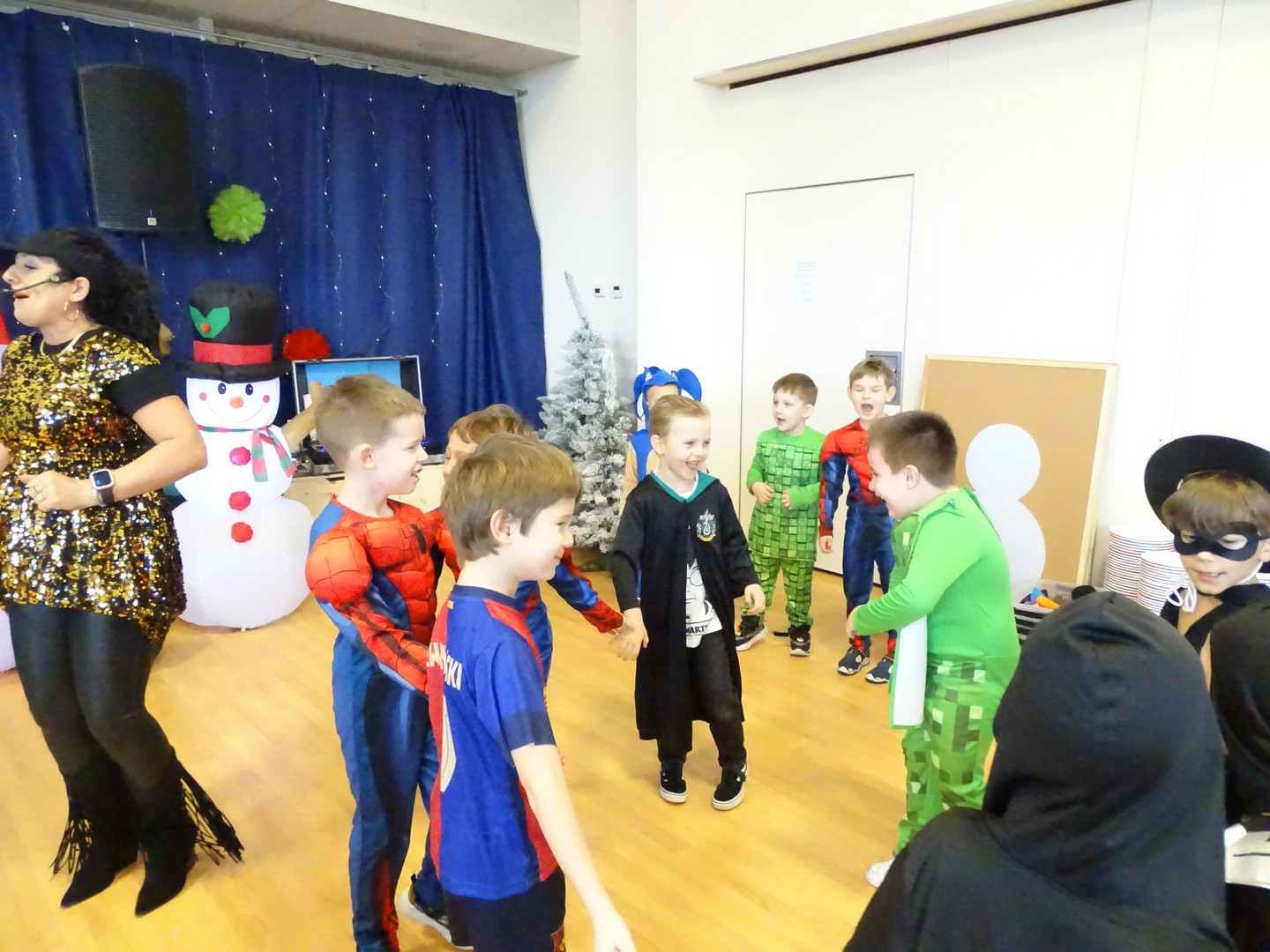 16 stycznia br. w naszym przedszkolu odbył się radosny bal karnawałowy z doświadczonym animatorem. Dzieci bawiły się przy muzyce, uczestniczyły w konkursach i tańcach, a na ich twarzach malowała się ogromna radość. Przedszkolaki przebrały się za swoje ulubione postaci z bajek, co dodało wyjątkowego uroku temu wydarzeniu. To niezapomniana chwila pełna uśmiechów i wspólnej zabawy.