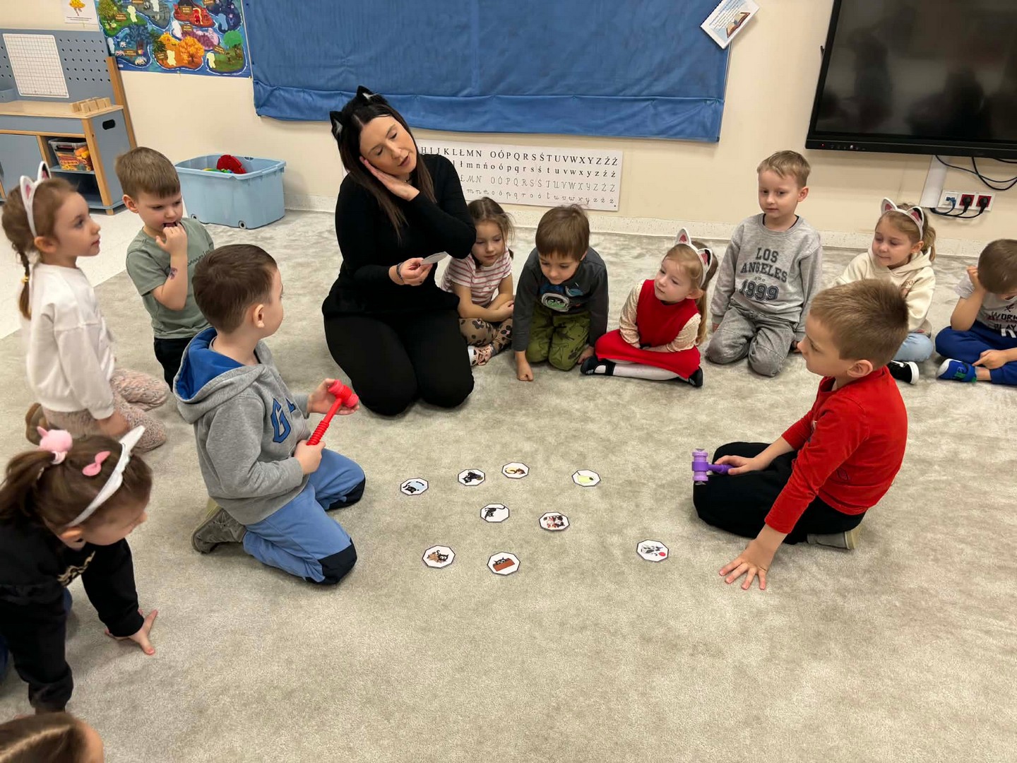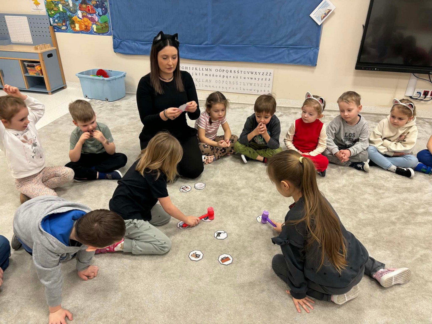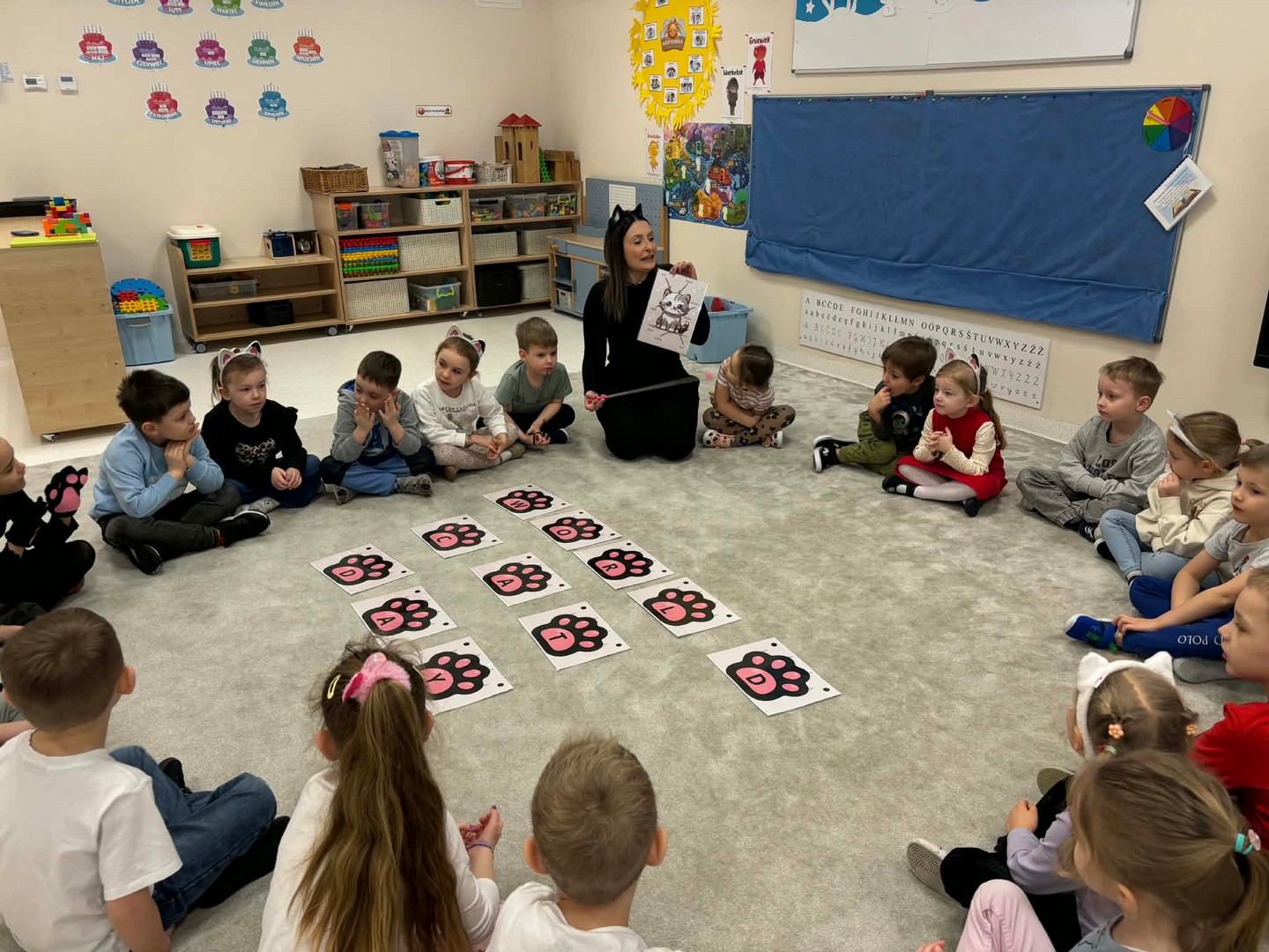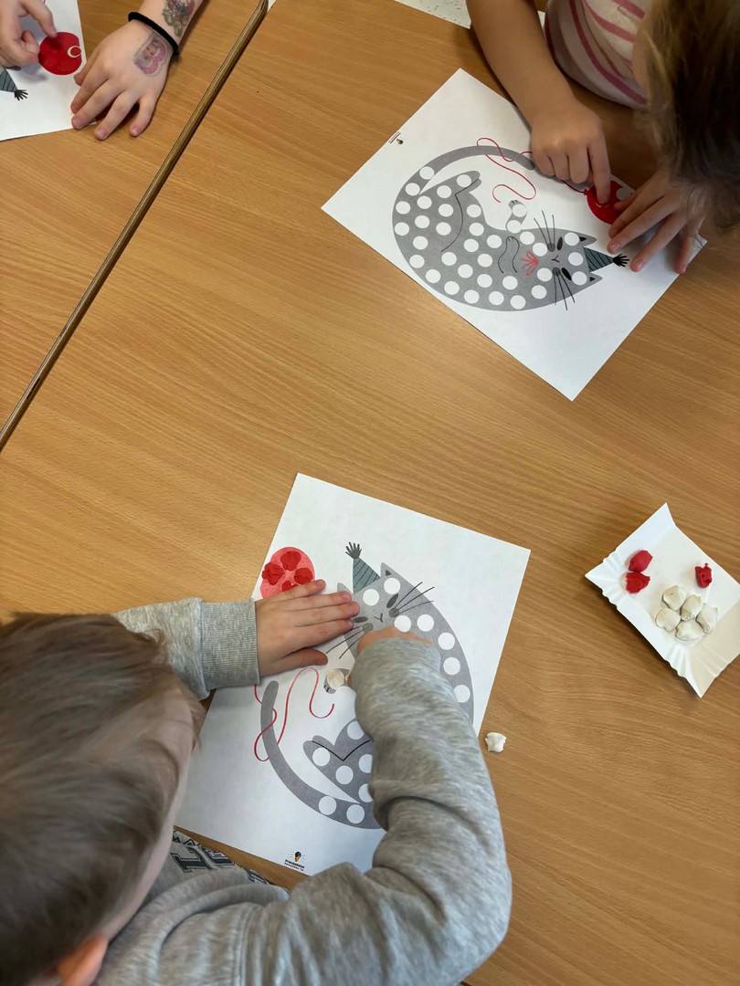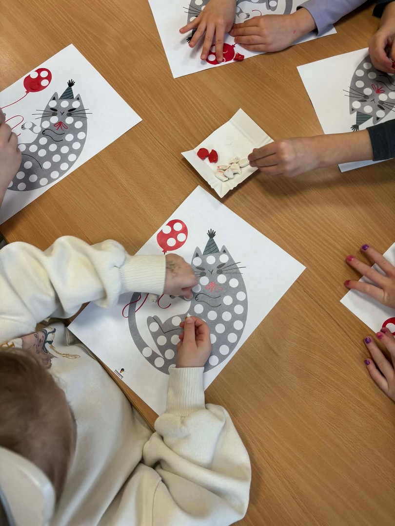 Koty często uznawane są jako symbol tajemnicy, ale tez wyrafinowanego gustu i miłości do życia. 17 lutego to właśnie ich święto. Wraz z przedszkolakami utrwaliliśmy części ciała kota, zagraliśmy w memory oraz ułożyliśmy rybki według odpowiednich kierunków. Dzieci wysłuchały również historyjki o kocie oraz dopasowały odpowiednie rymy do obrazków. Przedszkolaki wzięły udział w "rywalizacji" za pomocą gumowych młotków, rozpoznając sylwetki kotów przedstawionych przez nauczyciela. Na koniec przedszkolaki wykonały pracę plastyczną, której celem było wyklejenie kotka za pomocą plasteliny.