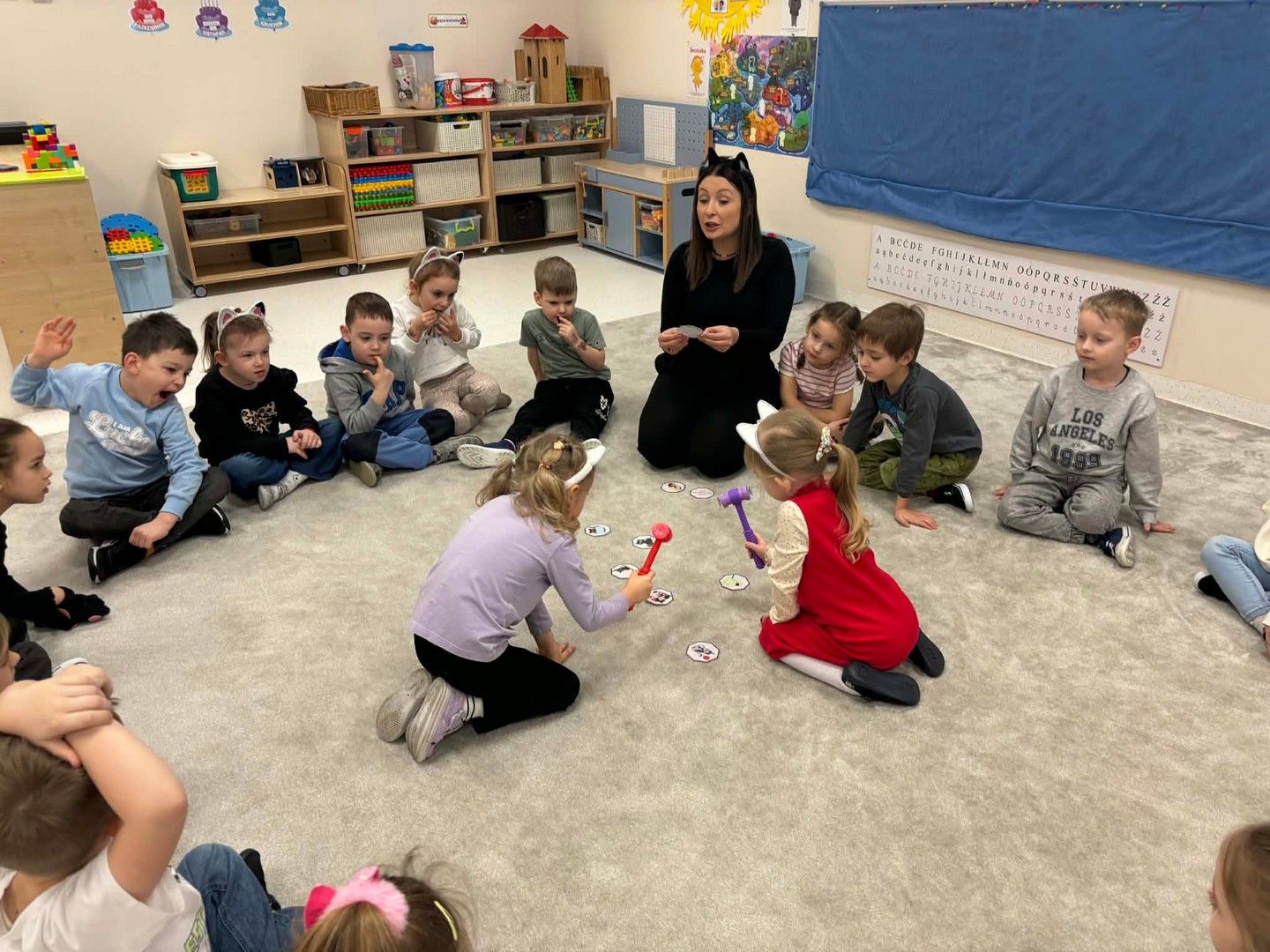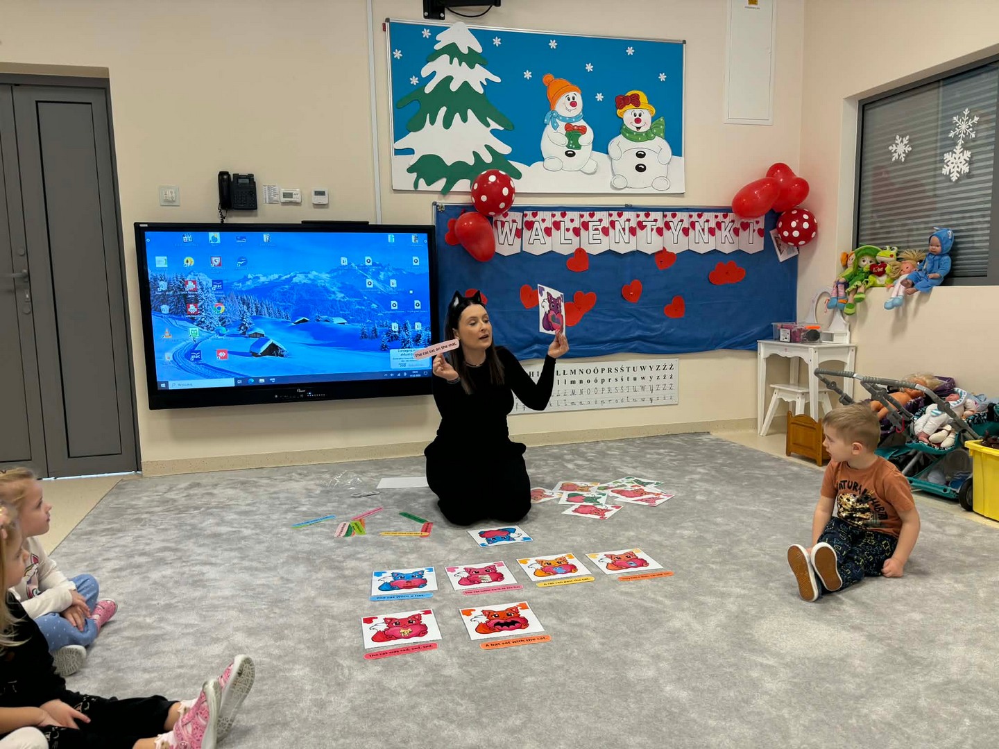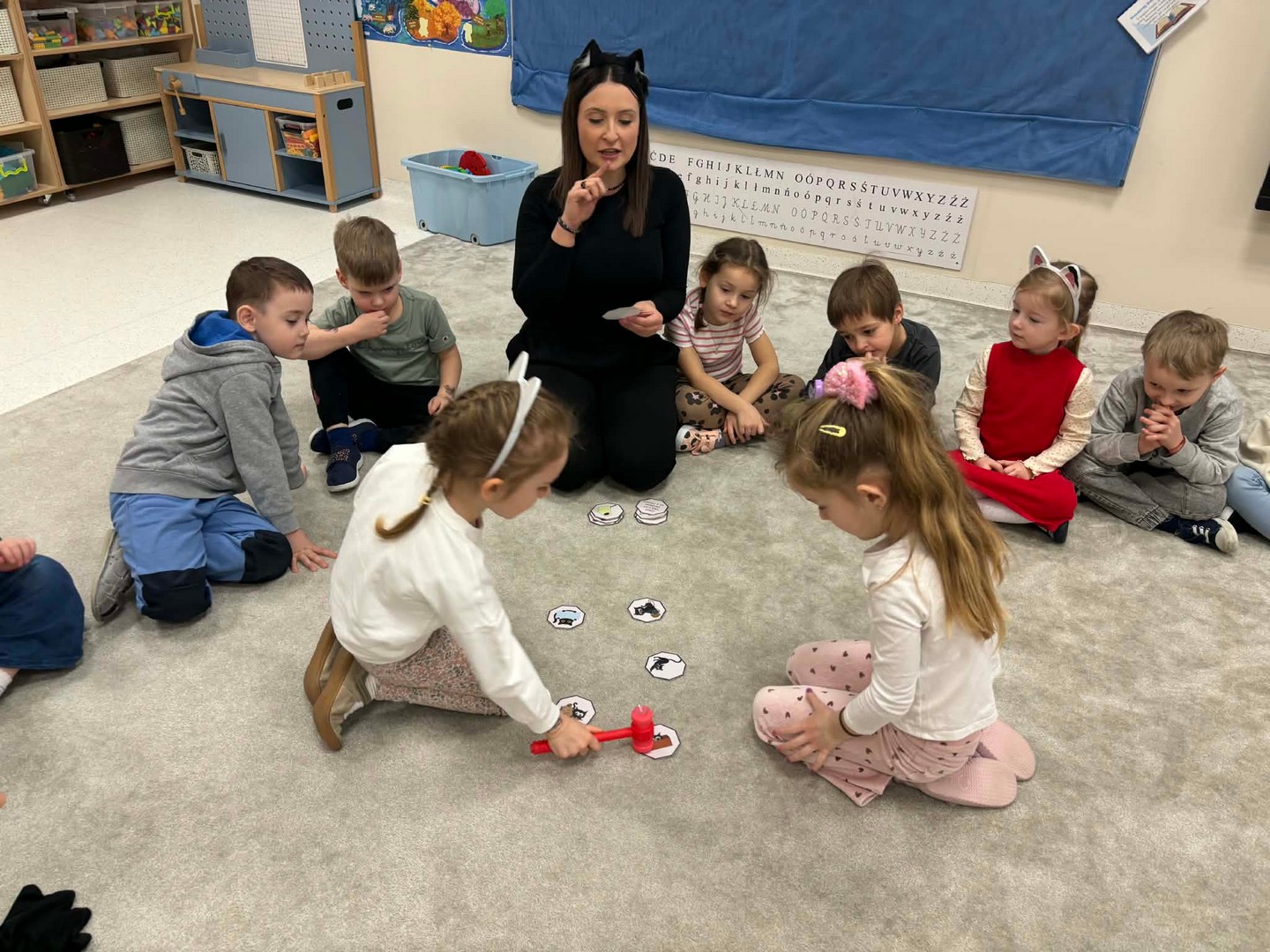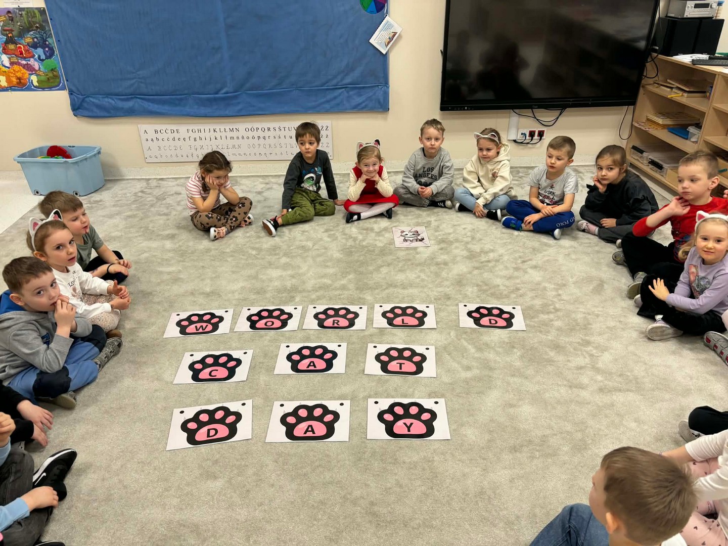 Koty często uznawane są jako symbol tajemnicy, ale tez wyrafinowanego gustu i miłości do życia. 17 lutego to właśnie ich święto. Wraz z przedszkolakami utrwaliliśmy części ciała kota, zagraliśmy w memory oraz ułożyliśmy rybki według odpowiednich kierunków. Dzieci wysłuchały również historyjki o kocie oraz dopasowały odpowiednie rymy do obrazków. Przedszkolaki wzięły udział w "rywalizacji" za pomocą gumowych młotków, rozpoznając sylwetki kotów przedstawionych przez nauczyciela. Na koniec przedszkolaki wykonały pracę plastyczną, której celem było wyklejenie kotka za pomocą plasteliny.