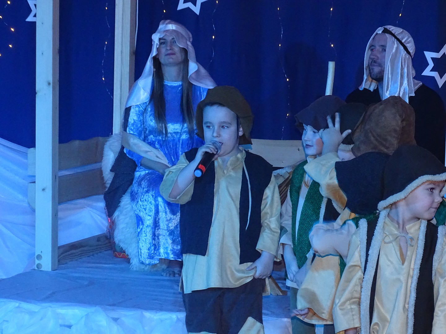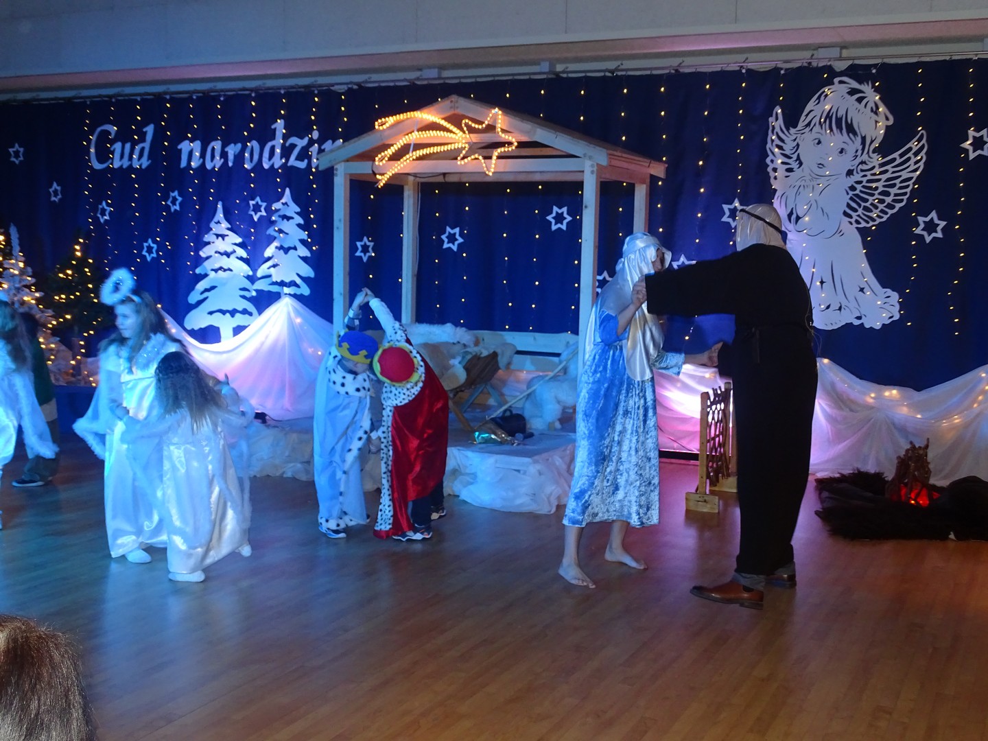 W szopce w niezwykle piękny sposób zilustrowano moment, w którym Józef opiekował się Maryją, a całość przedstawienia została wzbogacona muzyką na żywo, w tym pianinem i śpiewem Maryi, co nadało scenom jeszcze więcej magii i świątecznego ciepła. Nie zabrakło kojącej „Lulajże, Jezuniu”, która poruszyła serca wszystkich widzów.
