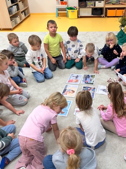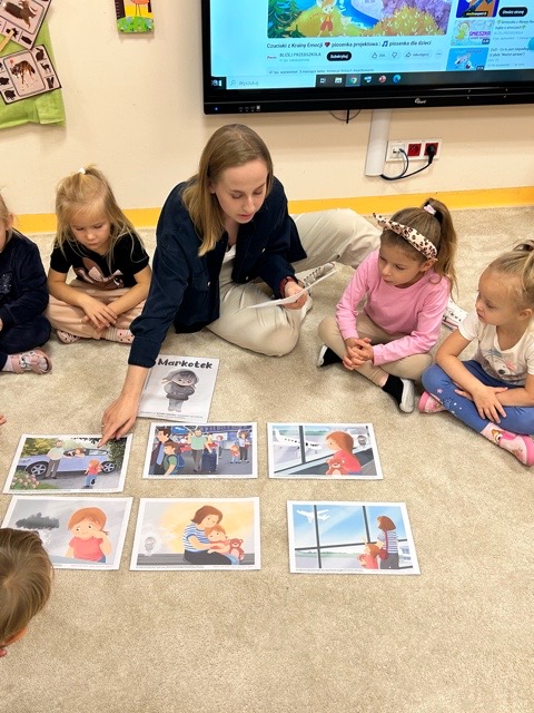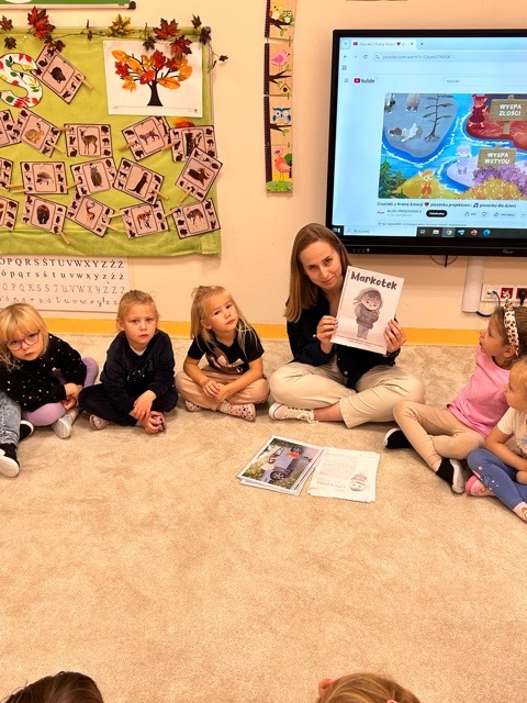 Podczas dzisiejszych zajęć dzieci poznały kolejną postać, tym razem był to Markotek mieszkający na wyspie smutku. Dzieci wysłuchały opowiadania o Matyldzie, która odczuwała smutek z powodu rozstania z ukochanym dziadkiem. Dzieci dowiedziały się, że smutek to emocja która pojawia się w odpowiedzi na przykre doświadczenia i że każdy z nas może odczuwać smutek zupełnie inaczej. Na koniec zajęć dzieci wkleiły postać Markotka do zeszytu tuż obok Śmieszki.