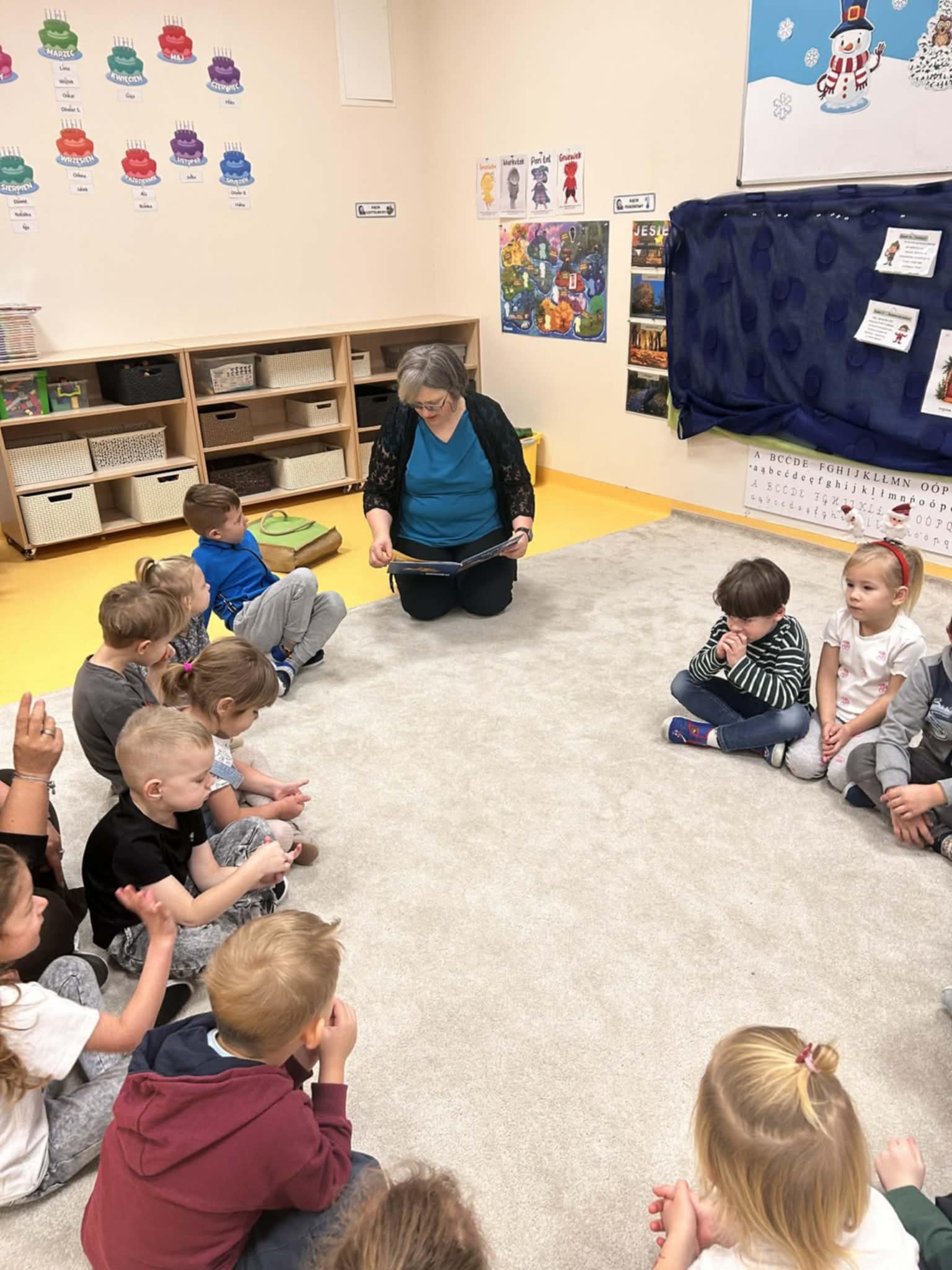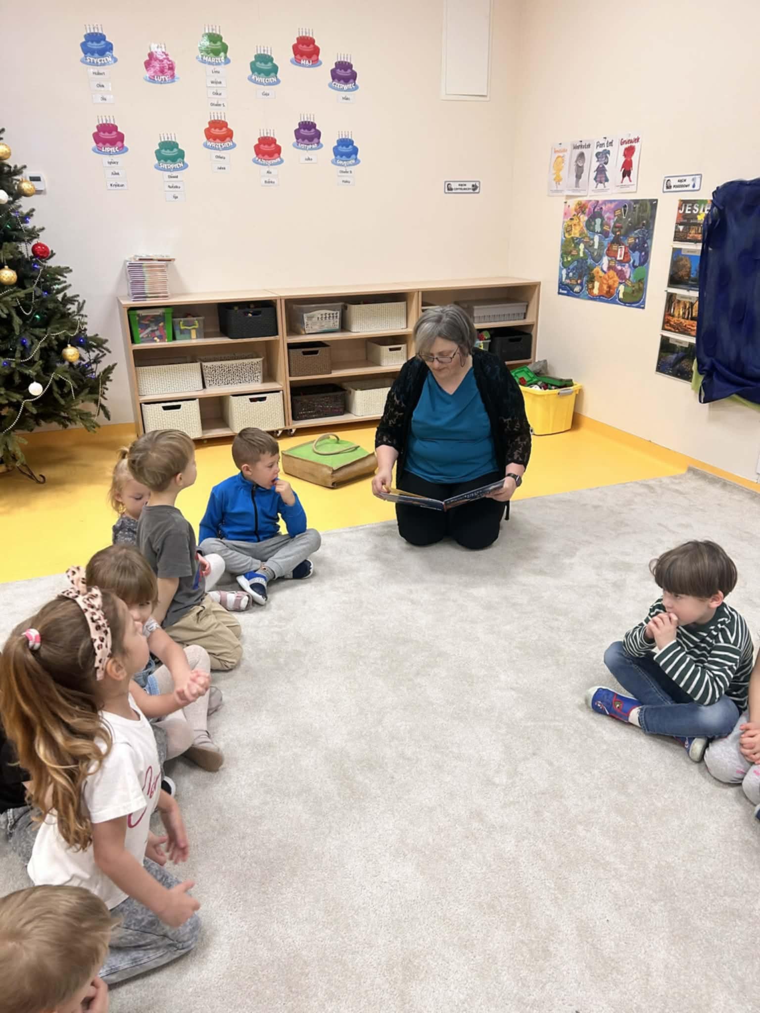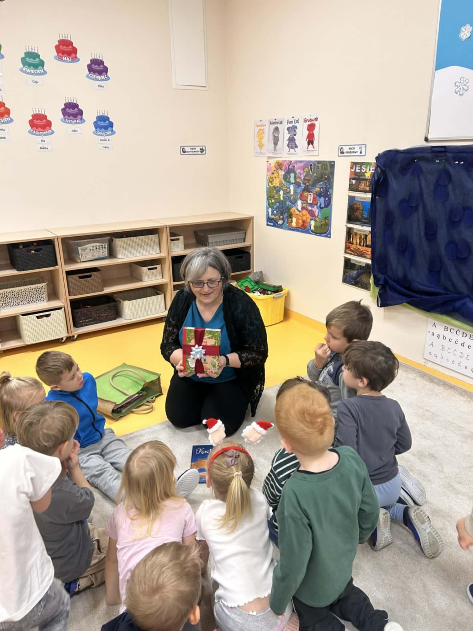 8 grudnia br. dzieci spotkały się z Panią Wiolą z biblioteki w Kleszczowie, w ramach cyklicznych spotkań Dyskusyjnego Klubu Książki. Pani Wiola przeczytała dzieciom interesujące opowiadanie, a następnie uczestniczyły one w żywej rozmowie na temat przeczytanej książki. Na zakończenie spotkania Pani Wiola wręczyła dzieciom świąteczny upominek, którą dzieci chętnie przyjęły.Serdecznie dziękujemy.