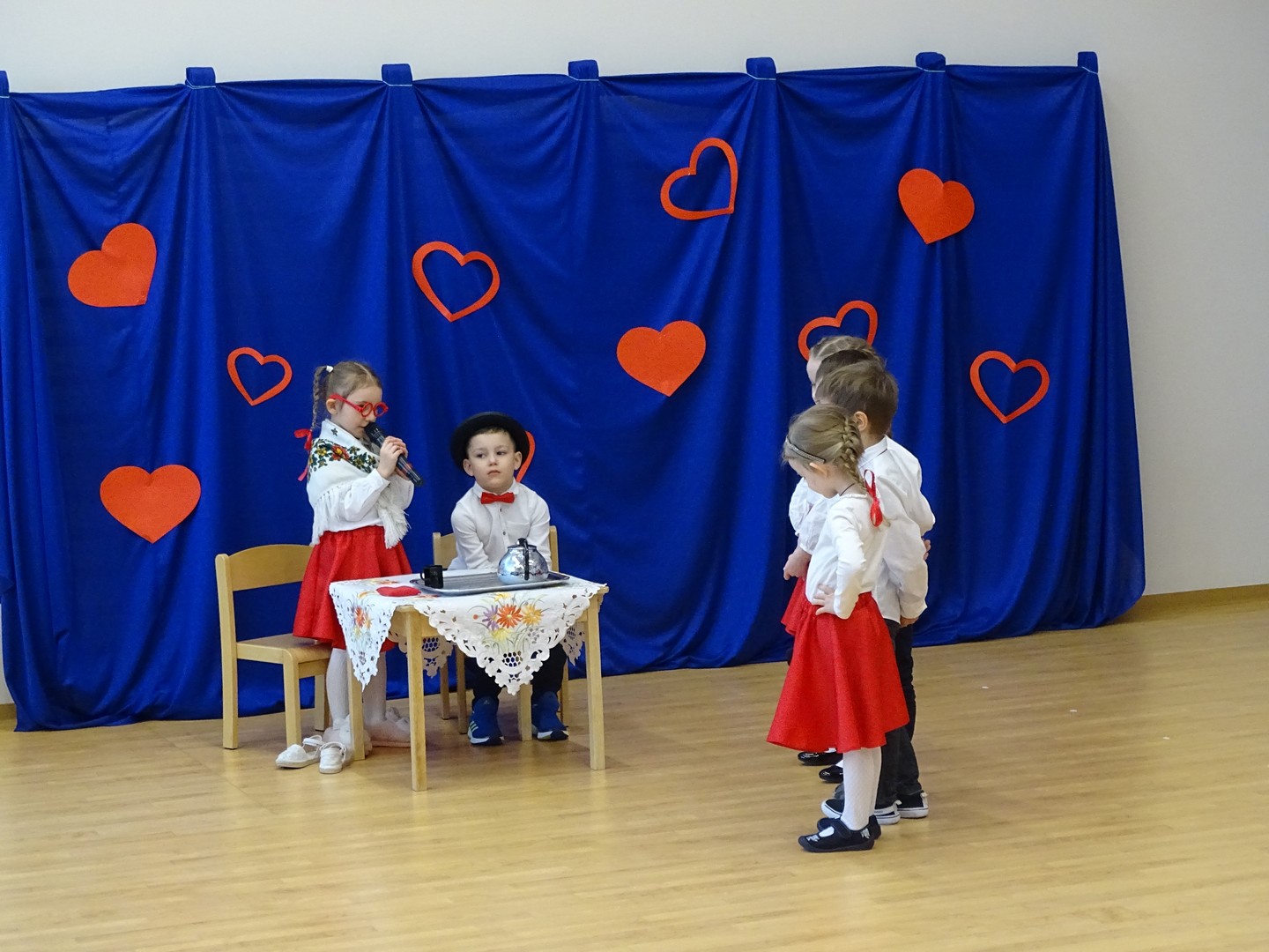 Dzień 30.01.2026 r. był dla naszej grupy dniem wyjątkowym. Zaszczycili nas swą obecnością bowiem wyjątkowi goście - Babcia i Dziadek. Podejmowaliśmy dzielnie trud przygotowań po to, aby jak najpiękniej zaprezentować się dla Nich na przedszkolnej scenie z okazji uroczystych obchodów Święta Babci i Dziadka. Przedstawiona inscenizacja "Herbatka u Babci i Dziadka", śpiew piosenek, tańce, stworzenie orkiestry, były wyrazem dziecięcej miłości i wdzięczności wobec Najbliższych. Wspólne zabawy przy muzyce i wzajemna integracja to dopełnienie radosnej atmosfery spotkania oraz wspaniały pretekst do wzmacniania więzi, tworzenia relacji i budowania pięknych wspomnień, które pozostaną z nami na długi czas.