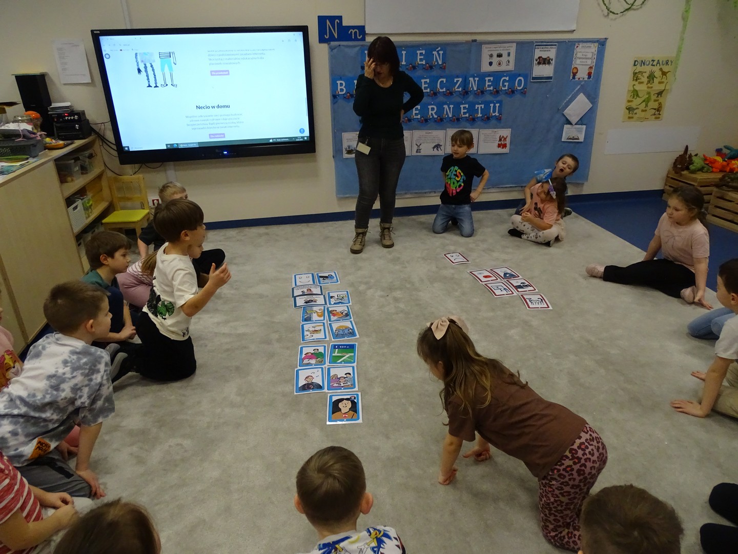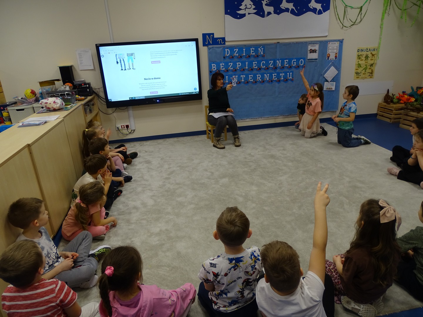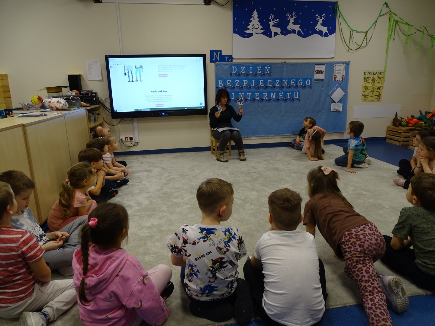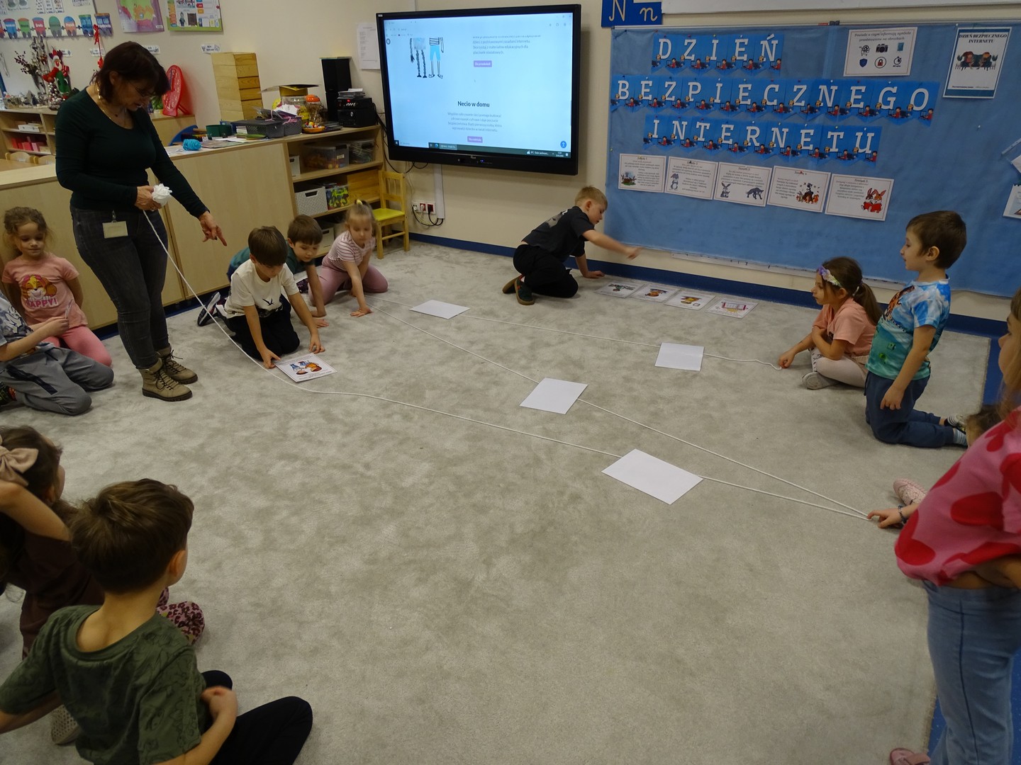 We wtorek 24 lutego obchodziliśmy w naszej grupie Dzień Bezpiecznego Internetu, aby już od najmłodszych lat uczyć dzieci, jak korzystać z technologii w sposób bezpieczny i odpowiedzialny. Podczas zajęć dzieci poznawały podstawowe zasady bezpiecznego korzystania z Internetu – dowiedziały się m.in, że nie wszystkie informacje w sieci są prawdziwe, jak chronić swoje dane oraz jak unikać kontaktu z nieznajomymi online, a także wskazywały korzyści i zagrożenie jakie wynikają z korzystania z Internetu. Tworzyły „sieć internetową” z włóczki, poznając w zabawowy sposób, jak różne elementy są ze sobą połączone. Brały udział w quizie, dzięki któremu utrwaliły podstawowe zasady bezpieczeństwa w sieci. Cały dzień był pełen nauki połączonej z zabawą – Sówki uczyły się, jak mądrze i bezpiecznie korzystać z nowych technologii, a przy tym świetnie się bawiły. Wesołe zabawy przypomniały wszystkim, że bezpieczeństwo w sieci jest bardzo ważne, nawet dla najmłodszych.