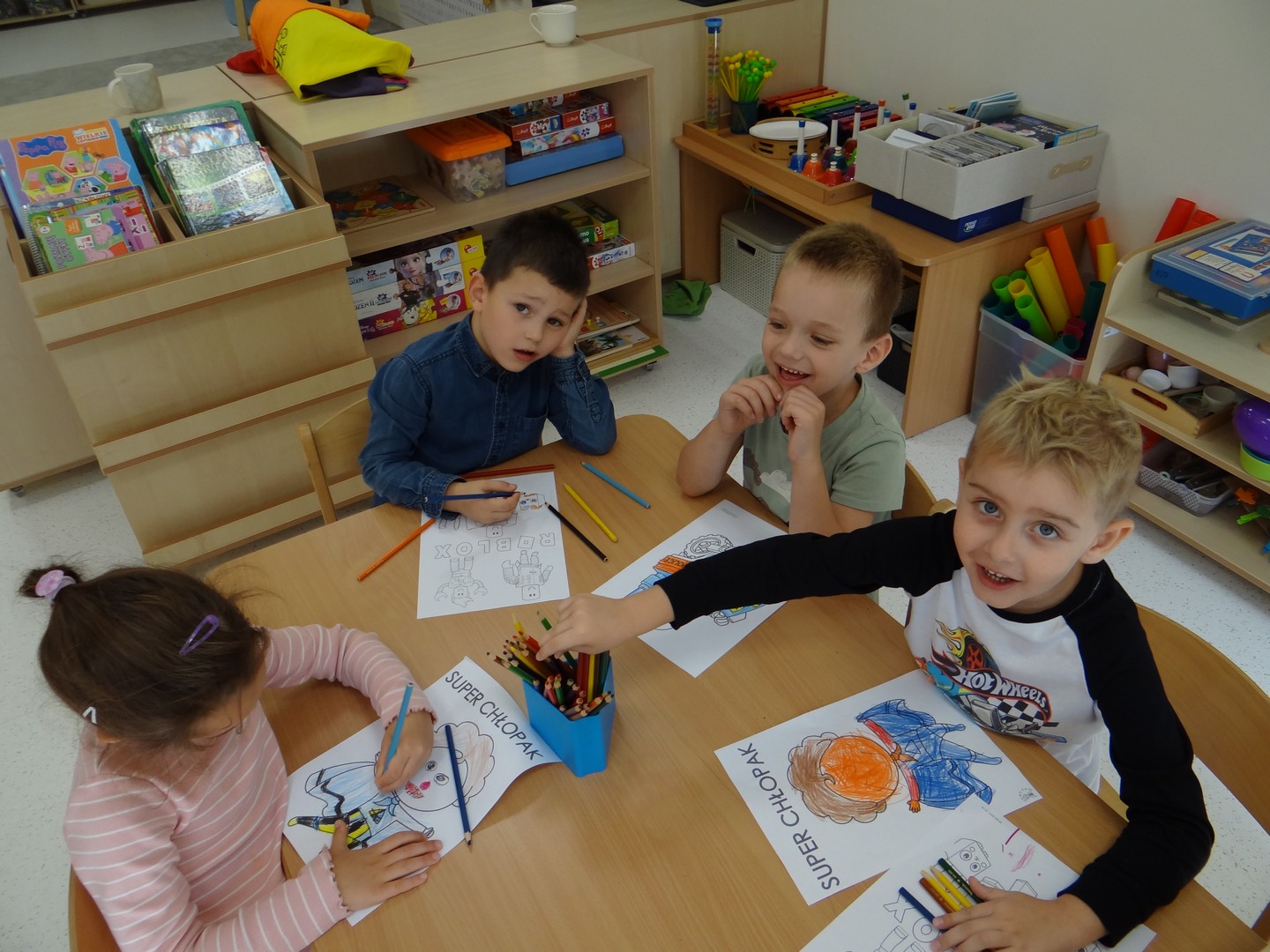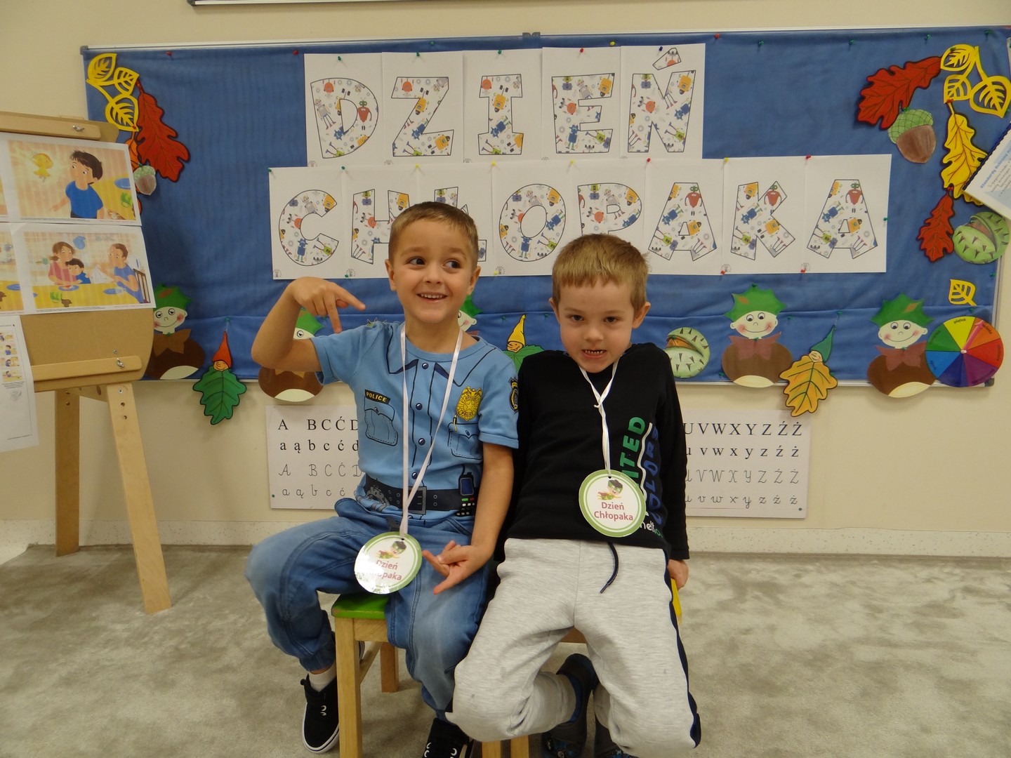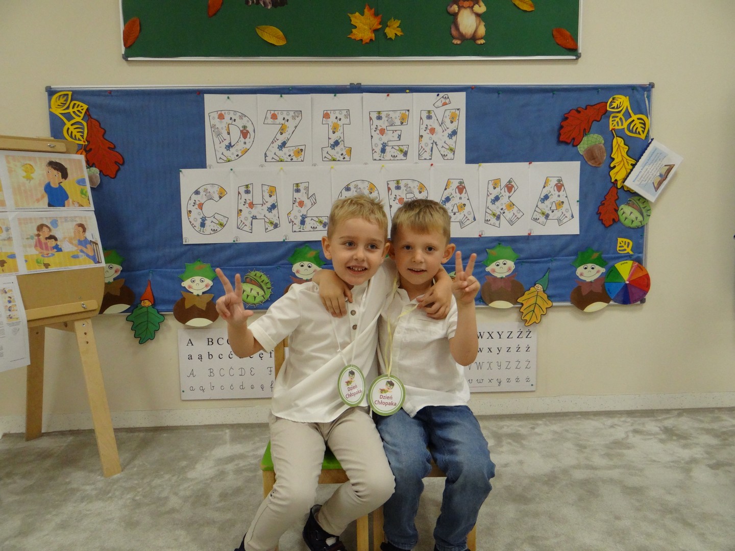 Od najmłodszych lat uczymy dzieci, aby pamiętały o ważnych uroczystościach w życiu rodziny czy życiu przedszkola. Równie ważny jest więc Dzień Chłopaka, który obchodzimy 30 września. Dziewczynki w grupie Słoneczek od rana składały chłopcom najlepsze życzenia, witając ich gromkim "Sto lat". Chłopcy dostojnie prezentowali się w koszulach i medalach. Przedszkolaki tańczyły przy wesołej muzyce, chłopcy bawili się z chustą animacyjną ("Pory roku", "Jesienne warzywo/owoc", "Rybak i rybki"), a także z lubianymi "gorącymi krzesłami", by poczuli się tego dnia wyjątkowo. Bohaterowie dnia kolorowali wybrane kolorowanki z serii Lego City, a dziewczynki wykonały dla Nich portrety Super Chłopaka i wręczyły je kolegom. Zwieńczeniem dnia było wręczenie upominków zakupionych przez Radę Rodziców oraz degustacja pysznego sernika, upieczonego przez mamę Stasia, za co serdecznie dziękujemy. Wszystkim Chłopcom składamy serdeczne życzenia.