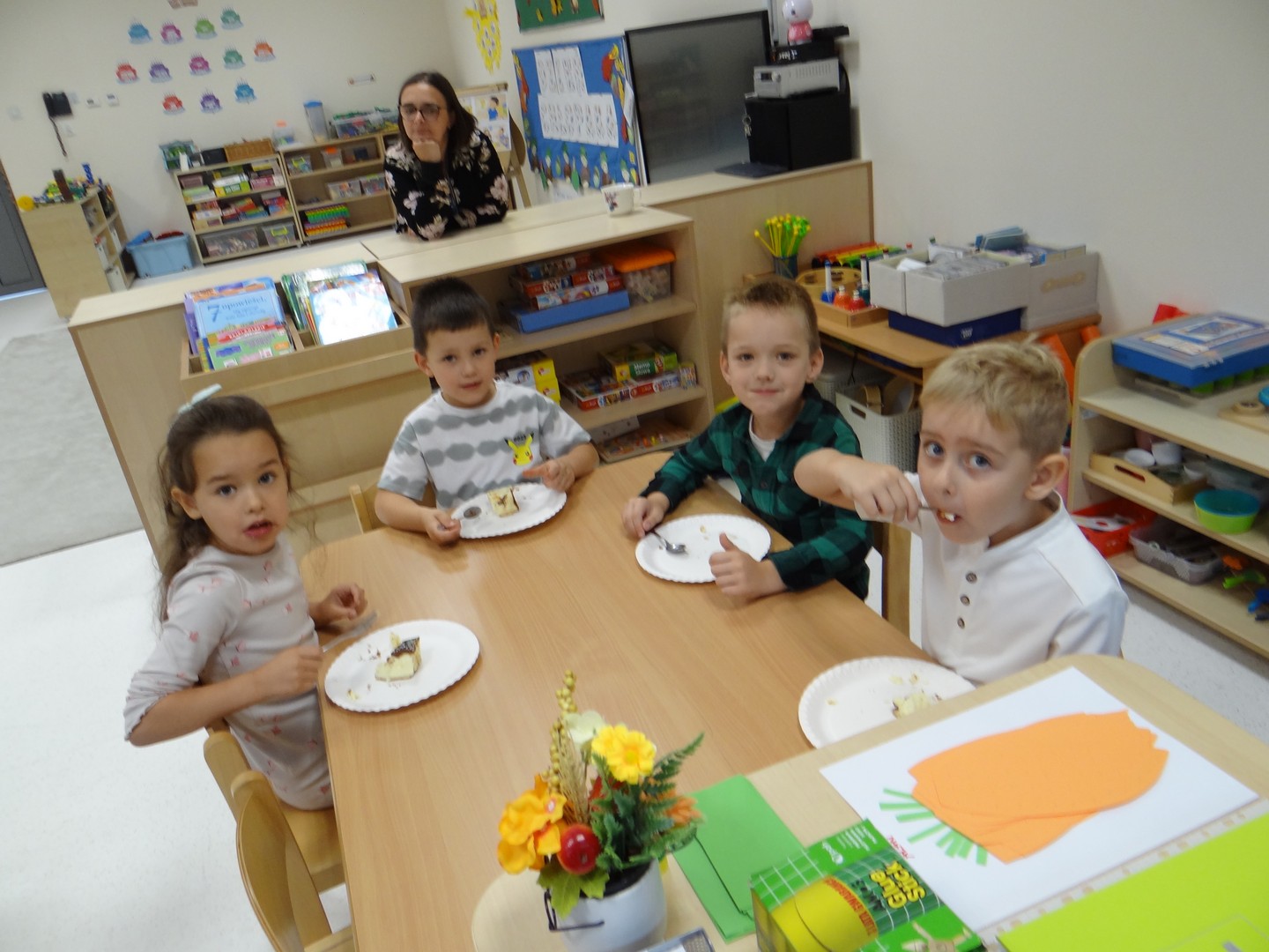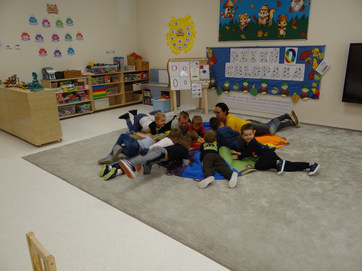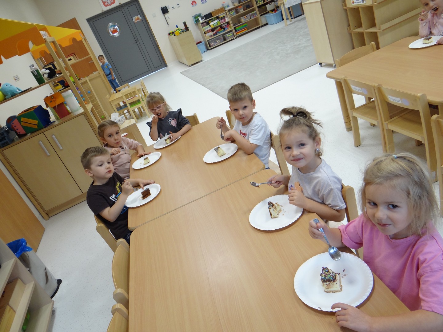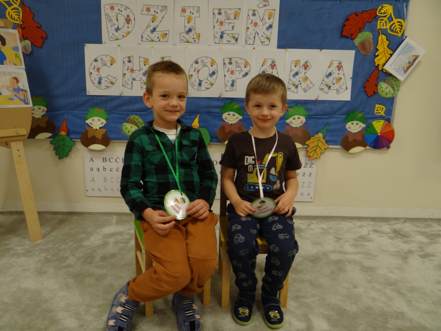 Od najmłodszych lat uczymy dzieci, aby pamiętały o ważnych uroczystościach w życiu rodziny czy życiu przedszkola. Równie ważny jest więc Dzień Chłopaka, który obchodzimy 30 września. Dziewczynki w grupie Słoneczek od rana składały chłopcom najlepsze życzenia, witając ich gromkim "Sto lat". Chłopcy dostojnie prezentowali się w koszulach i medalach. Przedszkolaki tańczyły przy wesołej muzyce, chłopcy bawili się z chustą animacyjną ("Pory roku", "Jesienne warzywo/owoc", "Rybak i rybki"), a także z lubianymi "gorącymi krzesłami", by poczuli się tego dnia wyjątkowo. Bohaterowie dnia kolorowali wybrane kolorowanki z serii Lego City, a dziewczynki wykonały dla Nich portrety Super Chłopaka i wręczyły je kolegom. Zwieńczeniem dnia było wręczenie upominków zakupionych przez Radę Rodziców oraz degustacja pysznego sernika, upieczonego przez mamę Stasia, za co serdecznie dziękujemy. Wszystkim Chłopcom składamy serdeczne życzenia.