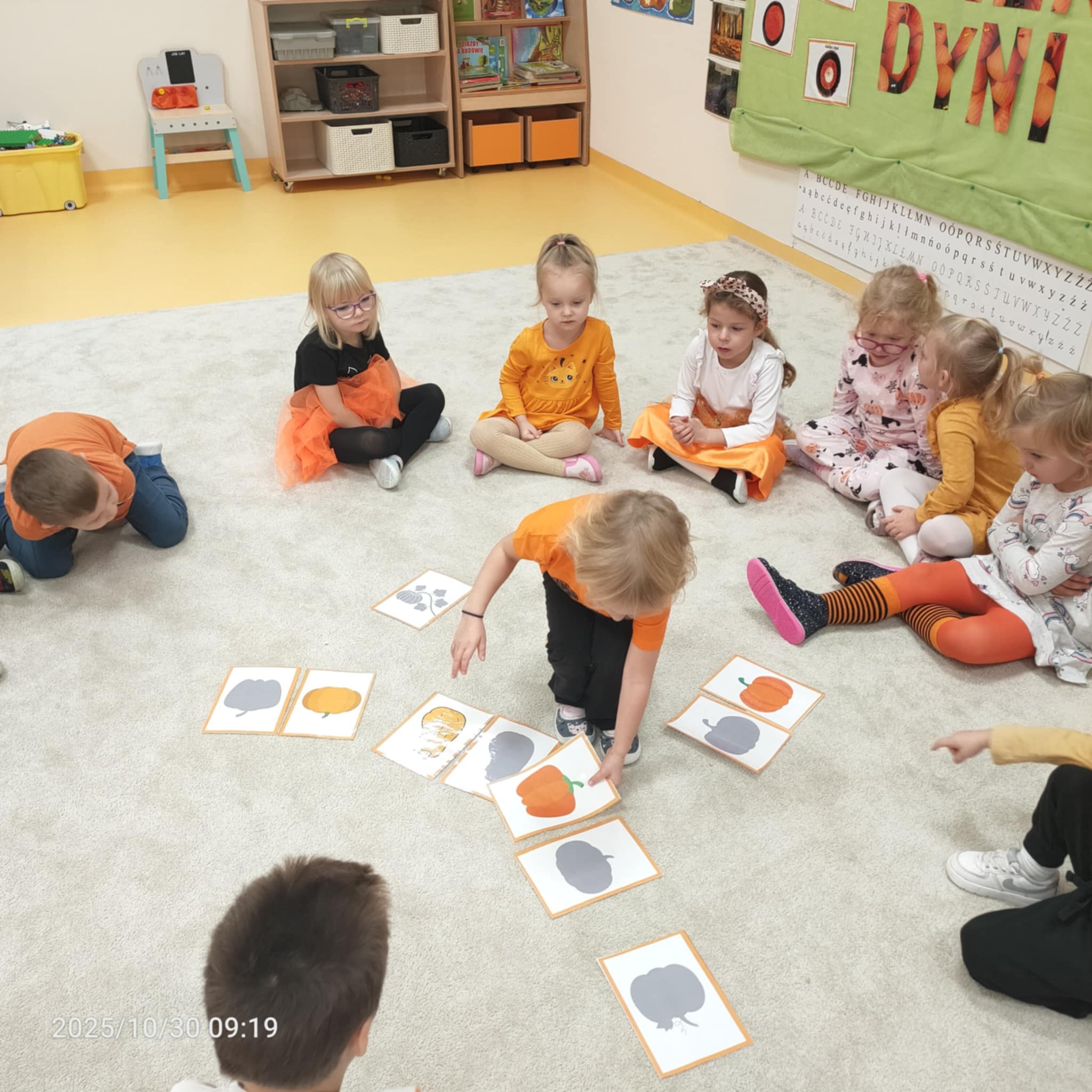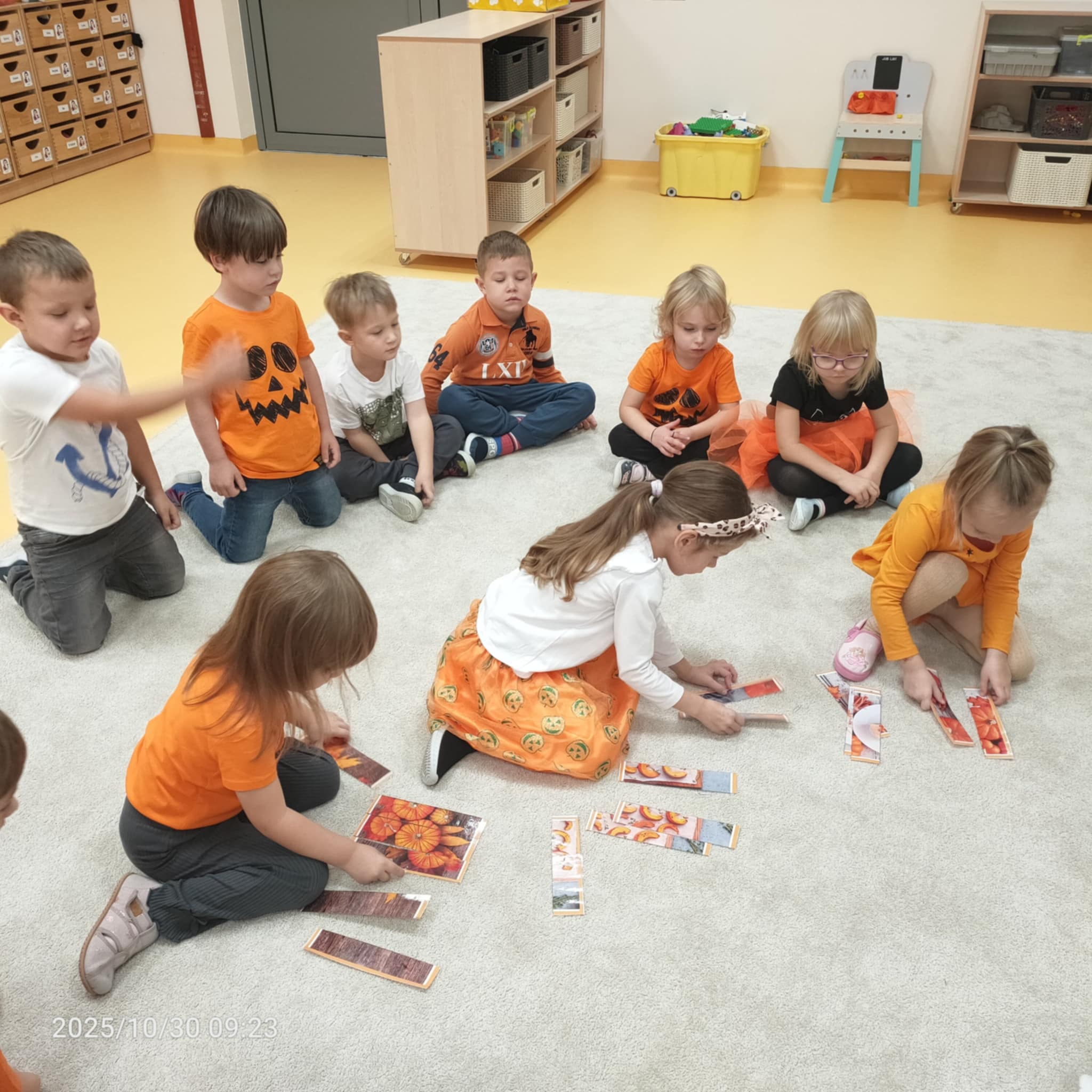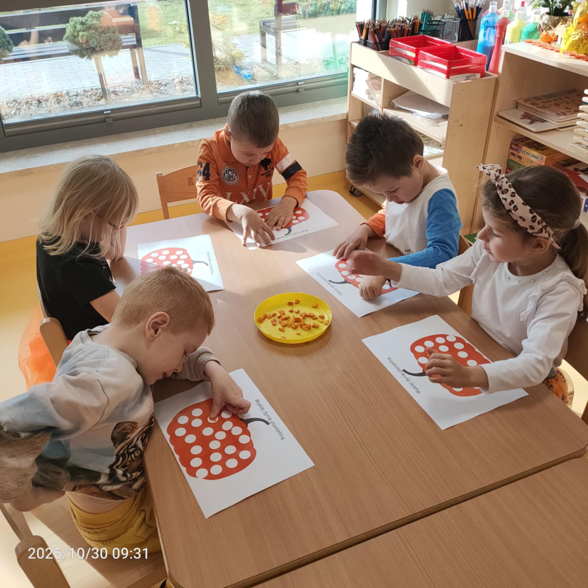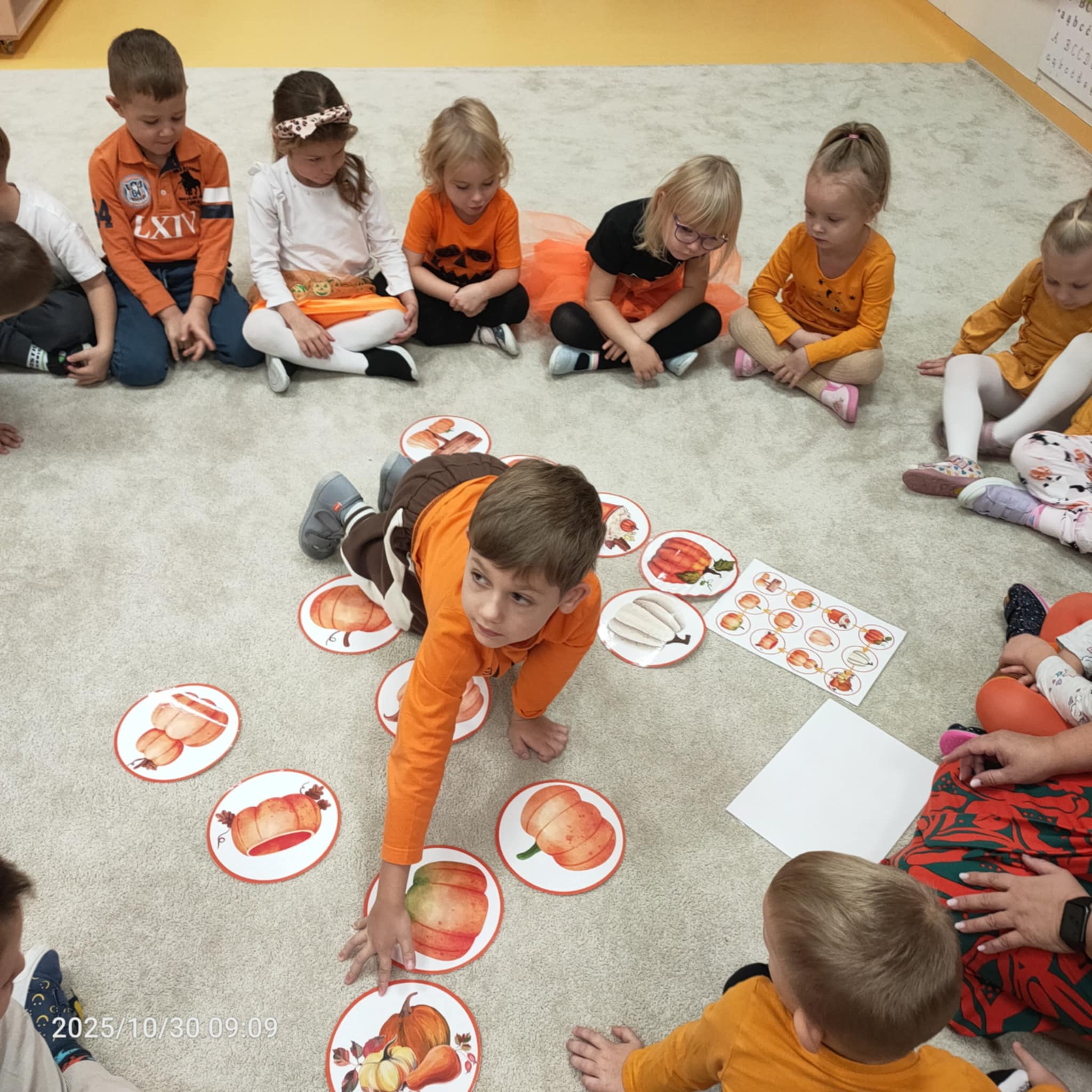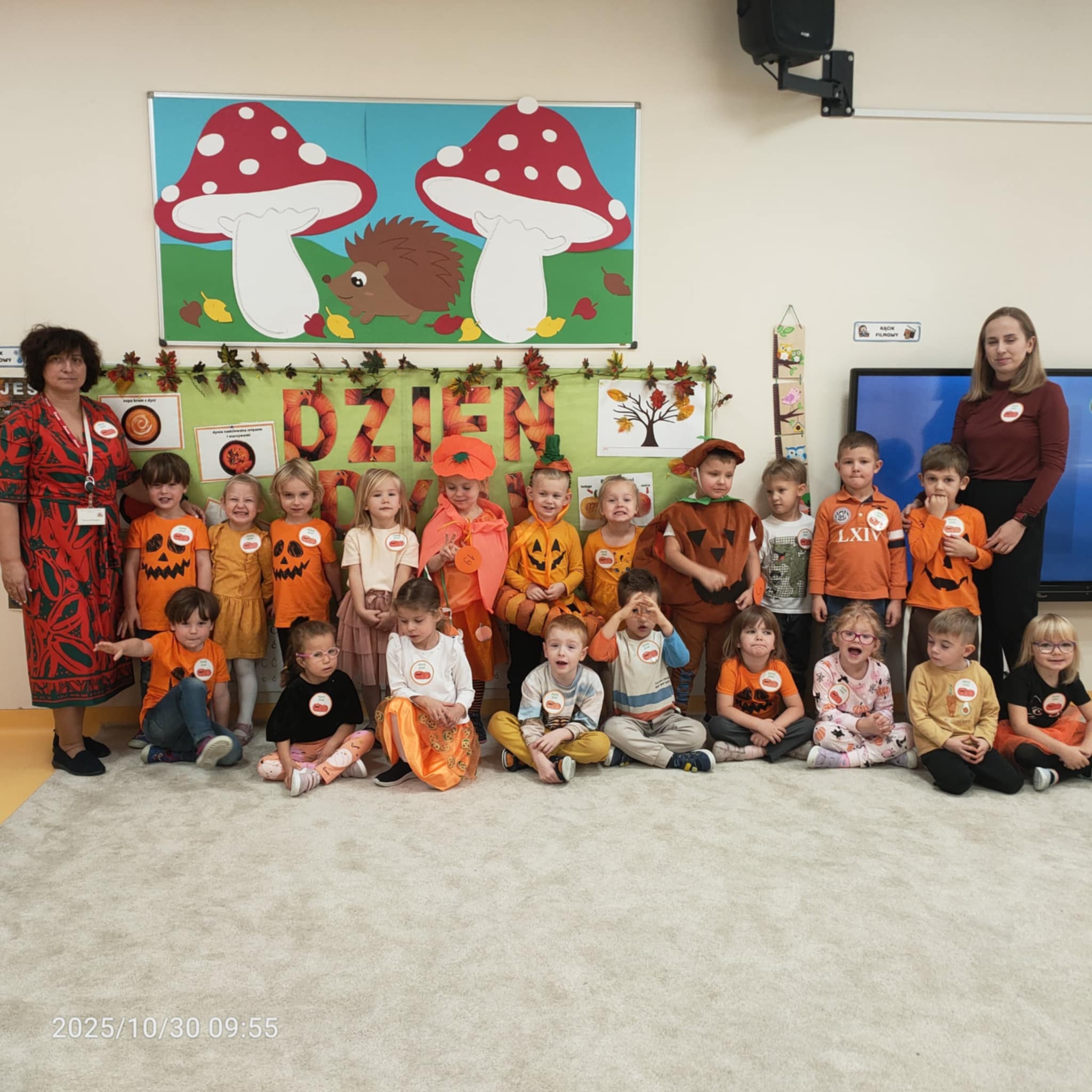 Dnia 30 października 2025 roku w grupie Jeżyki obchodziliśmy wyjątkowy Dzień Dyni. Tego dnia dzieci miały okazję poznać różne kształty dyni oraz zgłębić jej budowę. Dowiedziały się również, jakie pyszne potrawy można przygotować z dyni, co rozbudziło ich ciekawość kulinarnej strony tego warzywa.