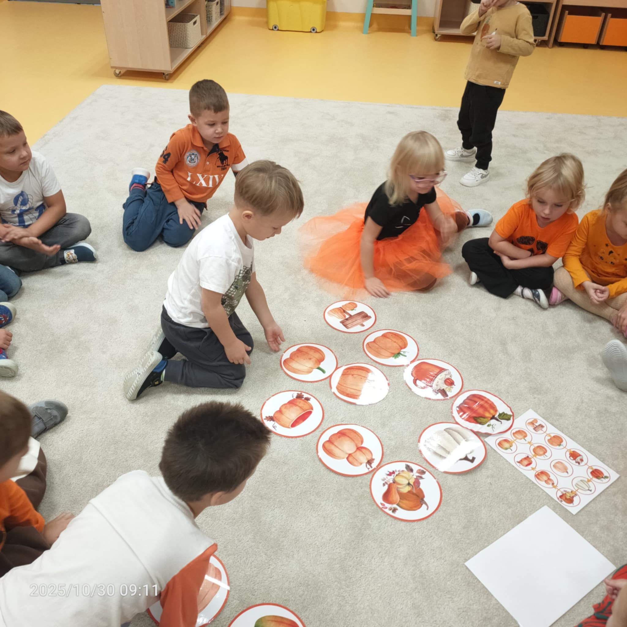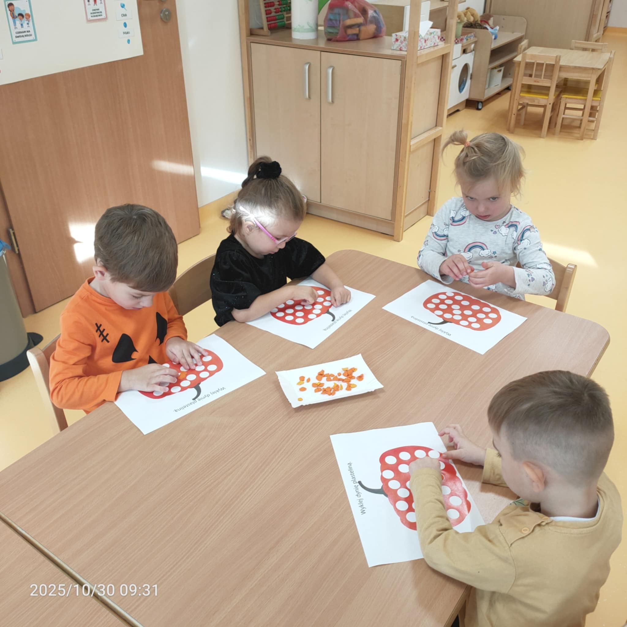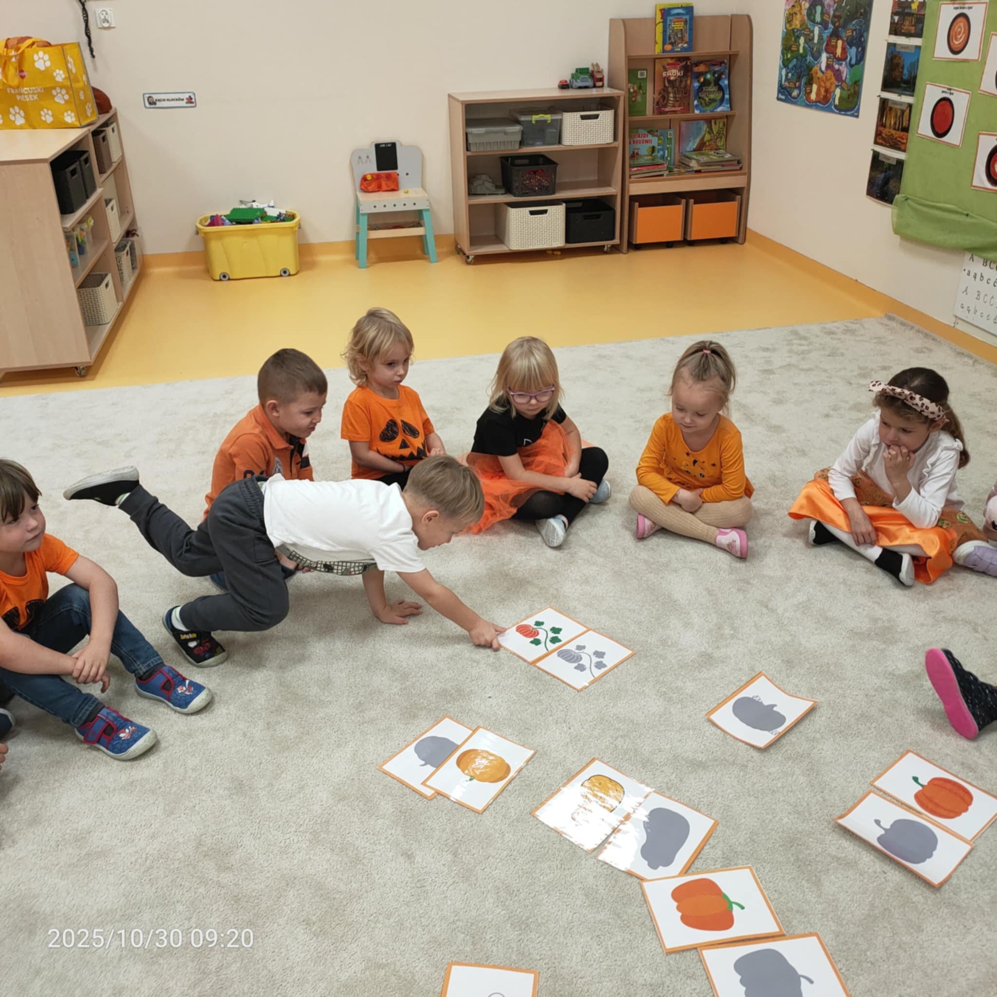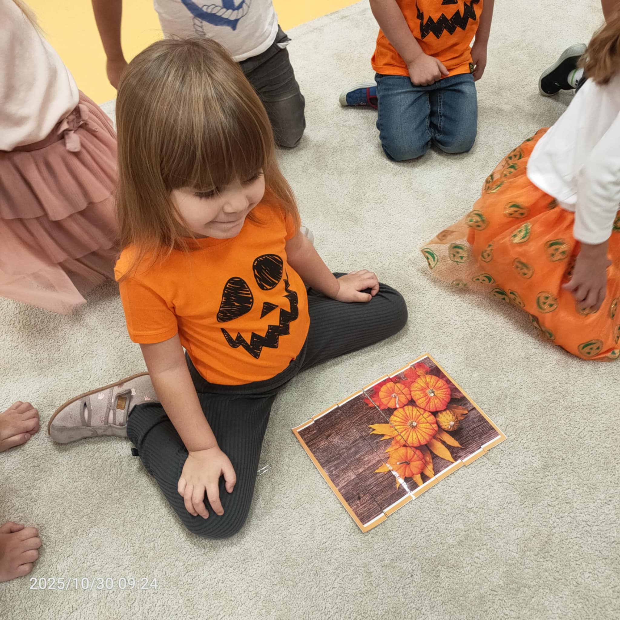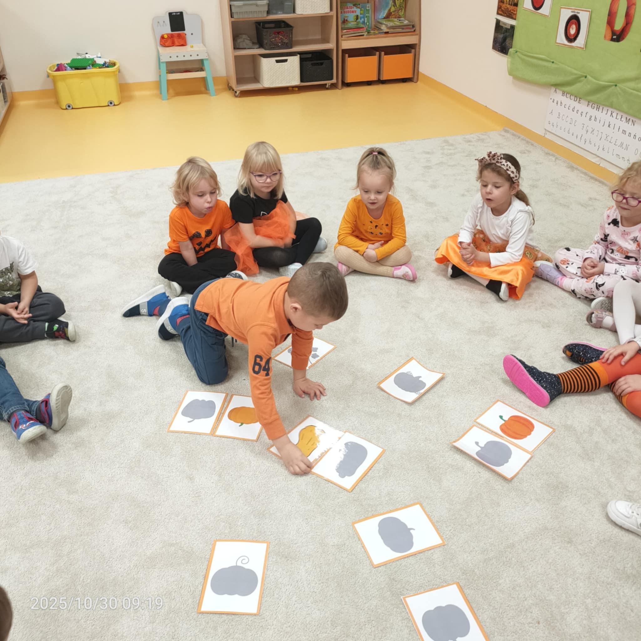 Dnia 30 października 2025 roku w grupie Jeżyki obchodziliśmy wyjątkowy Dzień Dyni. Tego dnia dzieci miały okazję poznać różne kształty dyni oraz zgłębić jej budowę. Dowiedziały się również, jakie pyszne potrawy można przygotować z dyni, co rozbudziło ich ciekawość kulinarnej strony tego warzywa.