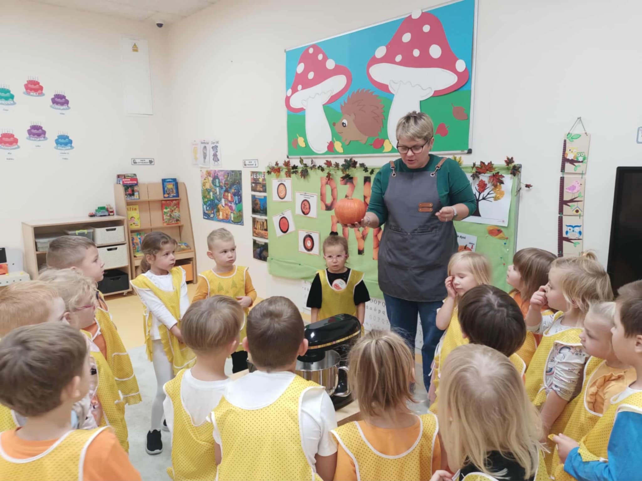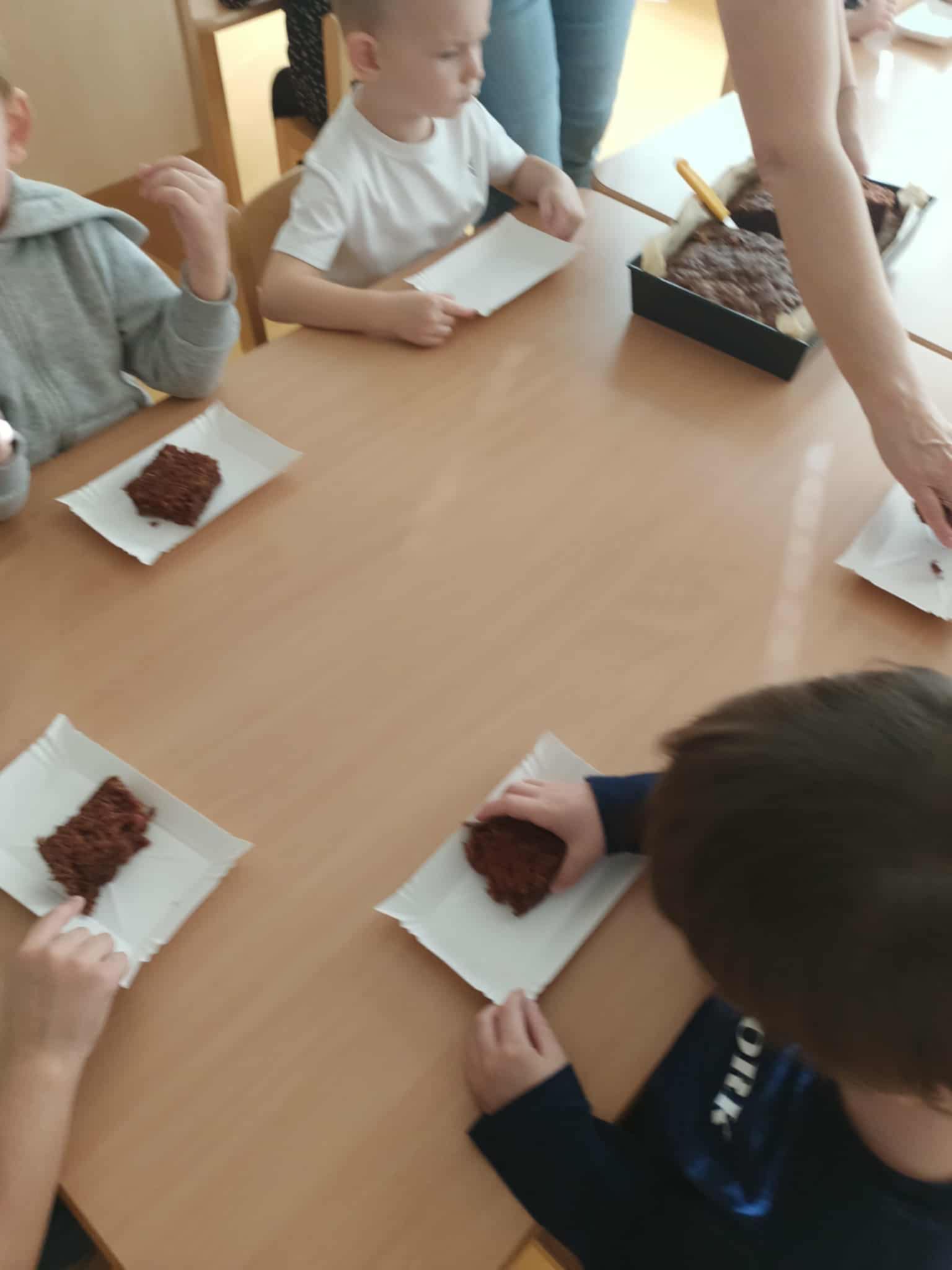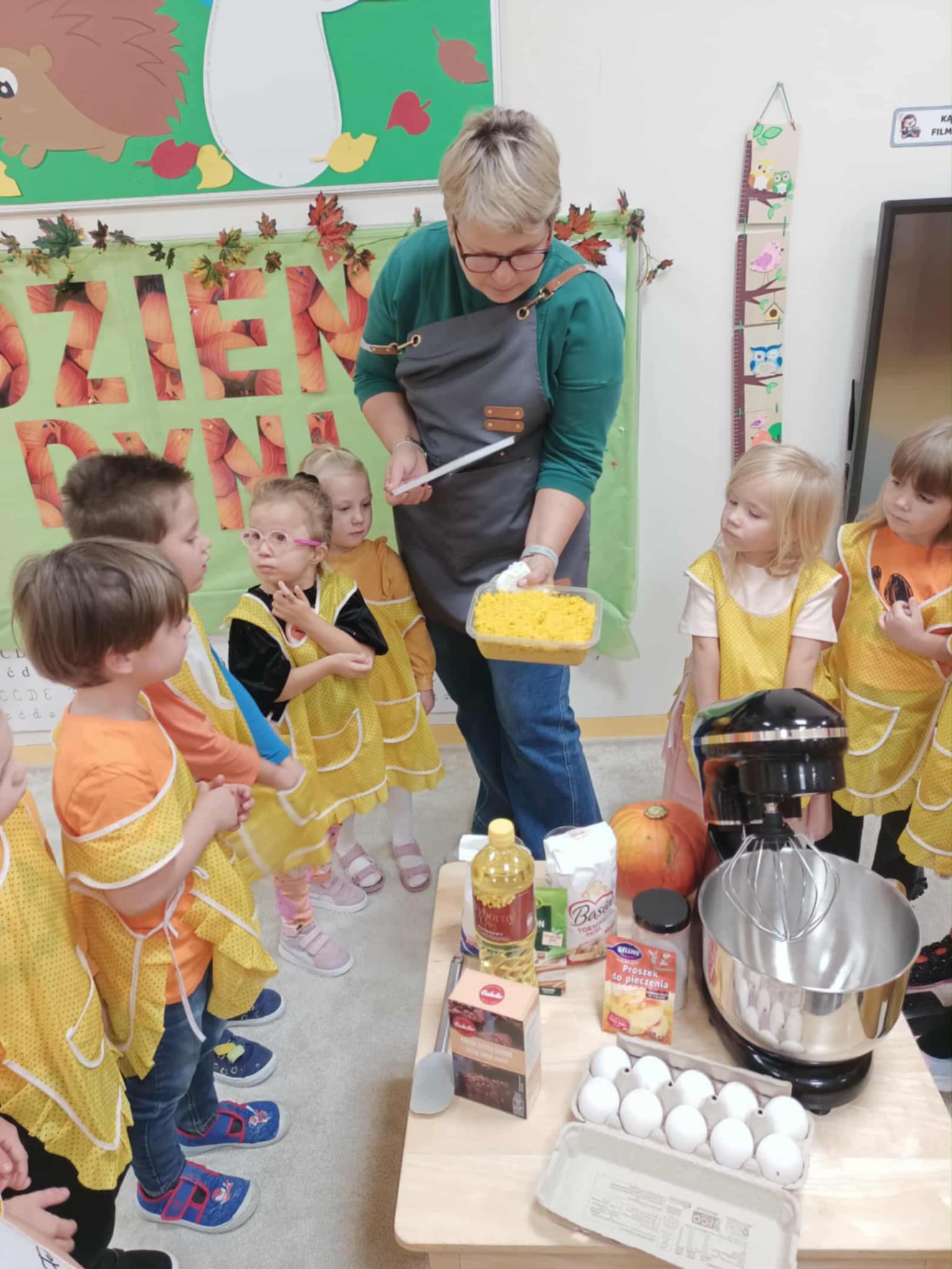 Na zakończenie dnia czekał na dzieci słodki poczęstunek – ciasto dyniowe oraz cukierki, które sprawiły wszystkim dużo radości. Ten pełny wrażeń i smaków dzień na długo pozostanie w pamięci naszych przedszkolaków.