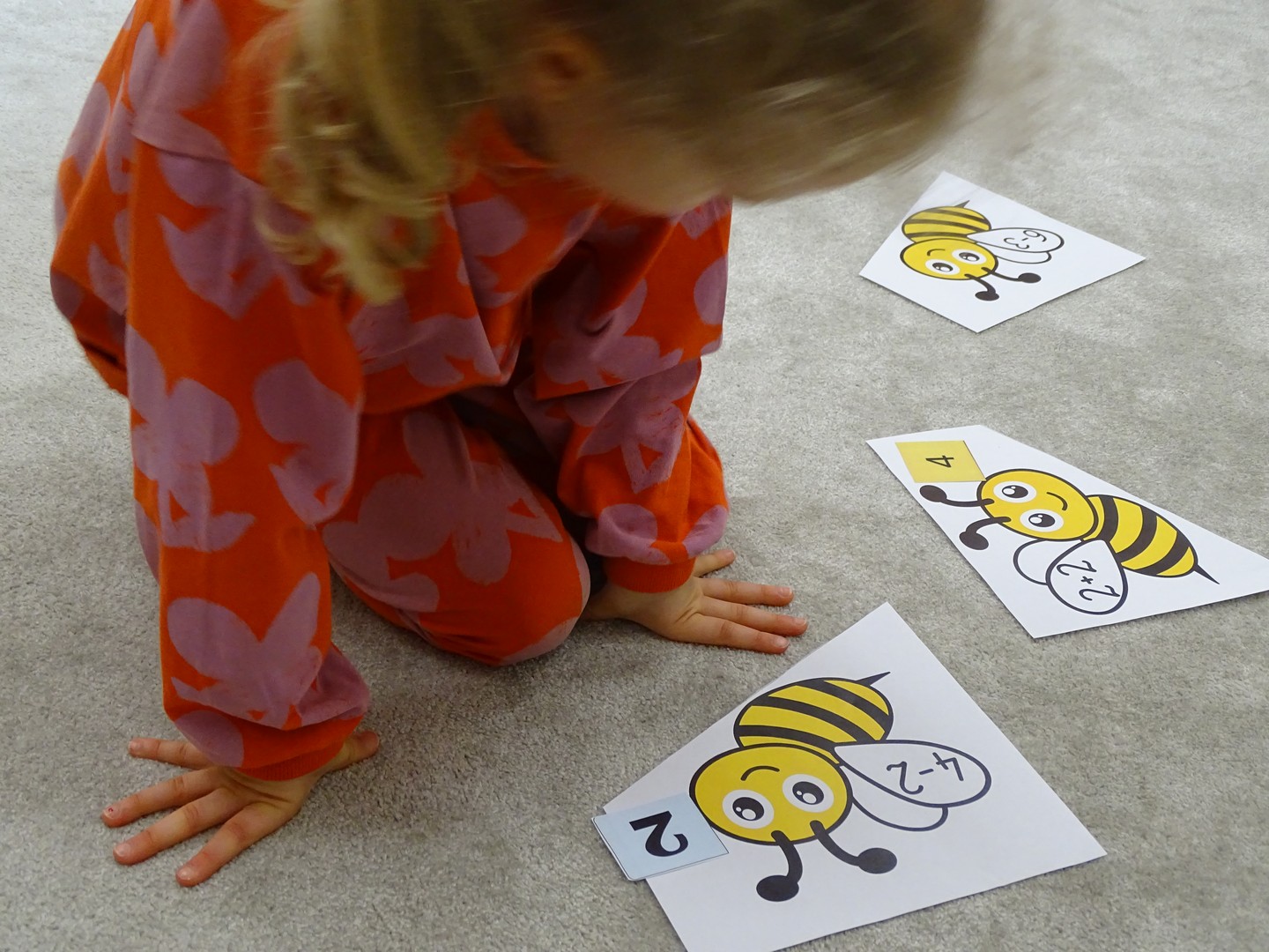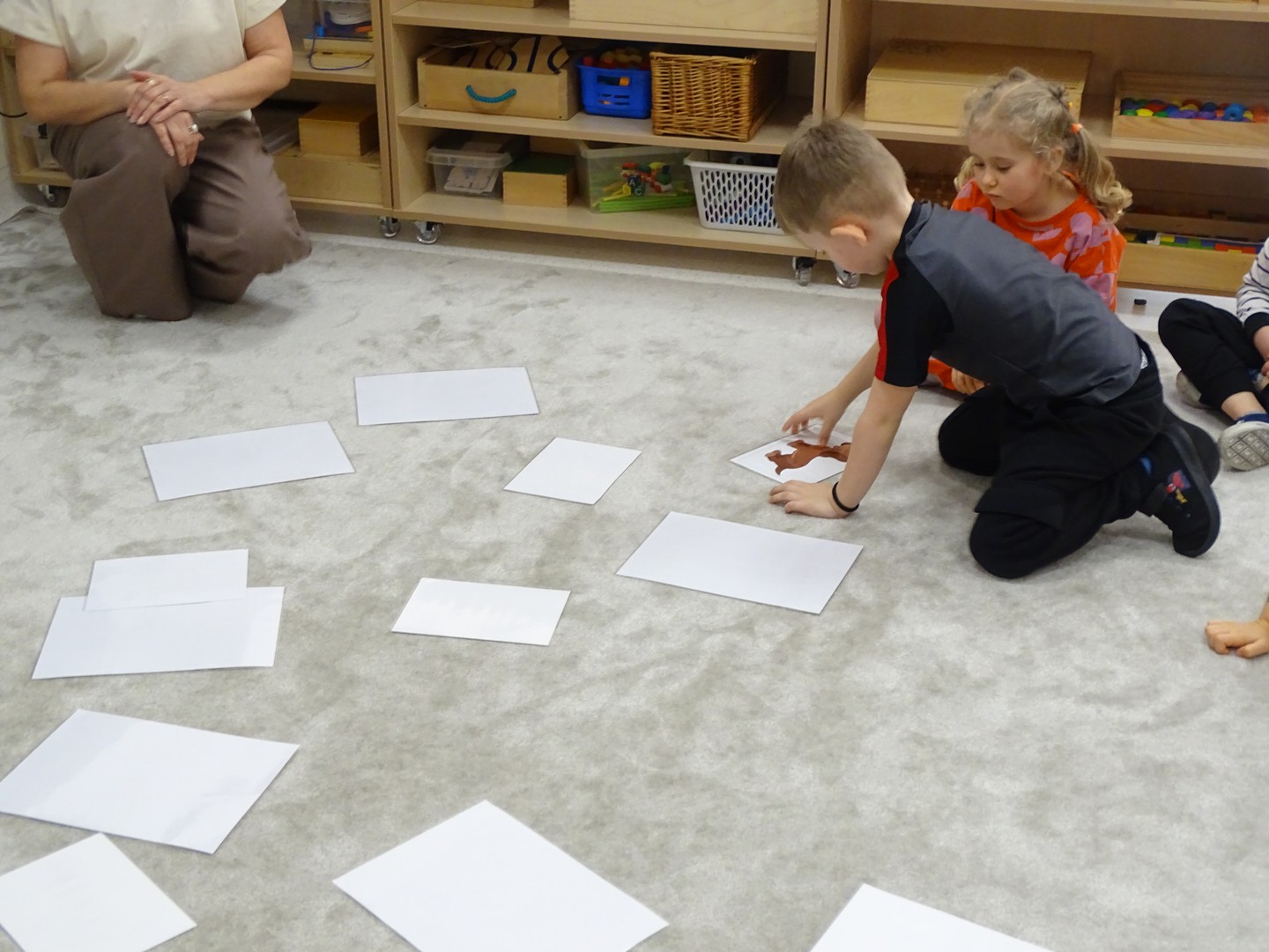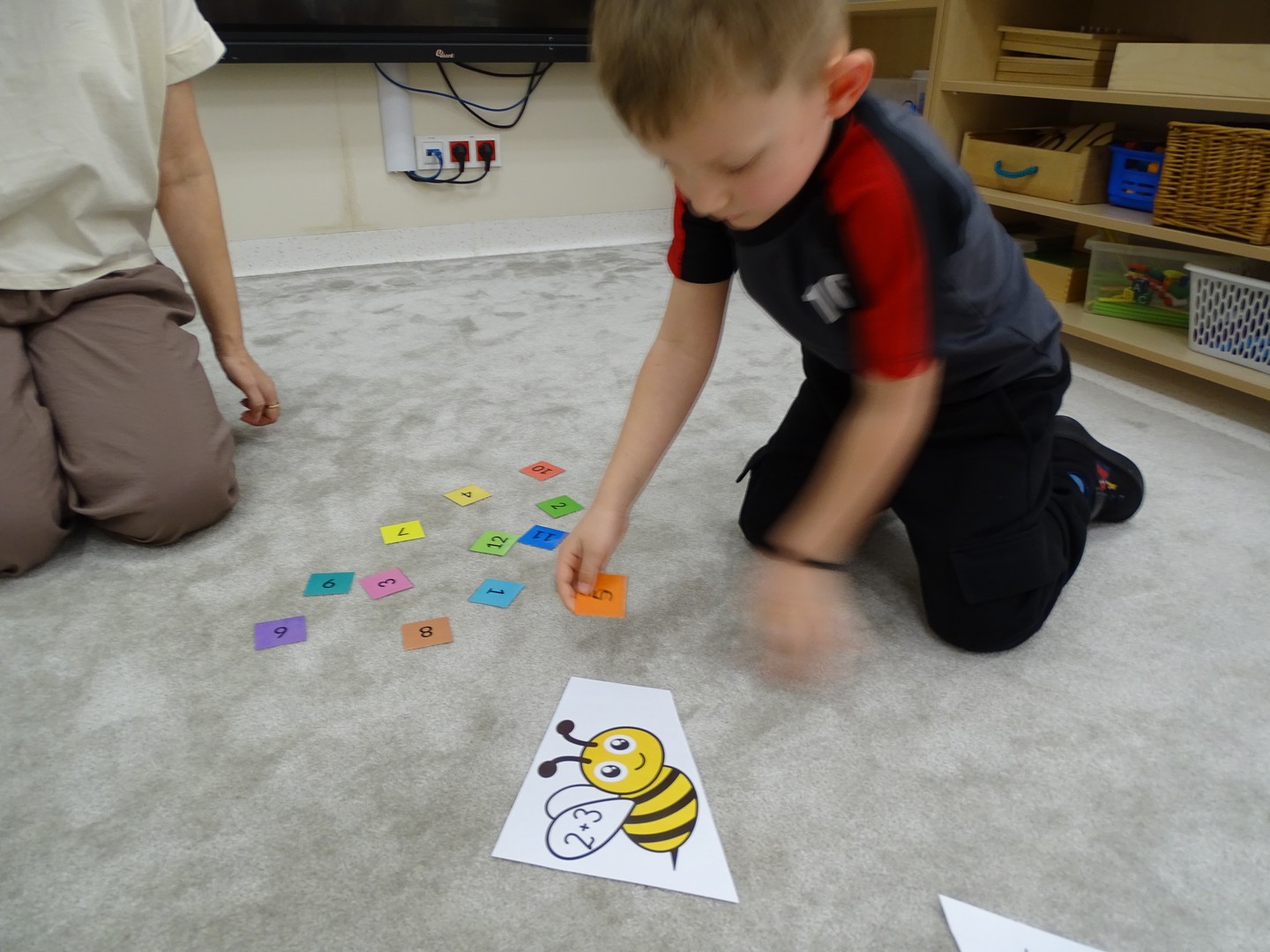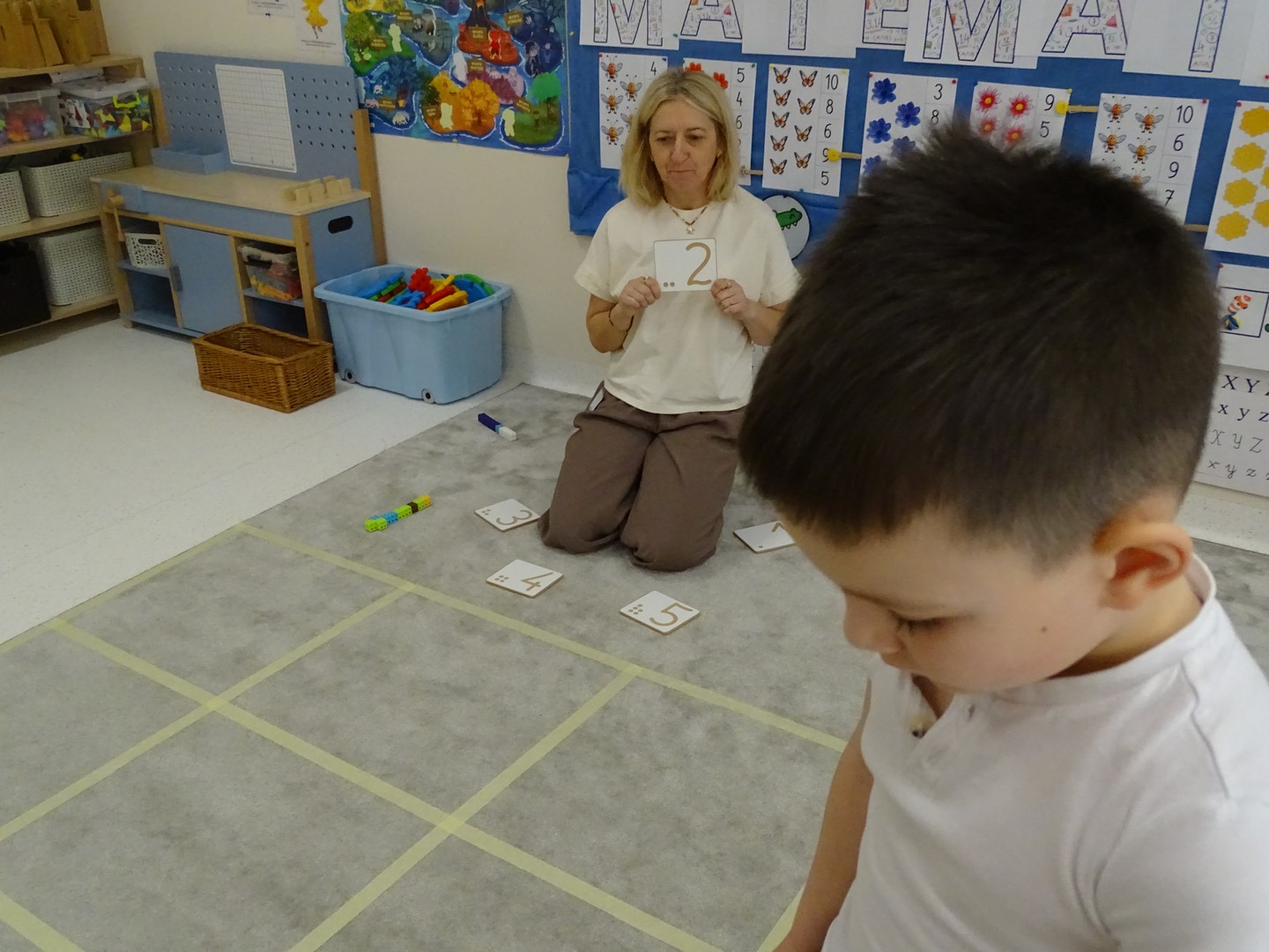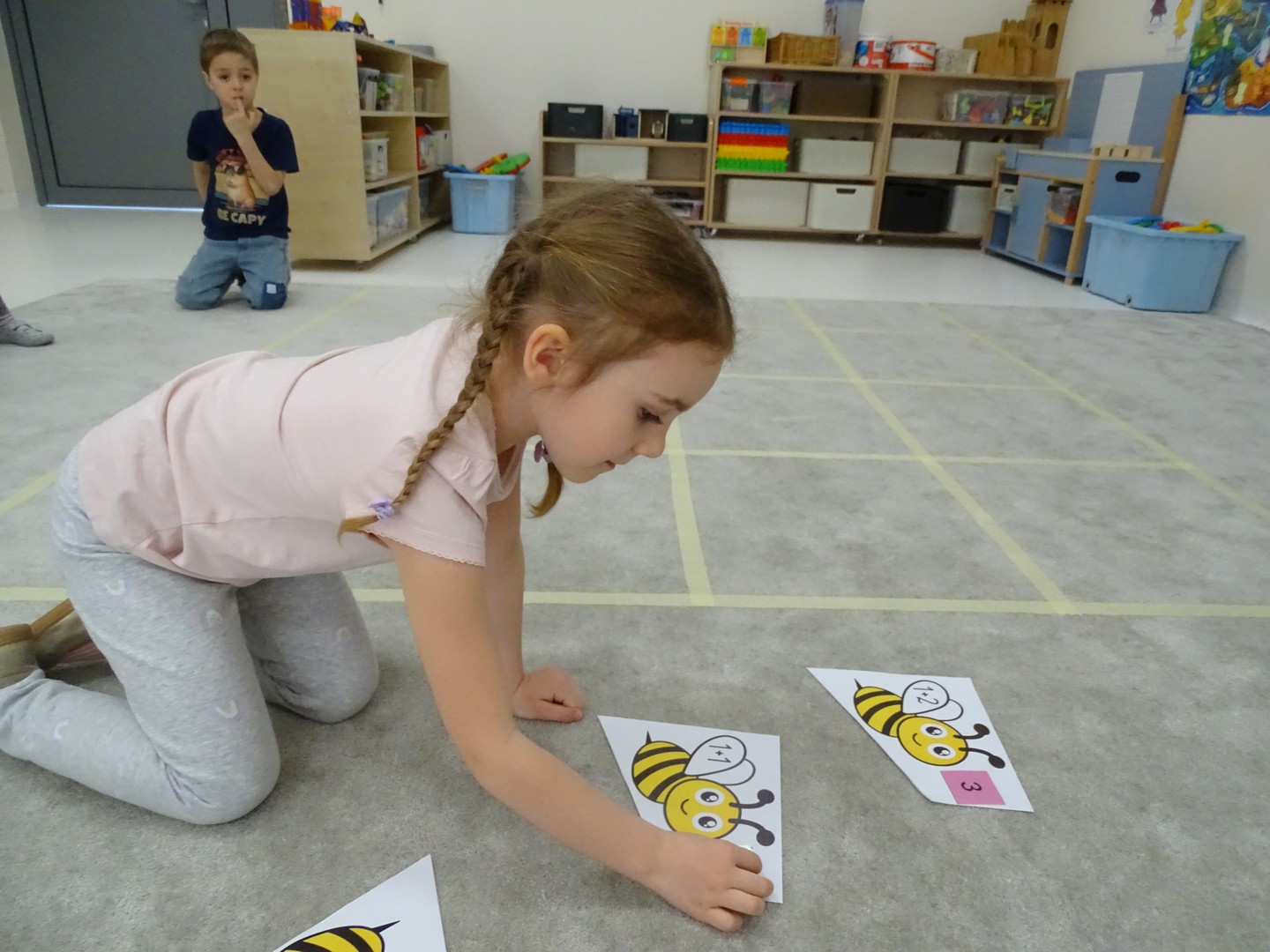 12 marca obchodziliśmy w naszej grupie "Dzień Matematyki", który stał się pretekstem do rozwijania kompetencji matematycznych. Podczas różnorodnych zabaw utrwalaliśmy oraz wzbogacaliśmy naszą wiedzę. Doskonaliliśmy umiejętność przeliczania elementów i porównywania liczebności zbiorów, orientację w przestrzeni i schemacie własnego ciała. Poprzez zabawy muzyczno - ruchowe Pani Zuzi i Pana Miłosza utrwalaliśmy umiejętność rozróżniania strony lewej i prawej, kierunków do przodu, do tyłu, w górę, w dół. W samodzielnie wykonanej na dywanie macie do kodowania, Słoneczka próbowały zaprowadzić pieska do mety. Prócz utrwalania kierunków ważnym aspektem okazała się umiejętność współpracy z partnerem zabawy, słuchanie i obserwowanie zachodzących zmian. W "Dzień Matematyki" poznaliśmy znaki matematyczne, które wykorzystywaliśmy w praktyce wykonując proste zadania z wykorzystaniem ilustracji. Na koniec zajęć dzieci doskonaliły umiejętność nazywania i rozróżniania figur geometrycznych zakodowanych kształtem i kolorem na dywaniku. Podejmowane działania zachęcały dzieci do rozwijania zainteresowań matematycznych jednocześnie sprawiając Im wiele radości.