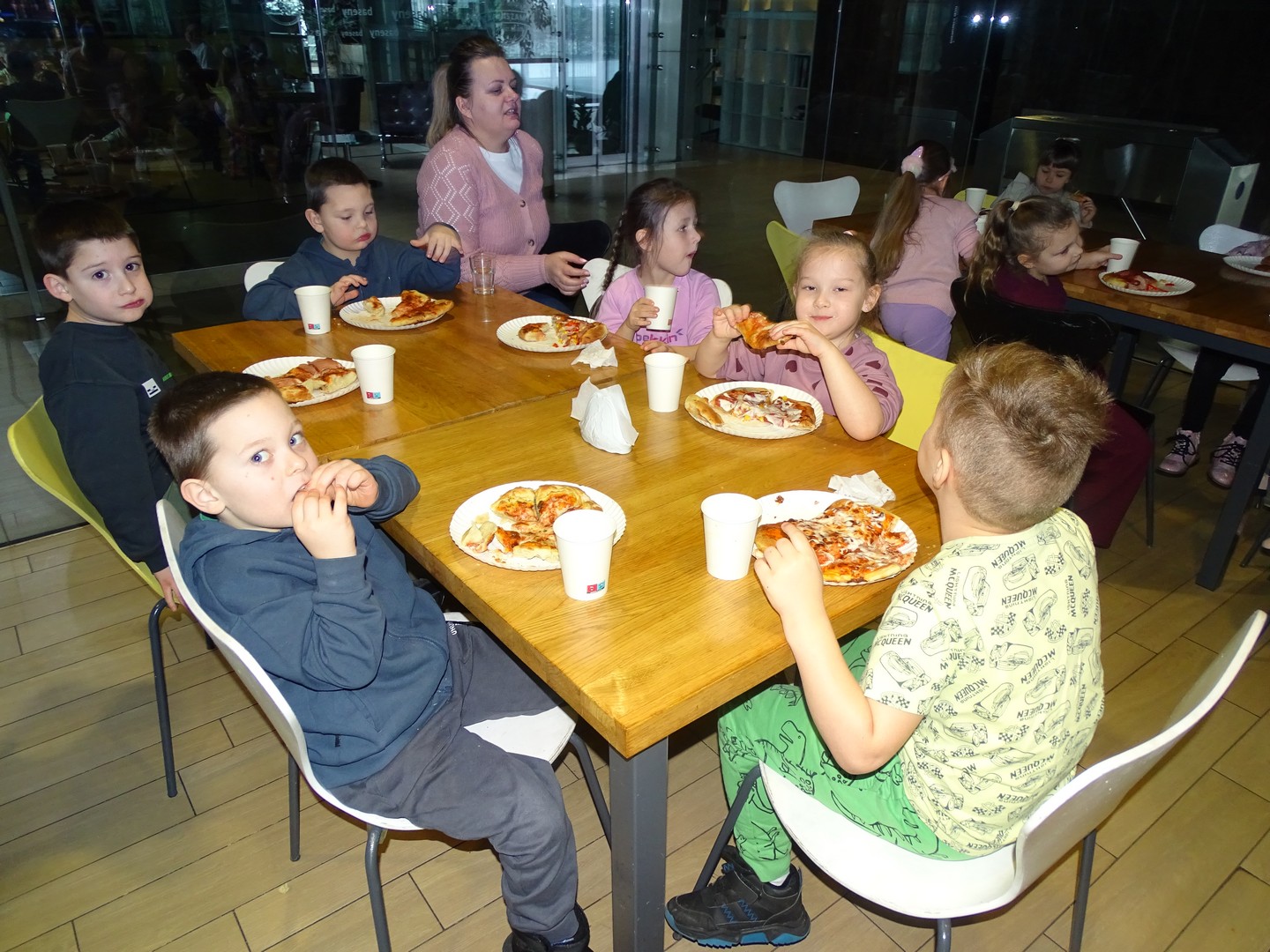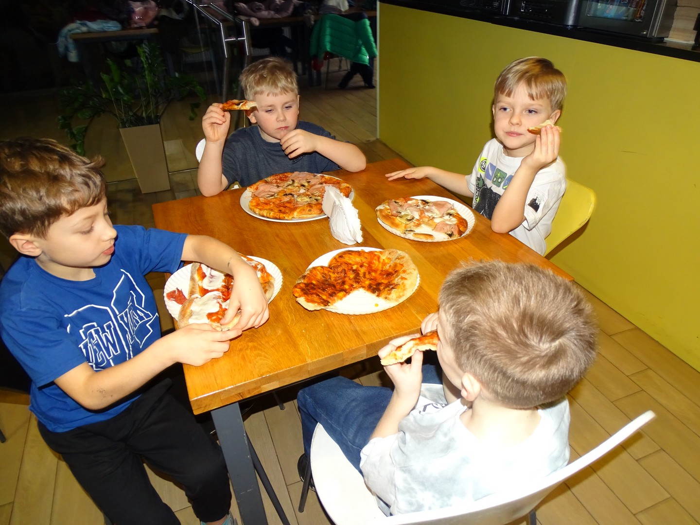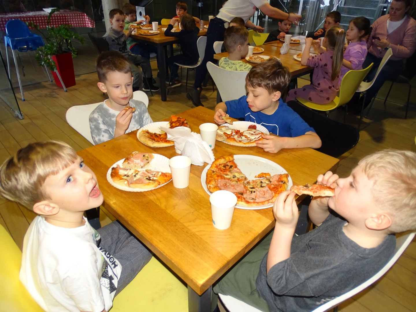 W środę, 18 lutego, w ramach obchodów Dnia Pizzy, wybraliśmy się z dziećmi do Pizzerii Coolinarium w Kleszczowie na wyjątkowe warsztaty kulinarne. Podczas spotkania dzieci miały okazję samodzielnie przygotować swoją pizzę. Najpierw z wielkim zaangażowaniem rozciągały ciasto, następnie smarowały je aromatycznym sosem pomidorowym i układały wybrane przez siebie dodatki. Powstały prawdziwe, kolorowe i bardzo apetyczne kompozycje! Panie pracujące w pizzerii włożyły przygotowane pizze do specjalnego pieca, gdzie nabrały chrupkości i pięknego złocistego koloru. W czasie pieczenia dzieci usiadły przy stolikach w pizzerii i z niecierpliwością czekały na efekty swojej pracy. Gdy tylko pizze były gotowe, wszyscy z ogromnym apetytem zajadali się własnoręcznie przygotowanymi wypiekami. Smakowały wyśmienicie. Na zakończenie każde dziecko otrzymało pamiątkowy dyplom „Małego Kucharza”, który był pięknym zwieńczeniem tego kulinarnego dnia. To był dzień pełen radości, nauki i pysznej zabawy, który na długo pozostanie w naszej pamięci.