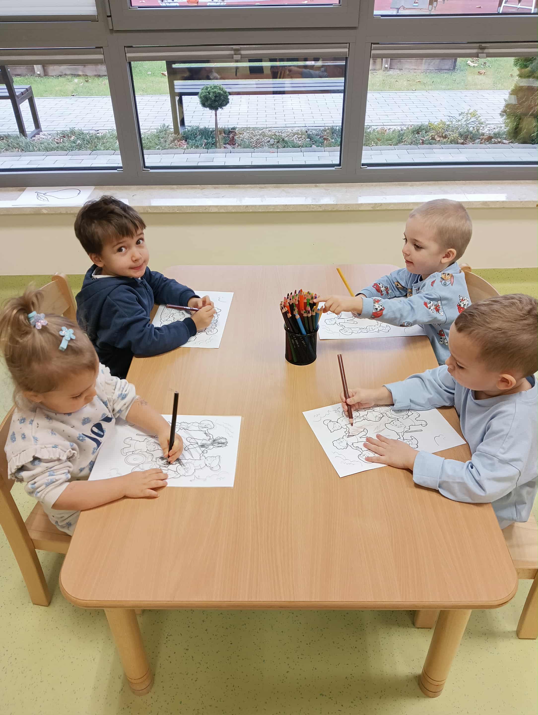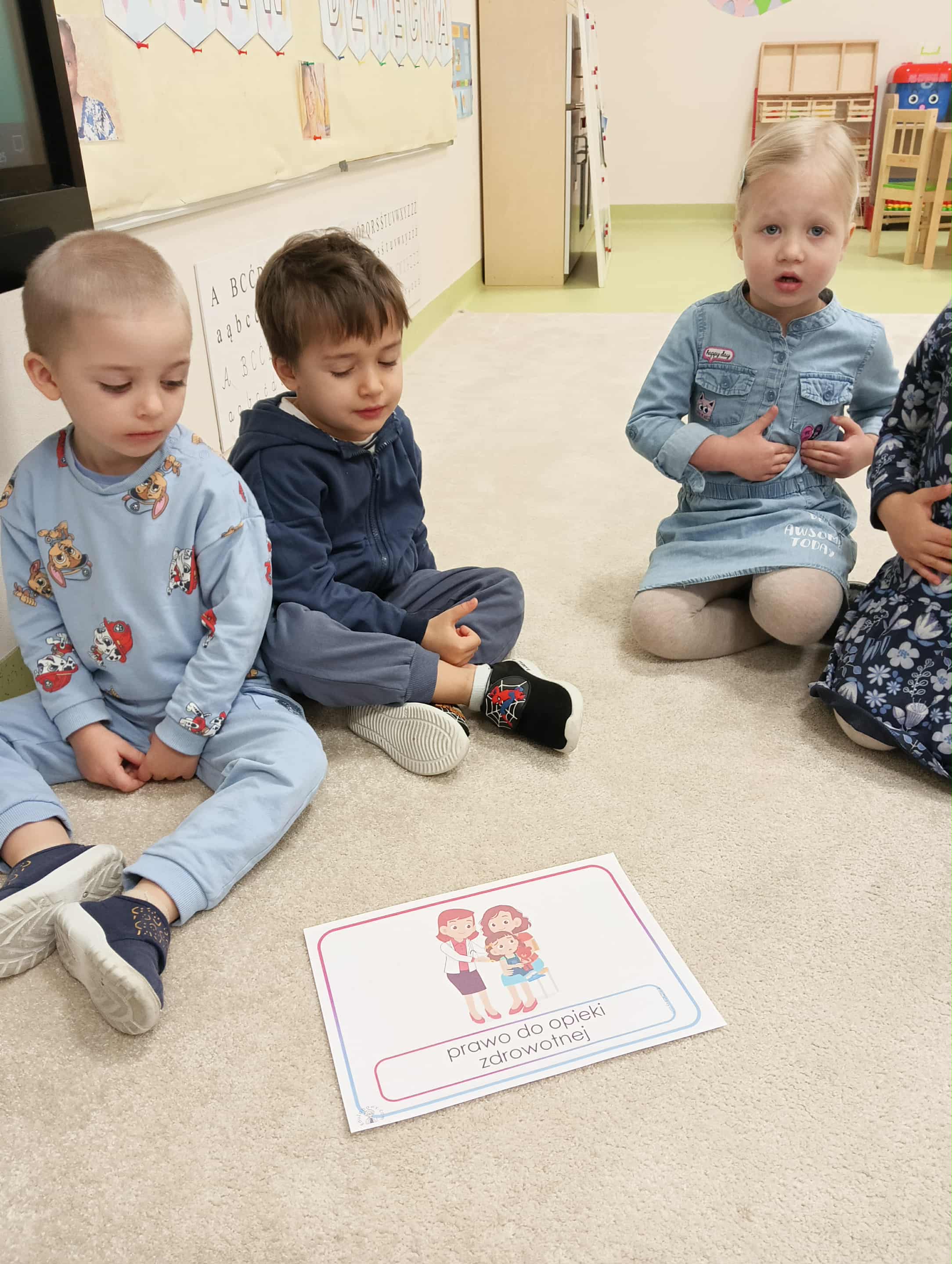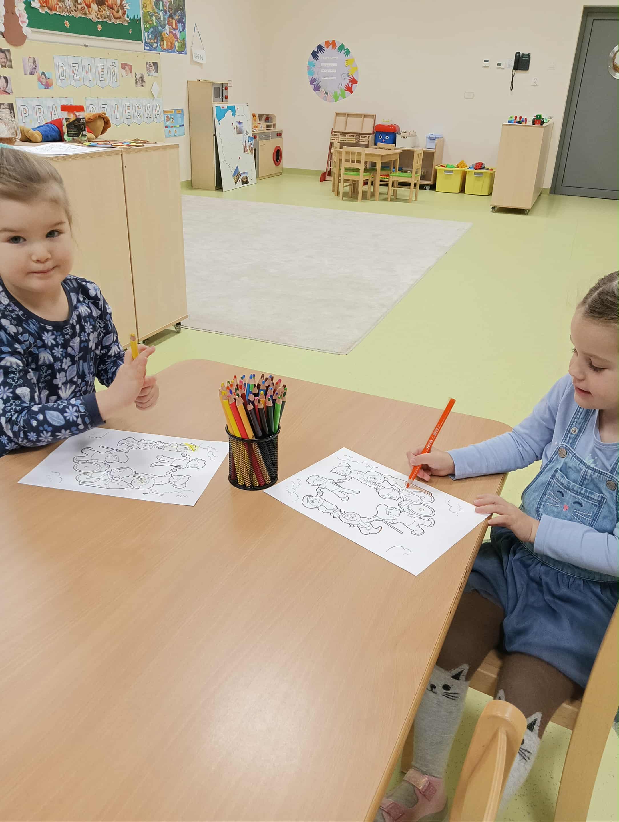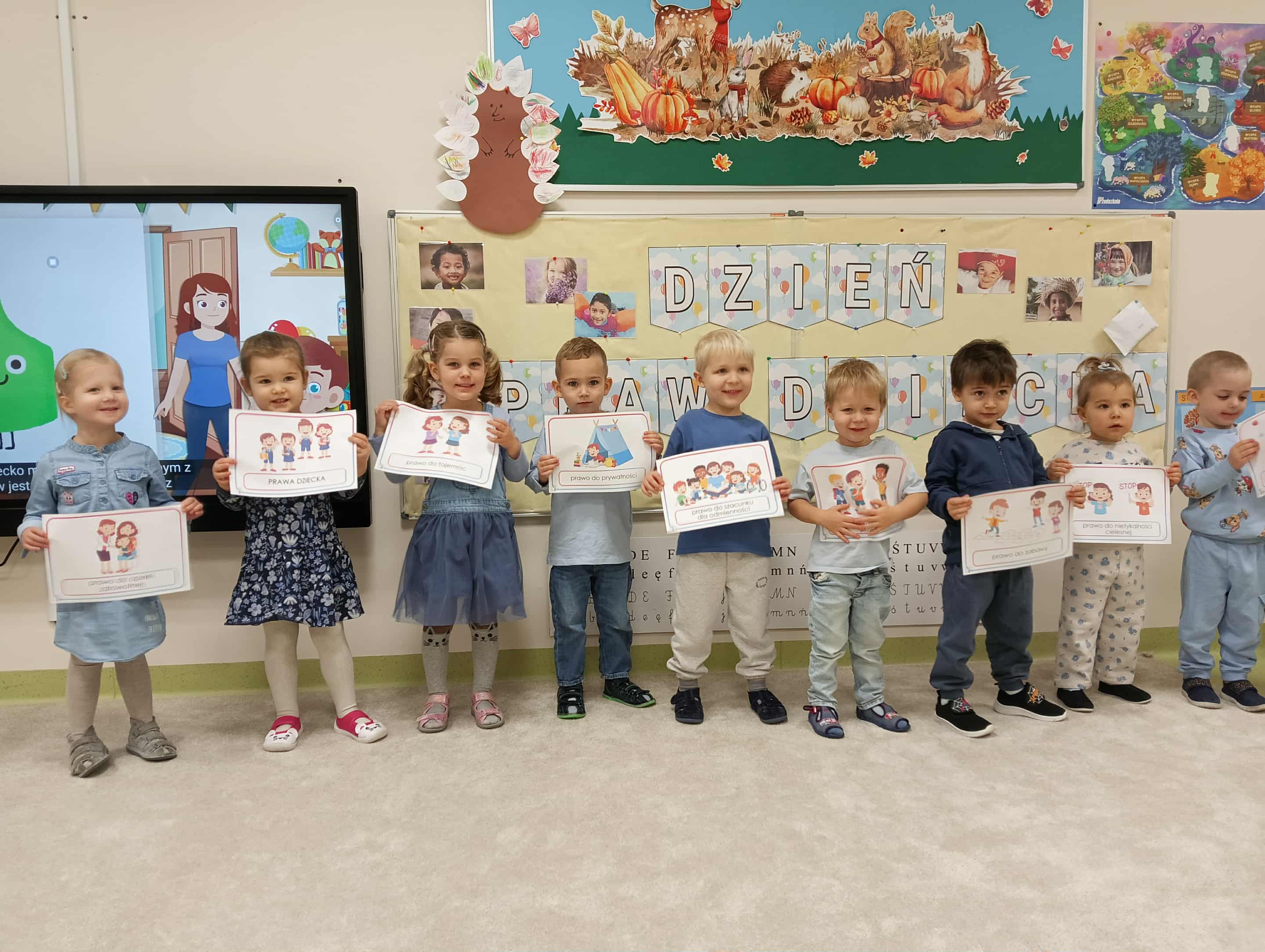 W naszym przedszkolu obchodziliśmy Dzień Praw Dziecka. Nawiązując do tego wyjątkowego wydarzenia, wszyscy ubraliśmy się na niebiesko. Na początku odbyła się rozmowa kierowana na temat praw i obowiązków najmłodszych, podczas której dzieci dzieliły się swoimi doświadczeniami i spostrzeżeniami. Następnie przedszkolaki obejrzały krótki film poświęcony prawom dziecka. Oglądały również ilustracje związane z tematyką oraz pokolorowały obrazek przedstawiający dzieci z całego świata. Na zakończenie wykonaliśmy pamiątkowe zdjęcie, aby upamiętnić ten ważny dzień.