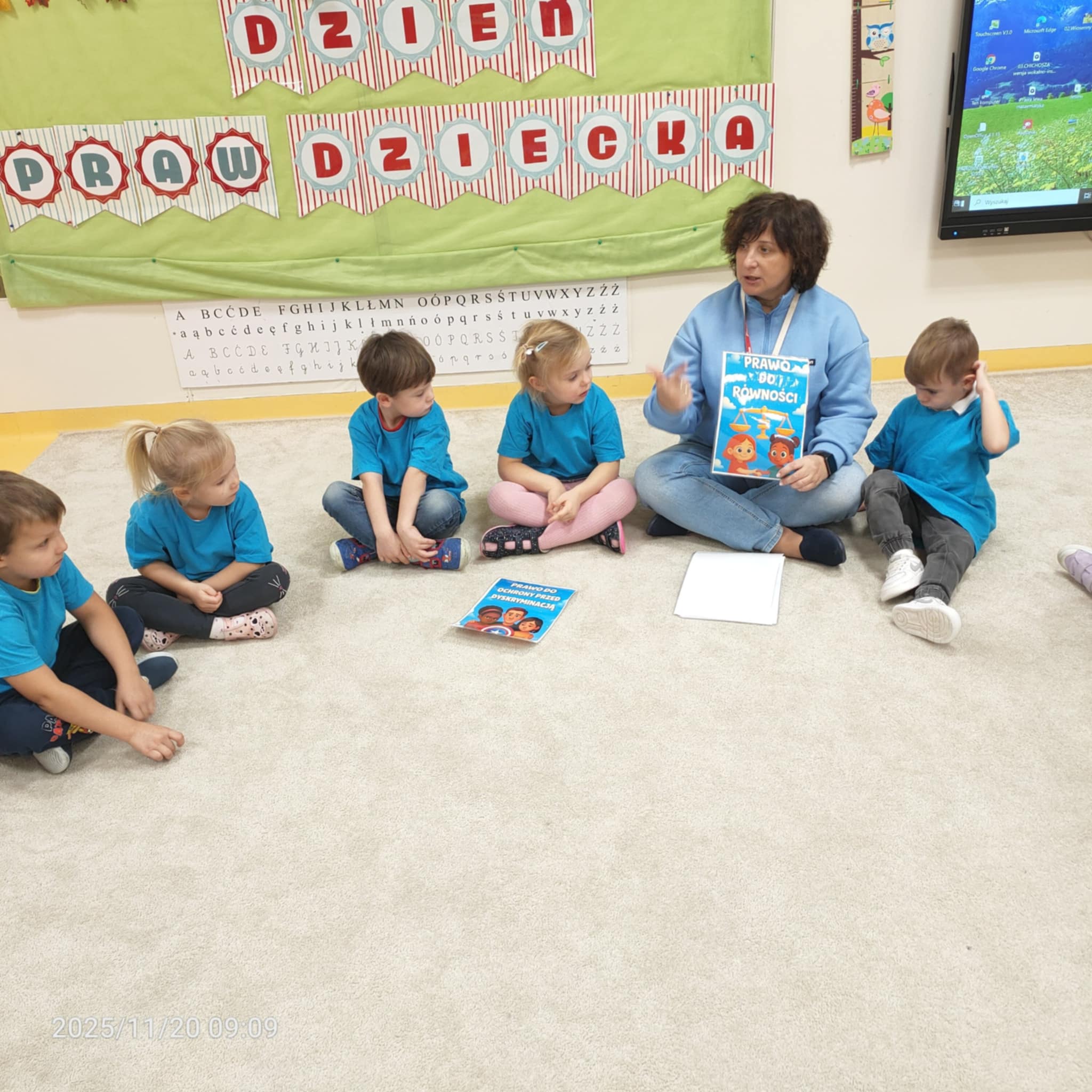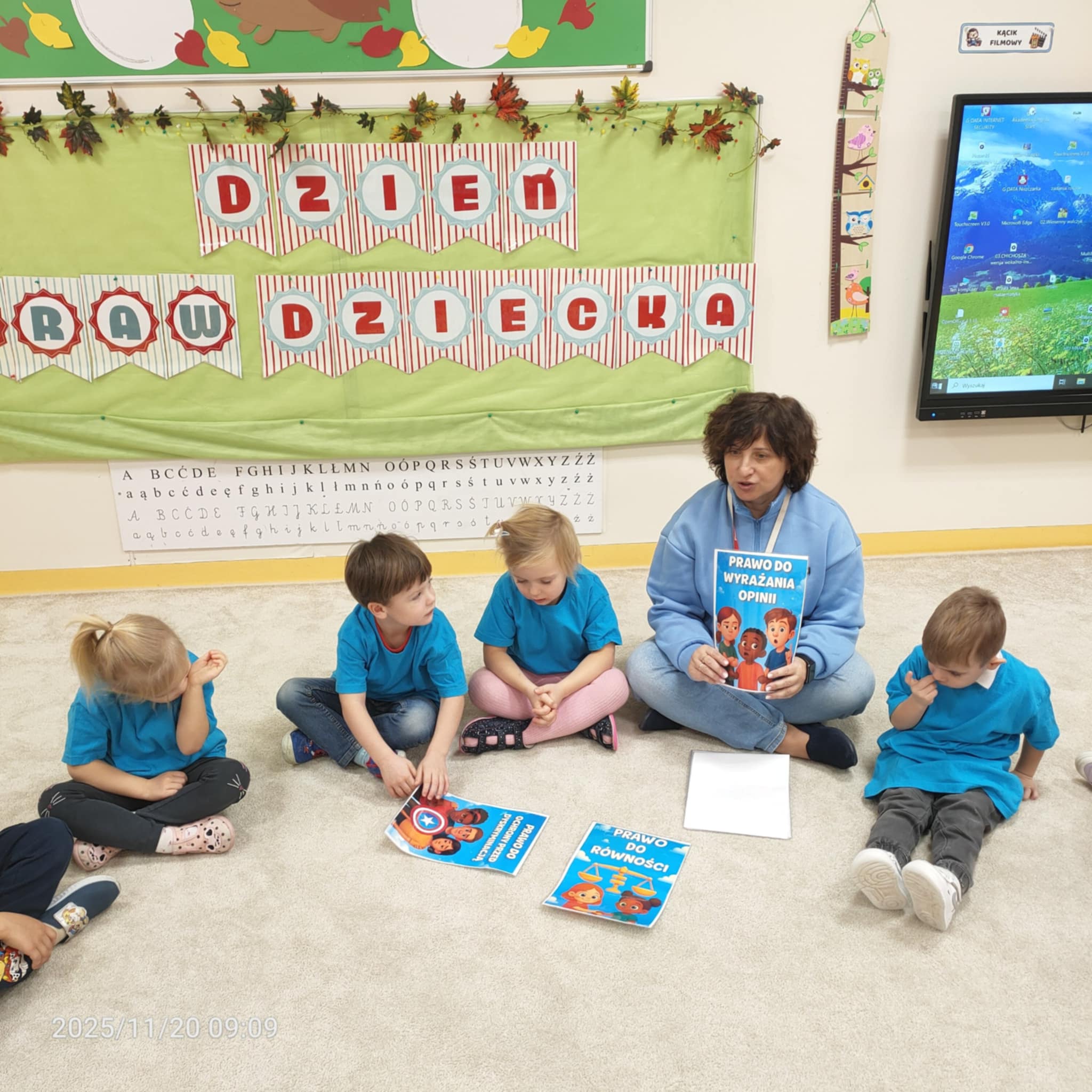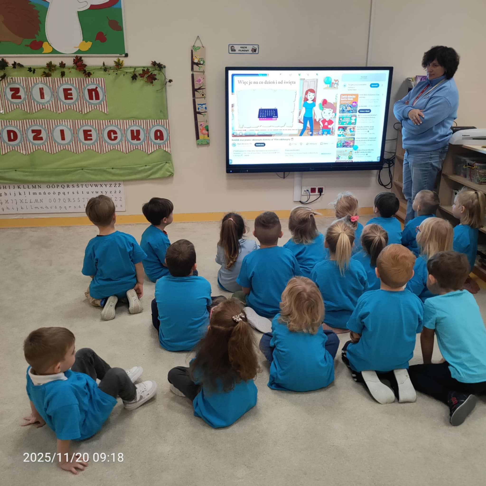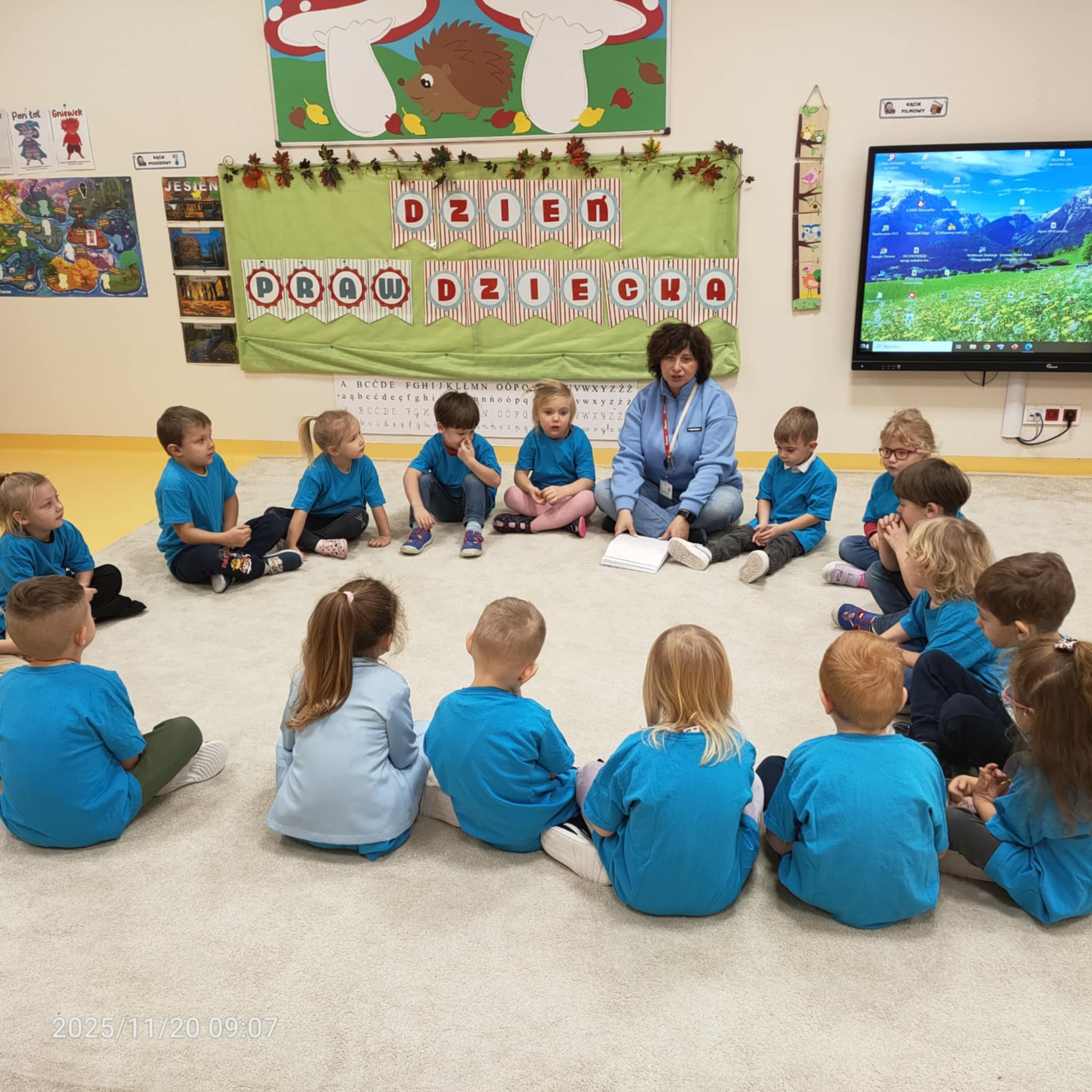 Dnia 20 listopada grupa Jeżyki obchodziła Dzień Praw Dziecka w przedszkolu. Dzieci dowiedziały się, jakie prawa im przysługują, a także poznały swoje obowiązki. Następnie obejrzały edukacyjną bajkę zatytułowaną "Dzień Praw Dziecka". Na zakończenie dzieci wzięły udział w quizie wiedzy o prawach dzieci, który wypadł bardzo dobrze. Przy stolikach dzieci utrwaliły sobie swoje prawa i przypieczętowały odpiciem swojej rączki.