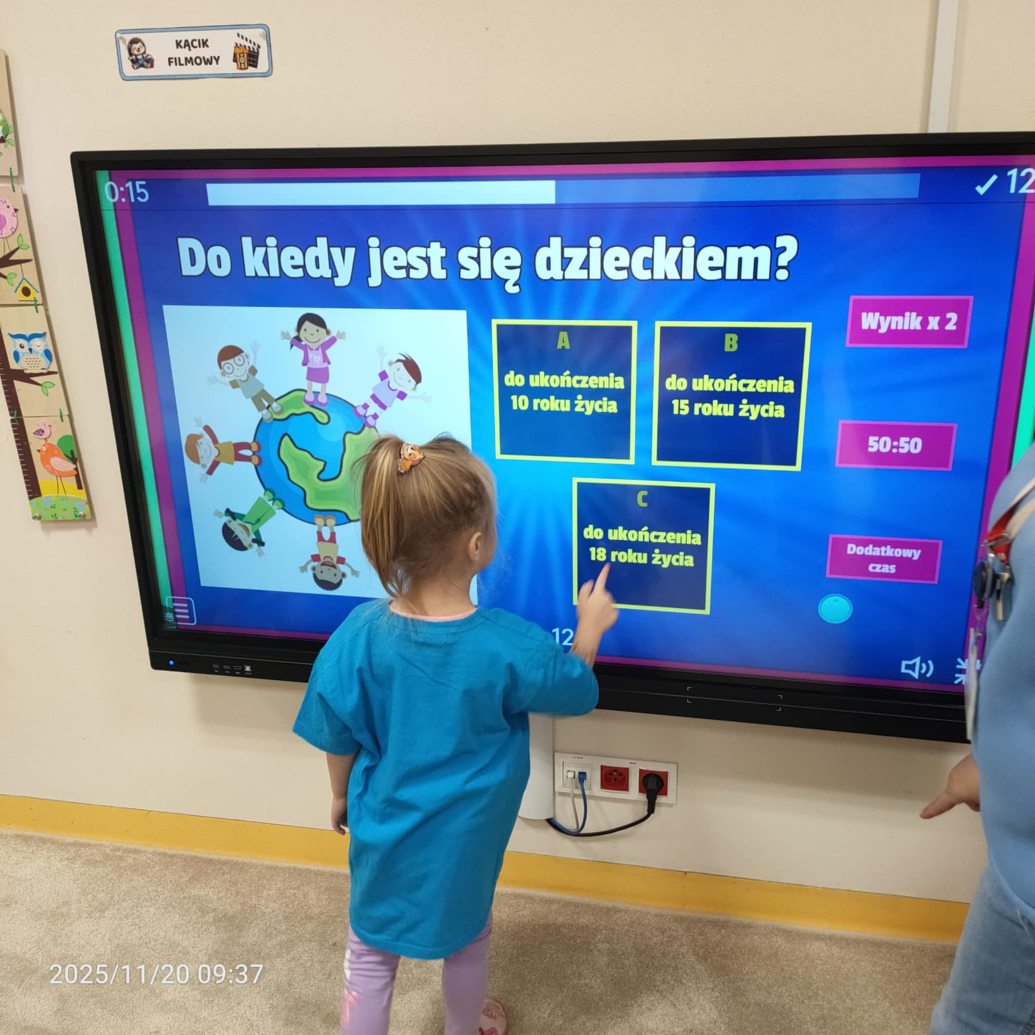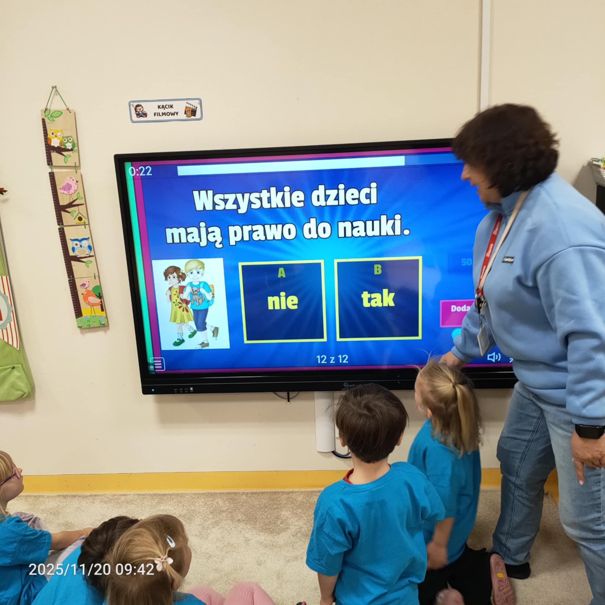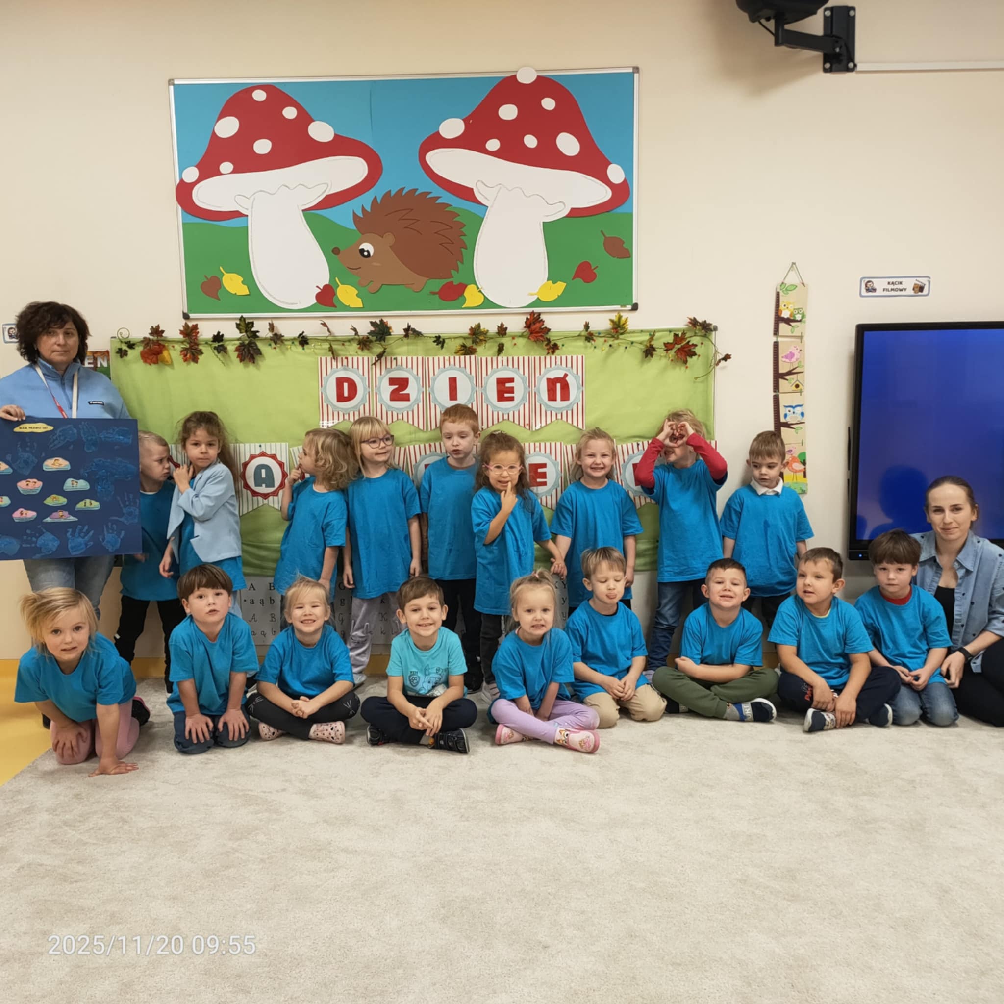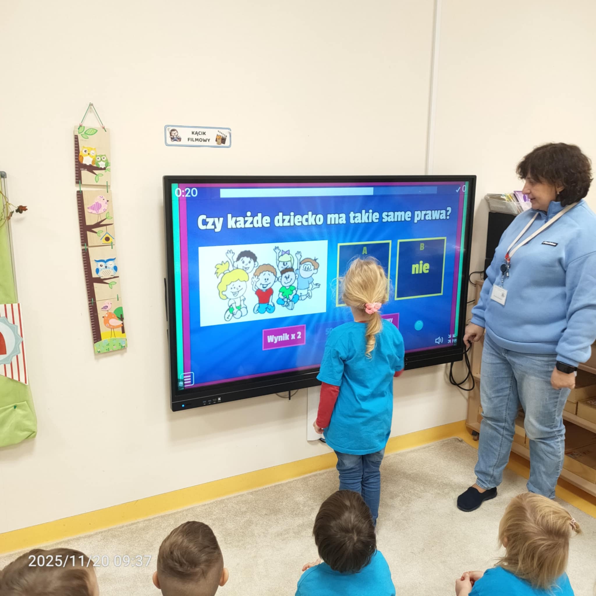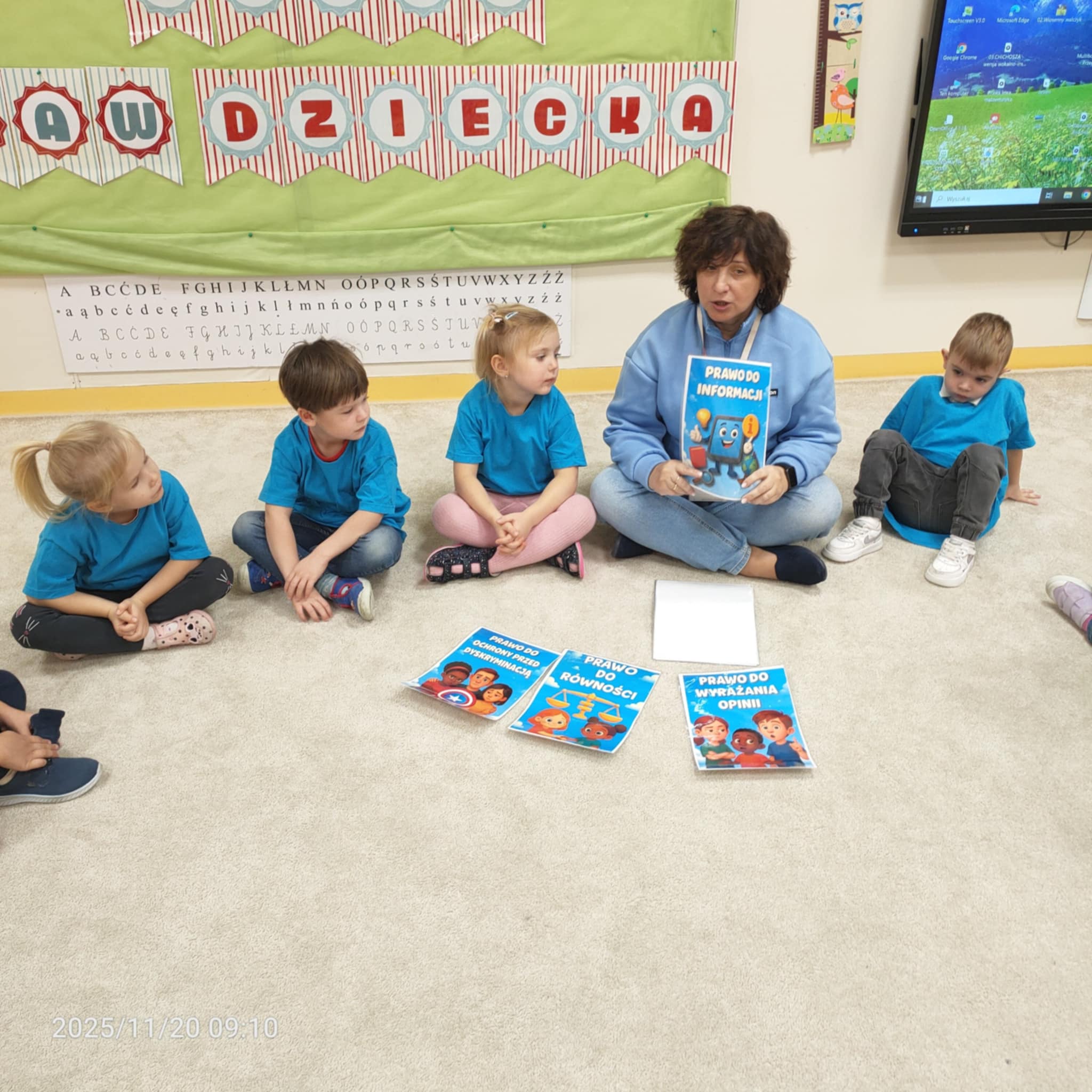 Dnia 20 listopada grupa Jeżyki obchodziła Dzień Praw Dziecka w przedszkolu. Dzieci dowiedziały się, jakie prawa im przysługują, a także poznały swoje obowiązki. Następnie obejrzały edukacyjną bajkę zatytułowaną "Dzień Praw Dziecka". Na zakończenie dzieci wzięły udział w quizie wiedzy o prawach dzieci, który wypadł bardzo dobrze. Przy stolikach dzieci utrwaliły sobie swoje prawa i przypieczętowały odpiciem swojej rączki.