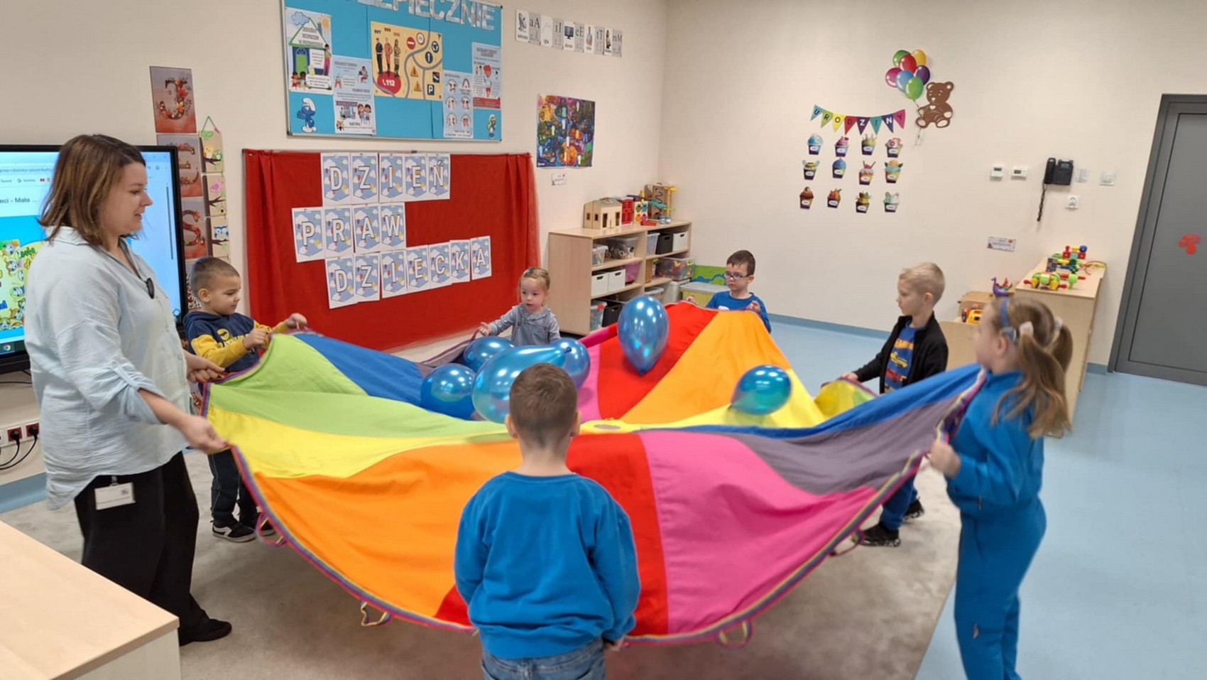 W naszym przedszkolu obchodziliśmy Dzień Praw Dziecka. Dzieci w przystępny i ciekawy sposób poznały swoje prawa, takie jak prawo do zabawy, nauki, szacunku oraz wyrażania własnych uczuć i myśli. Przedszkolaki brały udział w rozmowach, zabawach tematycznych, oglądały krótkie prezentacje i wykonywały prace plastyczne. Zajęcia przebiegały w radosnej atmosferze, a dzieci chętnie dzieliły się swoimi spostrzeżeniami. Był to ważny dzień, który uczył wzajemnego szacunku i empatii.