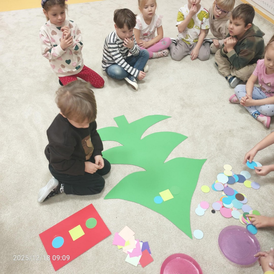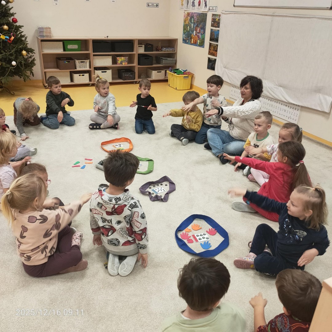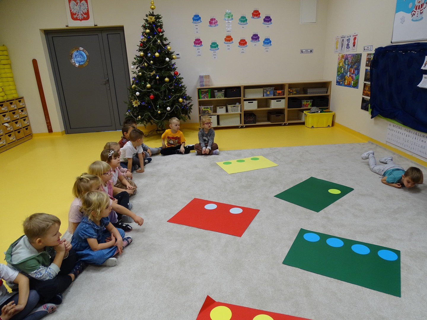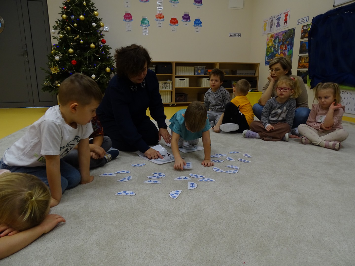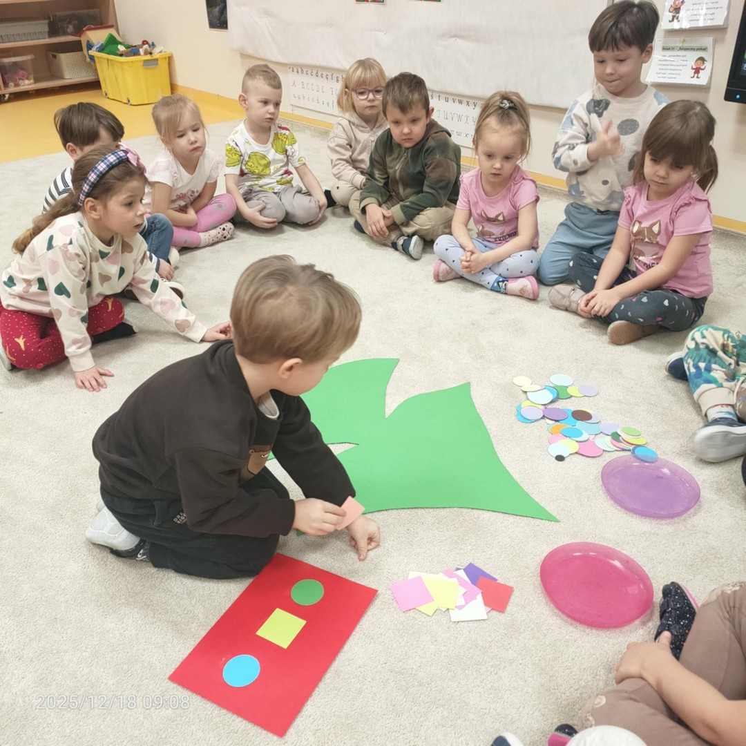 W grudniu w grupie "Jeżyki" we wszystkie wtorki odbywały się grudniowe matematyczne zabawy. Dzieci przeliczały śnieżynki, liczyły na liczydle, układały kryształki oraz brały udział w zabawach na spostrzegawczość. Miały również zabawy matematyczne, podczas których rzucały kostką i układały figury geometryczne – koło, trójkąt i kwadrat. Dzieci ozdobiły choinkę figurami geometrycznymi, co pozwoliło im utrwalić znajomość kształtów. Podczas zajęć wyszukiwały na sali przedmioty w kształcie koła, trójkąta oraz kwadratu. Wszystkie zabawy miały na celu rozwijanie spostrzegawczości, liczenia i poznawania geometrycznych figur w atrakcyjnej i zabawowej formie.