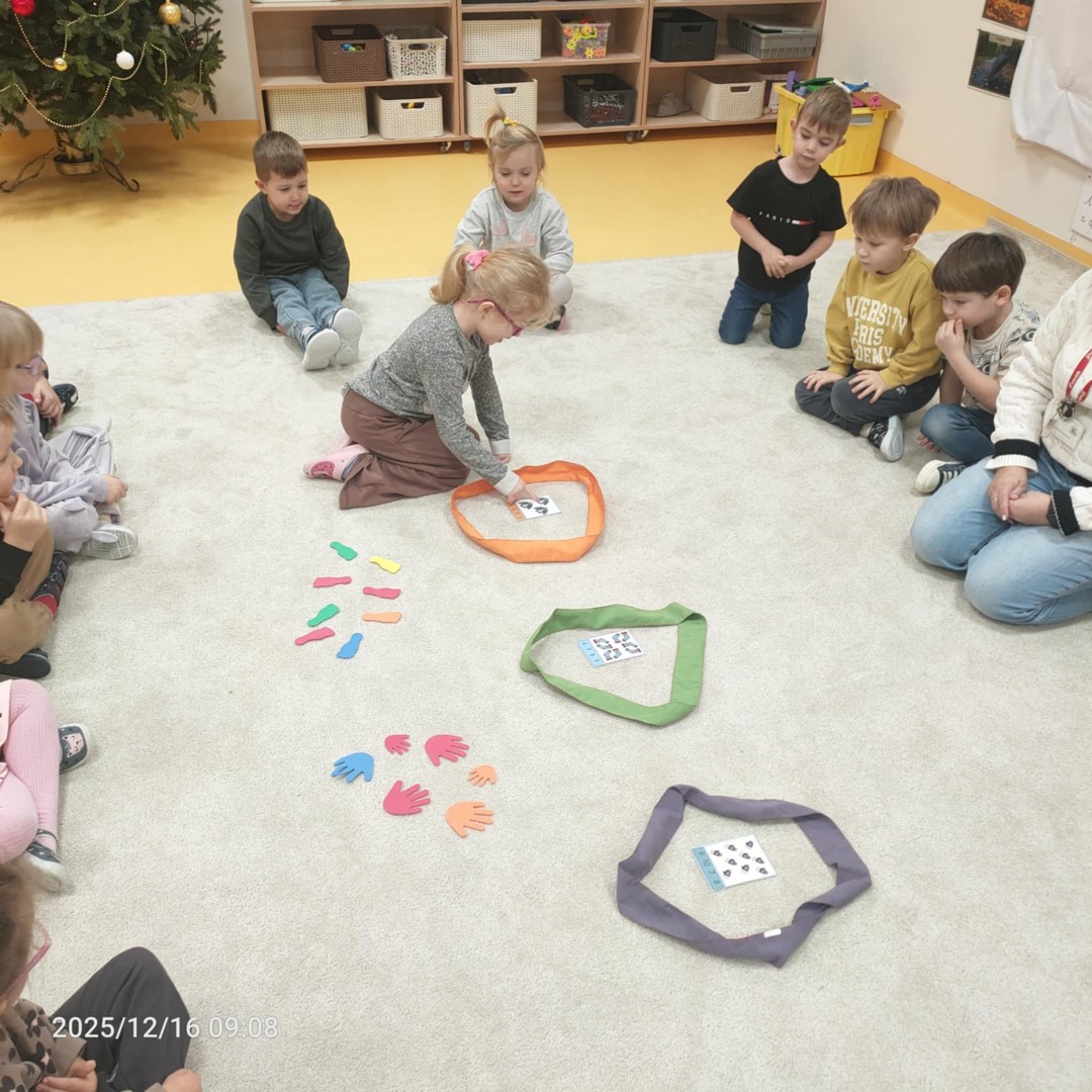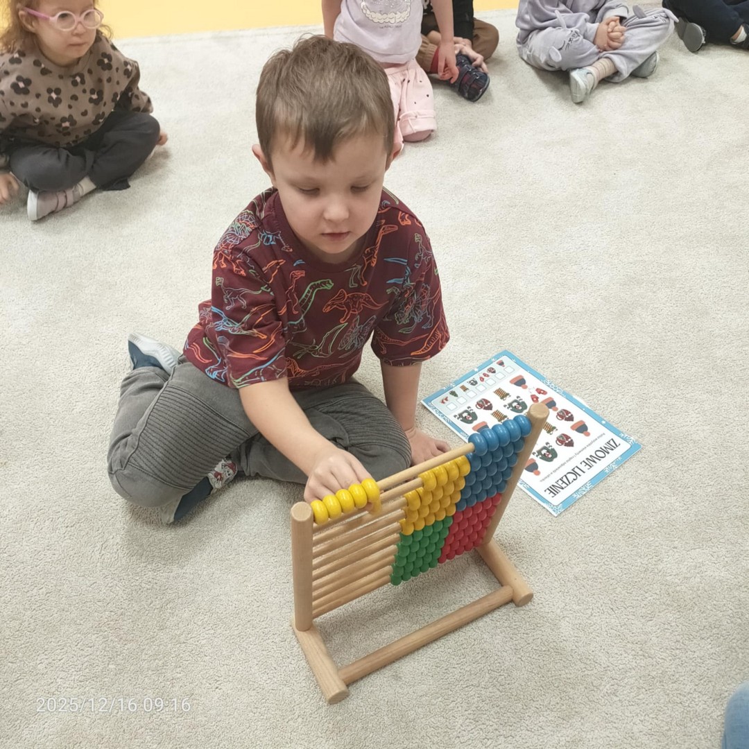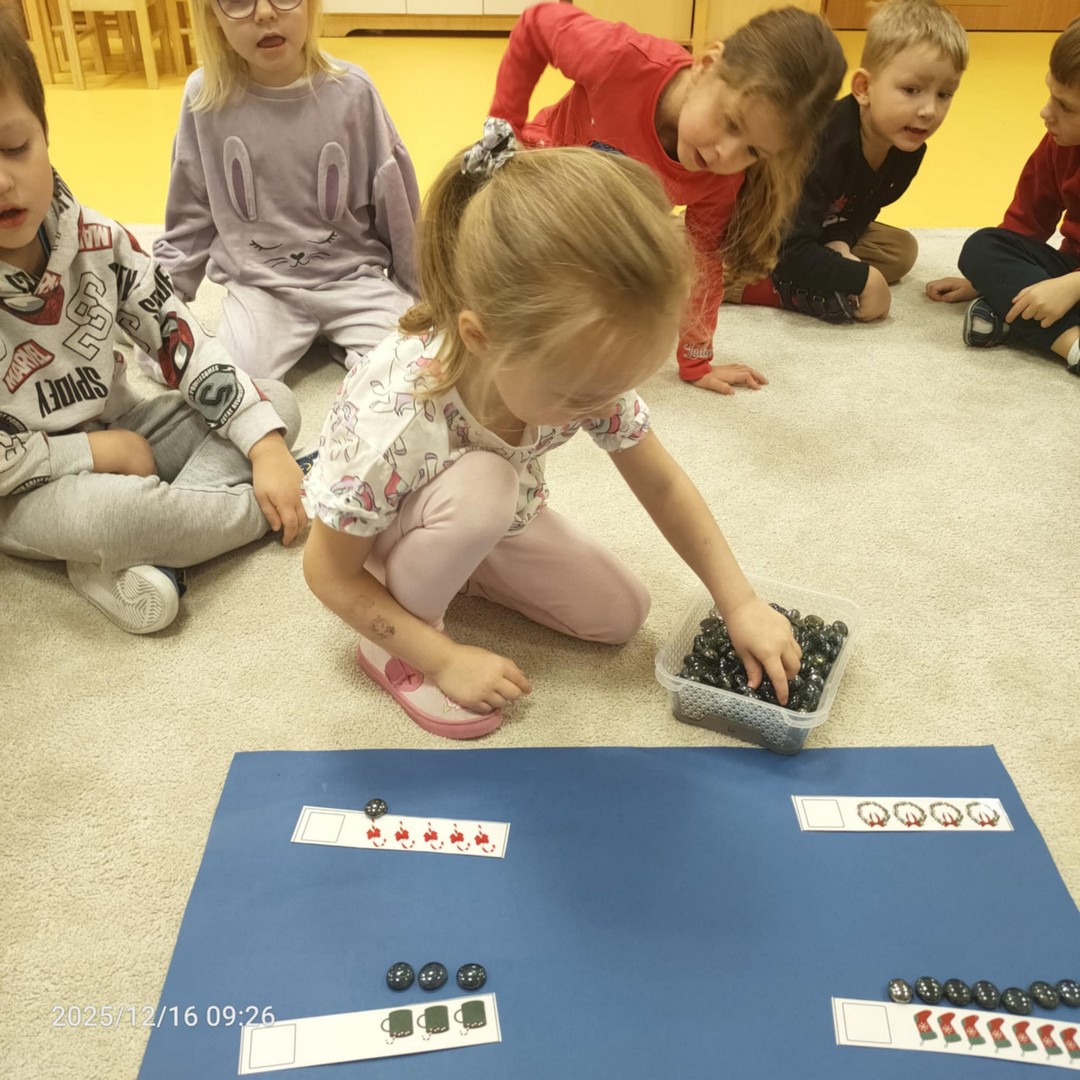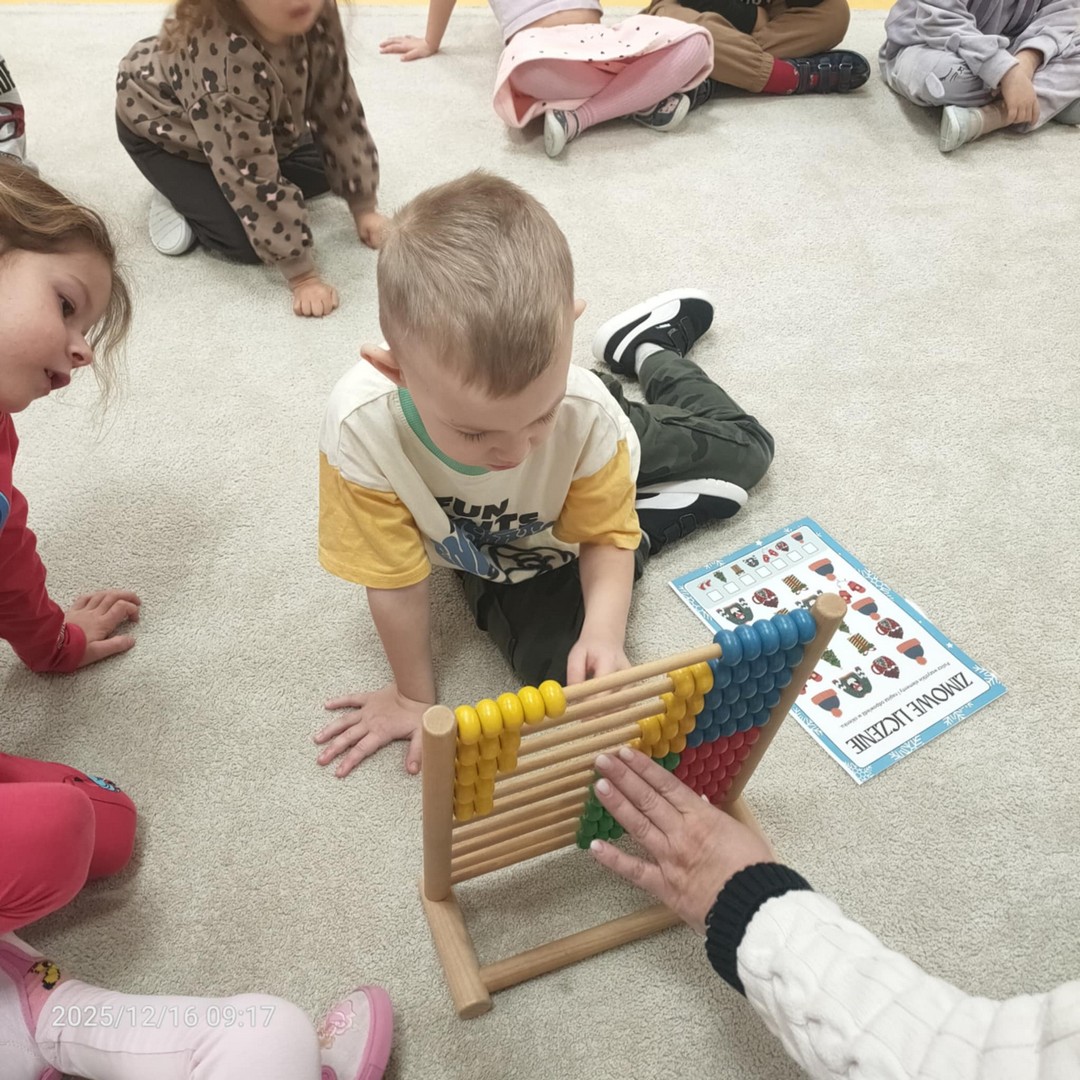 W grudniu w grupie "Jeżyki" we wszystkie wtorki odbywały się grudniowe matematyczne zabawy. Dzieci przeliczały śnieżynki, liczyły na liczydle, układały kryształki oraz brały udział w zabawach na spostrzegawczość. Miały również zabawy matematyczne, podczas których rzucały kostką i układały figury geometryczne – koło, trójkąt i kwadrat. Dzieci ozdobiły choinkę figurami geometrycznymi, co pozwoliło im utrwalić znajomość kształtów. Podczas zajęć wyszukiwały na sali przedmioty w kształcie koła, trójkąta oraz kwadratu. Wszystkie zabawy miały na celu rozwijanie spostrzegawczości, liczenia i poznawania geometrycznych figur w atrakcyjnej i zabawowej formie.
