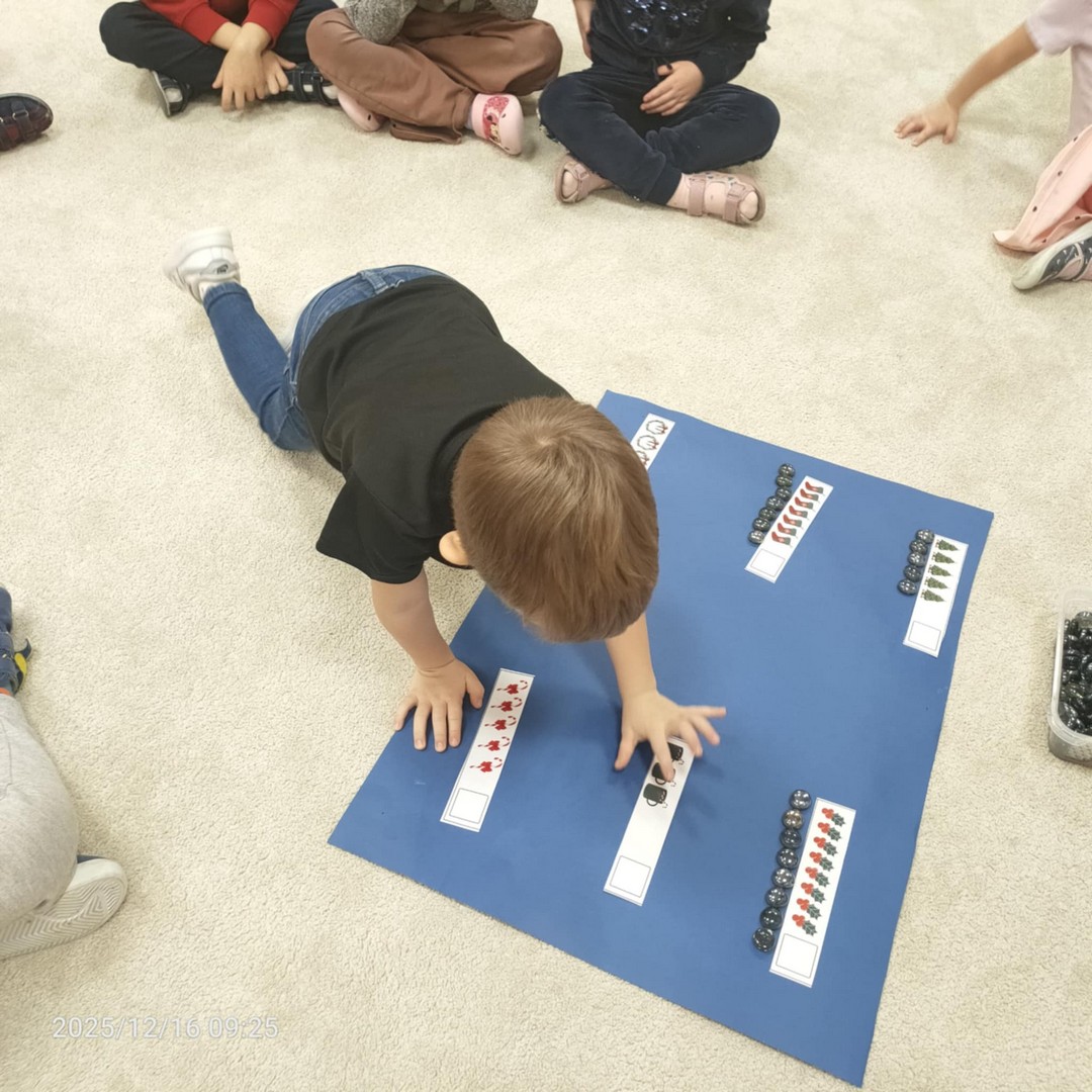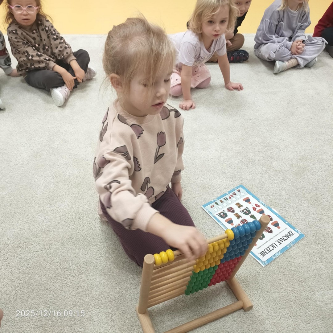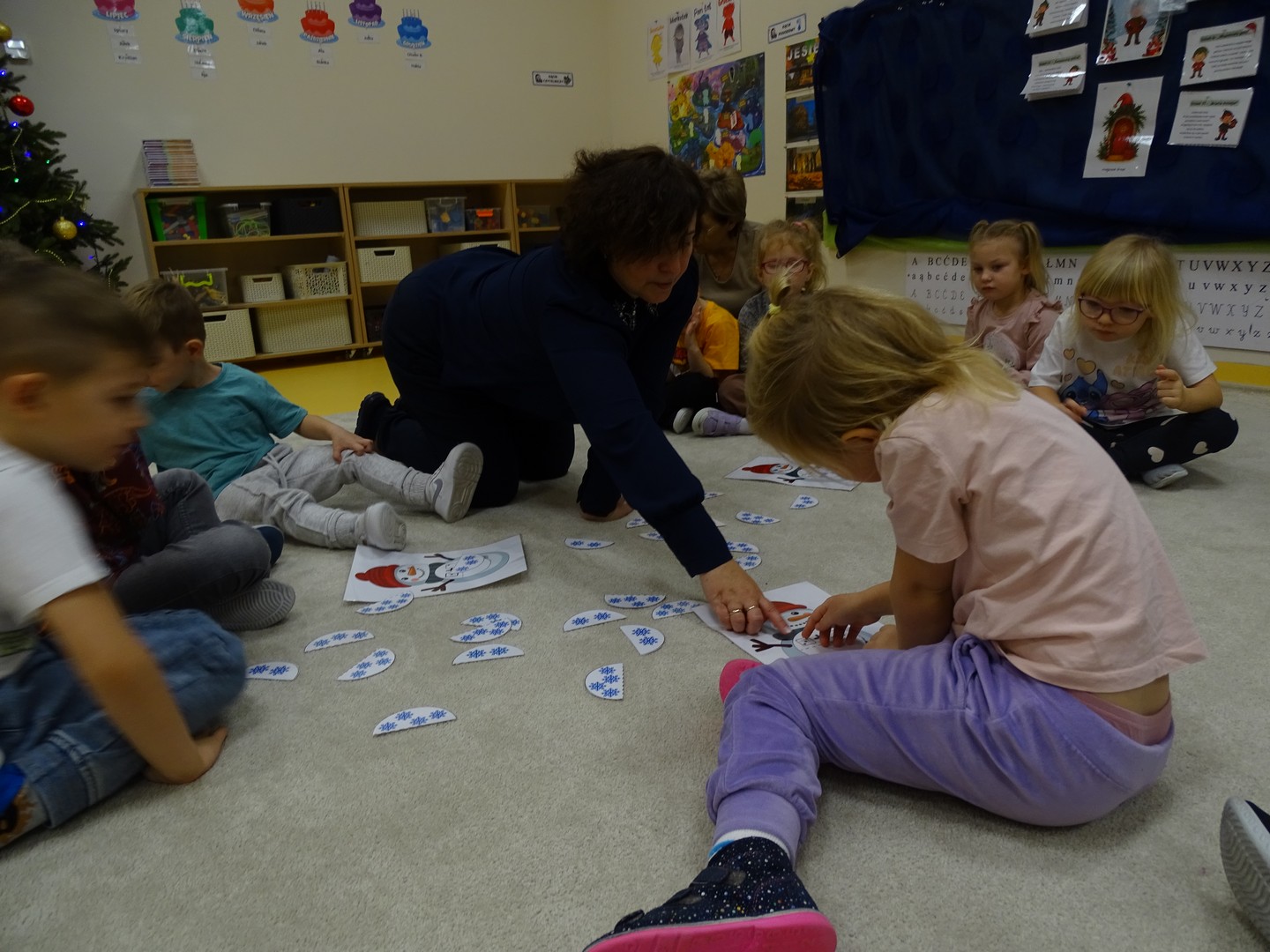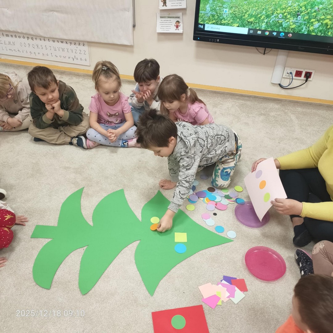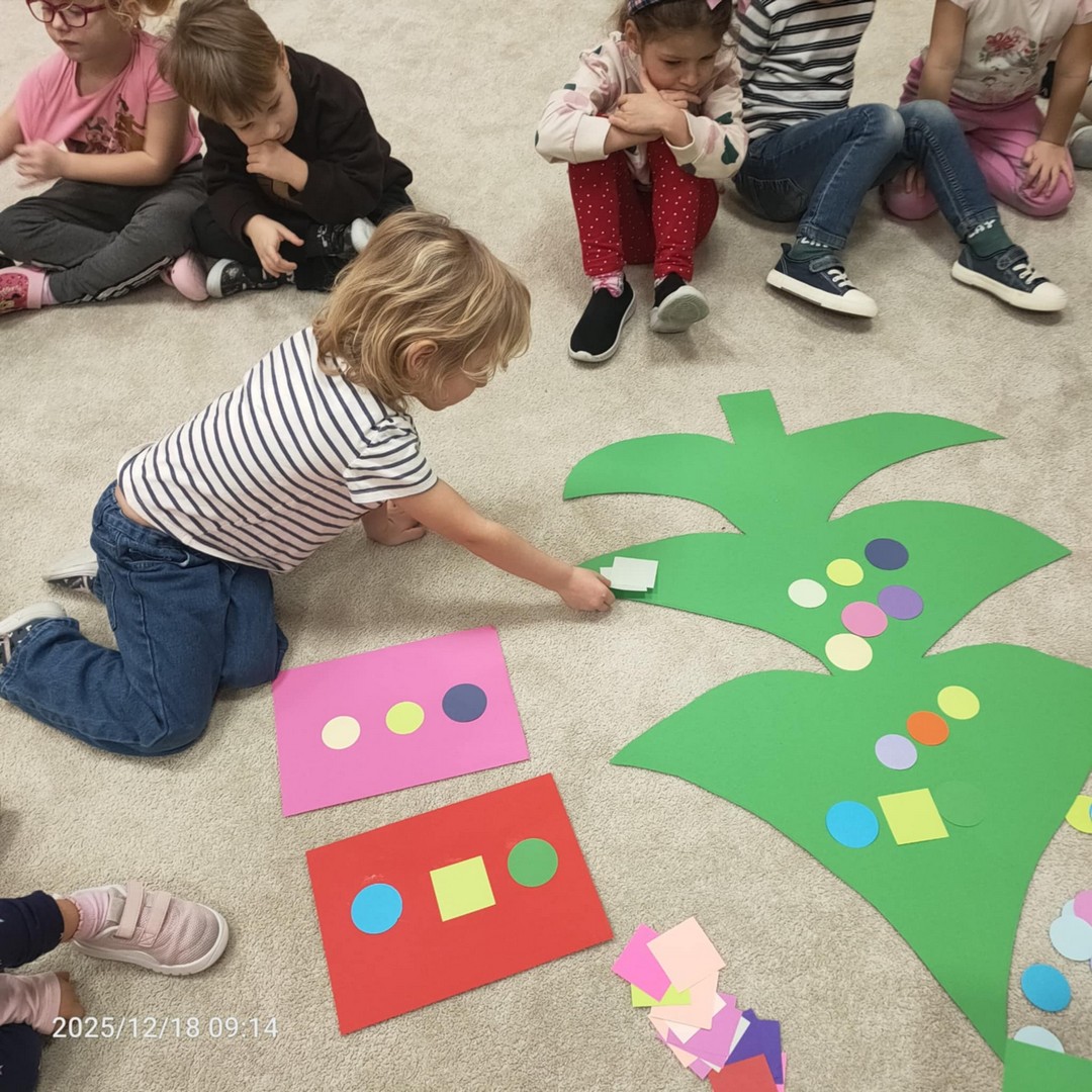 W grudniu w grupie "Jeżyki" we wszystkie wtorki odbywały się grudniowe matematyczne zabawy. Dzieci przeliczały śnieżynki, liczyły na liczydle, układały kryształki oraz brały udział w zabawach na spostrzegawczość. Miały również zabawy matematyczne, podczas których rzucały kostką i układały figury geometryczne – koło, trójkąt i kwadrat. Dzieci ozdobiły choinkę figurami geometrycznymi, co pozwoliło im utrwalić znajomość kształtów. Podczas zajęć wyszukiwały na sali przedmioty w kształcie koła, trójkąta oraz kwadratu. Wszystkie zabawy miały na celu rozwijanie spostrzegawczości, liczenia i poznawania geometrycznych figur w atrakcyjnej i zabawowej formie.