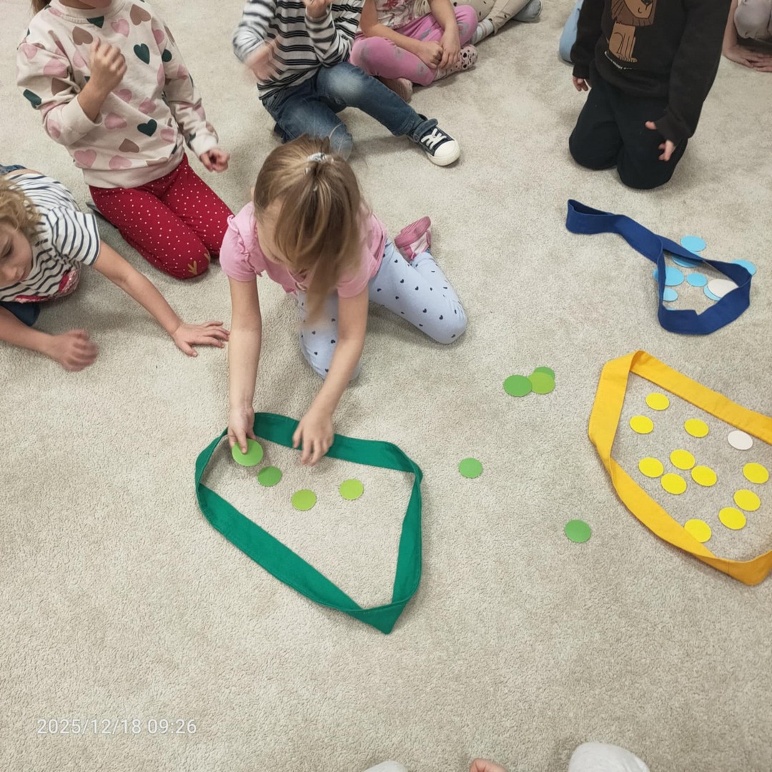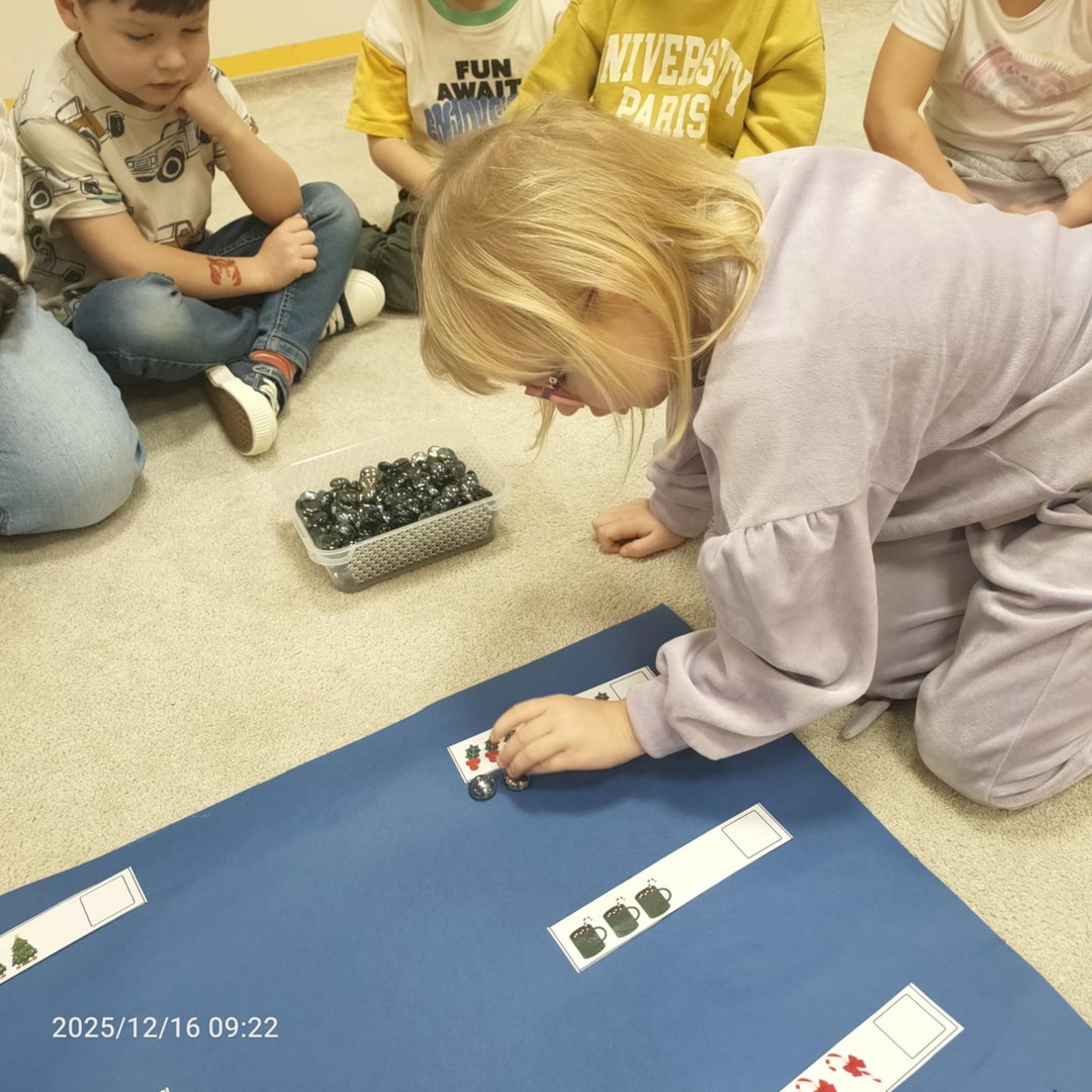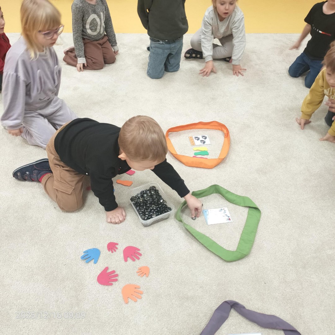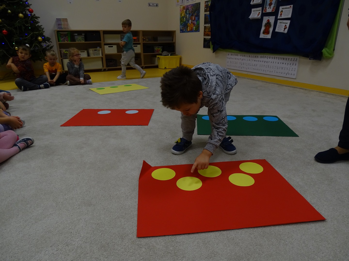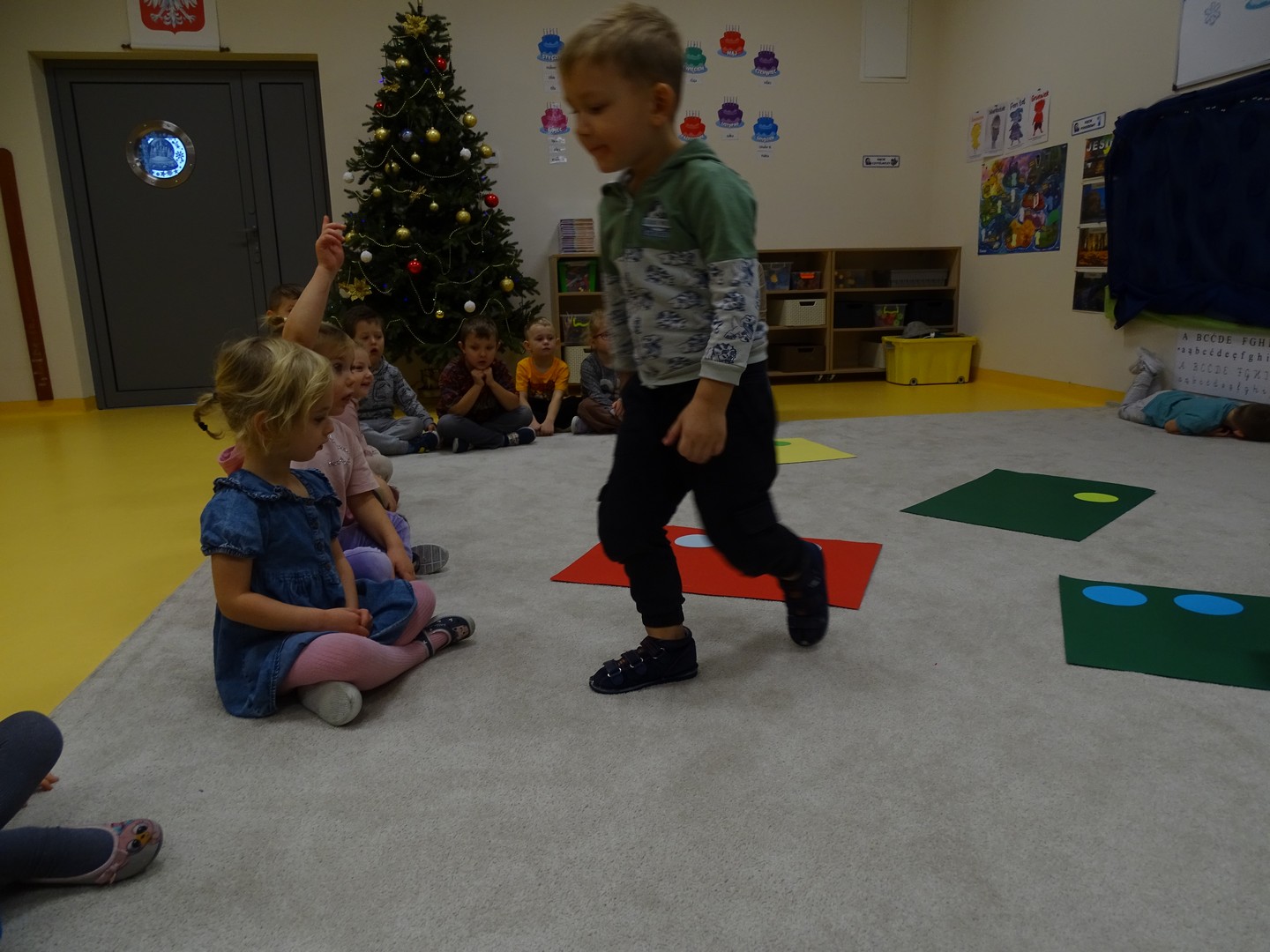 W grudniu w grupie "Jeżyki" we wszystkie wtorki odbywały się grudniowe matematyczne zabawy. Dzieci przeliczały śnieżynki, liczyły na liczydle, układały kryształki oraz brały udział w zabawach na spostrzegawczość. Miały również zabawy matematyczne, podczas których rzucały kostką i układały figury geometryczne – koło, trójkąt i kwadrat. Dzieci ozdobiły choinkę figurami geometrycznymi, co pozwoliło im utrwalić znajomość kształtów. Podczas zajęć wyszukiwały na sali przedmioty w kształcie koła, trójkąta oraz kwadratu. Wszystkie zabawy miały na celu rozwijanie spostrzegawczości, liczenia i poznawania geometrycznych figur w atrakcyjnej i zabawowej formie.