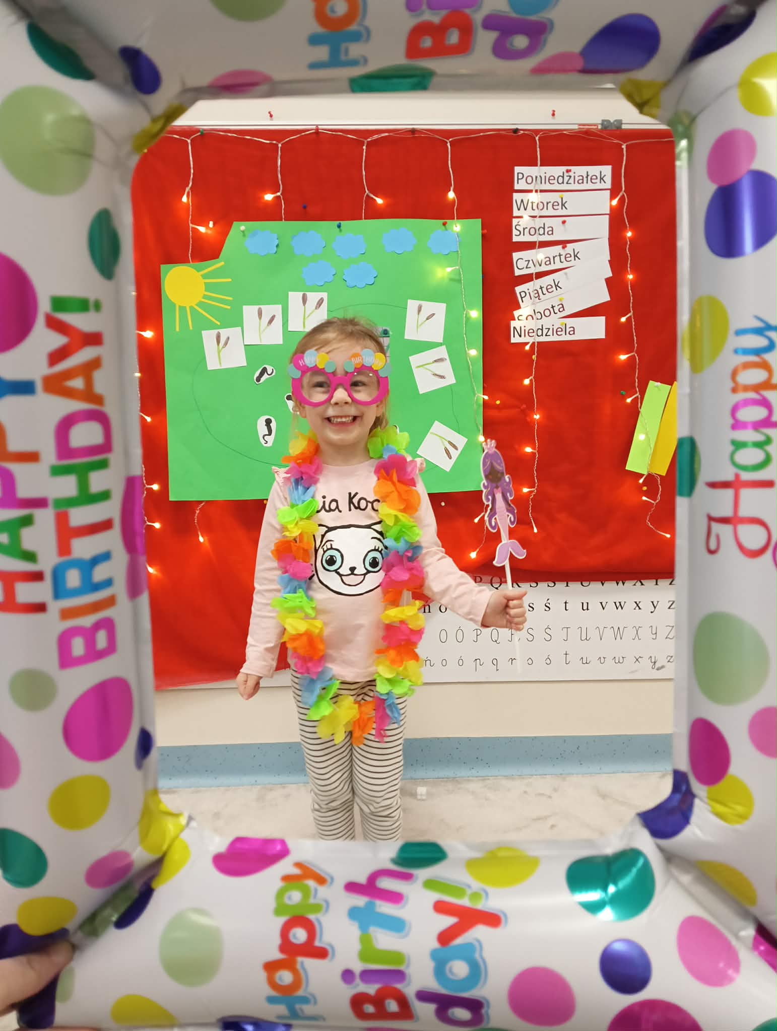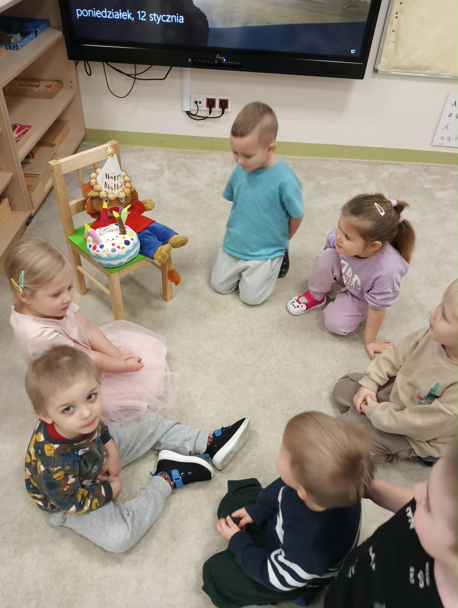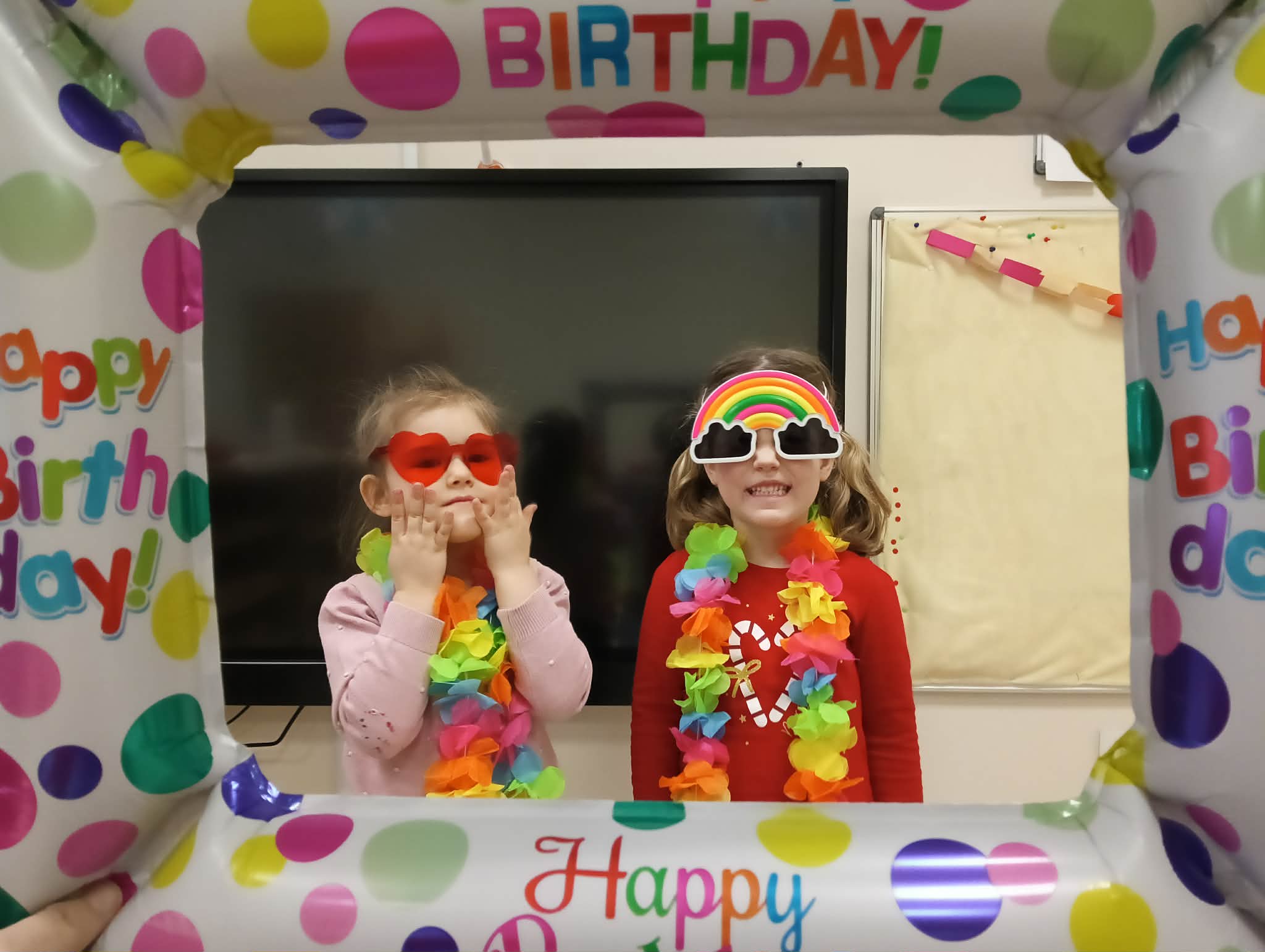 W naszym przedszkolu odbyły się wyjątkowe urodziny pacynki Billy’ego – wesołego lwa, który na co dzień towarzyszy dzieciom podczas zajęć języka angielskiego. Z tej okazji nie mogło zabraknąć urodzinowych atrakcji i dobrej zabawy. Billy wystąpił w kolorowej czapeczce urodzinowej, a dzieci przygotowały dla niego imponujący tort w rozmiarze XXL. Wspólnie zaśpiewaliśmy „Happy Birthday”, ćwicząc przy tym angielskie słówka związane z urodzinami, takie jak cake, candles, birthday czy party. Przedszkolaki kształtowały również umiejętność liczenia. Ważnym elementem zajęć było także wspólne czytanie książki w języku angielskim o tematyce urodzinowej. Dzieci z zainteresowaniem słuchały opowieści, poznając nowe słówka i utrwalając poznane zwroty w przyjaznej, bajkowej formie. Dużo radości sprawiła wszystkim wesoła fotobudka, w której przedszkolaki mogły zrobić pamiątkowe zdjęcia, wykorzystując zabawne akcesoria i urodzinowe dekoracje. Były to radosne lekcje, które połączyły naukę języka angielskiego, rozwijanie umiejętności matematycznych, czytelniczych oraz wspólne świętowanie.