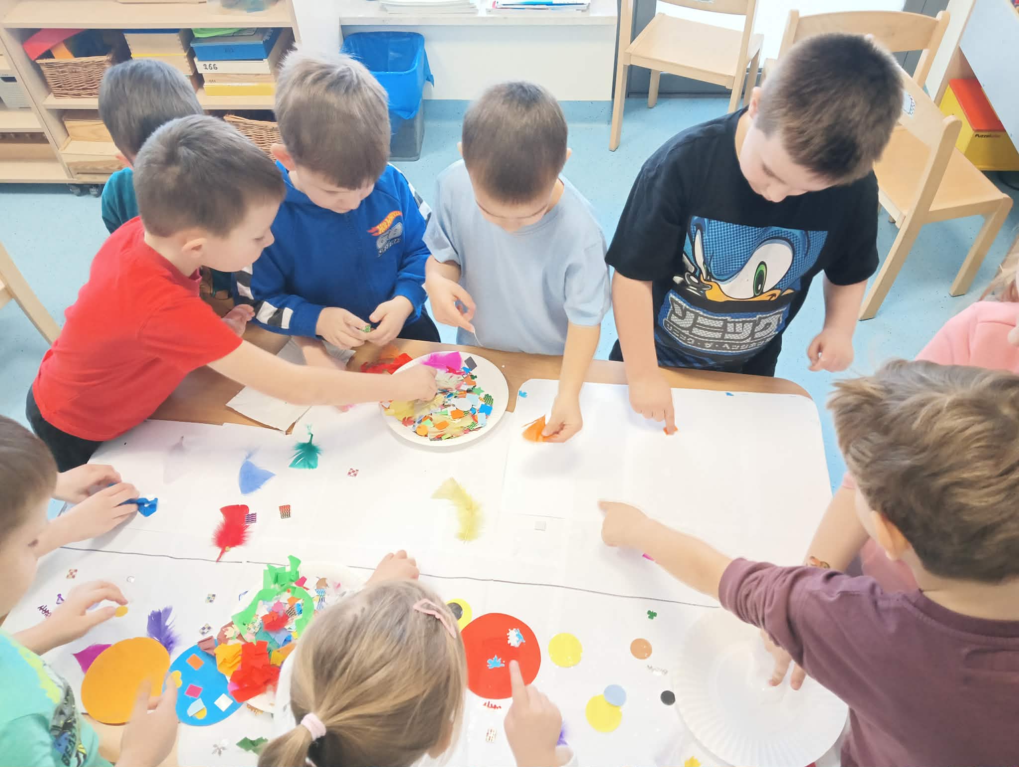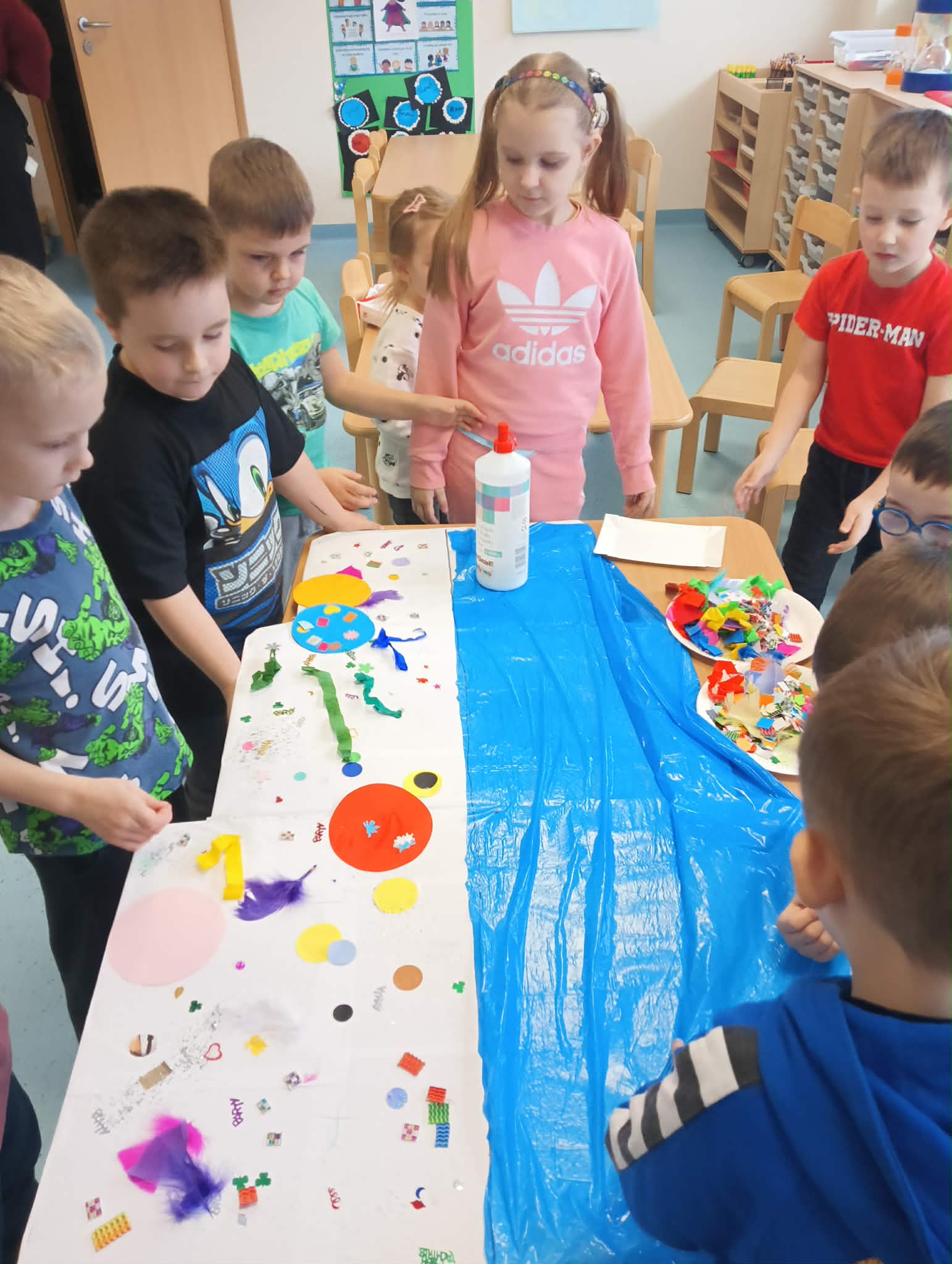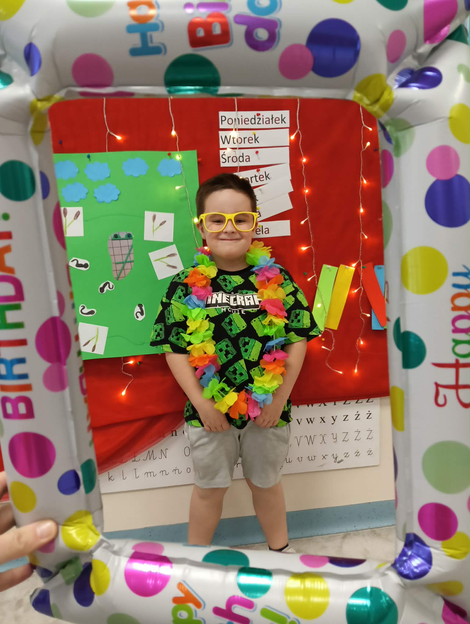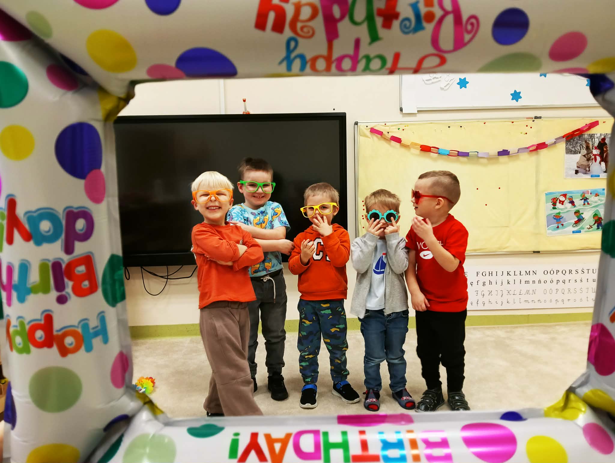 W naszym przedszkolu odbyły się wyjątkowe urodziny pacynki Billy’ego – wesołego lwa, który na co dzień towarzyszy dzieciom podczas zajęć języka angielskiego. Z tej okazji nie mogło zabraknąć urodzinowych atrakcji i dobrej zabawy. Billy wystąpił w kolorowej czapeczce urodzinowej, a dzieci przygotowały dla niego imponujący tort w rozmiarze XXL. Wspólnie zaśpiewaliśmy „Happy Birthday”, ćwicząc przy tym angielskie słówka związane z urodzinami, takie jak cake, candles, birthday czy party. Przedszkolaki kształtowały również umiejętność liczenia. Ważnym elementem zajęć było także wspólne czytanie książki w języku angielskim o tematyce urodzinowej. Dzieci z zainteresowaniem słuchały opowieści, poznając nowe słówka i utrwalając poznane zwroty w przyjaznej, bajkowej formie. Dużo radości sprawiła wszystkim wesoła fotobudka, w której przedszkolaki mogły zrobić pamiątkowe zdjęcia, wykorzystując zabawne akcesoria i urodzinowe dekoracje. Były to radosne lekcje, które połączyły naukę języka angielskiego, rozwijanie umiejętności matematycznych, czytelniczych oraz wspólne świętowanie.