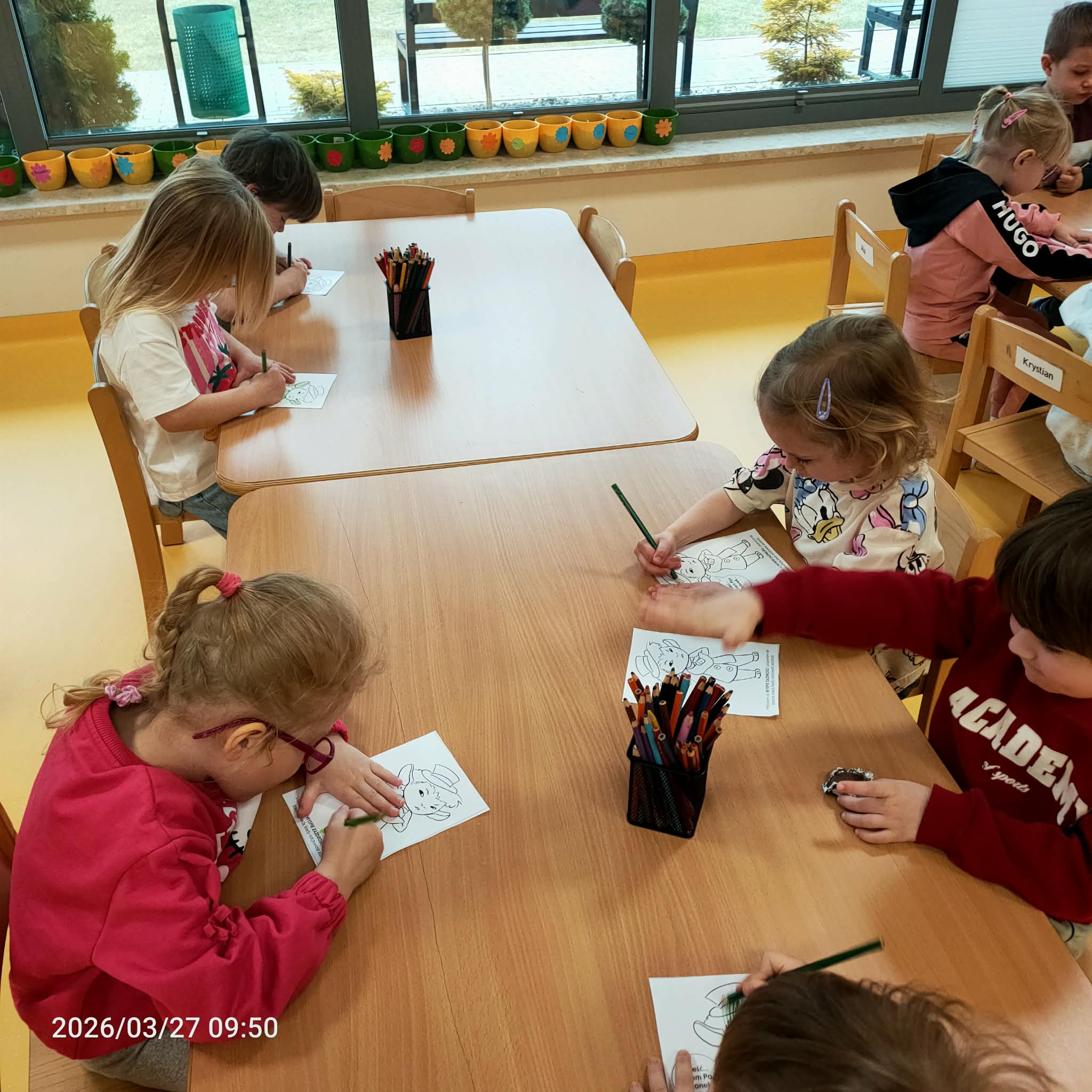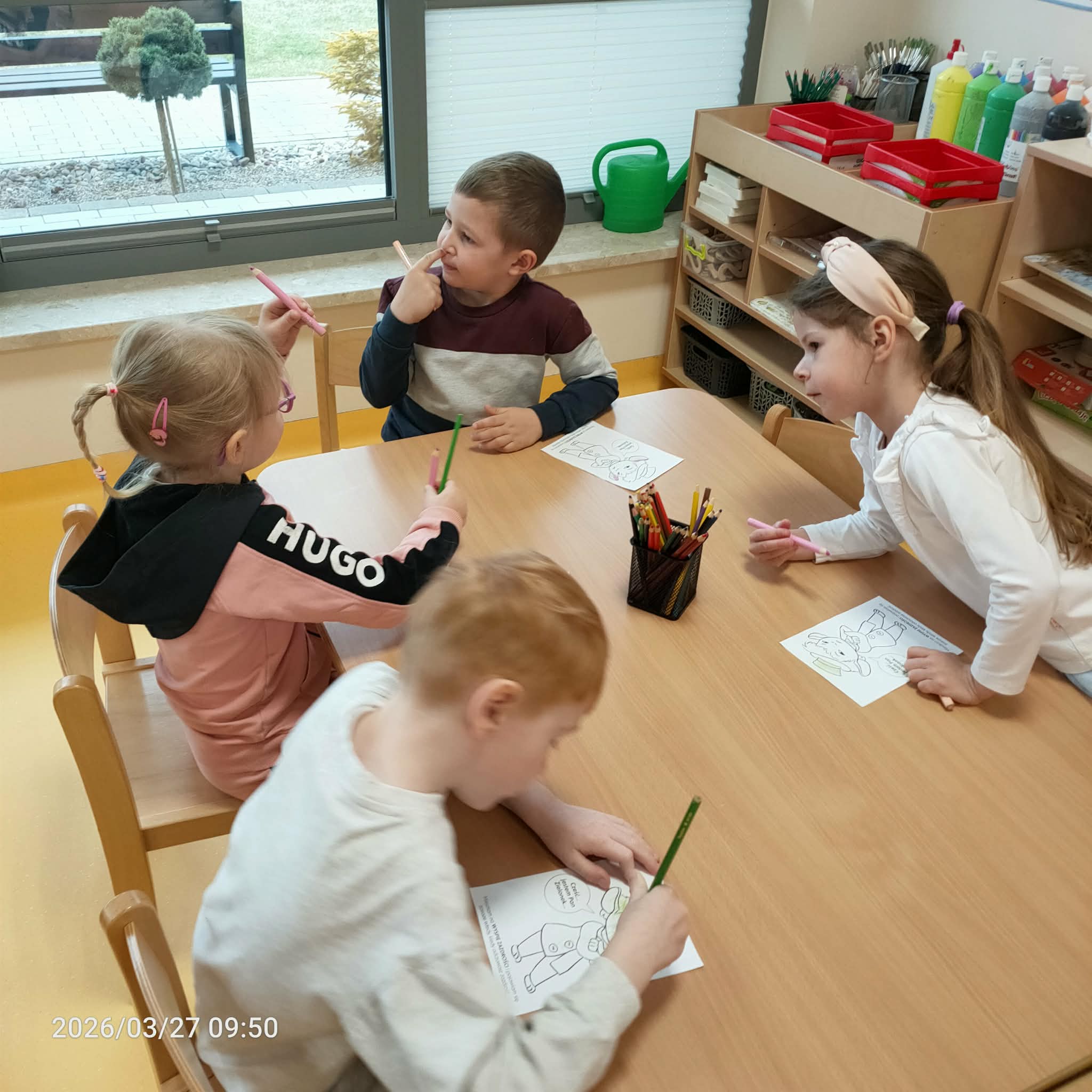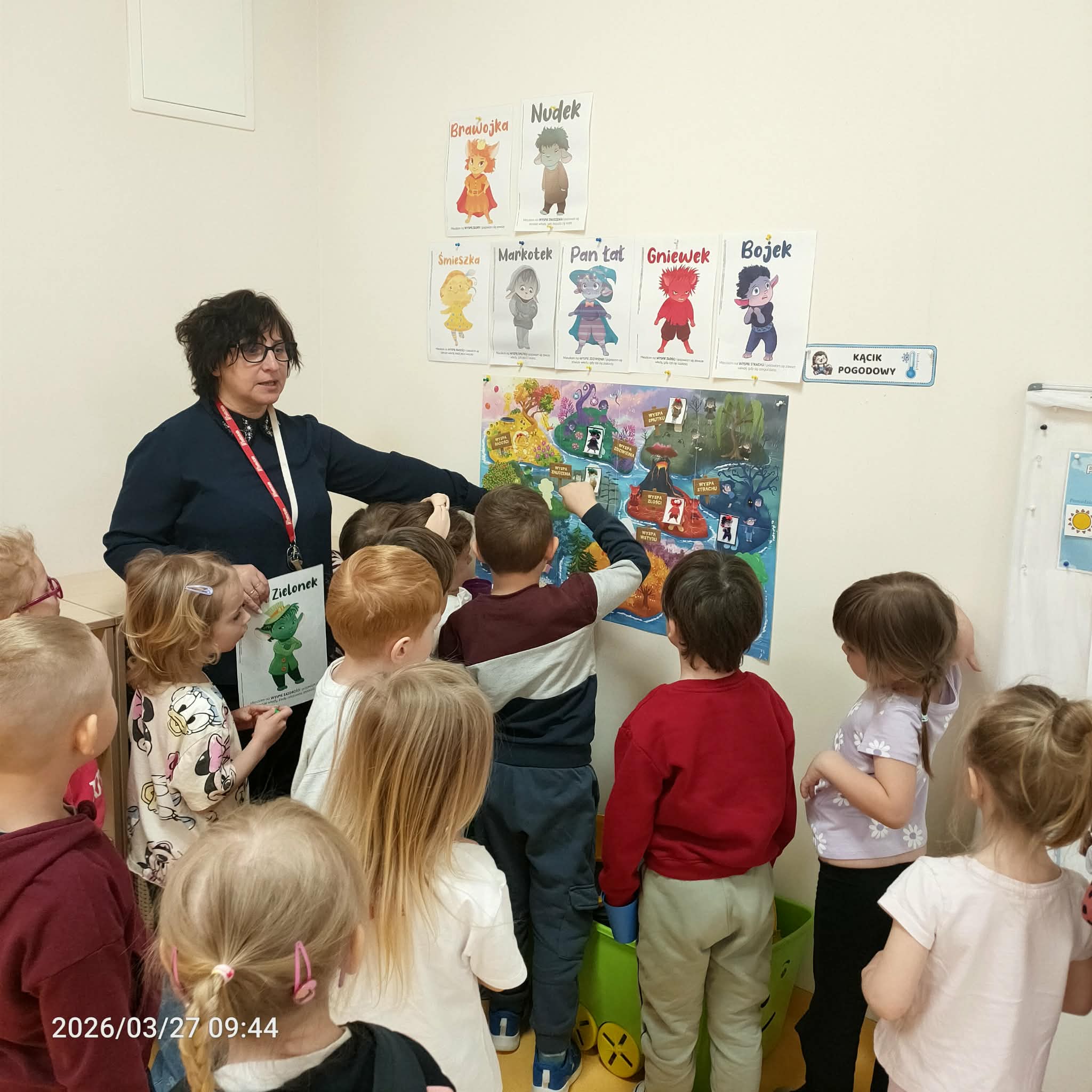 Na koniec zajęć dzieci pokolorowały obrazek pana Zielonka i wkleiły go do swoich zeszytów, co pozwoliło na utrwalenie zdobytej wiedzy i emocji. Było to kolejne ciekawe i pouczające spotkanie, które pomaga dzieciom rozpoznawać i nazywać emocje, a także uczy, jak radzić sobie z nimi w codziennym życiu.