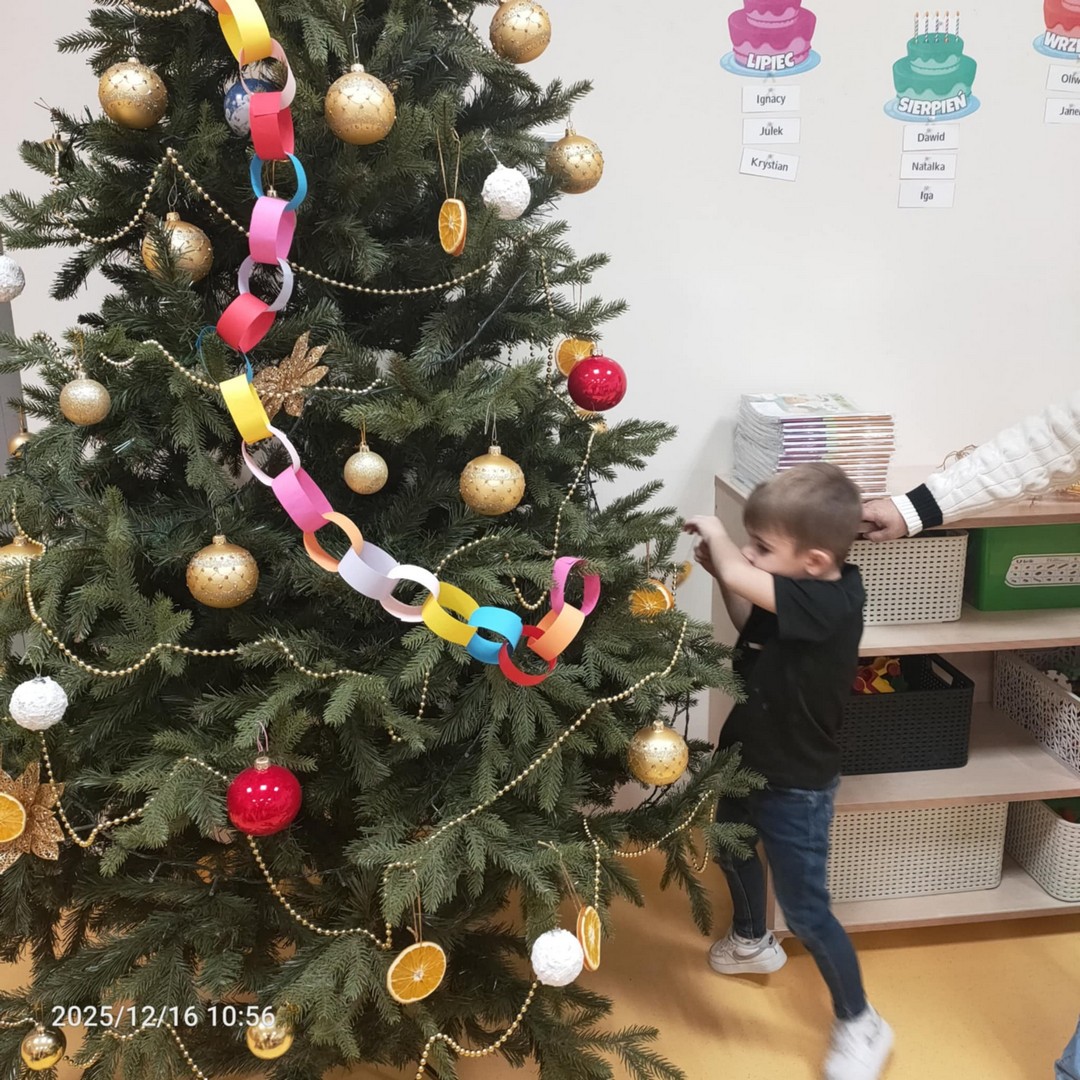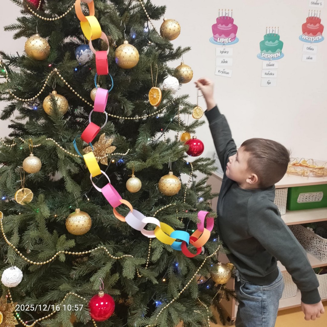 Dzieci z wielkim zaangażowaniem układały kawałki cytryn i pomarańczy na suszarce, dbając o równomierne rozłożenie. Po kilku dniach suszenia, ozdoby były gotowe i stały się pięknym, naturalnym elementem dekoracyjnym naszej świątecznej choinki.
