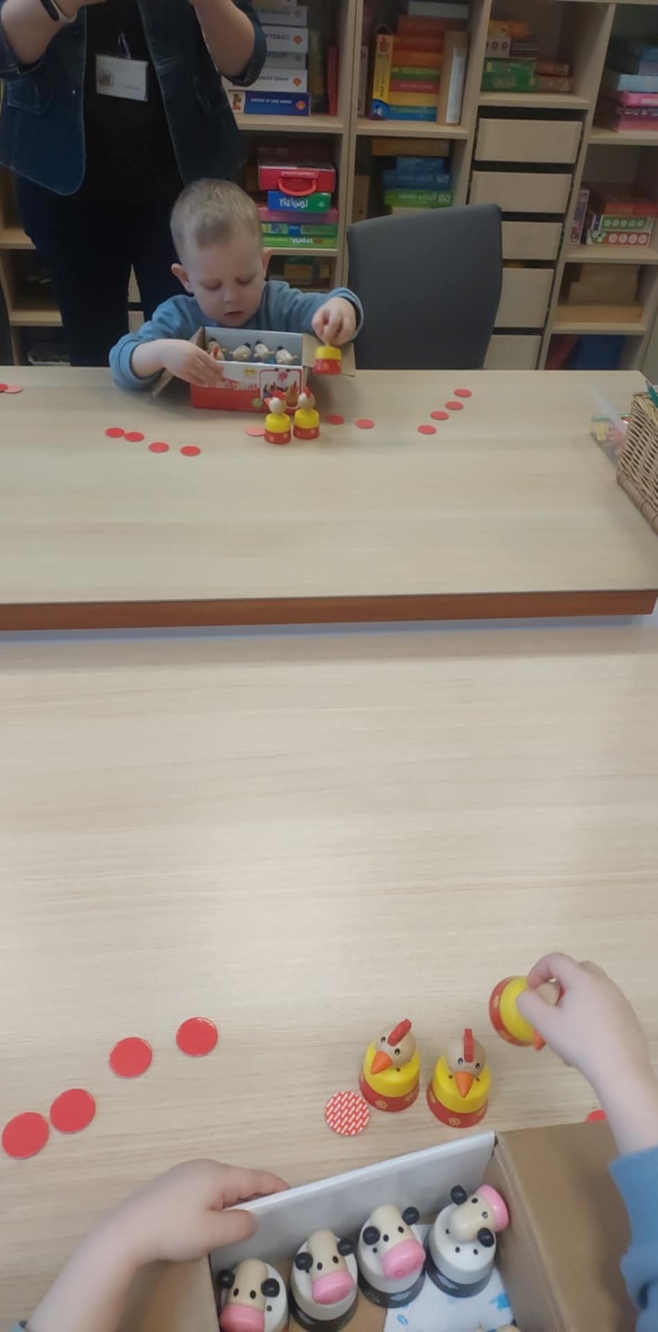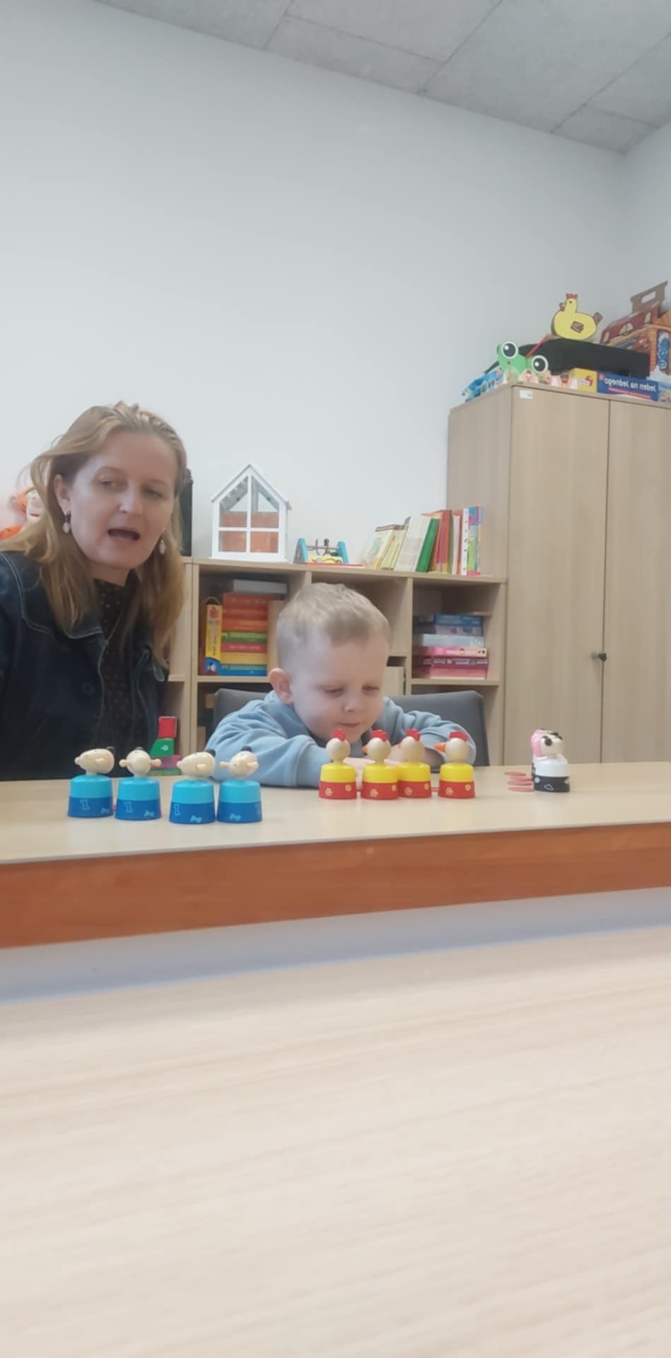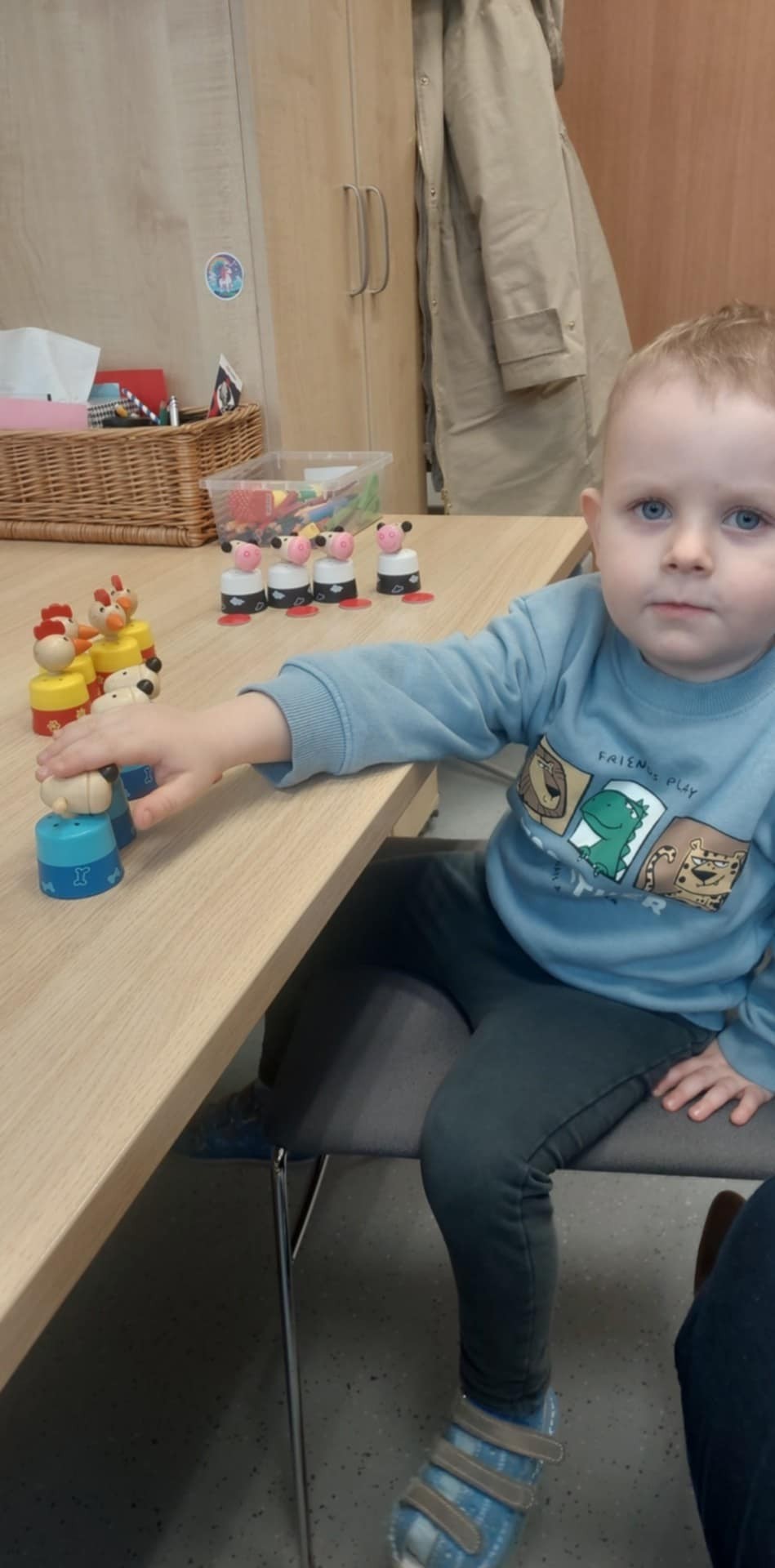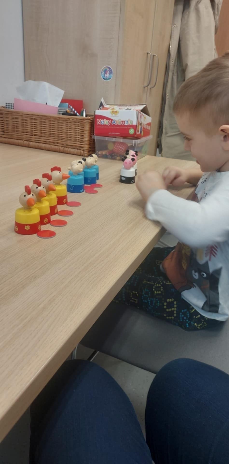 Dziś, choć śnieg w grudniu już padał, żegnaliśmy logopedycznie jesień. Maluszki ćwiczyły prawidłowy oddech. Budowaliśmy sekwencje i układanki lewopółkulowe, by rozwijać mowę. Dodatkowo naśladowaliśmy odgłosy zwierząt, karmiliśmy je. Dzieci zauważały, że niektóre z nich nie dostały nic. Były też ćwiczenia słuchowe, bo są bardzo ważne. Na zakończenie pani Asia przygotowała naklejki-niespodzianki.