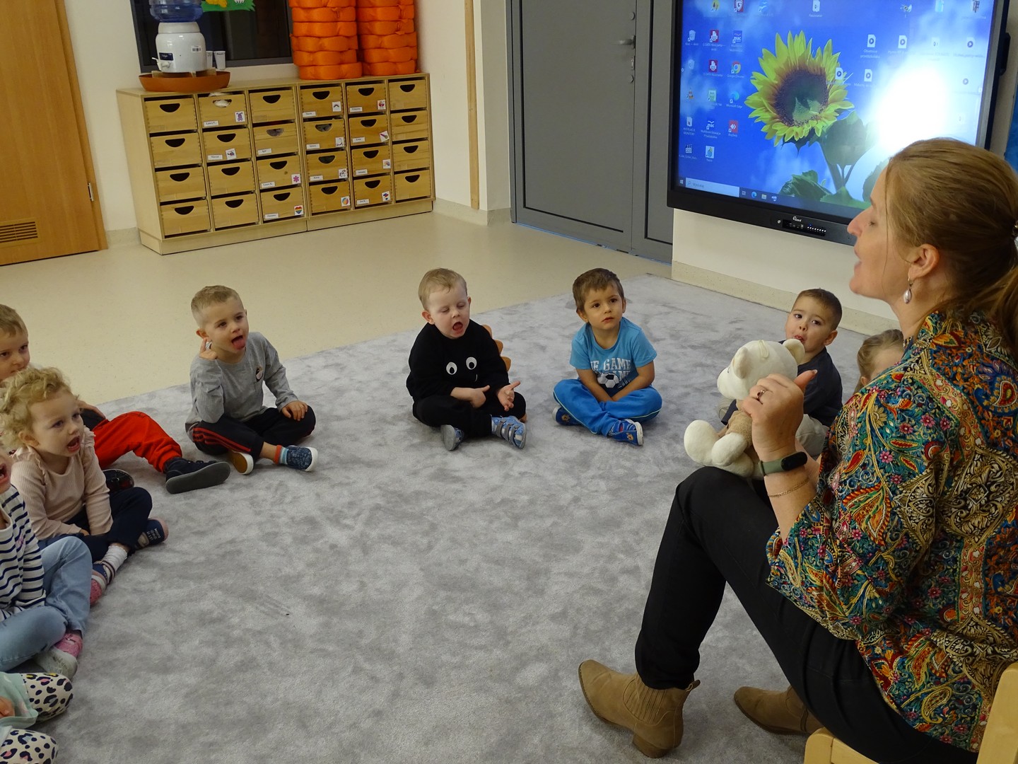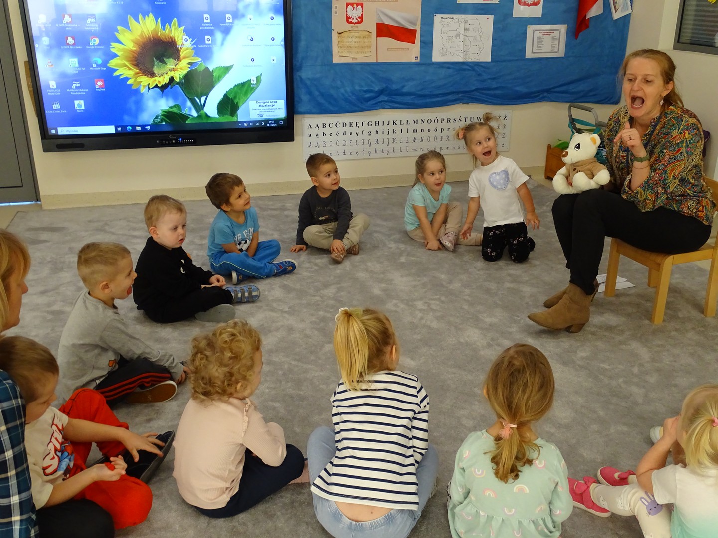 Maluszki na ćwiczeniach z logopedą