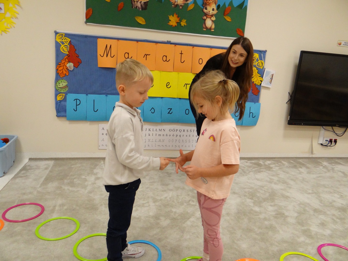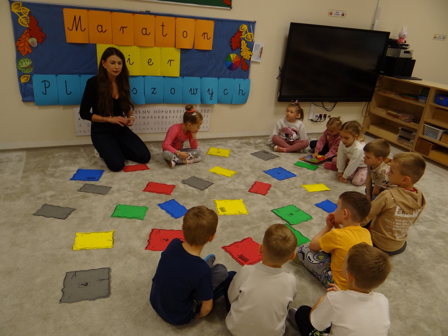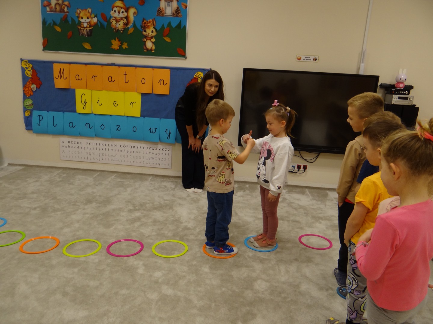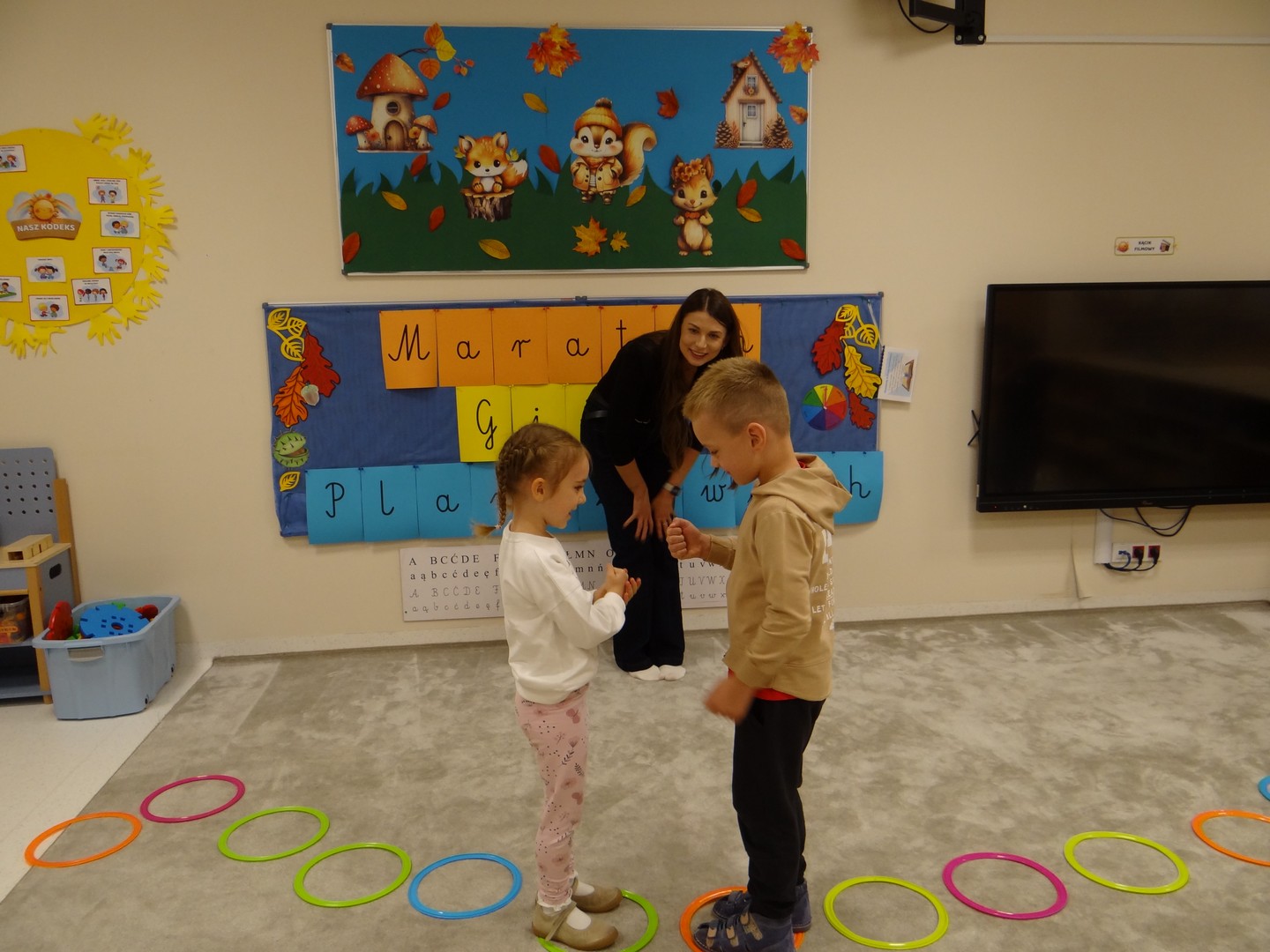 10.10.2025 r. uczestniczyliśmy w grupie w Maratonie Gier Planszowych. Dzień ten uświetniła, umiliła i pięknie zorganizowała nam mama Klarci. Dzięki Pani Agnieszce Słoneczka poznały zasady gier „Lawa”, „Papier, kamień, nożyce”. Czerpiąc radość ze wspólnej zabawy, wykazywały się szybką reakcją na polecenia oraz przestrzegały zasady „fair play”. Podczas maratonu dzieci z ogromnym zainteresowaniem obserwowały poruszającego się po macie robocika, którego samodzielnie kodowały ustalając kierunek i liczbę pól. Niesamowite emocje towarzyszyły dzieciom podczas oglądania na specjalnych okularach, przestrzennych obrazów. Na zakończenie zajęć, Słoneczka otrzymały od Pani Agnieszki upominki a same wręczyły Jej laurkę jako podziękowanie za przemile spędzony wspólnie czas. Dzięki takim wartościowym spotkaniom możemy nie tylko dobrze się bawić i uczyć ale nade wszystko jeszcze bardziej integrować ze środowiskiem rodzinnym. Po dzisiejszych zajęciach jesteśmy pewni, że planszówki mogą być świetną, rozwijającą formą spędzania czasu z dziećmi także w domu, podczas długich, jesiennych wieczorów.