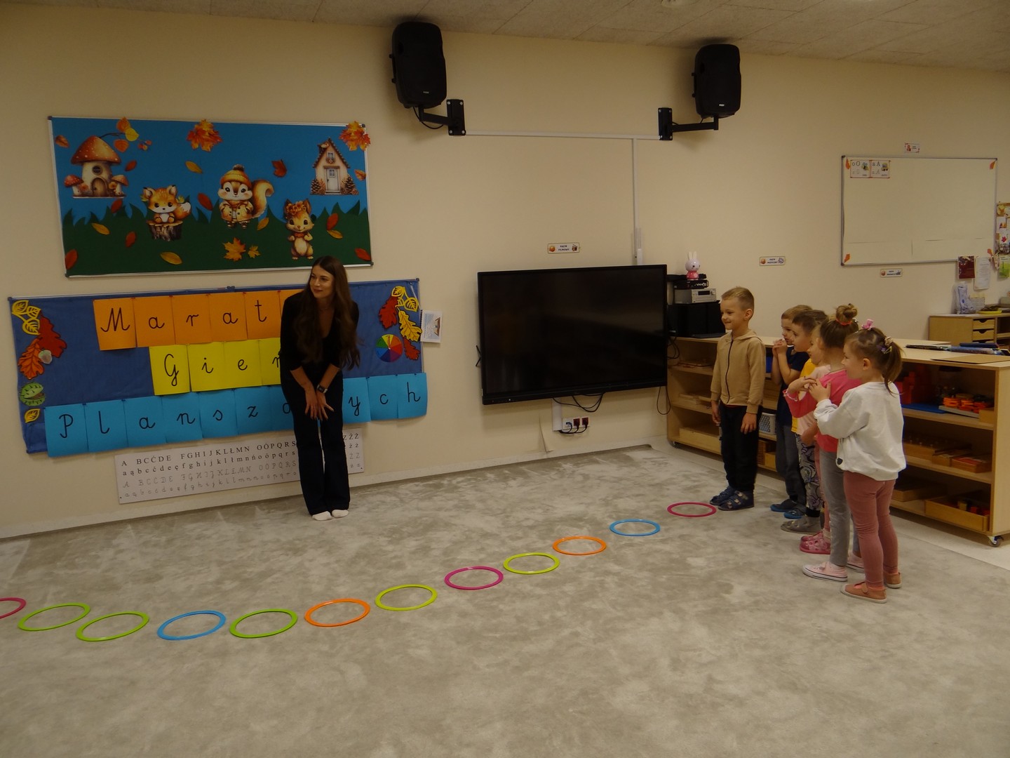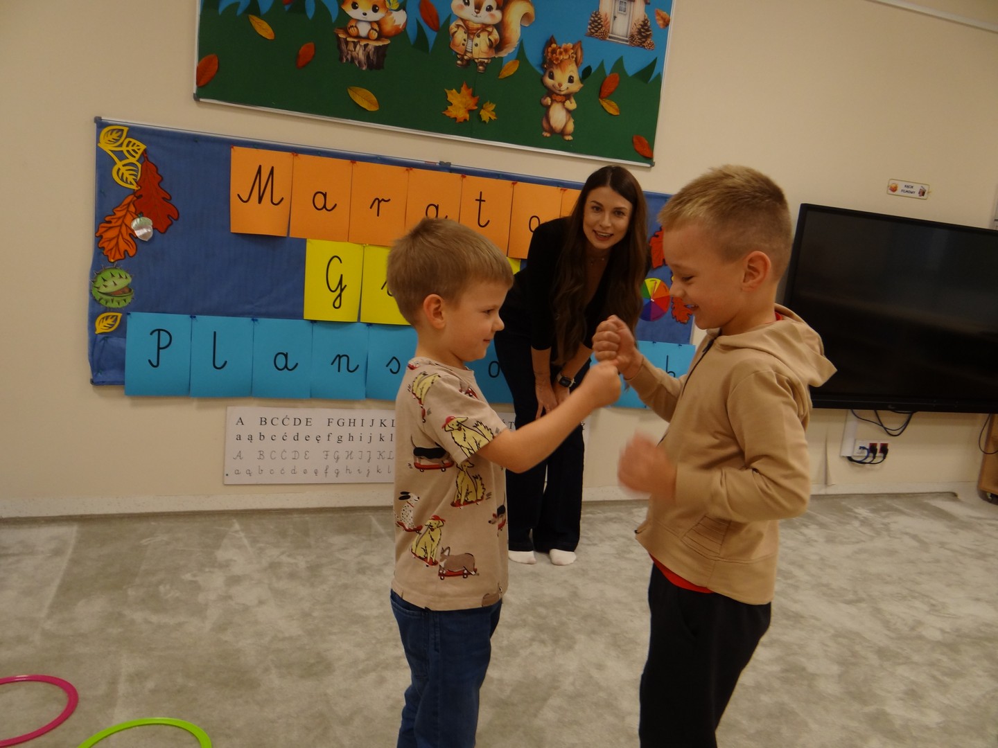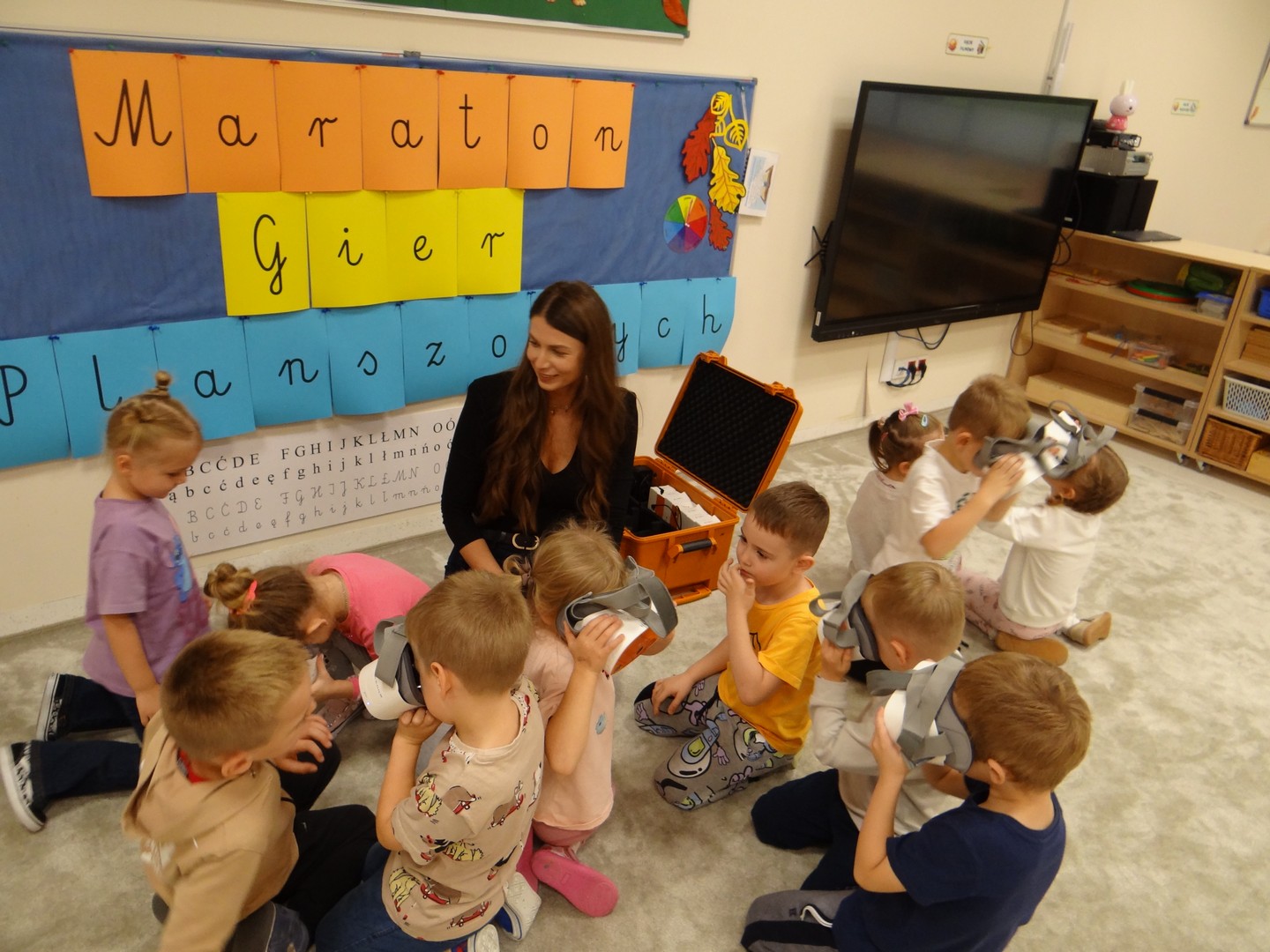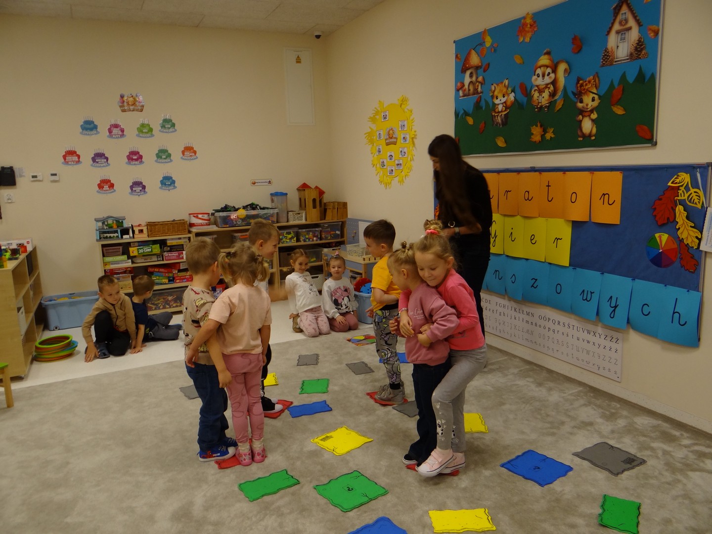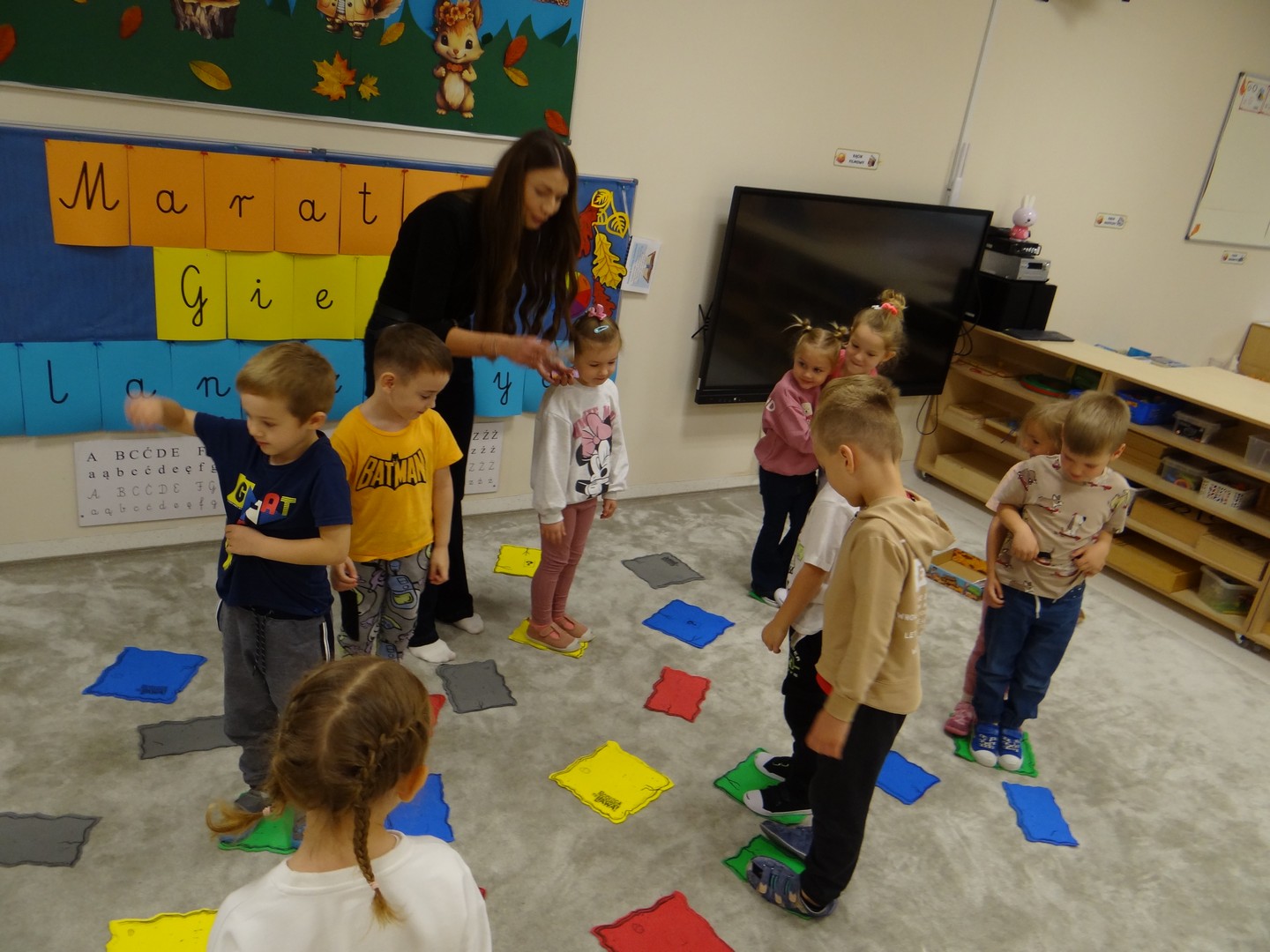 10.10.2025 r. uczestniczyliśmy w grupie w Maratonie Gier Planszowych. Dzień ten uświetniła, umiliła i pięknie zorganizowała nam mama Klarci. Dzięki Pani Agnieszce Słoneczka poznały zasady gier „Lawa”, „Papier, kamień, nożyce”. Czerpiąc radość ze wspólnej zabawy, wykazywały się szybką reakcją na polecenia oraz przestrzegały zasady „fair play”. Podczas maratonu dzieci z ogromnym zainteresowaniem obserwowały poruszającego się po macie robocika, którego samodzielnie kodowały ustalając kierunek i liczbę pól. Niesamowite emocje towarzyszyły dzieciom podczas oglądania na specjalnych okularach, przestrzennych obrazów. Na zakończenie zajęć, Słoneczka otrzymały od Pani Agnieszki upominki a same wręczyły Jej laurkę jako podziękowanie za przemile spędzony wspólnie czas. Dzięki takim wartościowym spotkaniom możemy nie tylko dobrze się bawić i uczyć ale nade wszystko jeszcze bardziej integrować ze środowiskiem rodzinnym. Po dzisiejszych zajęciach jesteśmy pewni, że planszówki mogą być świetną, rozwijającą formą spędzania czasu z dziećmi także w domu, podczas długich, jesiennych wieczorów.