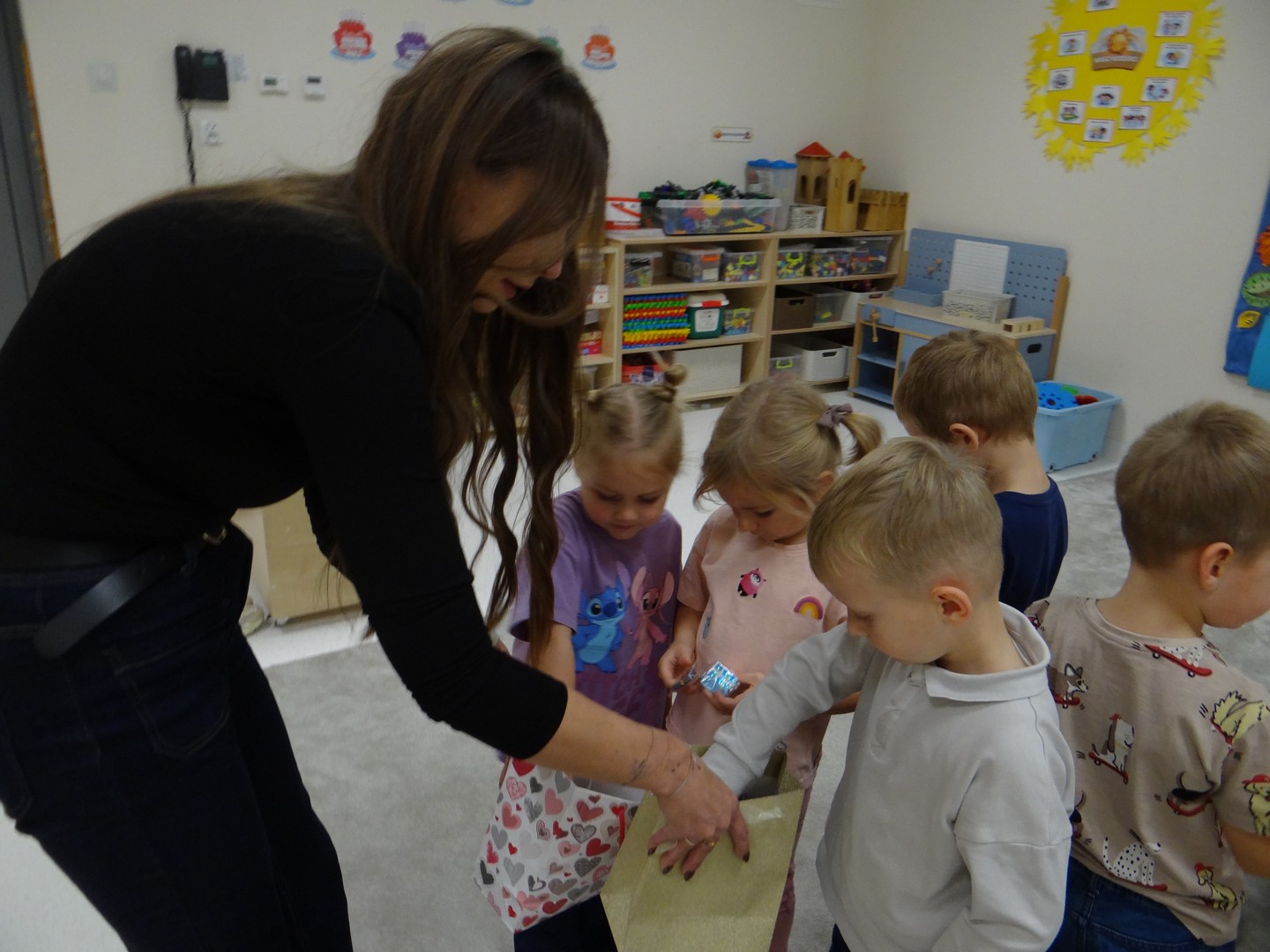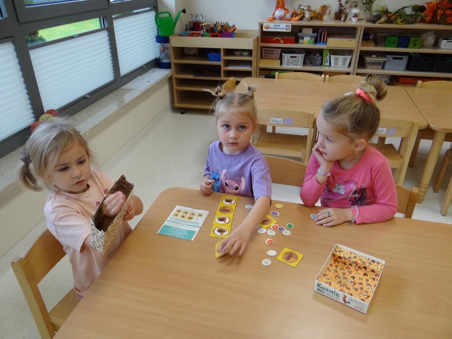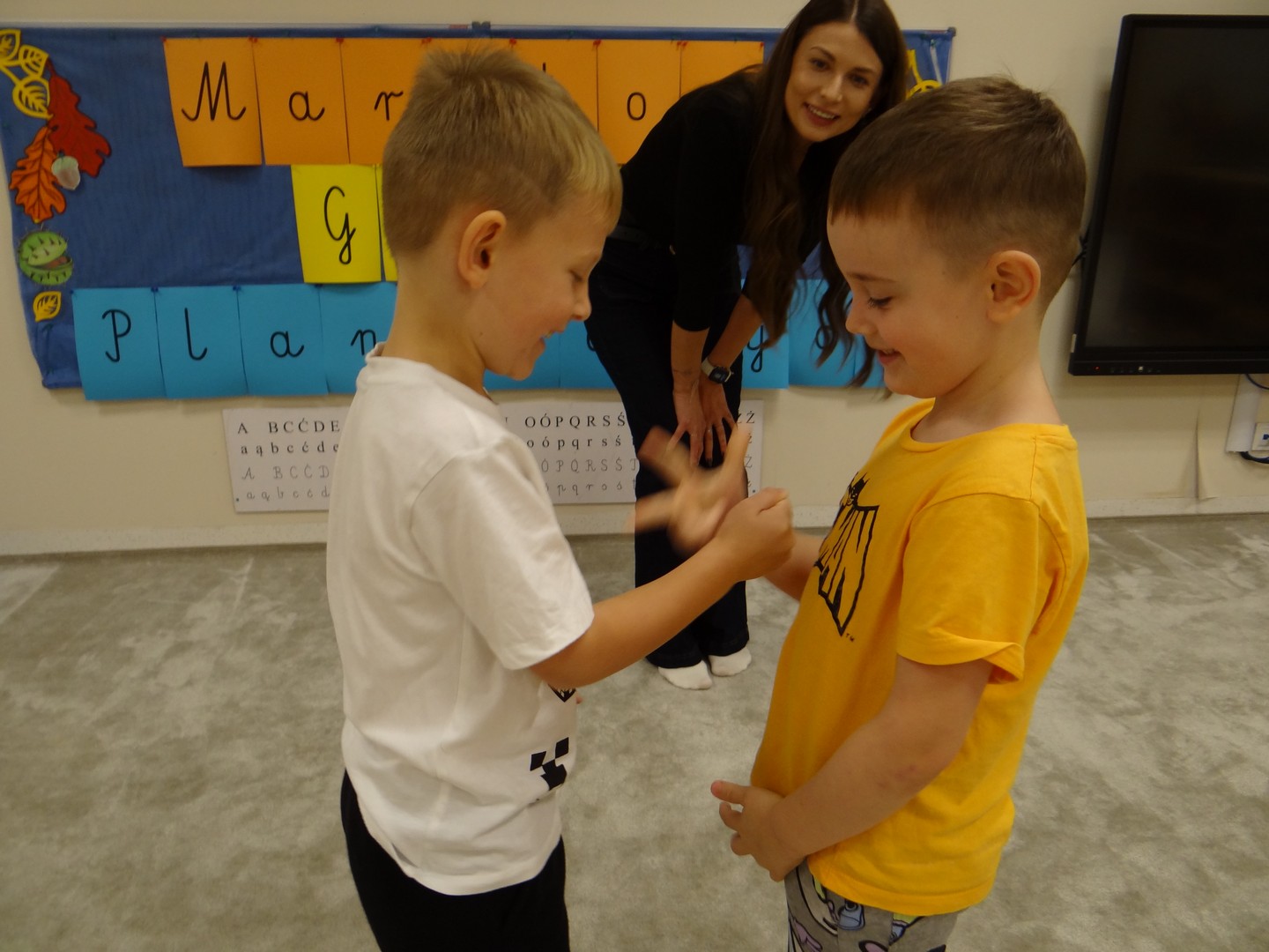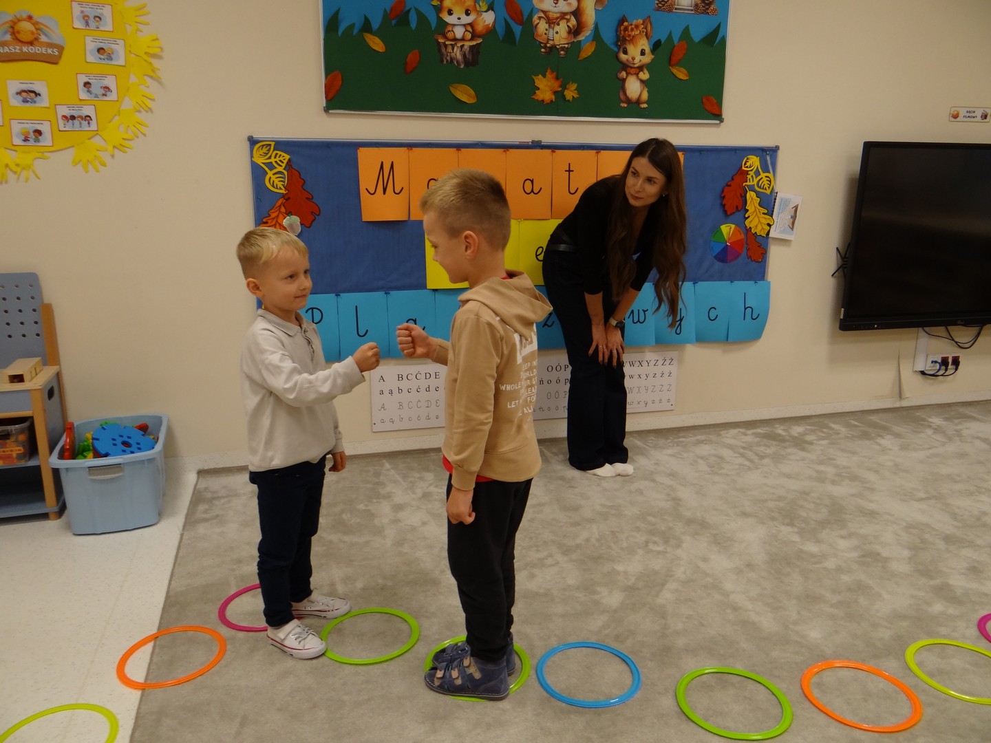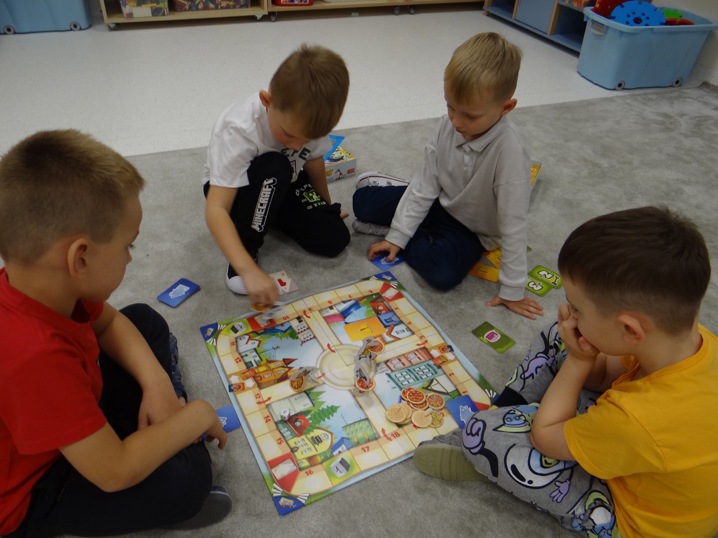10.10.2025 r. uczestniczyliśmy w grupie w Maratonie Gier Planszowych. Dzień ten uświetniła, umiliła i pięknie zorganizowała nam mama Klarci. Dzięki Pani Agnieszce Słoneczka poznały zasady gier „Lawa”, „Papier, kamień, nożyce”. Czerpiąc radość ze wspólnej zabawy, wykazywały się szybką reakcją na polecenia oraz przestrzegały zasady „fair play”. Podczas maratonu dzieci z ogromnym zainteresowaniem obserwowały poruszającego się po macie robocika, którego samodzielnie kodowały ustalając kierunek i liczbę pól. Niesamowite emocje towarzyszyły dzieciom podczas oglądania na specjalnych okularach, przestrzennych obrazów. Na zakończenie zajęć, Słoneczka otrzymały od Pani Agnieszki upominki a same wręczyły Jej laurkę jako podziękowanie za przemile spędzony wspólnie czas. Dzięki takim wartościowym spotkaniom możemy nie tylko dobrze się bawić i uczyć ale nade wszystko jeszcze bardziej integrować ze środowiskiem rodzinnym. Po dzisiejszych zajęciach jesteśmy pewni, że planszówki mogą być świetną, rozwijającą formą spędzania czasu z dziećmi także w domu, podczas długich, jesiennych wieczorów.