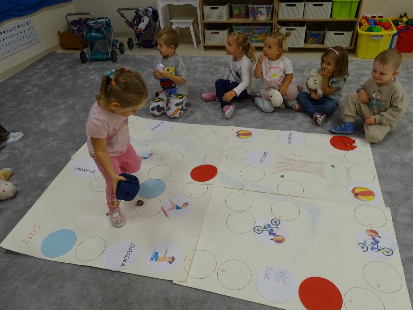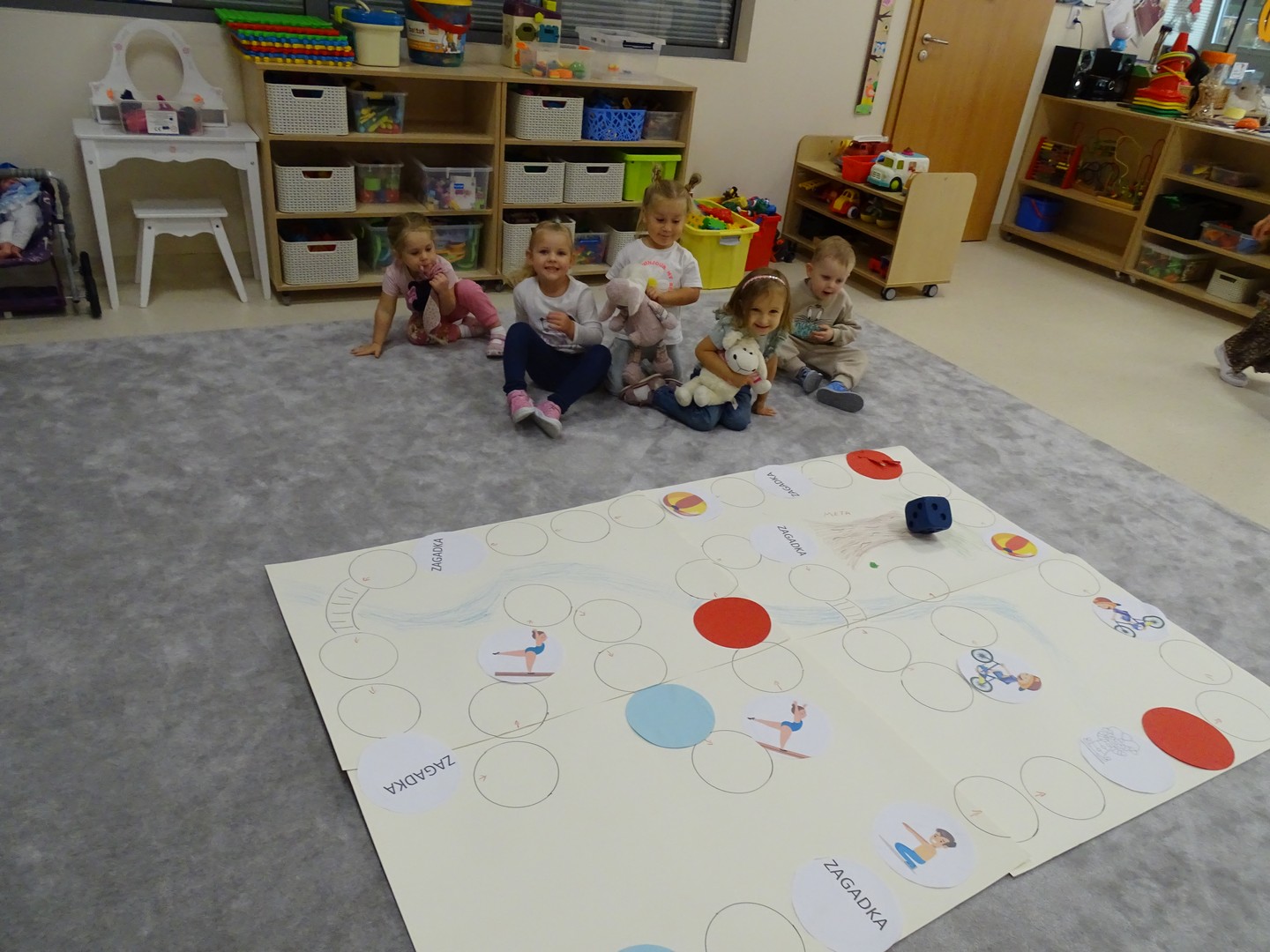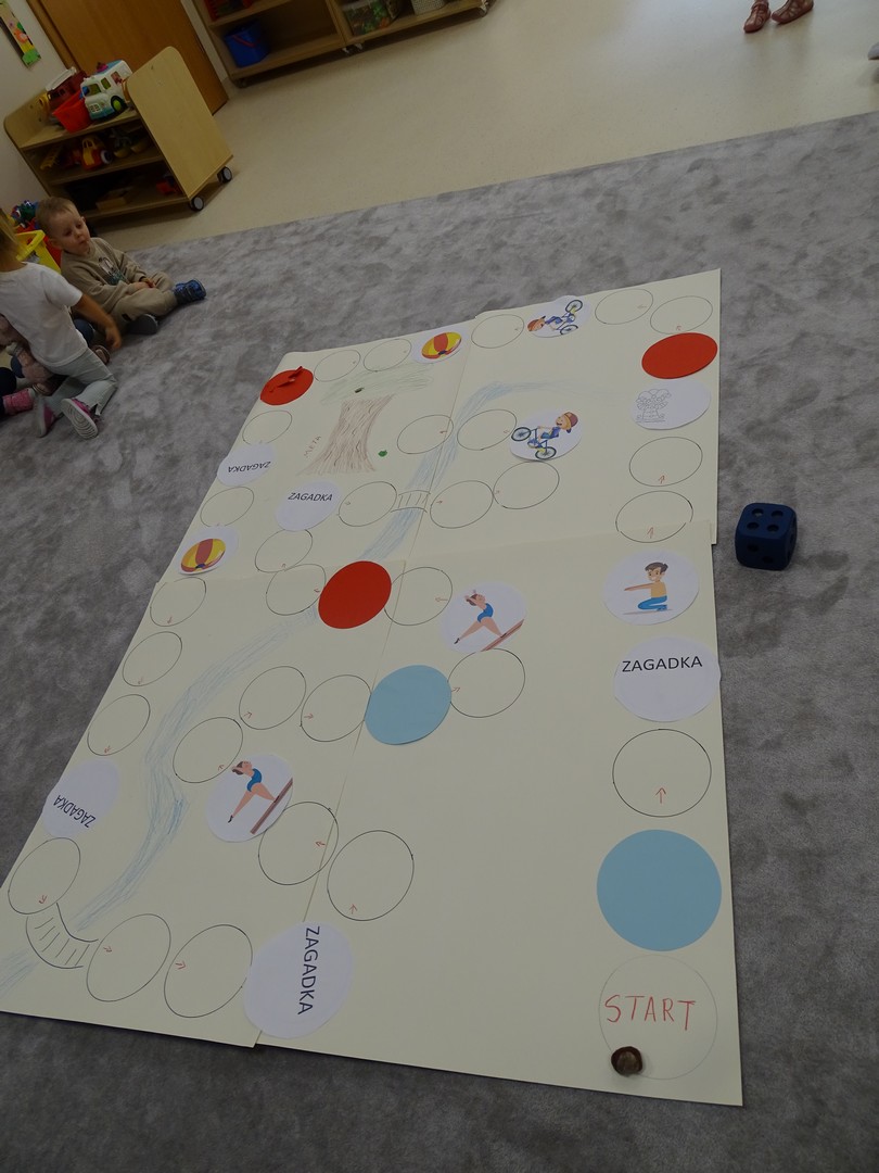 13 pażdziernika odbył się w naszwej sali Maraton Gier Planszowych. Wydarzenie to wpisane jest do Planu Rocznego Przedszkola. Świetny sposób na naukę i zabawę nawet dla maluszka. Dzieci kolejno rzucały kostką, przeliczały i wykonywały napotkane polecenia. Napewno będziemy powtarzali taką zabawę.