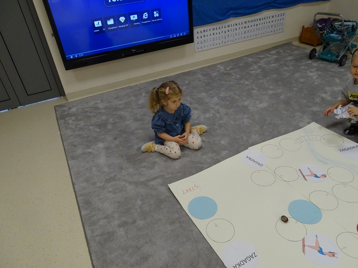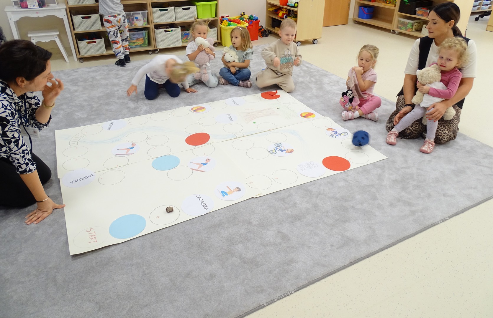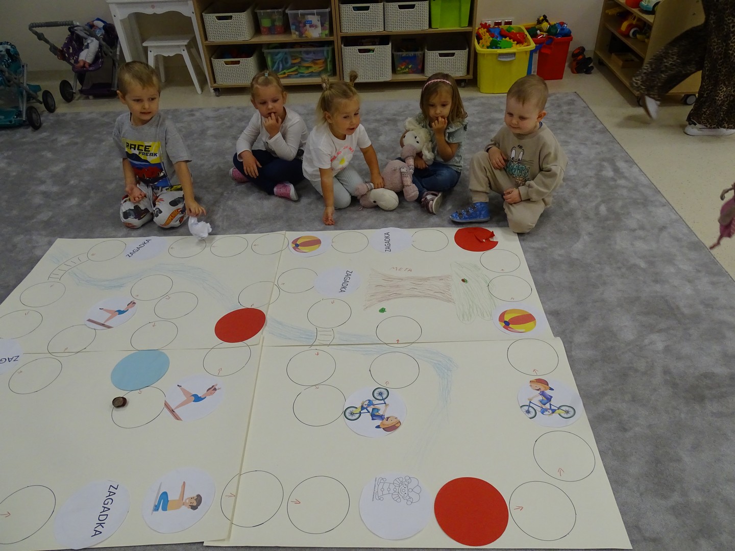 13 pażdziernika odbył się w naszwej sali Maraton Gier Planszowych. Wydarzenie to wpisane jest do Planu Rocznego Przedszkola. Świetny sposób na naukę i zabawę nawet dla maluszka. Dzieci kolejno rzucały kostką, przeliczały i wykonywały napotkane polecenia. Napewno będziemy powtarzali taką zabawę.