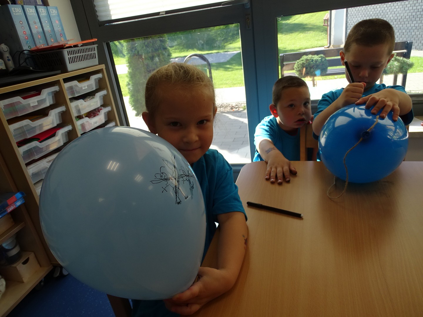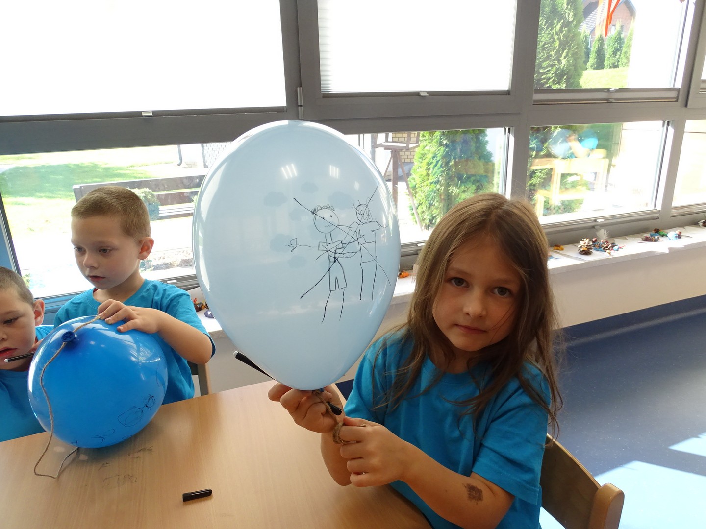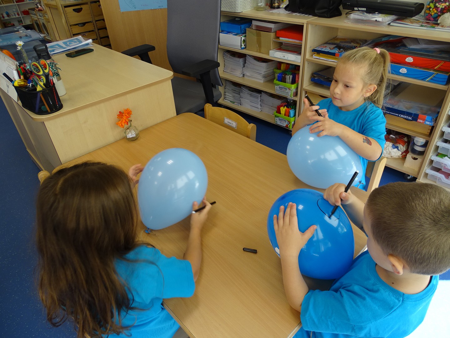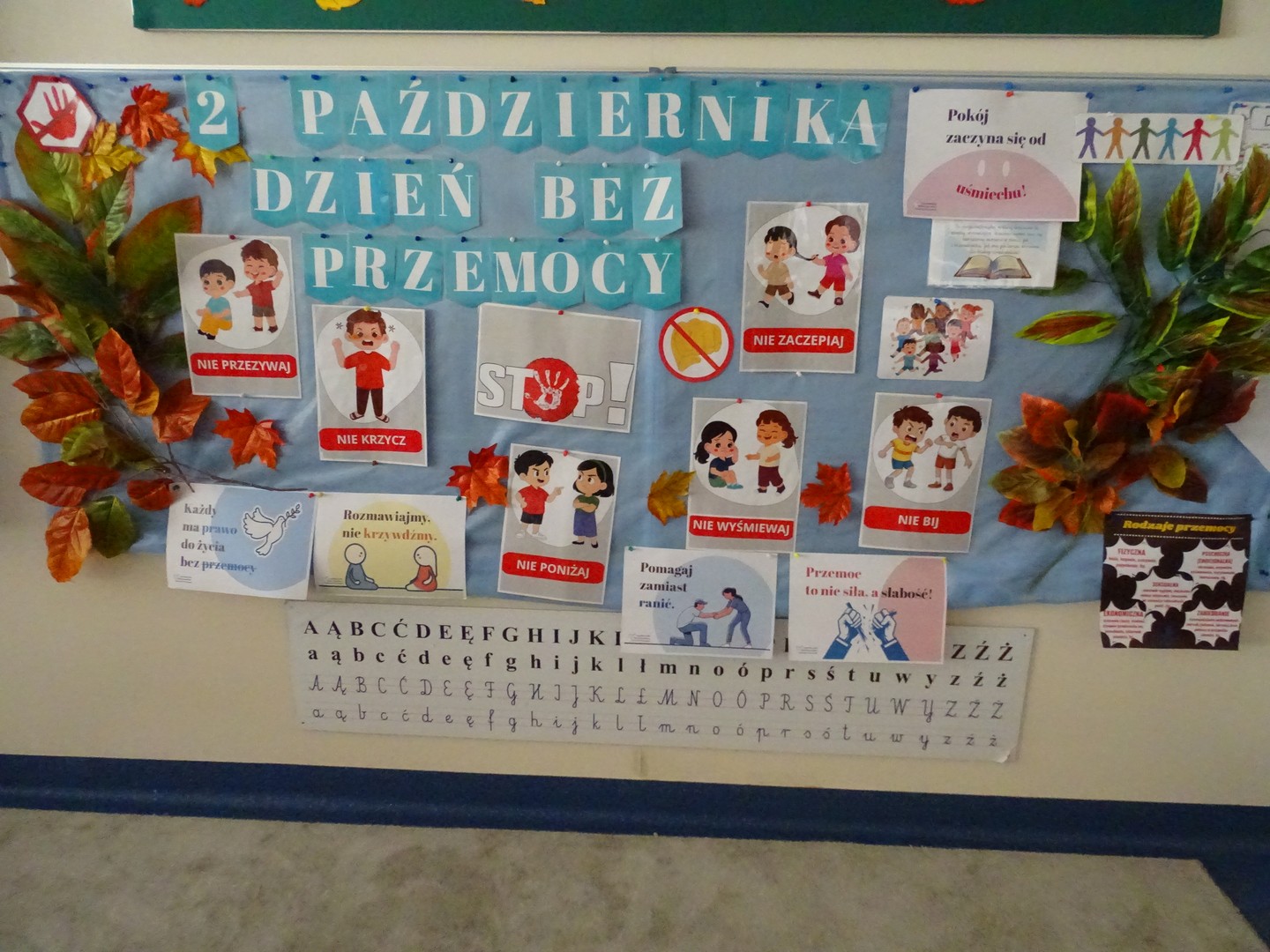 2 października 2025 r. z okazji Międzynarodowego Dnia Bez Przemocy dzieci z grupy „Sówki” uczestniczyły w specjalnej pogadance na temat przeciwdziałania przemocy i budowania pozytywnych relacji, przygotowaną przez pedagoga specjalnego panią Ewelinę Pukacz. Podczas spotkania dzieci: założyły niebieskie koszulki – symbol pokoju, bezpieczeństwa i solidarności z ofiarami przemocy, wysłuchały bajki terapeutycznej pt. “Lew Drapuś”, która porusza temat agresji i przemiany wewnętrznej, obejrzały krótki film animowany o mówieniu „STOP” przemocy oraz wzięły udział w twórczym zadaniu – rysowały na niebieskich balonach złe sytuacje, które kojarzą im się z przemocą, a następnie symbolicznie przebijały balony, mówiąc przemocy stanowcze NIE! Celem zajęć było uwrażliwienie dzieci na temat przemocy – zarówno fizycznej, jak i słownej – oraz pokazanie, że każda trudna sytuacja ma rozwiązanie, a wokół są dorośli, którzy chcą i potrafią pomóc.
