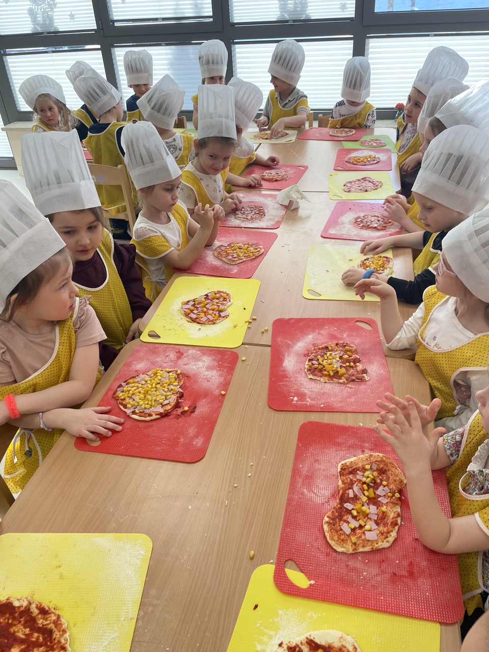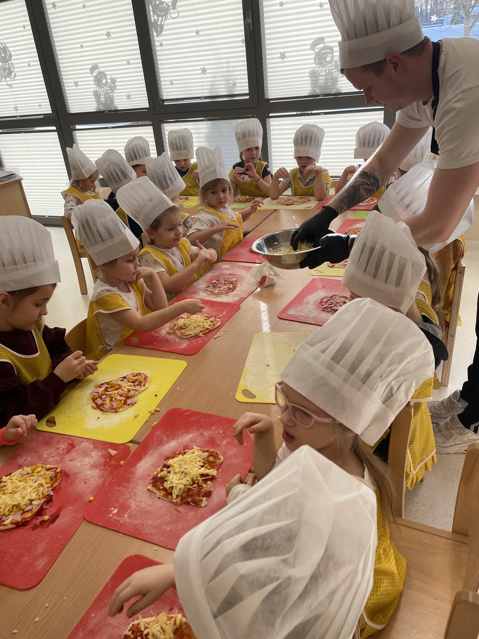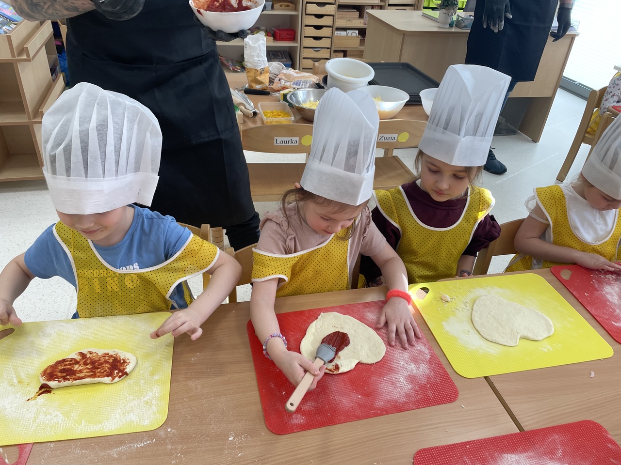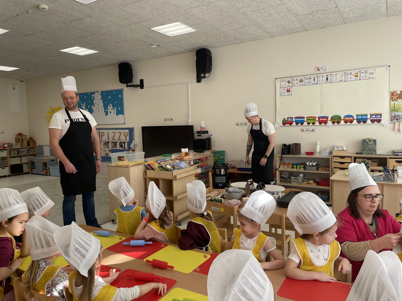 19 lutego 2026 roku w naszym przedszkolu zapachniało słoneczną Italią, a wszystko to za sprawą świętowania Międzynarodowego Dnia Pizzy. Tego dnia nasza sala zamieniła się w prawdziwą pizzerię, w której dzieci wspólnie przygotowywały ten uwielbiany przez wszystkich przysmak. Wyjątkowy charakter wydarzenia podkreśliła wizyta dwojga rodziców - tata Stasia i tata Oliwierka, którzy odwiedzili nas, by przeprowadzić profesjonalne warsztaty z pieczenia pizzy. Pod ich czujnym okiem przedszkolaki poznawały tajniki wyrabiania ciasta oraz uczyły się, jak dobierać najlepsze składniki. Każdy mały kucharz z wielkim zaangażowaniem komponował własny placek, dbając o każdy kolorowy dodatek. Po pracy nadszedł czas na najbardziej wyczekiwany punkt programu – wielką degustację. Własnoręcznie przygotowane dania smakowały wyśmienicie, a apetyty dopisywały każdemu bez wyjątku. Dzieci były niezwykle dumne ze swoich kulinarnych osiągnięć i z radością dzieliły się wrażeniami z kolegami. Serdecznie dziękujemy rodzicom za poświęcony czas oraz zorganizowanie tak pysznej i edukacyjnej zabawy. To był dzień pełen uśmiechów.