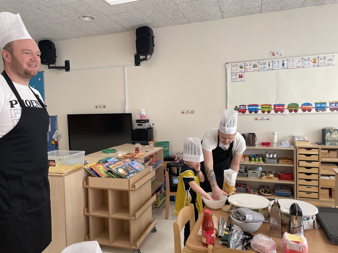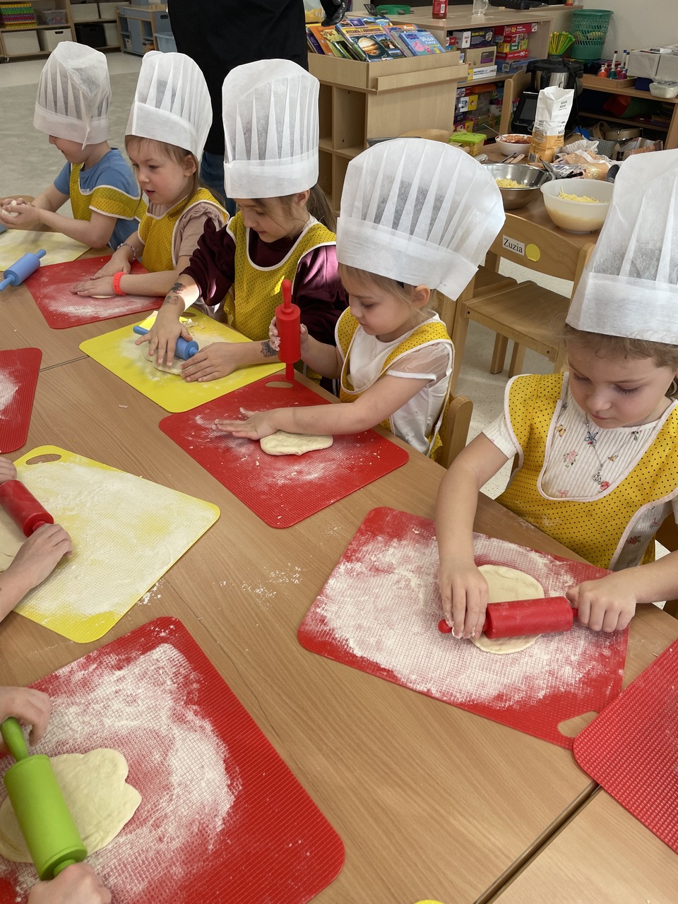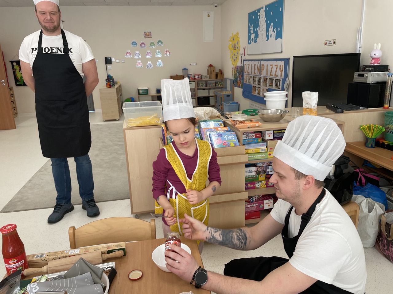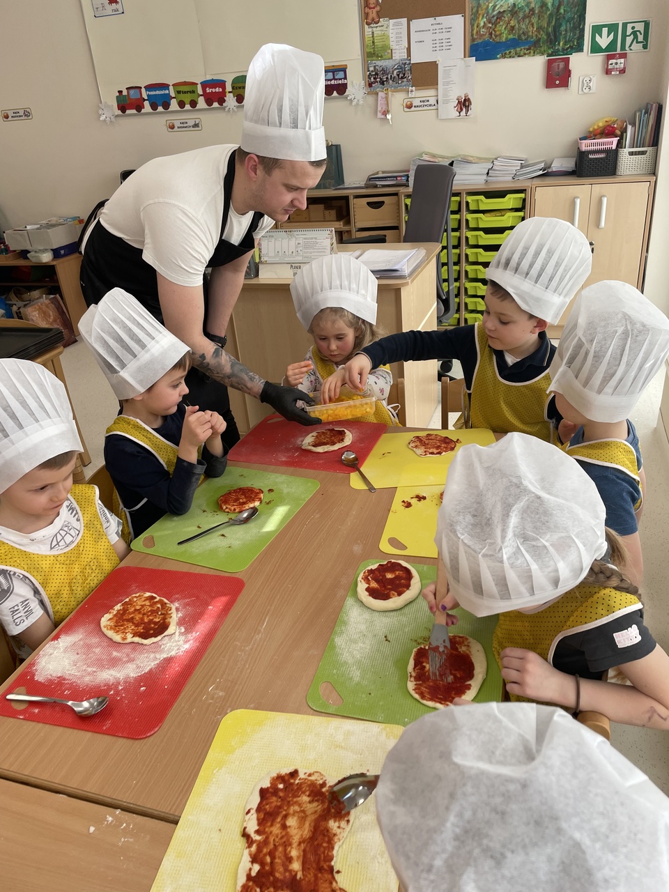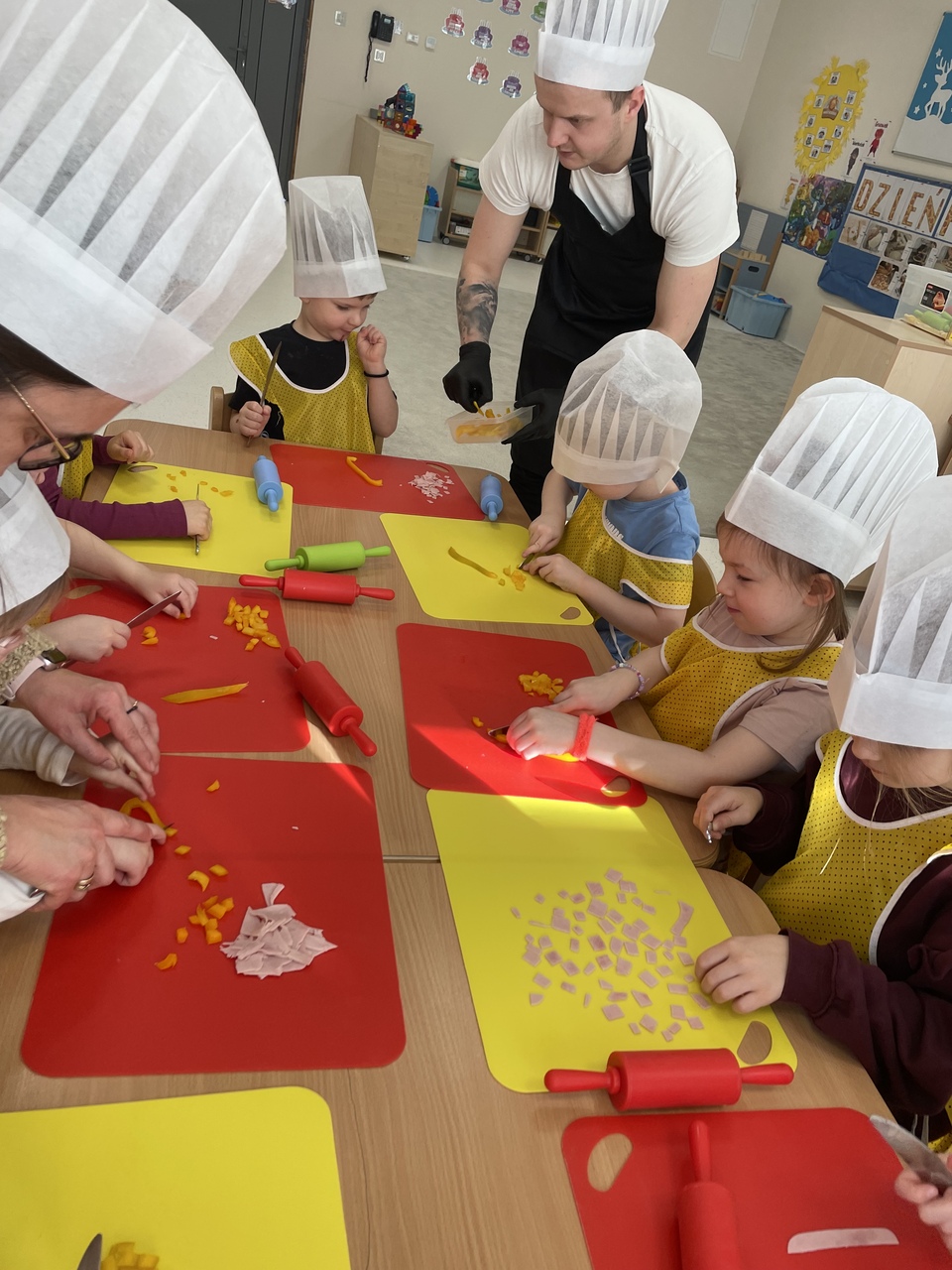 19 lutego 2026 roku w naszym przedszkolu zapachniało słoneczną Italią, a wszystko to za sprawą świętowania Międzynarodowego Dnia Pizzy. Tego dnia nasza sala zamieniła się w prawdziwą pizzerię, w której dzieci wspólnie przygotowywały ten uwielbiany przez wszystkich przysmak. Wyjątkowy charakter wydarzenia podkreśliła wizyta dwojga rodziców - tata Stasia i tata Oliwierka, którzy odwiedzili nas, by przeprowadzić profesjonalne warsztaty z pieczenia pizzy. Pod ich czujnym okiem przedszkolaki poznawały tajniki wyrabiania ciasta oraz uczyły się, jak dobierać najlepsze składniki. Każdy mały kucharz z wielkim zaangażowaniem komponował własny placek, dbając o każdy kolorowy dodatek. Po pracy nadszedł czas na najbardziej wyczekiwany punkt programu – wielką degustację. Własnoręcznie przygotowane dania smakowały wyśmienicie, a apetyty dopisywały każdemu bez wyjątku. Dzieci były niezwykle dumne ze swoich kulinarnych osiągnięć i z radością dzieliły się wrażeniami z kolegami. Serdecznie dziękujemy rodzicom za poświęcony czas oraz zorganizowanie tak pysznej i edukacyjnej zabawy. To był dzień pełen uśmiechów.