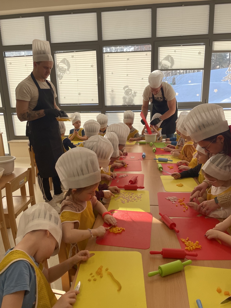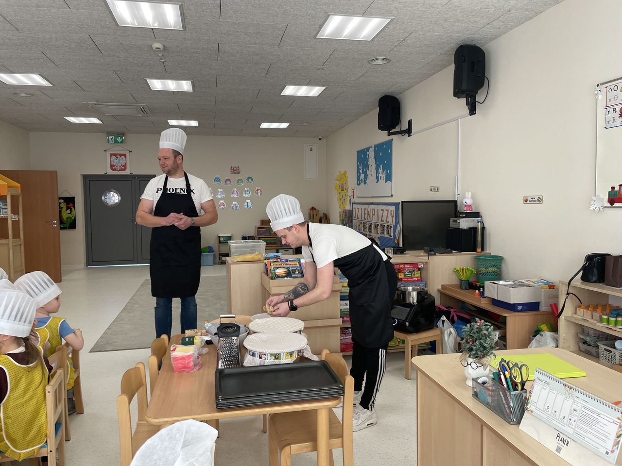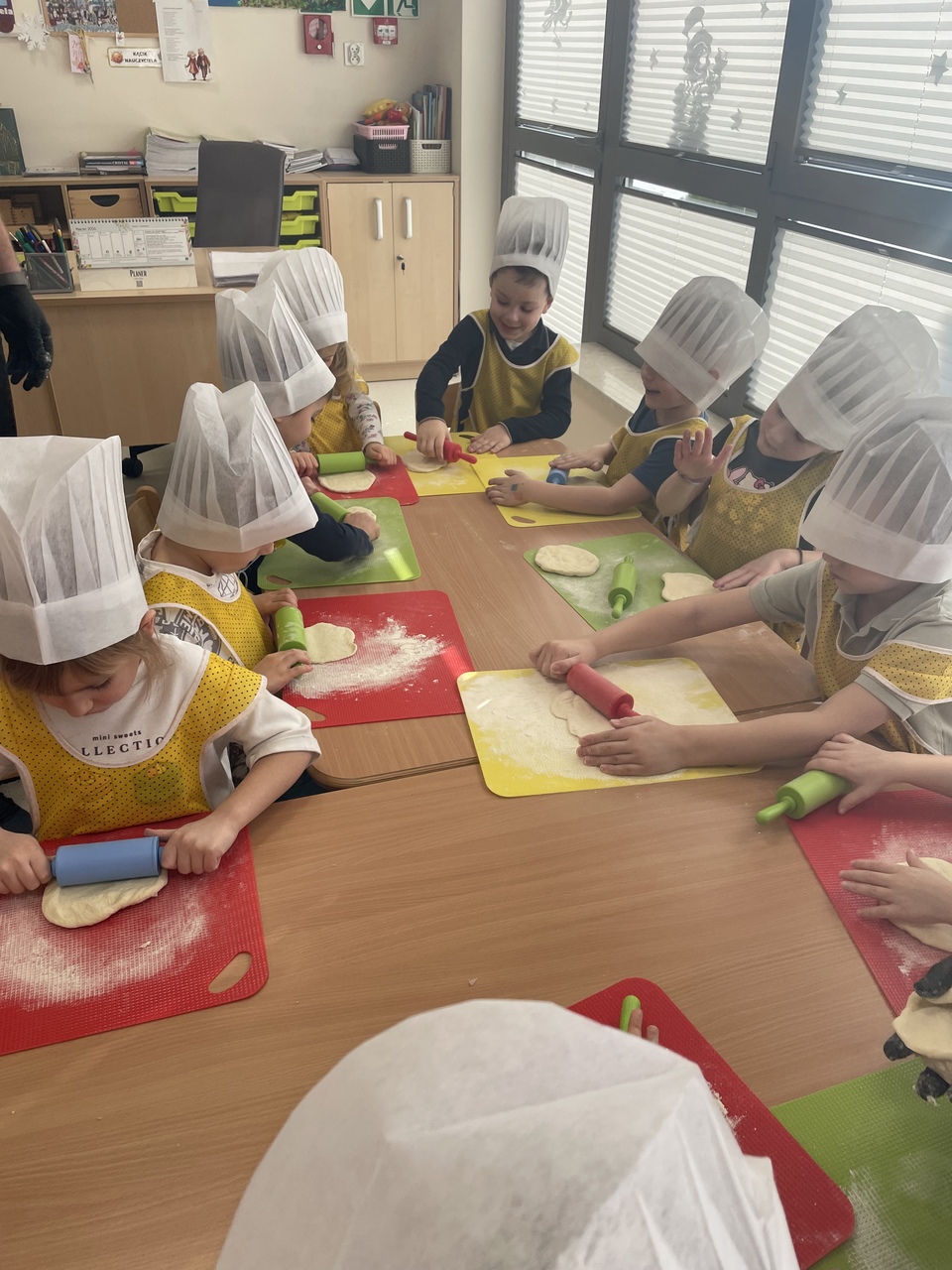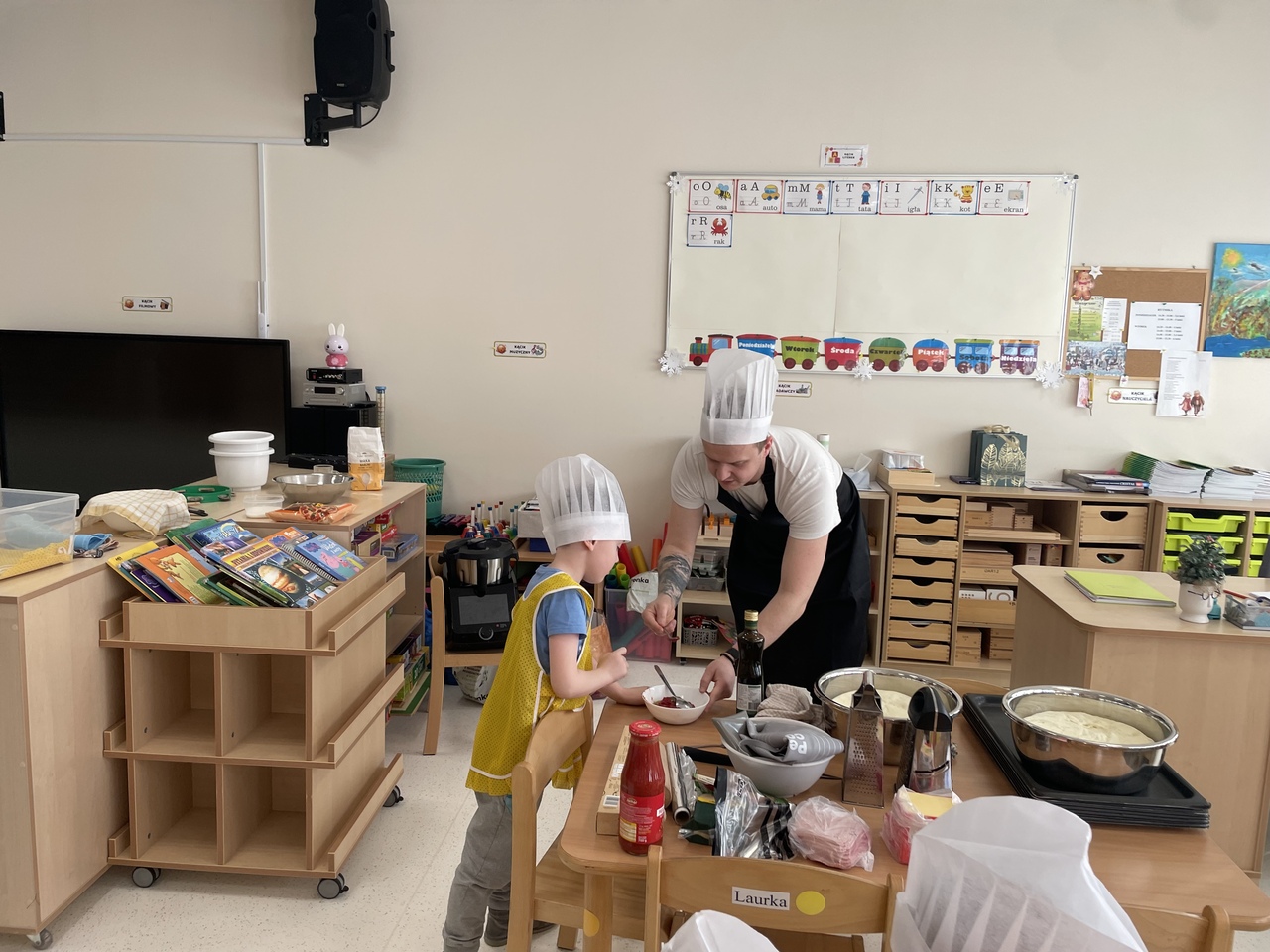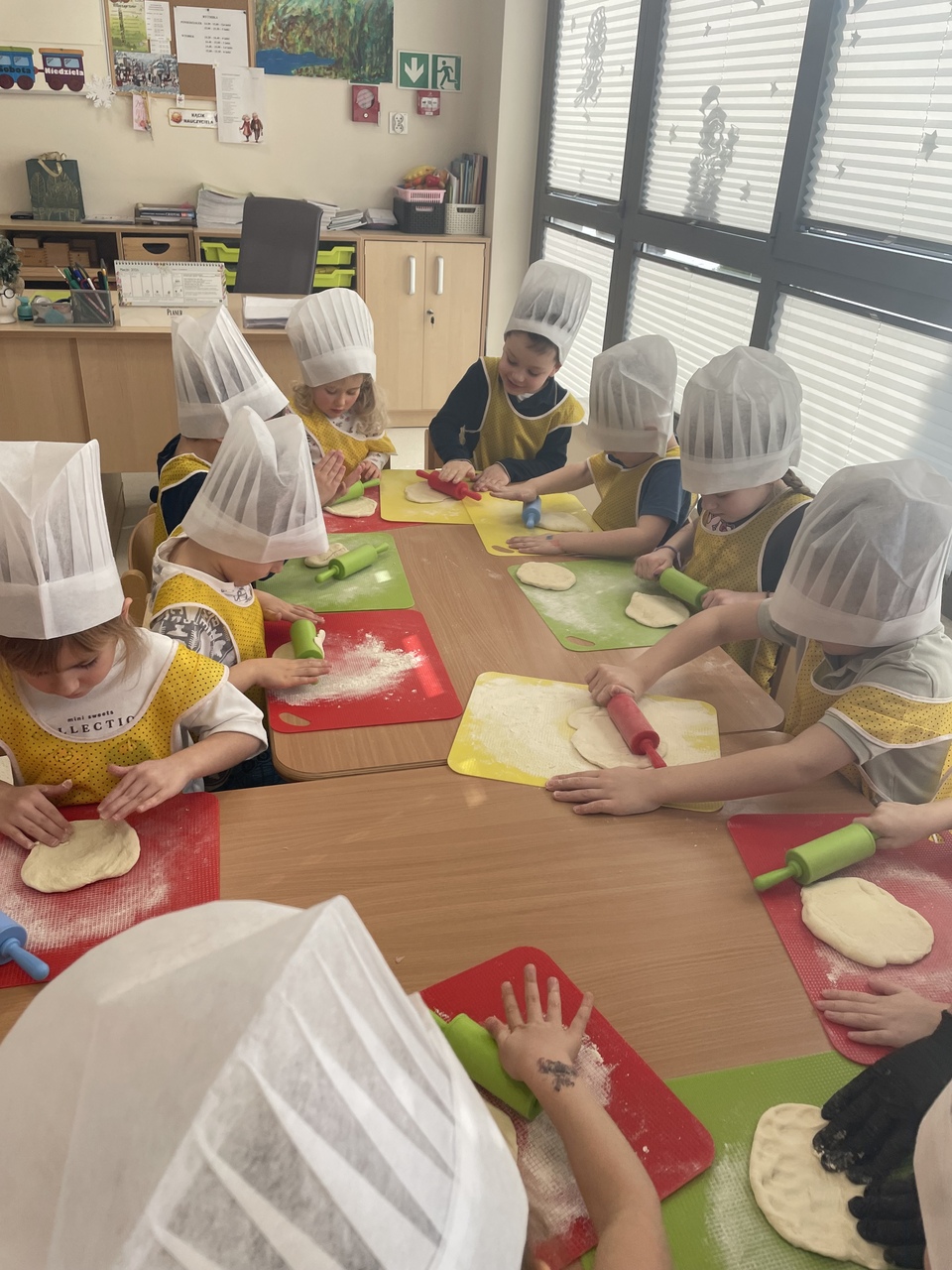 19 lutego 2026 roku w naszym przedszkolu zapachniało słoneczną Italią, a wszystko to za sprawą świętowania Międzynarodowego Dnia Pizzy. Tego dnia nasza sala zamieniła się w prawdziwą pizzerię, w której dzieci wspólnie przygotowywały ten uwielbiany przez wszystkich przysmak. Wyjątkowy charakter wydarzenia podkreśliła wizyta dwojga rodziców - tata Stasia i tata Oliwierka, którzy odwiedzili nas, by przeprowadzić profesjonalne warsztaty z pieczenia pizzy. Pod ich czujnym okiem przedszkolaki poznawały tajniki wyrabiania ciasta oraz uczyły się, jak dobierać najlepsze składniki. Każdy mały kucharz z wielkim zaangażowaniem komponował własny placek, dbając o każdy kolorowy dodatek. Po pracy nadszedł czas na najbardziej wyczekiwany punkt programu – wielką degustację. Własnoręcznie przygotowane dania smakowały wyśmienicie, a apetyty dopisywały każdemu bez wyjątku. Dzieci były niezwykle dumne ze swoich kulinarnych osiągnięć i z radością dzieliły się wrażeniami z kolegami. Serdecznie dziękujemy rodzicom za poświęcony czas oraz zorganizowanie tak pysznej i edukacyjnej zabawy. To był dzień pełen uśmiechów.