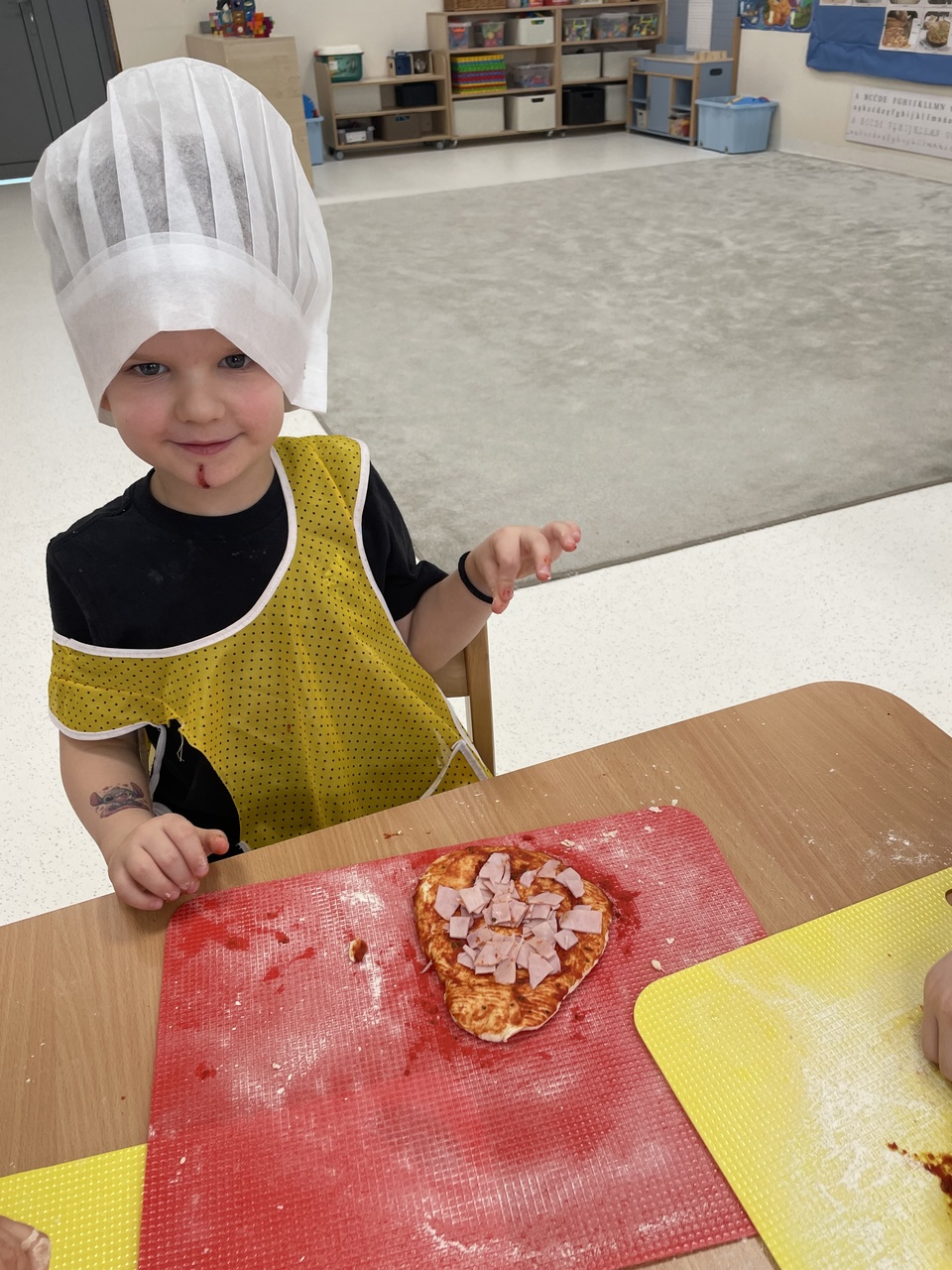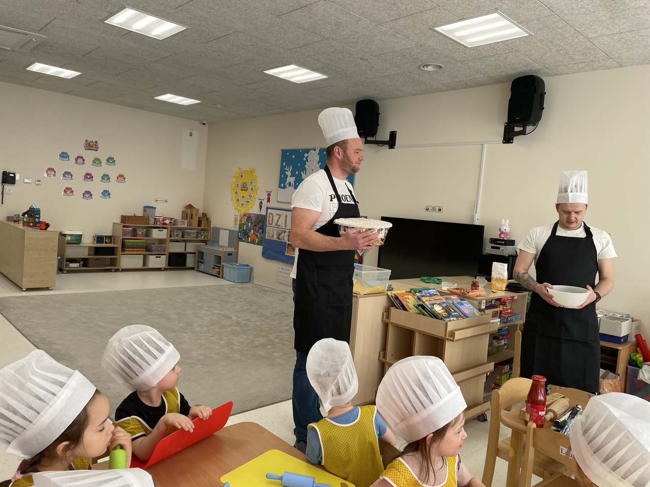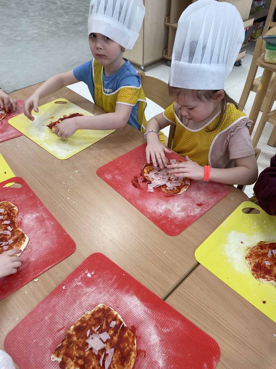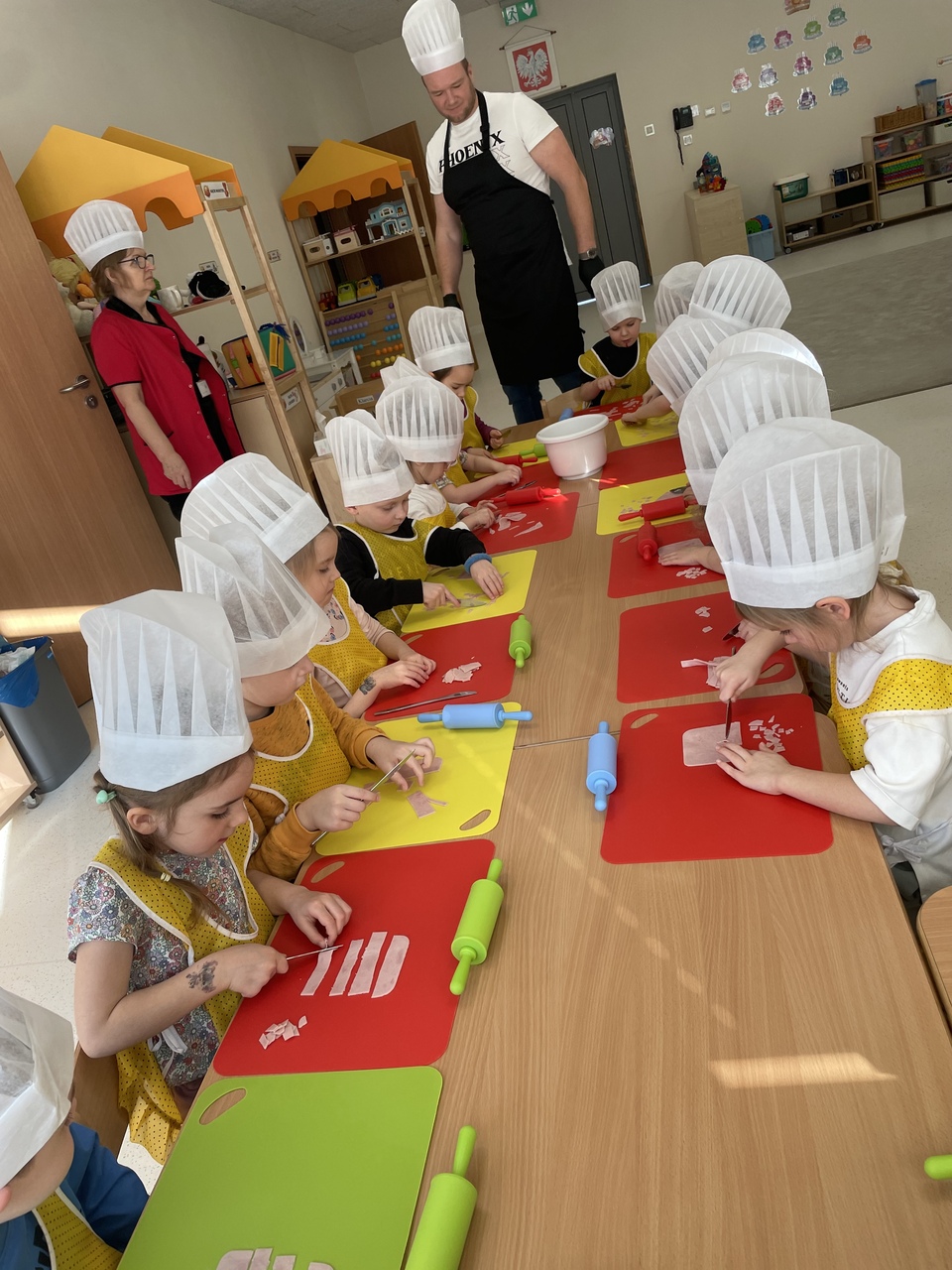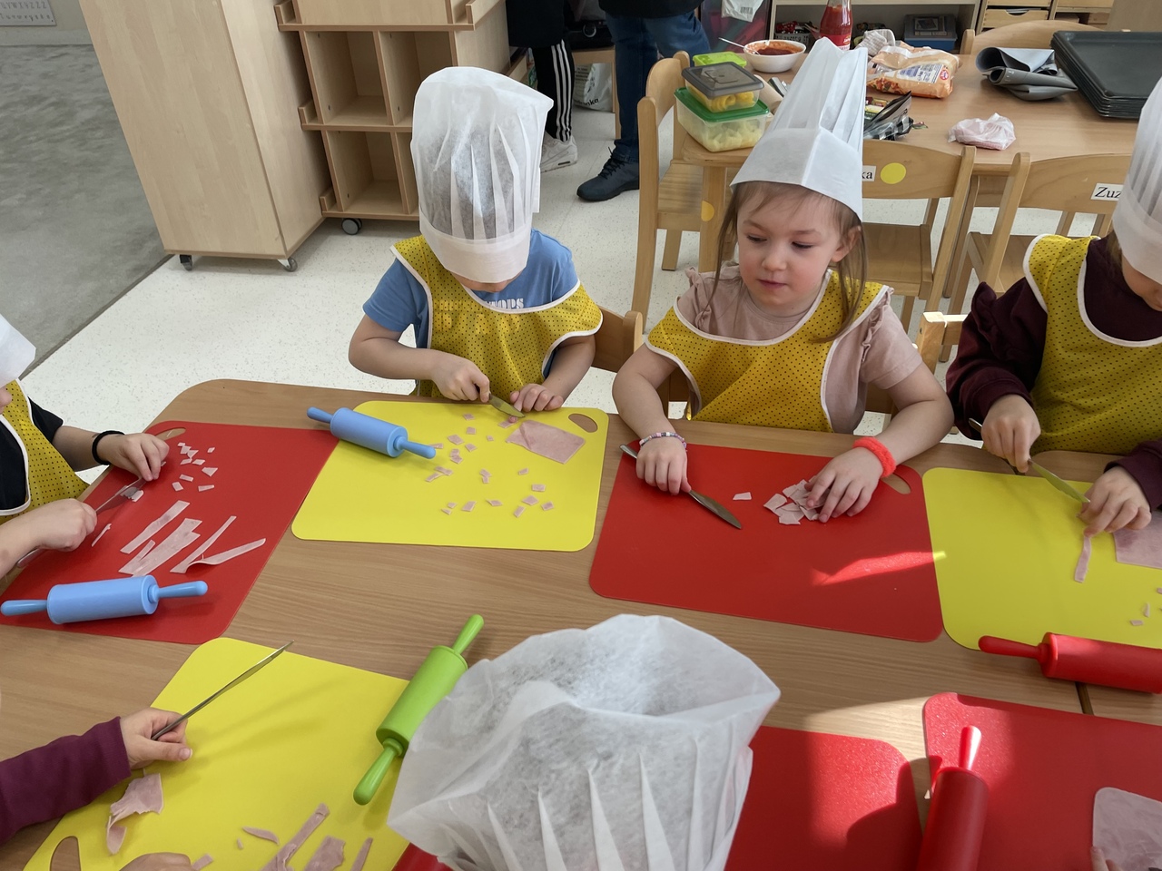 19 lutego 2026 roku w naszym przedszkolu zapachniało słoneczną Italią, a wszystko to za sprawą świętowania Międzynarodowego Dnia Pizzy. Tego dnia nasza sala zamieniła się w prawdziwą pizzerię, w której dzieci wspólnie przygotowywały ten uwielbiany przez wszystkich przysmak. Wyjątkowy charakter wydarzenia podkreśliła wizyta dwojga rodziców - tata Stasia i tata Oliwierka, którzy odwiedzili nas, by przeprowadzić profesjonalne warsztaty z pieczenia pizzy. Pod ich czujnym okiem przedszkolaki poznawały tajniki wyrabiania ciasta oraz uczyły się, jak dobierać najlepsze składniki. Każdy mały kucharz z wielkim zaangażowaniem komponował własny placek, dbając o każdy kolorowy dodatek. Po pracy nadszedł czas na najbardziej wyczekiwany punkt programu – wielką degustację. Własnoręcznie przygotowane dania smakowały wyśmienicie, a apetyty dopisywały każdemu bez wyjątku. Dzieci były niezwykle dumne ze swoich kulinarnych osiągnięć i z radością dzieliły się wrażeniami z kolegami. Serdecznie dziękujemy rodzicom za poświęcony czas oraz zorganizowanie tak pysznej i edukacyjnej zabawy. To był dzień pełen uśmiechów.