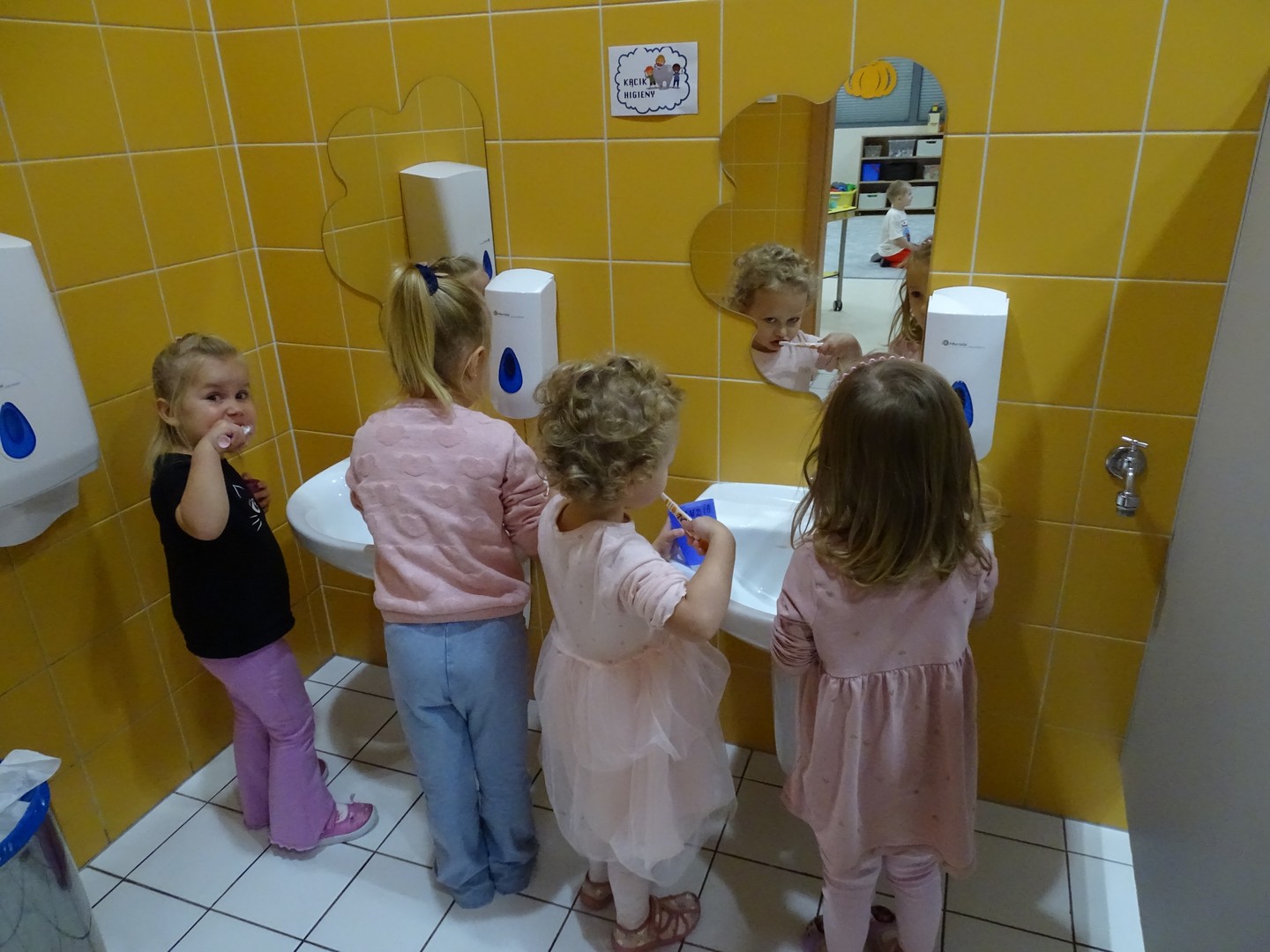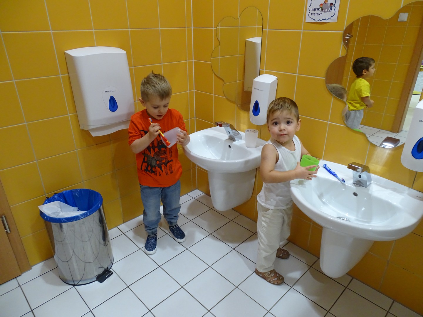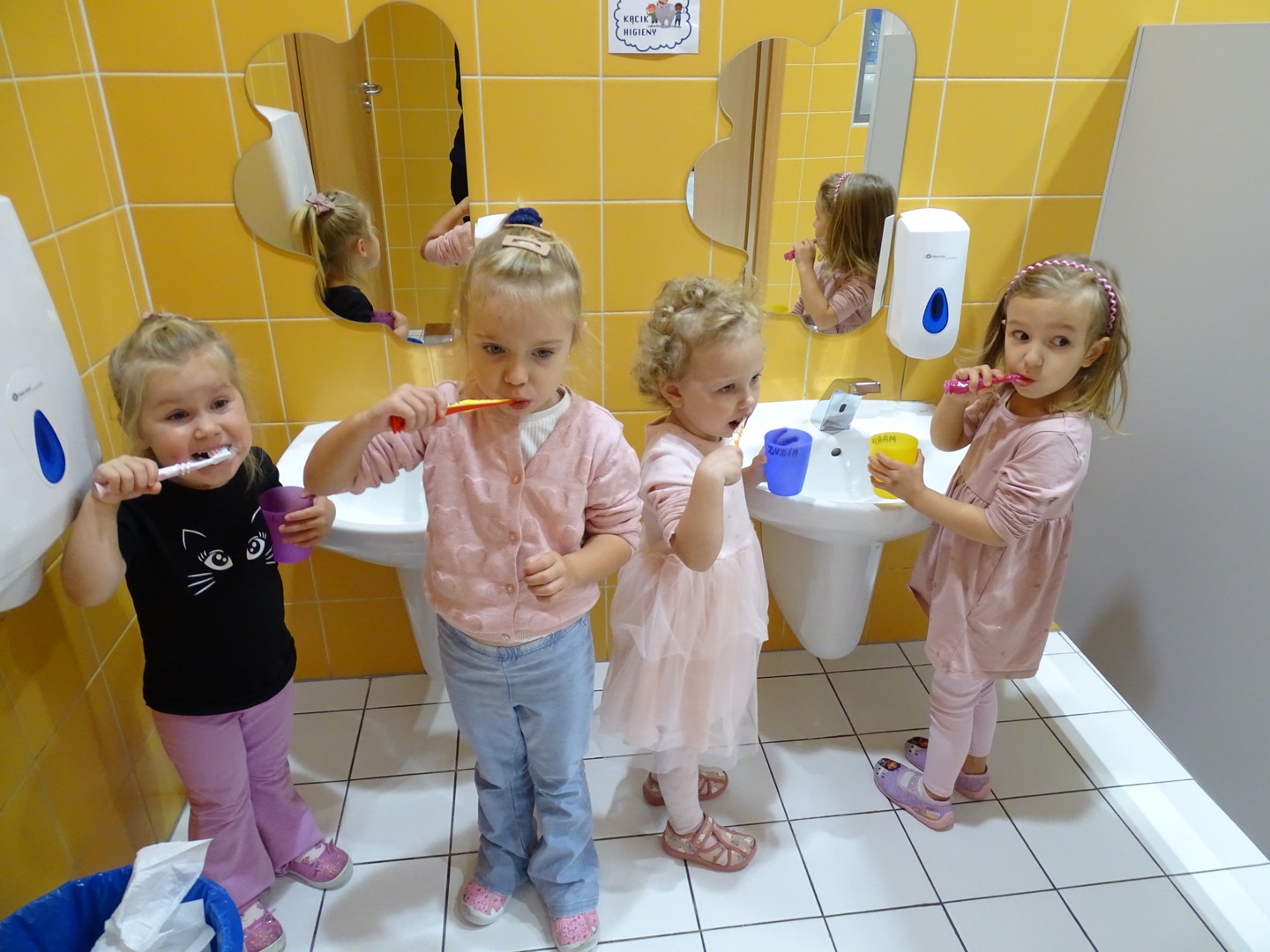 Dbanie o codzienną higienę jamy ustnej to nawyk, który warto wpajać dzieciom już od najmłodszych lat. Nieprawdą jest, że próchnica w mleczakach jest nieszkodliwa. Wręcz przeciwnie bakterie oddziałują na cały organizm, a do tego mogą powodować, że nowe, stałe zęby będą już zaatakowane zmianami. Dlatego już w Maluszkach w naszym przedszkolu dzieci myją ząbki.