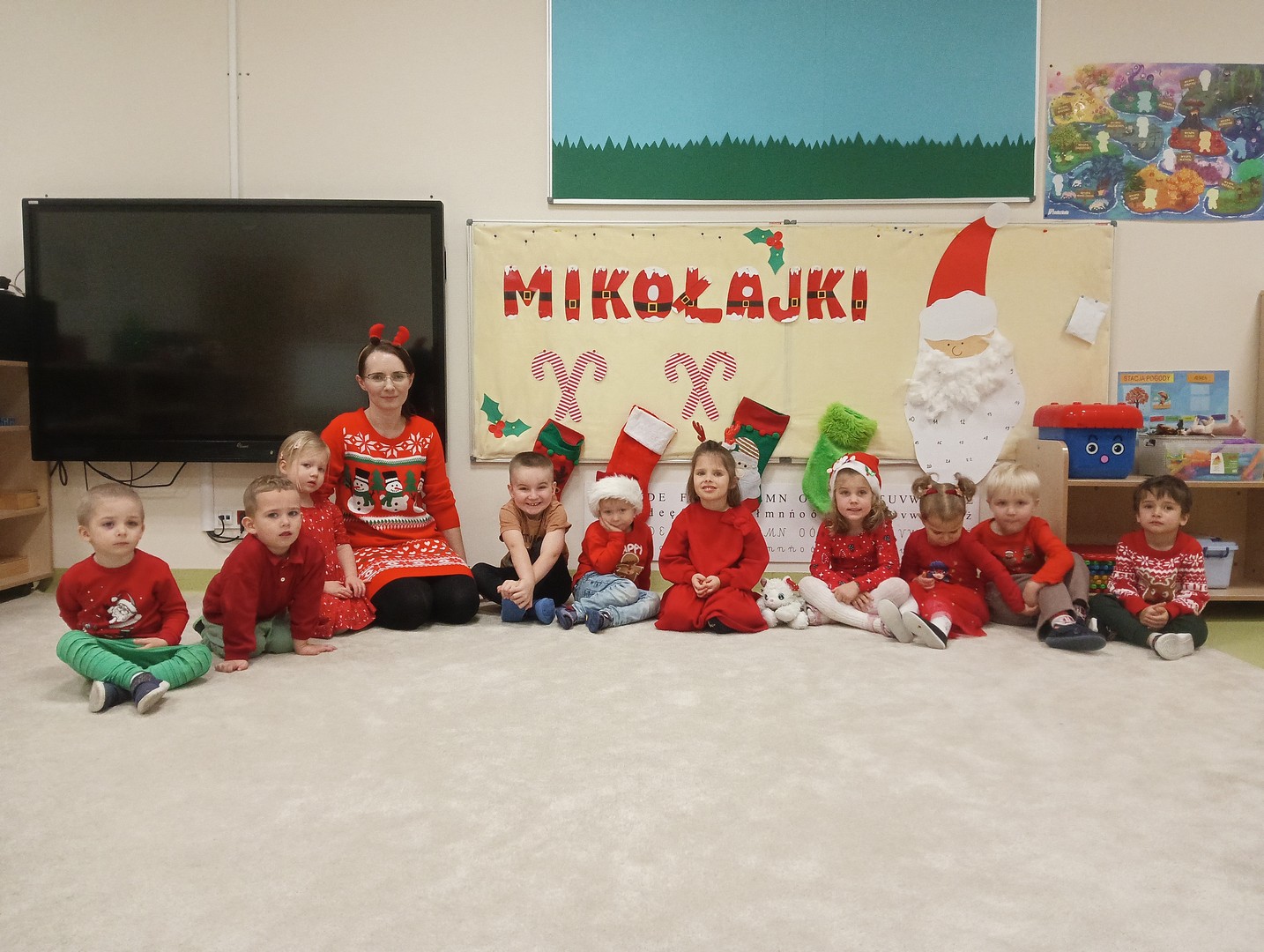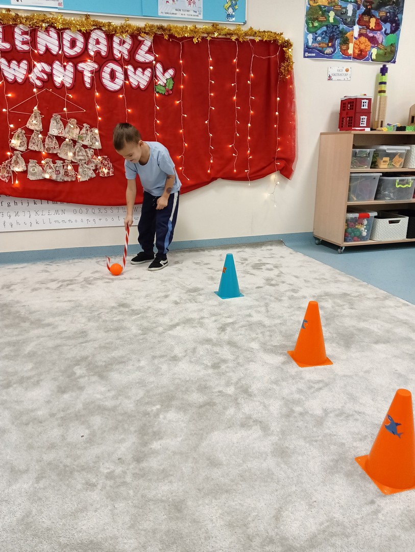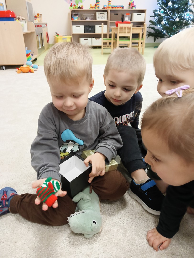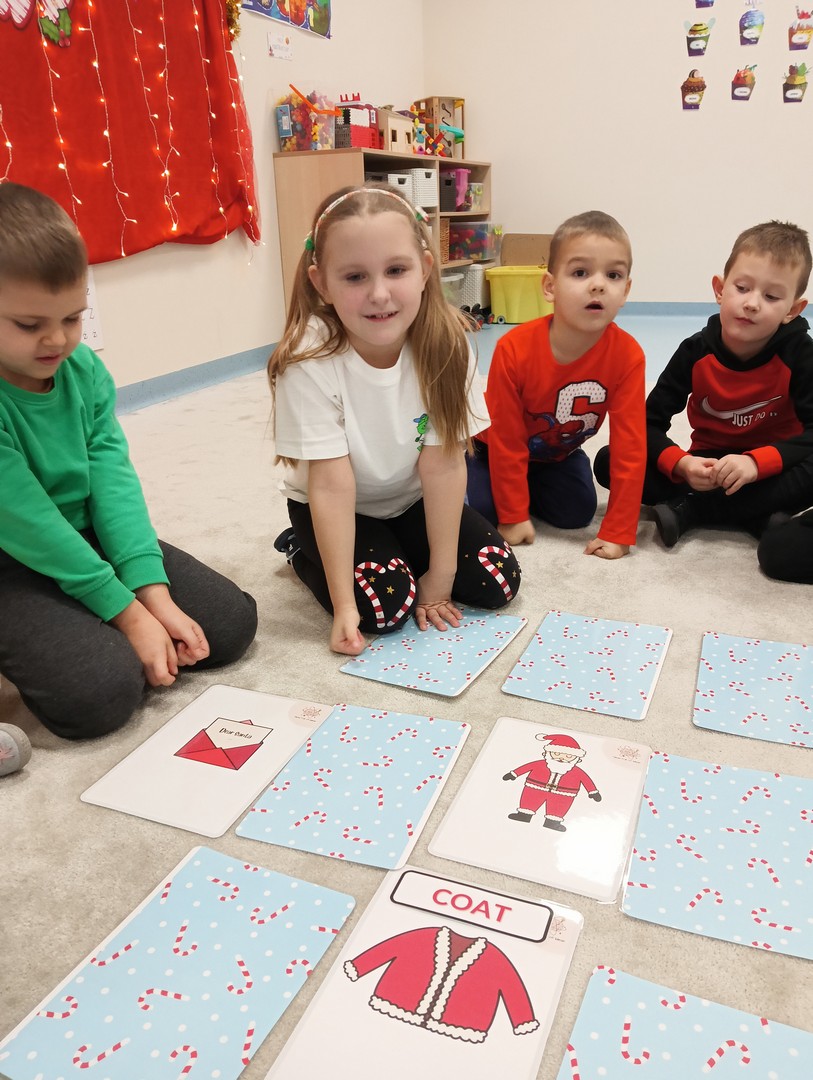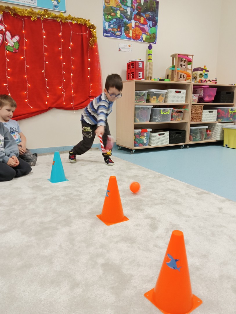 W grudniu, tuż przed świętami, nasze zajęcia wypełniła radosna, świąteczna atmosfera. Dzieci z ogromnym entuzjazmem brały udział w różnorodnych zabawach ruchowych i logicznych, które nie tylko dostarczały dużo śmiechu, ale także rozwijały współpracę i spryt. Wspólnie odkrywaliśmy ukryte prezenty, rozwiązywaliśmy świąteczne zgadywanki oraz wcielaliśmy się w pomocników Mikołaja – nie zabrakło nawet mini stroju św. Mikołaja, który wywołał wiele radości. Podczas zajęć towarzyszyła nam dobra zabawa oraz śpiewanie ulubionych piosenek świątecznych, które wprowadziły wszystkich w wyjątkowy nastrój. Na zakończenie czekała miła niespodzianka od śnieżynek – dzieci otrzymały laski cukrowe, a w młodszej grupie piękne zawieszki na choinkę z własnymi imionami. Ten magiczny czas na długo pozostanie w naszej pamięci jako pełen uśmiechu, ciepła i świątecznej radości.