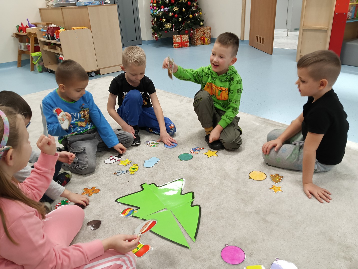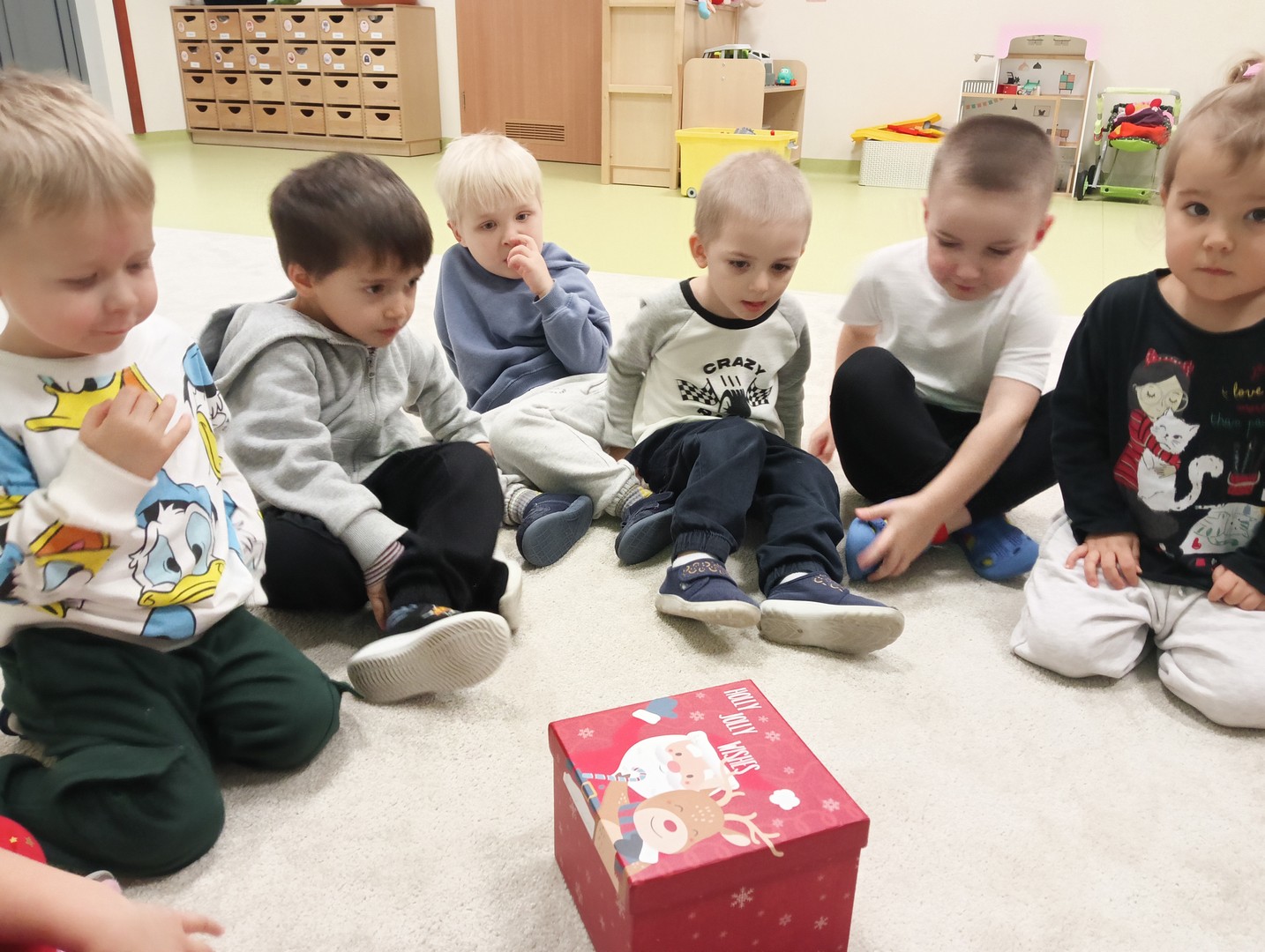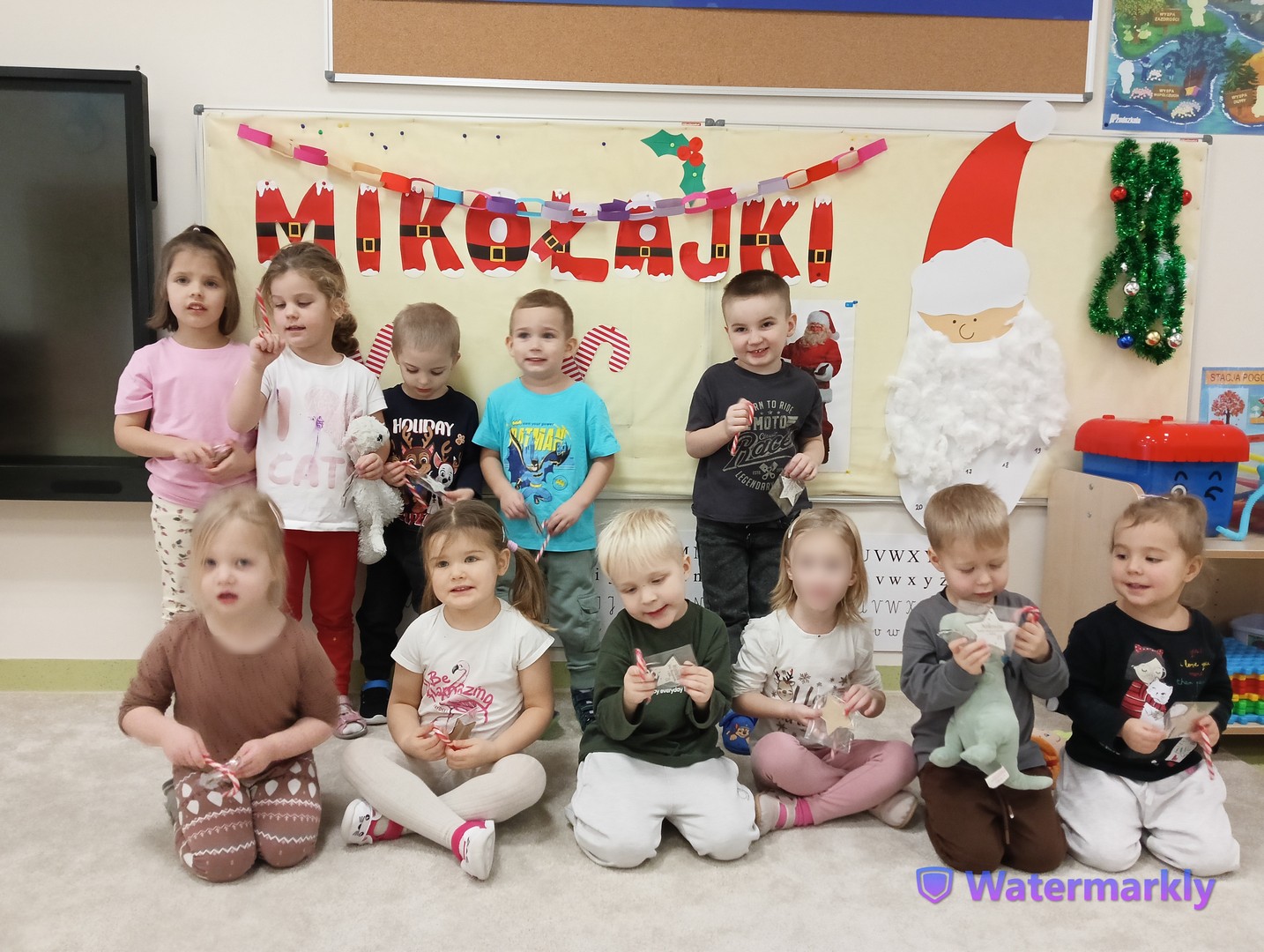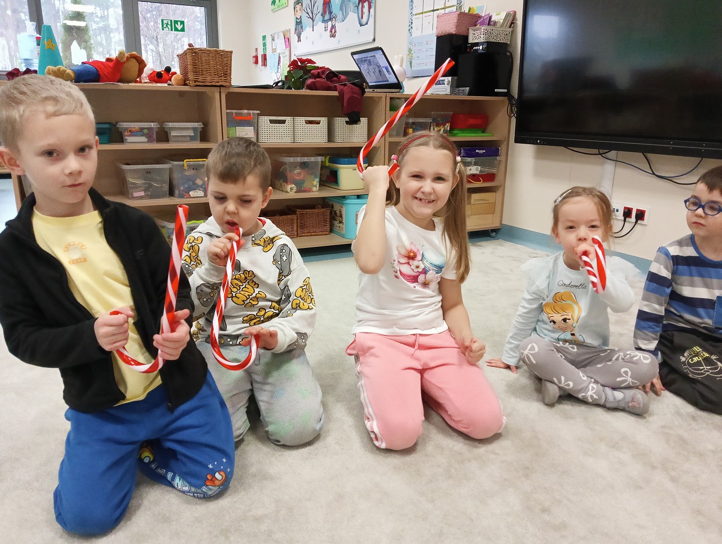 W grudniu, tuż przed świętami, nasze zajęcia wypełniła radosna, świąteczna atmosfera. Dzieci z ogromnym entuzjazmem brały udział w różnorodnych zabawach ruchowych i logicznych, które nie tylko dostarczały dużo śmiechu, ale także rozwijały współpracę i spryt. Wspólnie odkrywaliśmy ukryte prezenty, rozwiązywaliśmy świąteczne zgadywanki oraz wcielaliśmy się w pomocników Mikołaja – nie zabrakło nawet mini stroju św. Mikołaja, który wywołał wiele radości. Podczas zajęć towarzyszyła nam dobra zabawa oraz śpiewanie ulubionych piosenek świątecznych, które wprowadziły wszystkich w wyjątkowy nastrój. Na zakończenie czekała miła niespodzianka od śnieżynek – dzieci otrzymały laski cukrowe, a w młodszej grupie piękne zawieszki na choinkę z własnymi imionami. Ten magiczny czas na długo pozostanie w naszej pamięci jako pełen uśmiechu, ciepła i świątecznej radości.